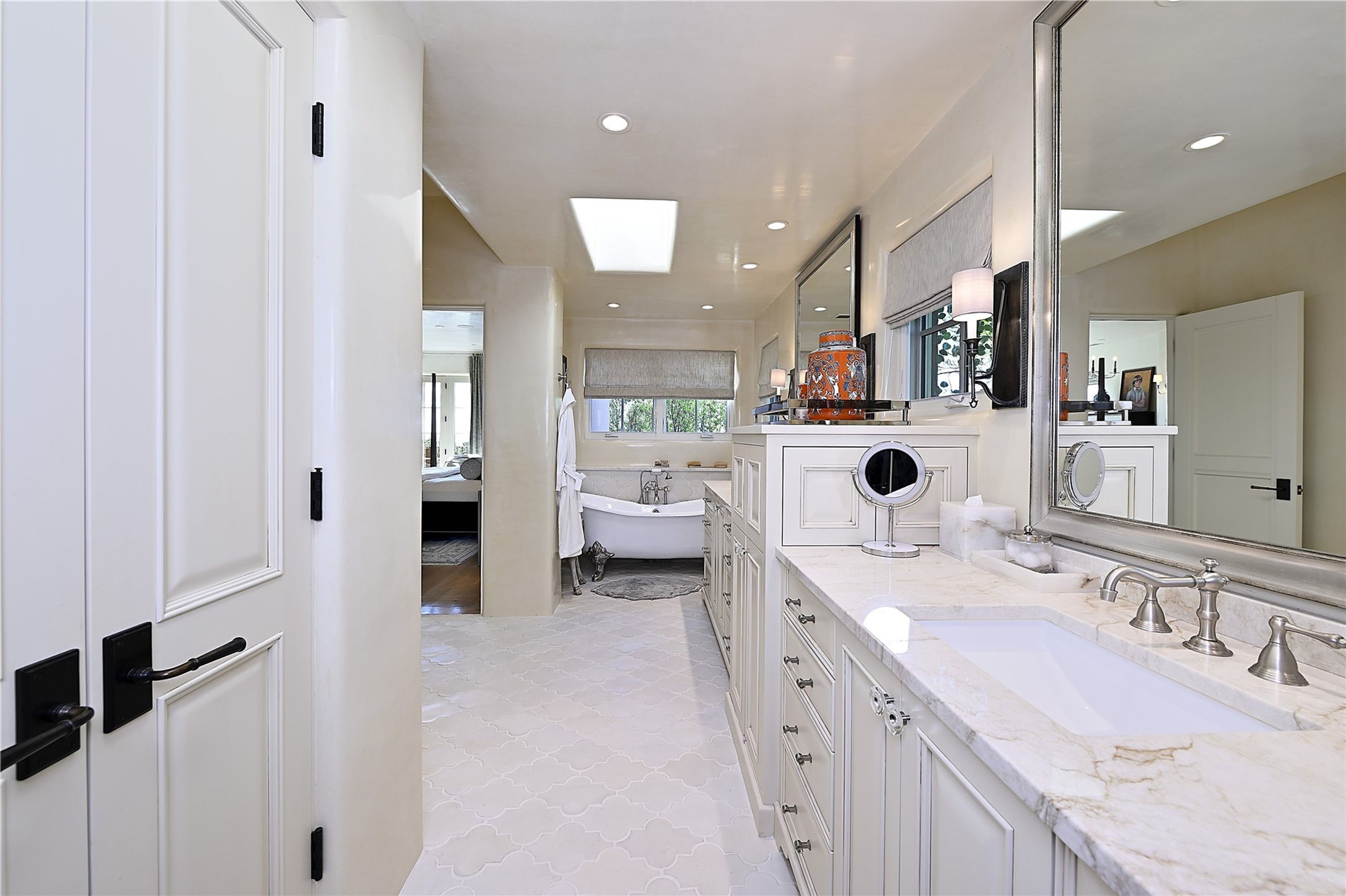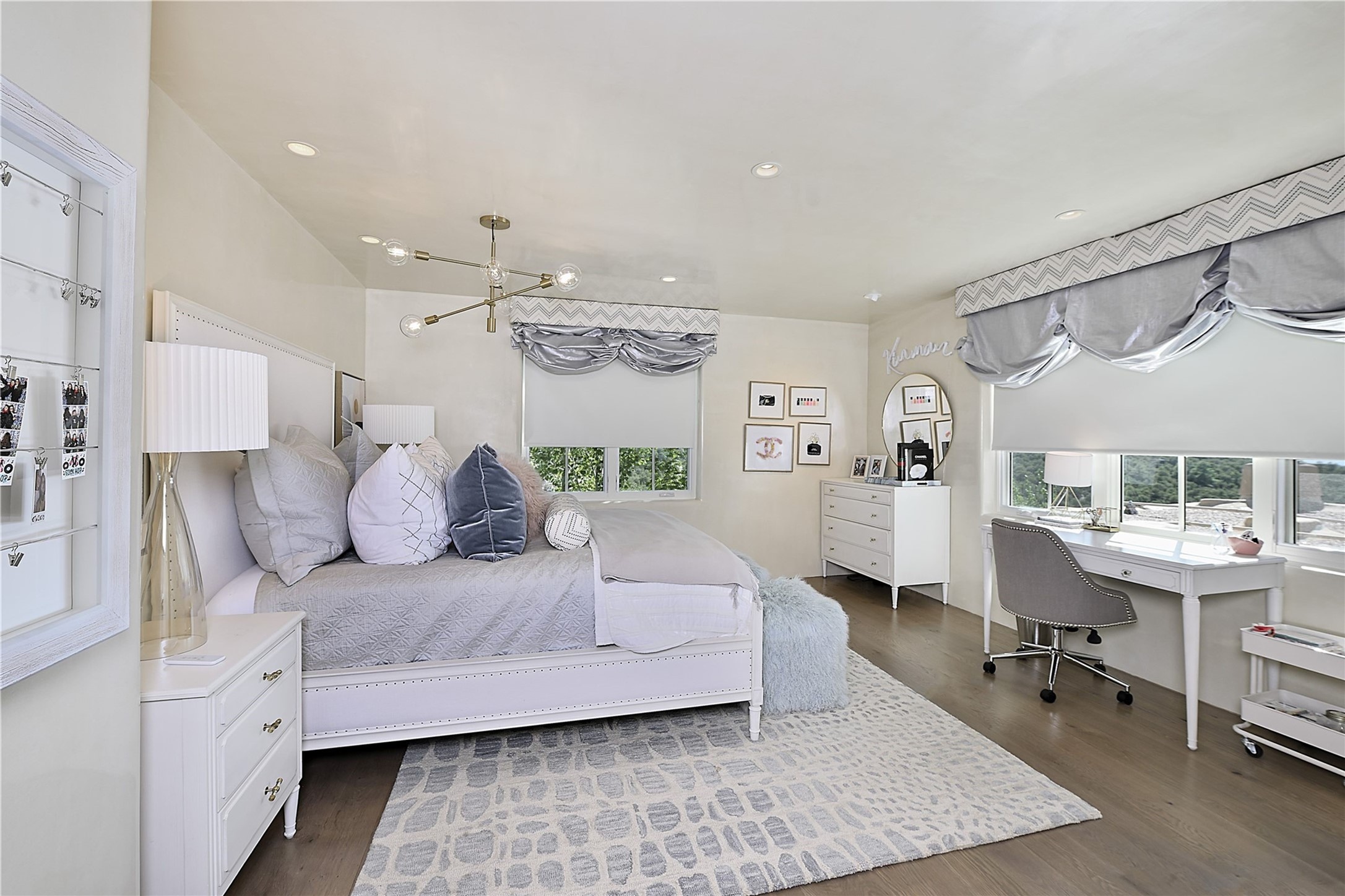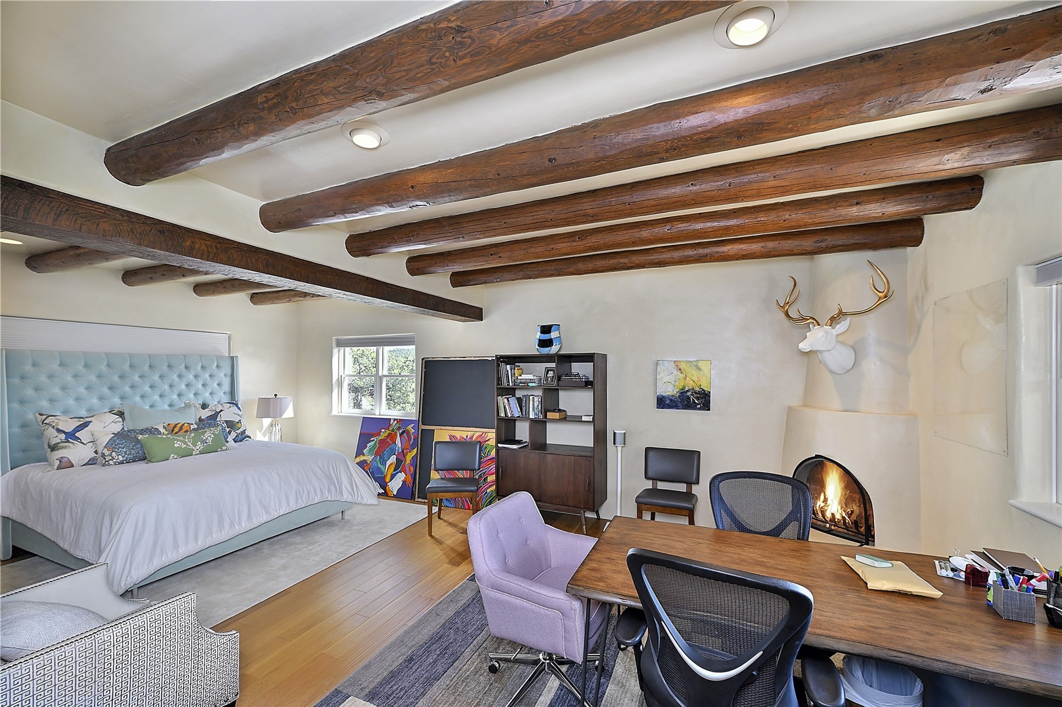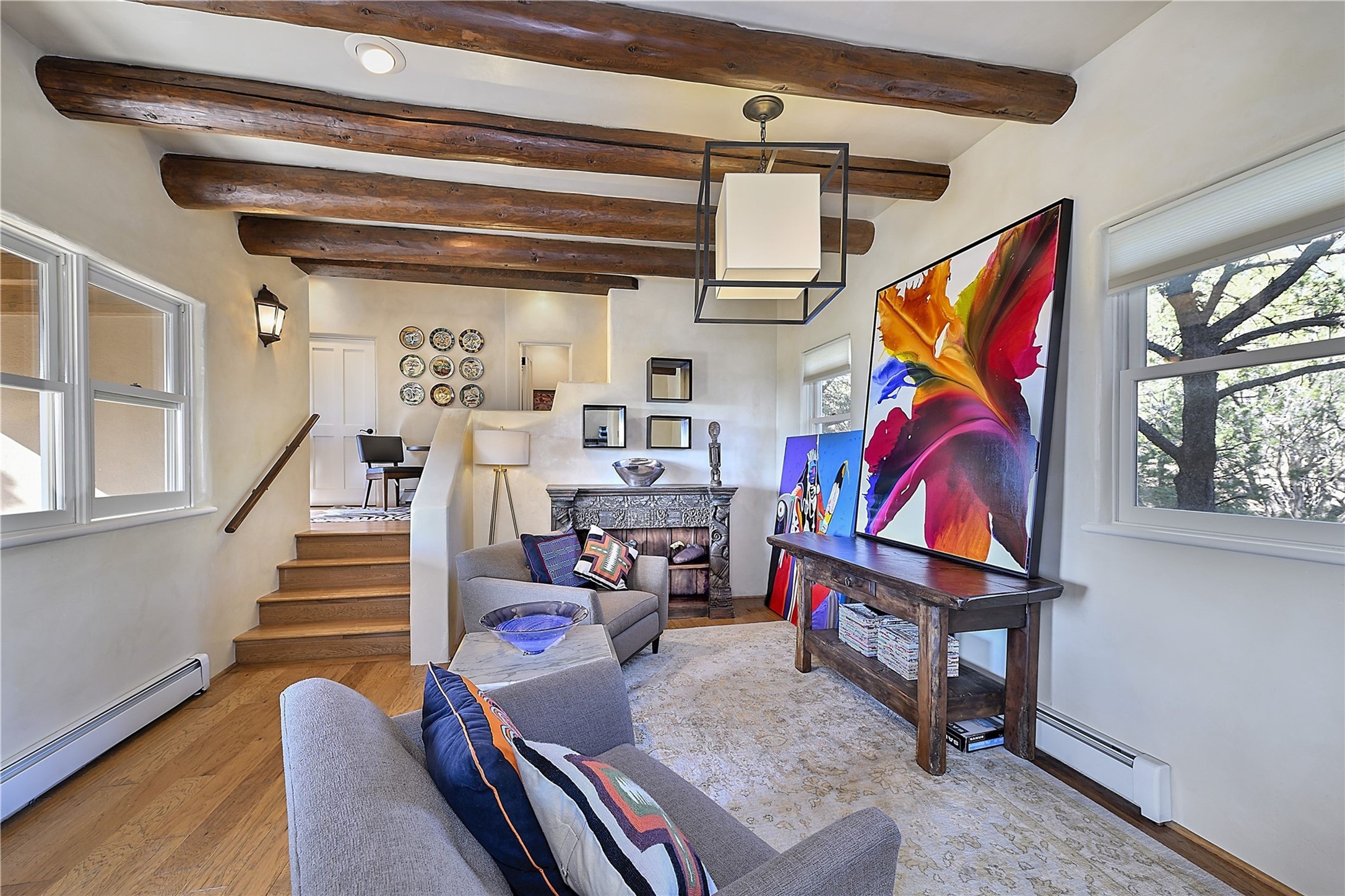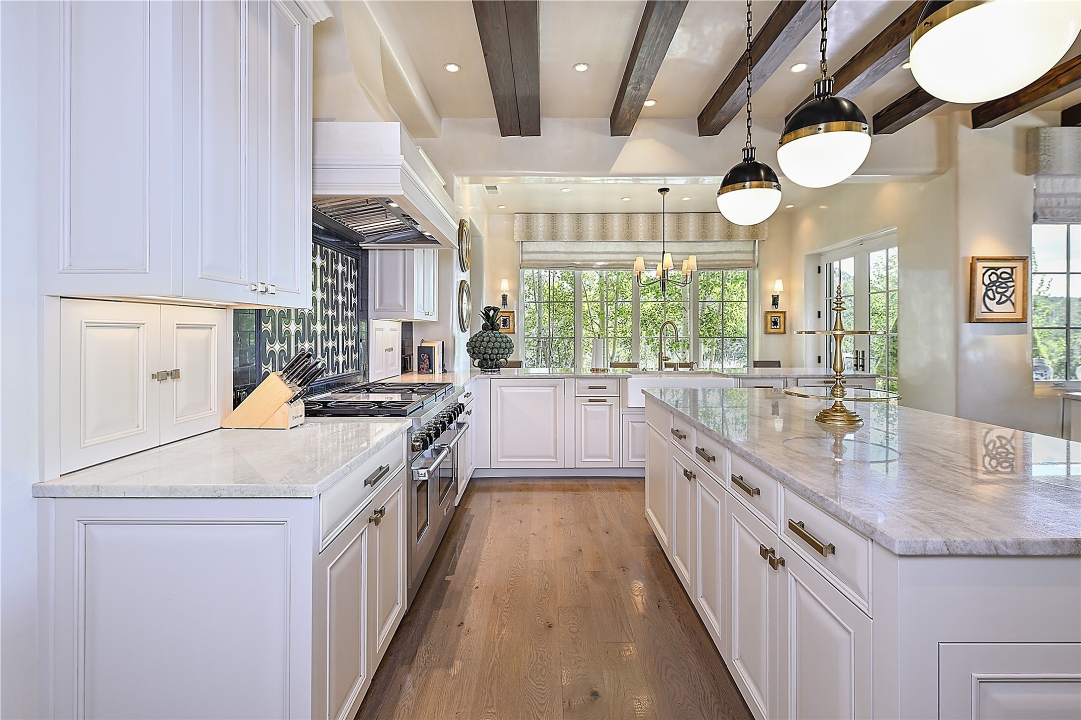 Experience the pinnacle of sophisticated living at this stunning Santa Fe estate. European Elegance Meets Southwestern Splendor at 2216 Wilderness Arroyo! A sanctuary where refined taste meets unparalleled quality--discover the finest in Santa Fe living. Every detail has been meticulously crafted to provide a truly exceptional experience. Nestled on 5.25 acres, within the prestigious Wilderness Gate community, this Woods Builders masterpiece epitomizes European magnificence, seamlessly blending luxury with purposeful privacy. Upon arrival, you are greeted by a private gate, a gracefully curving cobblestone driveway, and beautifully landscaped grounds--an immediate indication of the exceptional quality that awaits. This extraordinary property offers breathtaking views that make it feel like a world apart, while still being conveniently close to downtown Santa Fe. Step inside to discover a home where no detail has been overlooked. The Chef's kitchen, equipped with top-of-the-line appliances, custom cabinetry and Taj Mahal Granite counters, is a culinary dream come true. Surrounding the kitchen, you'll find a formal sitting room, a cozy family gathering area, and a spacious media room--ideal for both grand entertaining and intimate relaxation. The owner's suite is a retreat unto itself, boasting a romantic balcony with sweeping views of the lush grounds, city lights, distant mountains and glorious sunsets. Indulge in the opulent primary bath, designed for ultimate relaxation and pampering. The main residence includes three additional guest bedrooms, thoughtfully separated for privacy. The two upstairs guest rooms feature their own living space and media room, ensuring comfort and convenience for all. Additionally, a separate, self-contained guest house with its own kitchen and laundry facilities offers an ideal space for visitors, extended family, or a remarkable Studio/Office.