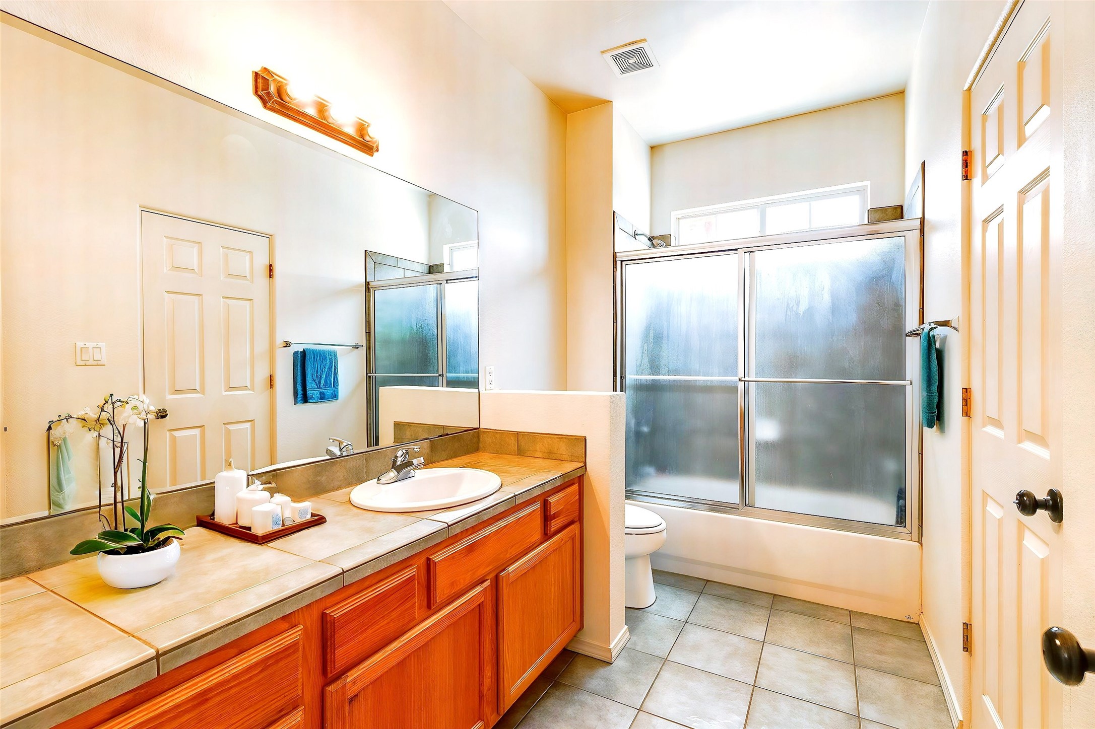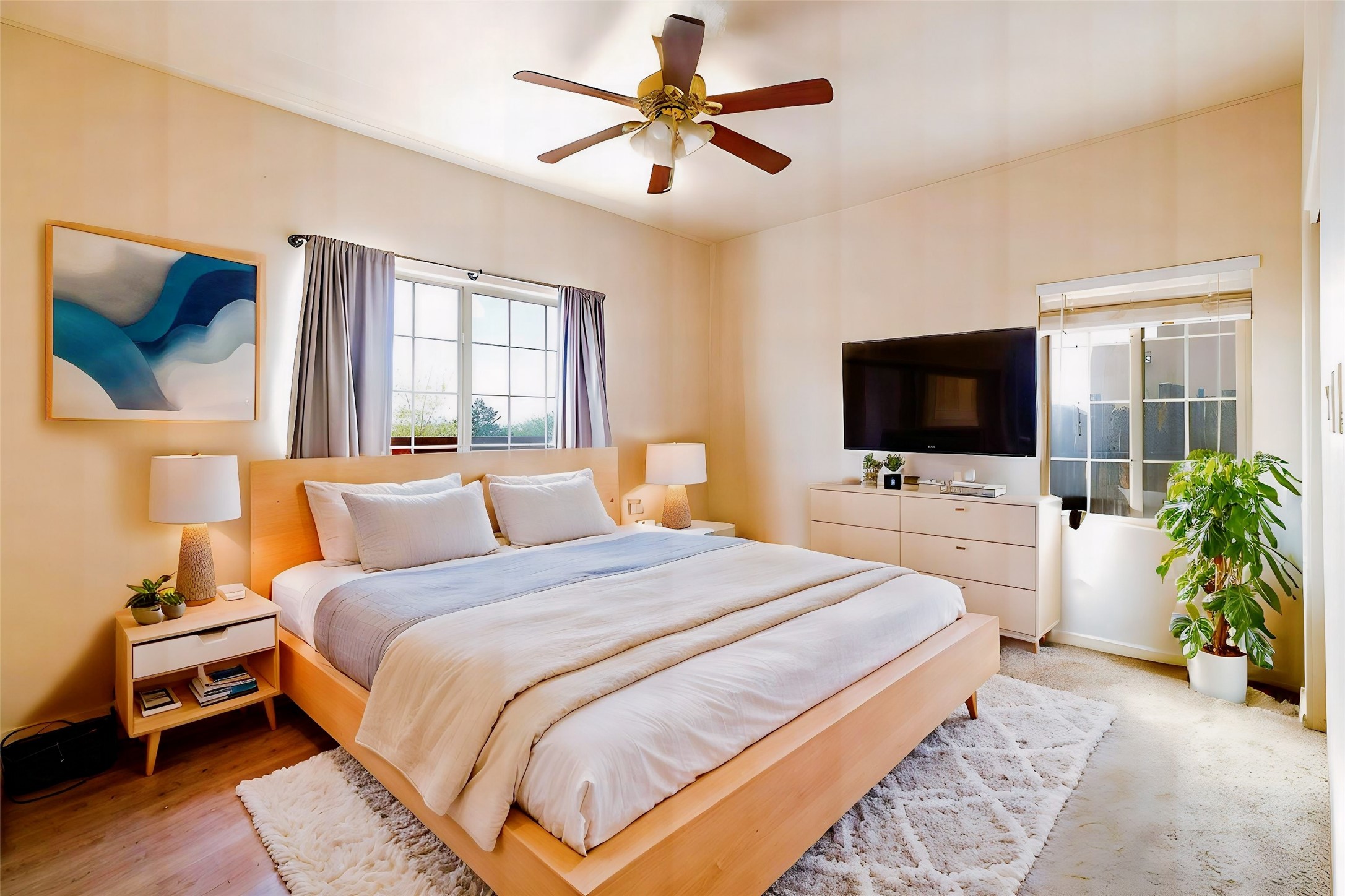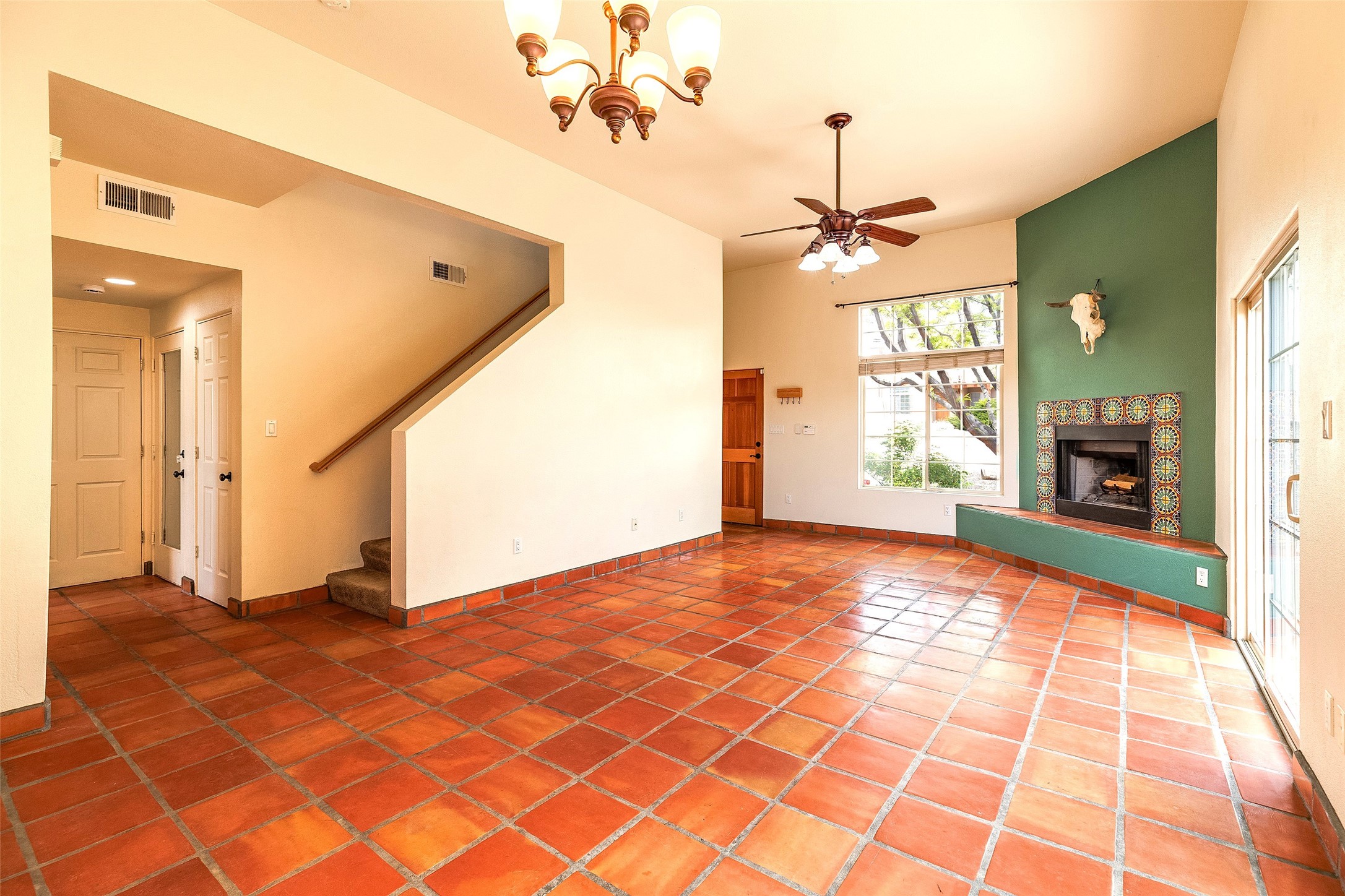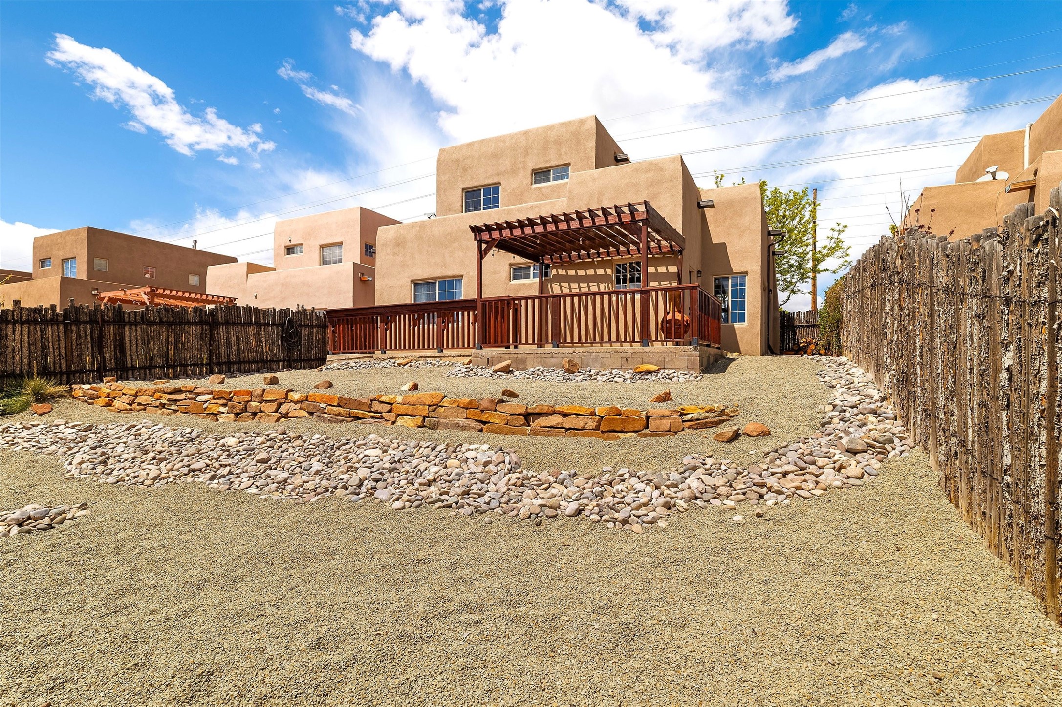 Imagine a Five (5%) mortgage interest rate! This seller incentive of a 2/1 buydown of your mortgage rate makes this possible. Now, welcome to a home that lives larger than its price, nestled in the heart of Nava Ade -- one of Santa Fe's most beloved popular, planned neighborhoods, where tree-lined sidewalks, gentle trails, community POOL and clubhouse and open skies invite you to slow down and breathe in the good life.This is not just a house -- it's a space designed for your lst home or retired lifestyle. Tucked away on a peaceful CUL-De-SAC, this light-filled home offers an affordable opportunity to own in a vibrant community without compromising style, space, or soul. Looking for a Santa Fe home with value at a smart price? Priced at $488,000, this 3-bedroom, 2-bath home offers a spacious primary suite on the MAIN level, open-concept great room living and dining, a light-filled interior with SATILLO tile floors, high ceilings, and a dramatic floor-to-ceiling wood-burning fireplace. While two second level guest bedrooms and full bath with a new BALCONY view deck offer privacy, creative space, and guest flexibility. Outside, enjoy a xeriscaped backyard with COYOTE fencing, PERGOLA for morning coffee, and outdoor room to entertain under the stars. Recent upgrades include a ROOF with transferable maintenance warranty, new stucco, updated CANALES, new dishwasher, fresh interior paint, new landscaping and more. BONUS: Seller will provide a HOME WARRANTY from Home Warranty to America at no cost to buyer! Nava Ade homeowners enjoy LOW HOA fees ($185/qtr) and access to a clubhouse, pool, fitness room, trails, and parks. This established community is minutes from schools, shopping, restaurants, hospitals, and the Santa Fe Community College.This home is your opportunity to live affordably in a well-maintained, move-in ready home with only Santa Fe blue skies and community connection. Trust your judgement! Call to see todayl Swim this summer and live in Santa Fe!