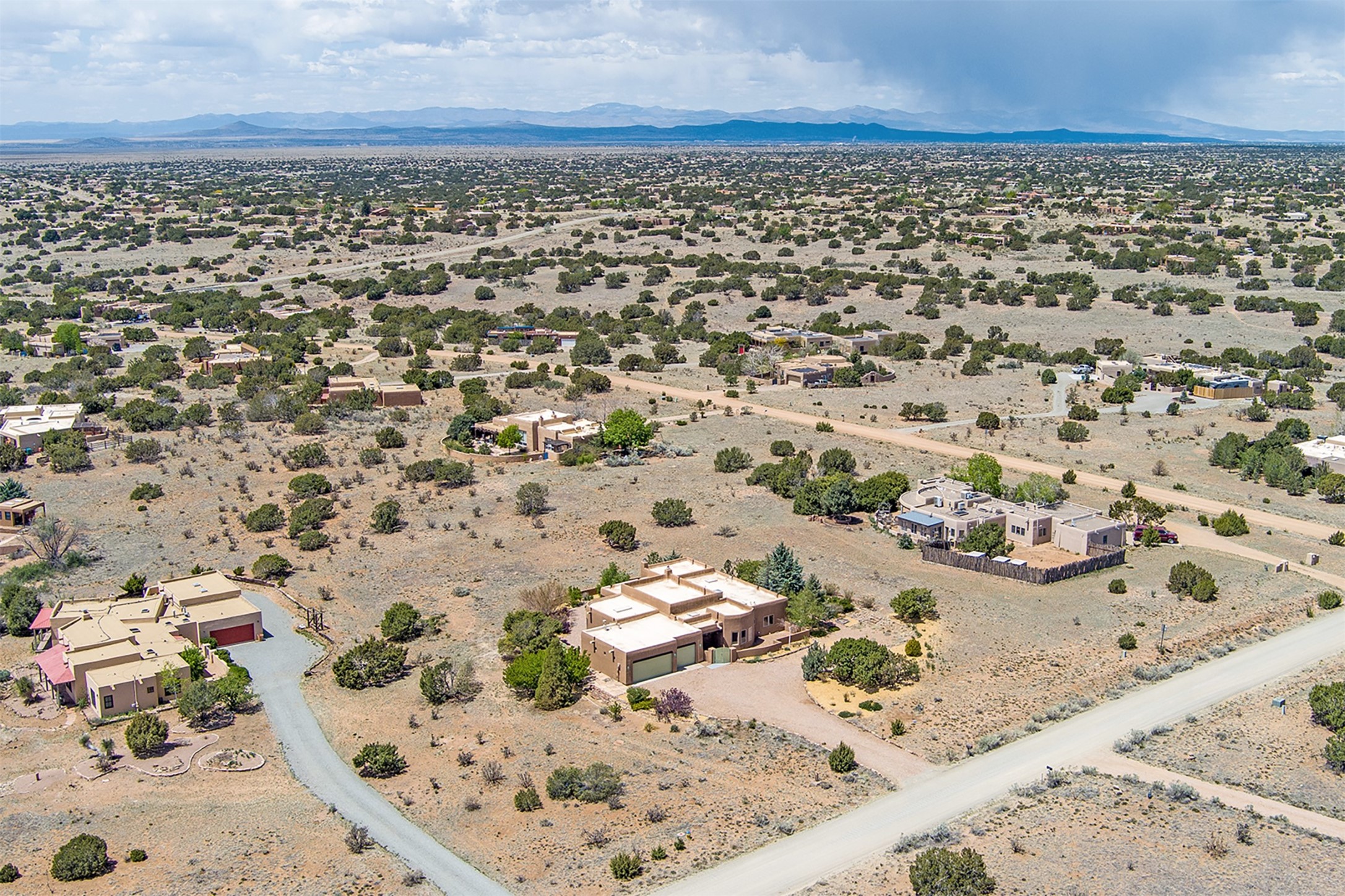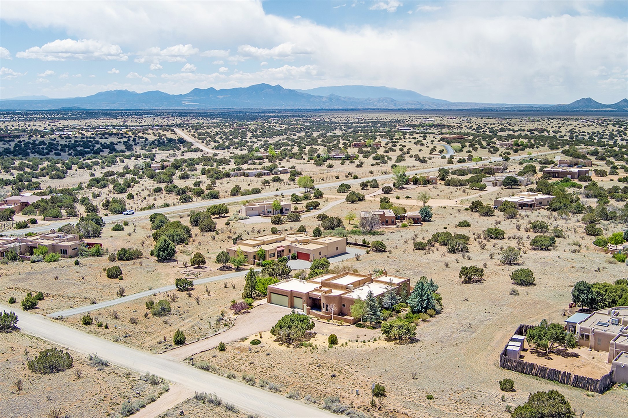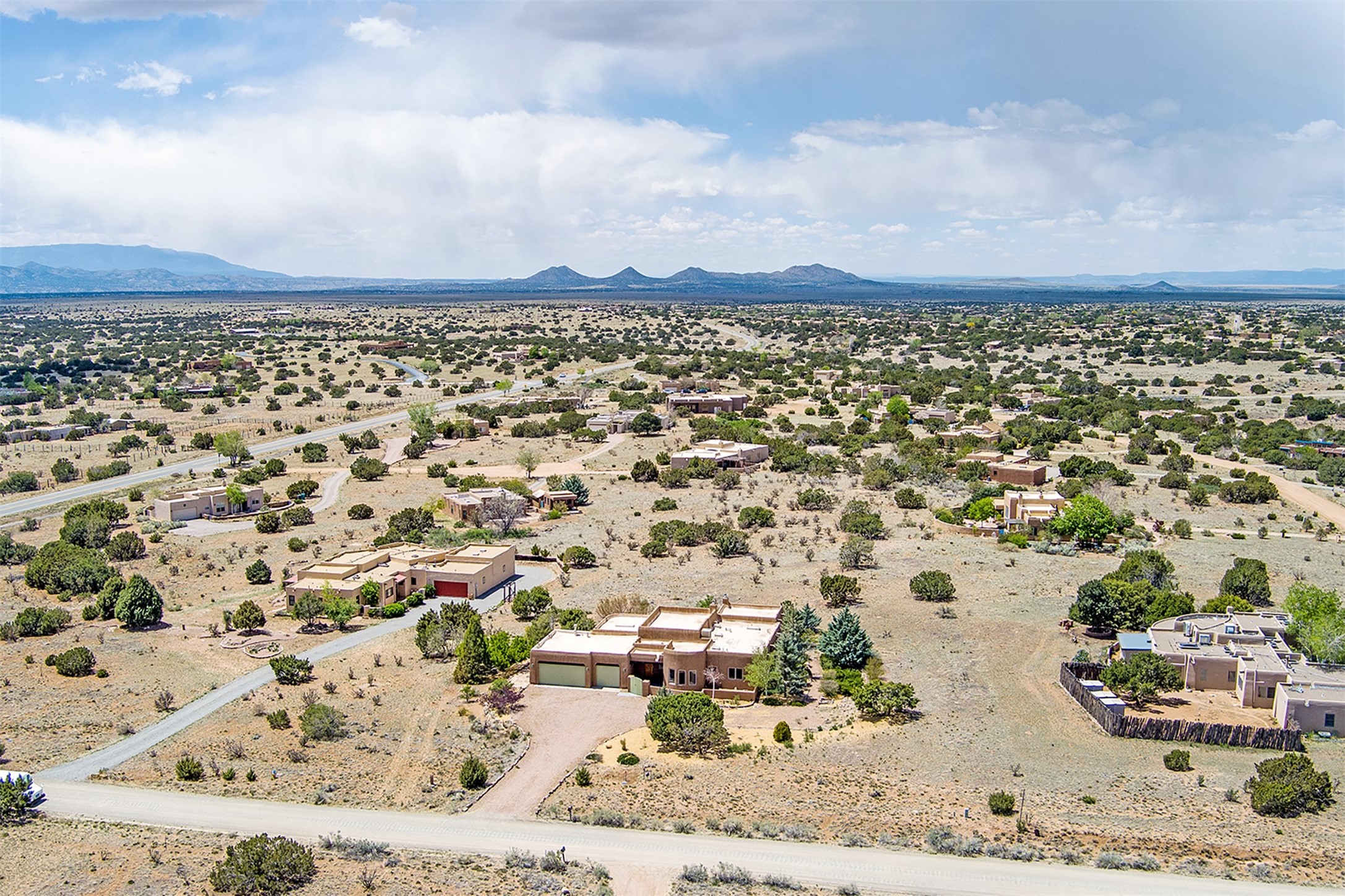 Welcome to this extraordinary residence in the highly desirable Eldorado, where Southwestern elegance meets modern comfort. Upon entering, you're greeted by soaring vaulted ceilings, exquisite tongue-and-groove woodwork, and beautiful vigas, setting the stage for this home's timeless design. The spacious living area, anchored by a traditional kiva fireplace, flows seamlessly into a chef-inspired kitchen. Featuring custom handmade tile backsplash, granite countertops, elegantly designed cabinetry, and brand-new stainless steel appliances, this kitchen is perfect for both everyday living and entertaining. The primary suite is a true retreat, offering a kiva fireplace, a luxurious ensuite, and extraordinary views of the surrounding mountains, providing the perfect sanctuary. Step outside to the private outdoor portal, adorned with tongue-and-groove ceilings and vigas, offering a peaceful setting for relaxation or entertaining. The front and back of the home boast breathtaking mountain views, adding an ever-changing, picturesque backdrop to daily life. This meticulously crafted home has been thoughtfully upgraded to offer a seamless blend of style and functionality. Located in the coveted Eldorado community, this home offers an ideal combination of privacy and convenience. Eldorado is known for its expansive open spaces, dark night skies, and a vibrant, close-knit community. Enjoy miles of walking, biking, and equestrian trails, along with a community center that features a pool, tennis and pickleball courts, and dog parks. Only a short drive to downtown Santa Fe, you'll have access to the city's galleries, fine dining, and cultural events, offering the best of both worlds. This extraordinary home presents a rare opportunity to live in a serene, natural environment while remaining close to the rich culture and amenities of Santa Fe. Schedule your private showing today to experience this exceptional property in person.