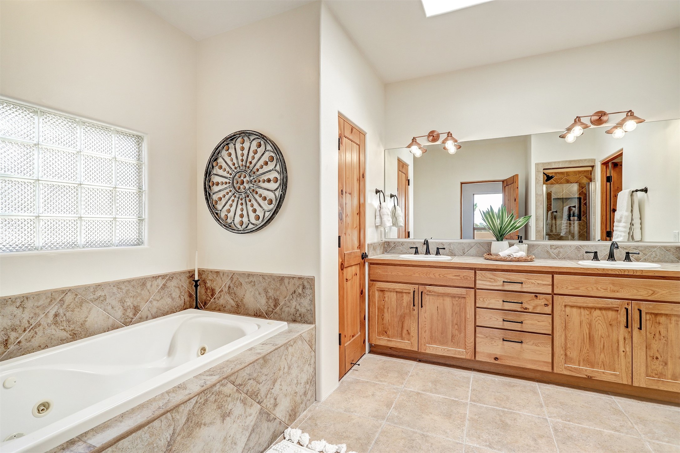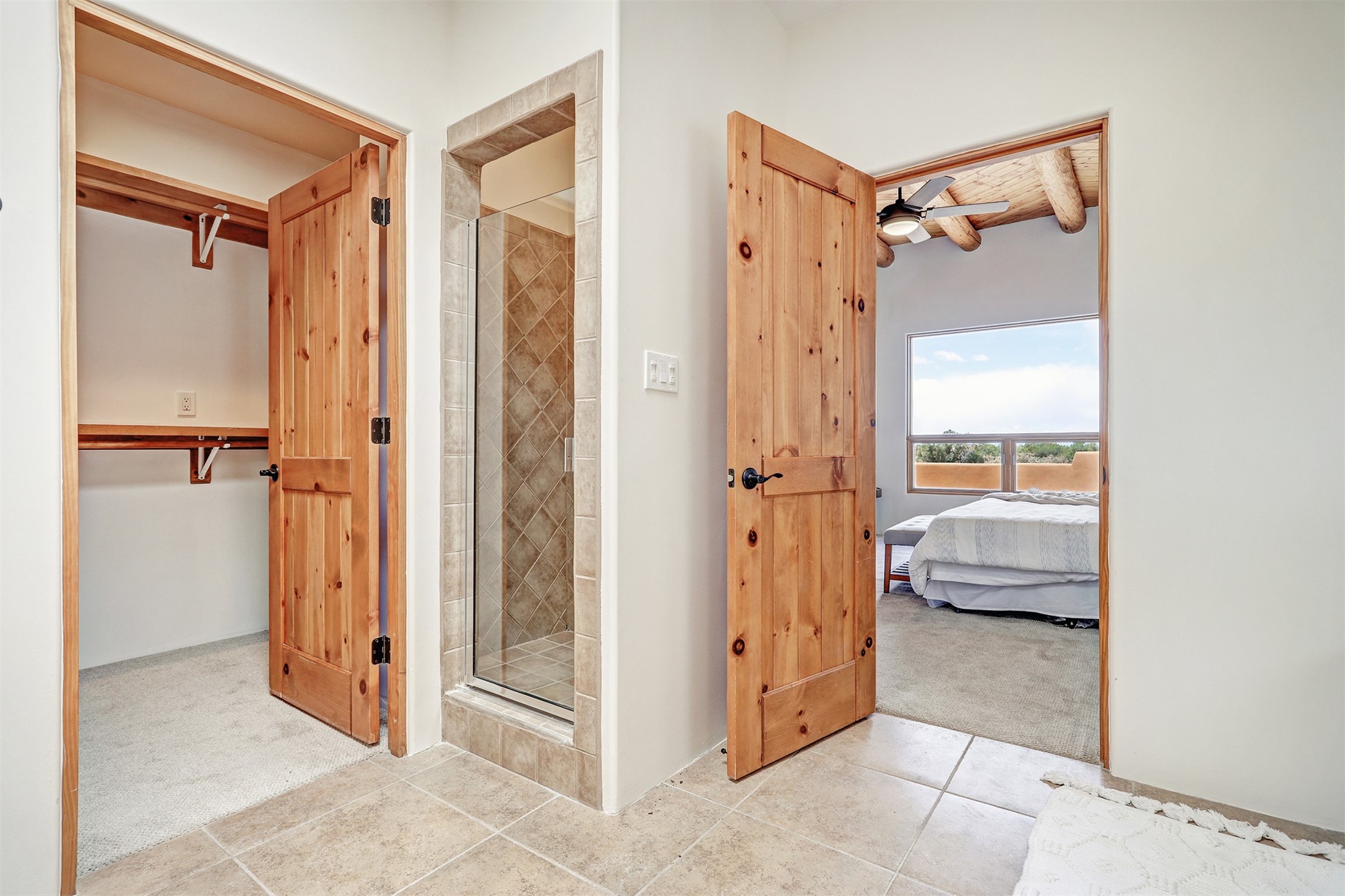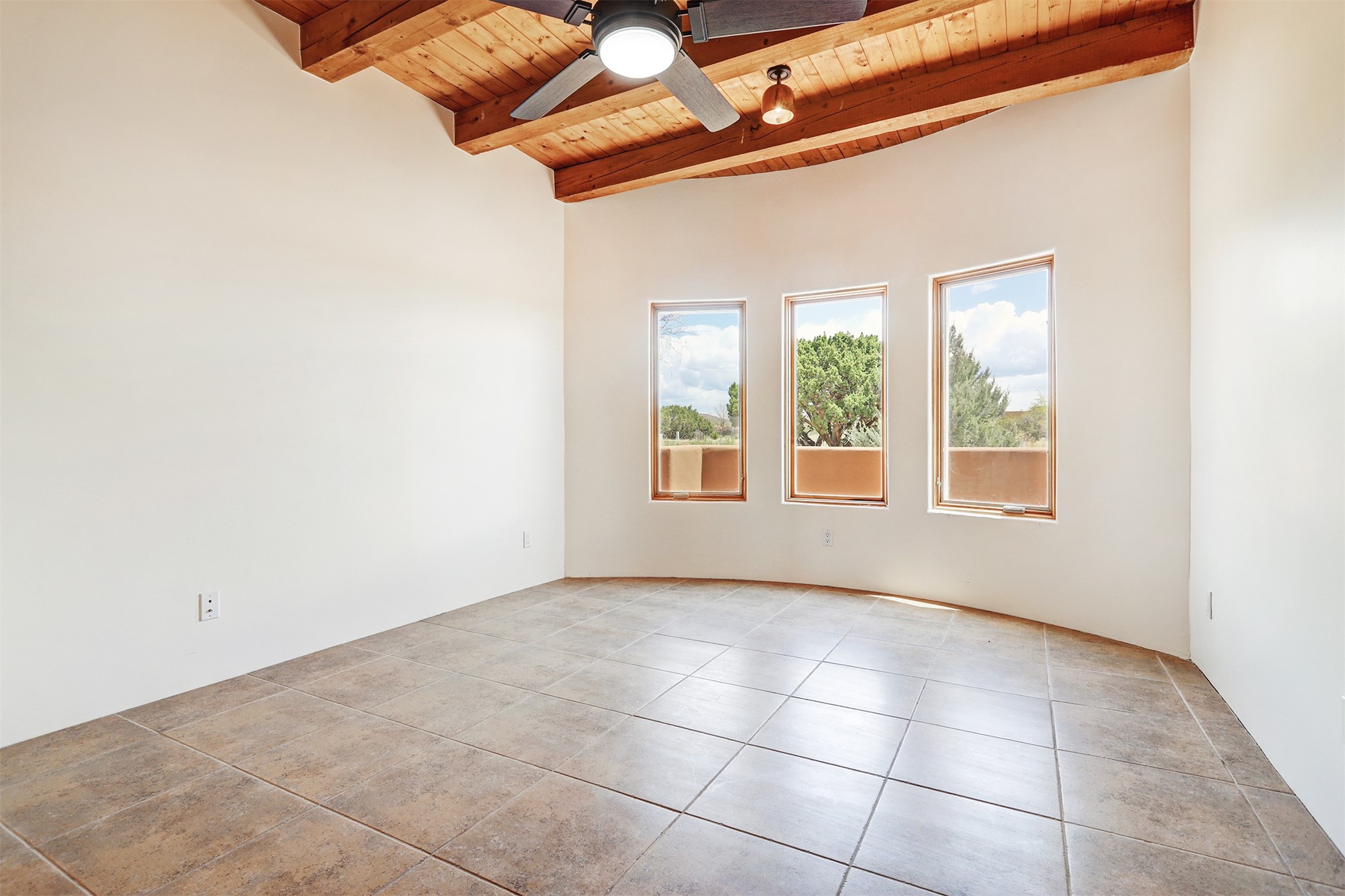 Welcome to this extraordinary residence in the highly desirable Eldorado, where Southwestern elegance meets modern comfort. Upon entering, you're greeted by soaring vaulted ceilings, exquisite tongue-and-groove woodwork, and beautiful vigas, setting the stage for this home's timeless design. The spacious living area, anchored by a traditional kiva fireplace, flows seamlessly into a chef-inspired kitchen. Featuring custom handmade tile backsplash, granite countertops, elegantly designed cabinetry, and brand-new stainless steel appliances, this kitchen is perfect for both everyday living and entertaining. The primary suite is a true retreat, offering a kiva fireplace, a luxurious ensuite, and extraordinary views of the surrounding mountains, providing the perfect sanctuary. Step outside to the private outdoor portal, adorned with tongue-and-groove ceilings and vigas, offering a peaceful setting for relaxation or entertaining. The front and back of the home boast breathtaking mountain views, adding an ever-changing, picturesque backdrop to daily life. This meticulously crafted home has been thoughtfully upgraded to offer a seamless blend of style and functionality. Located in the coveted Eldorado community, this home offers an ideal combination of privacy and convenience. Eldorado is known for its expansive open spaces, dark night skies, and a vibrant, close-knit community. Enjoy miles of walking, biking, and equestrian trails, along with a community center that features a pool, tennis and pickleball courts, and dog parks. Only a short drive to downtown Santa Fe, you'll have access to the city's galleries, fine dining, and cultural events, offering the best of both worlds. This extraordinary home presents a rare opportunity to live in a serene, natural environment while remaining close to the rich culture and amenities of Santa Fe. Schedule your private showing today to experience this exceptional property in person.
