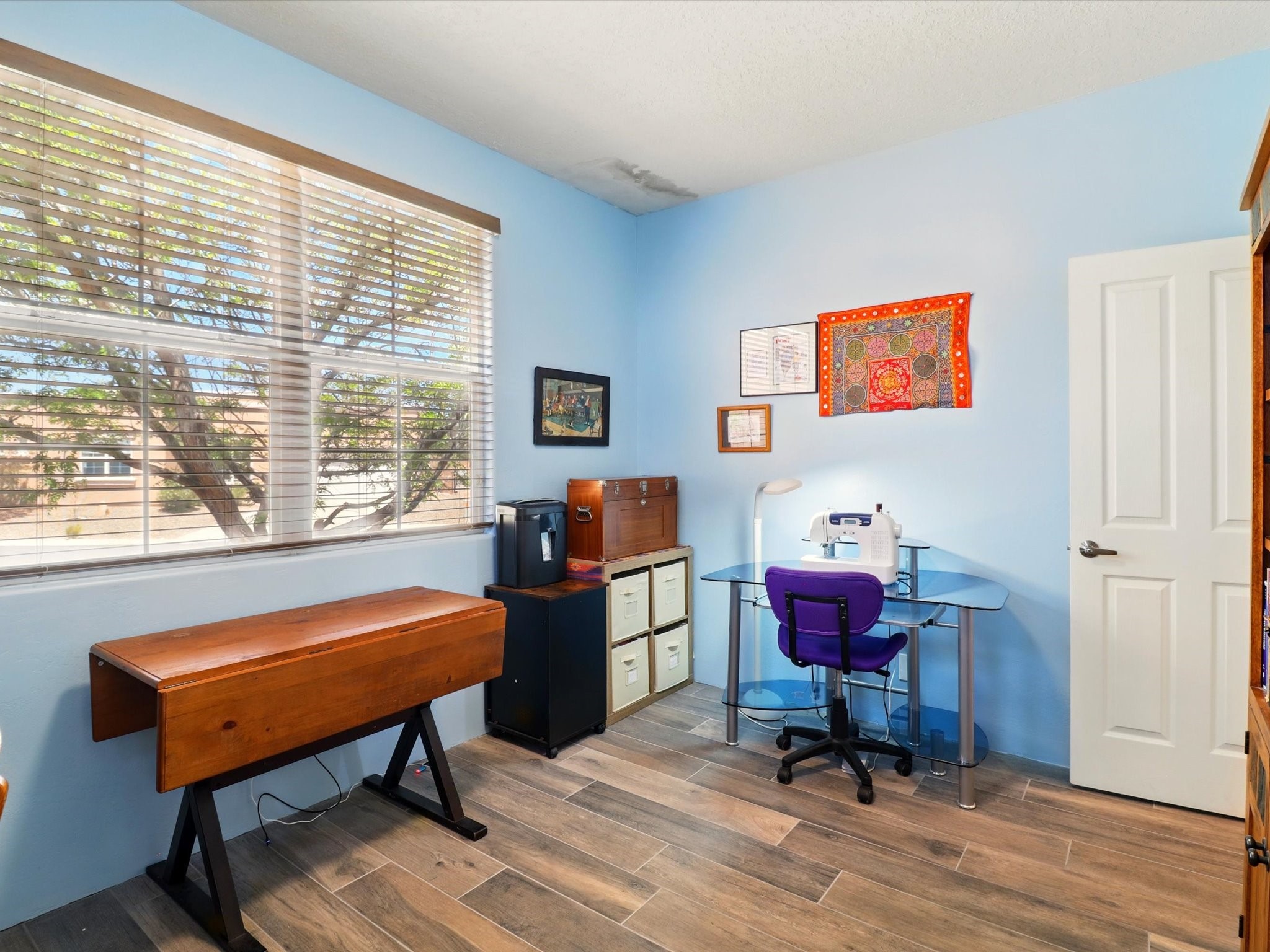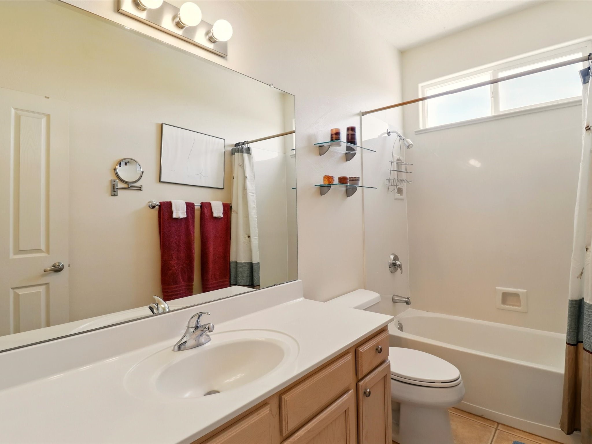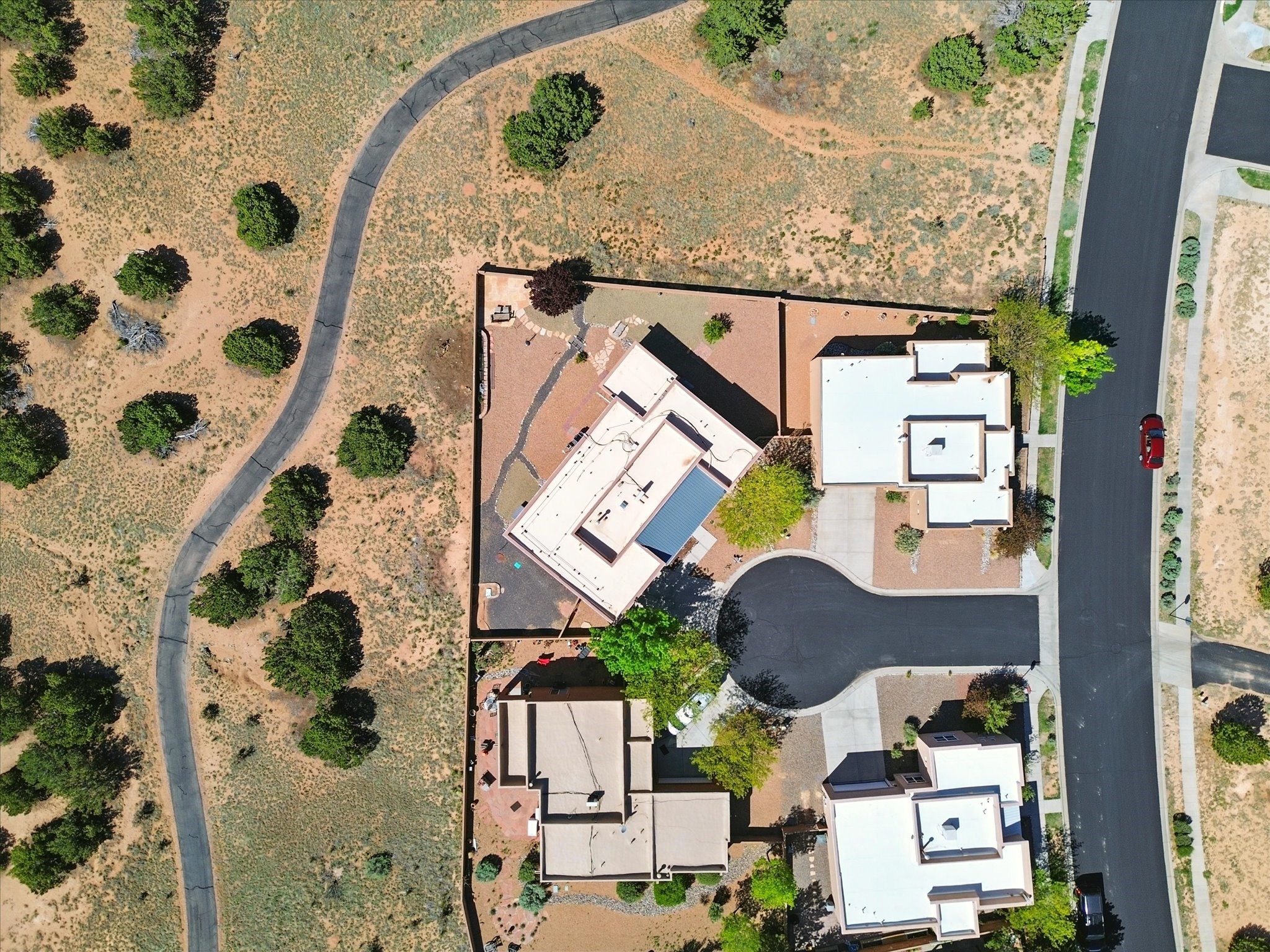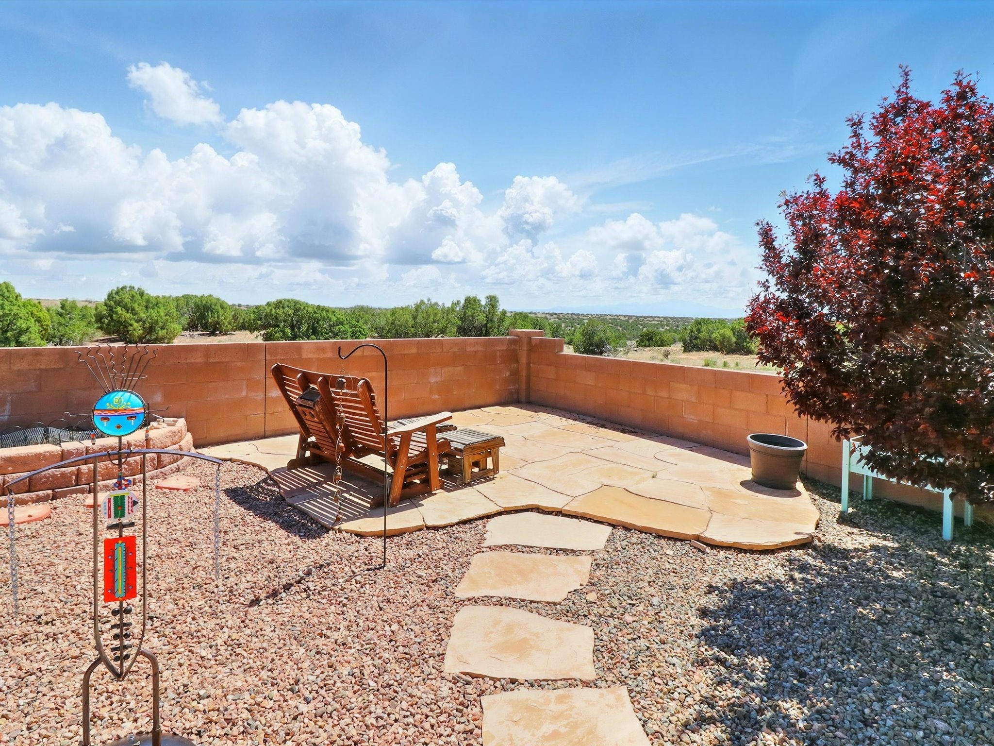 Welcome to one of the rare gems in the sought-after Rancho Viejo community--4 SierraGrande, where spectacular views and peaceful living come together. Nestled in a quiet4-home cul-de-sac, this beautifully maintained 3-bedroom, 2-bath home offerspanoramic vistas of the Sandia, Ortiz, and Jemez Mountains, with miles of open spaceto the south--protected HOA land that will never be developed. One of the standoutfeatures is the three-year-old sunroom, offering a sweeping, unobstructed view to thesouth--the perfect spot to enjoy vibrant sunsets and tranquil mornings year-round. This2,090 sqft Wild Iris model is filled with natural light and features a bright open-conceptlayout that seamlessly connects the kitchen, dining, and living areas. The primary suiteis tucked away for privacy and includes a spacious walk-in closet, double-sink vanity,and enclosed shower. Two additional guest bedrooms and a full bath are located on theopposite side of the home. Enjoy peace of mind with recent upgrades including a twoyear old boiler, instant water heater, mini-split systems, whole-house tile flooring, a fullyrenovated kitchen with updated cabinets, quartz countertops, updated appliances andlights, fresh interior paint, and new front-facing blinds--all completed within the lastthree years. Step outside to a spacious fenced backyard with a patio, ideal forgardening or relaxing while taking in the expansive, southwesterly views. With radiantheating, ductless air conditioning , and no steps throughout, this energy-efficient homeoffers year-round comfort and ease of living. Homes with this level of care, comfort, anduninterrupted natural beauty are a rare find--don't miss your chance to call this onehome.