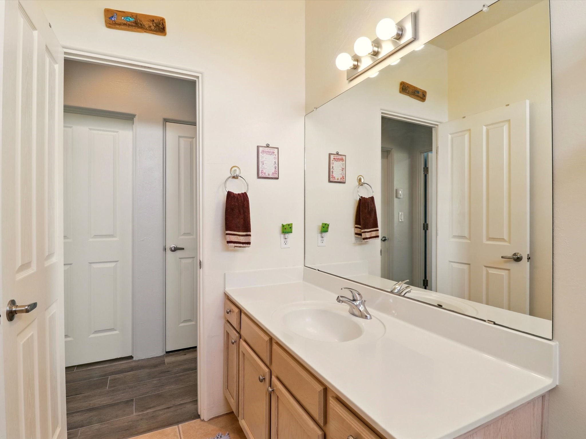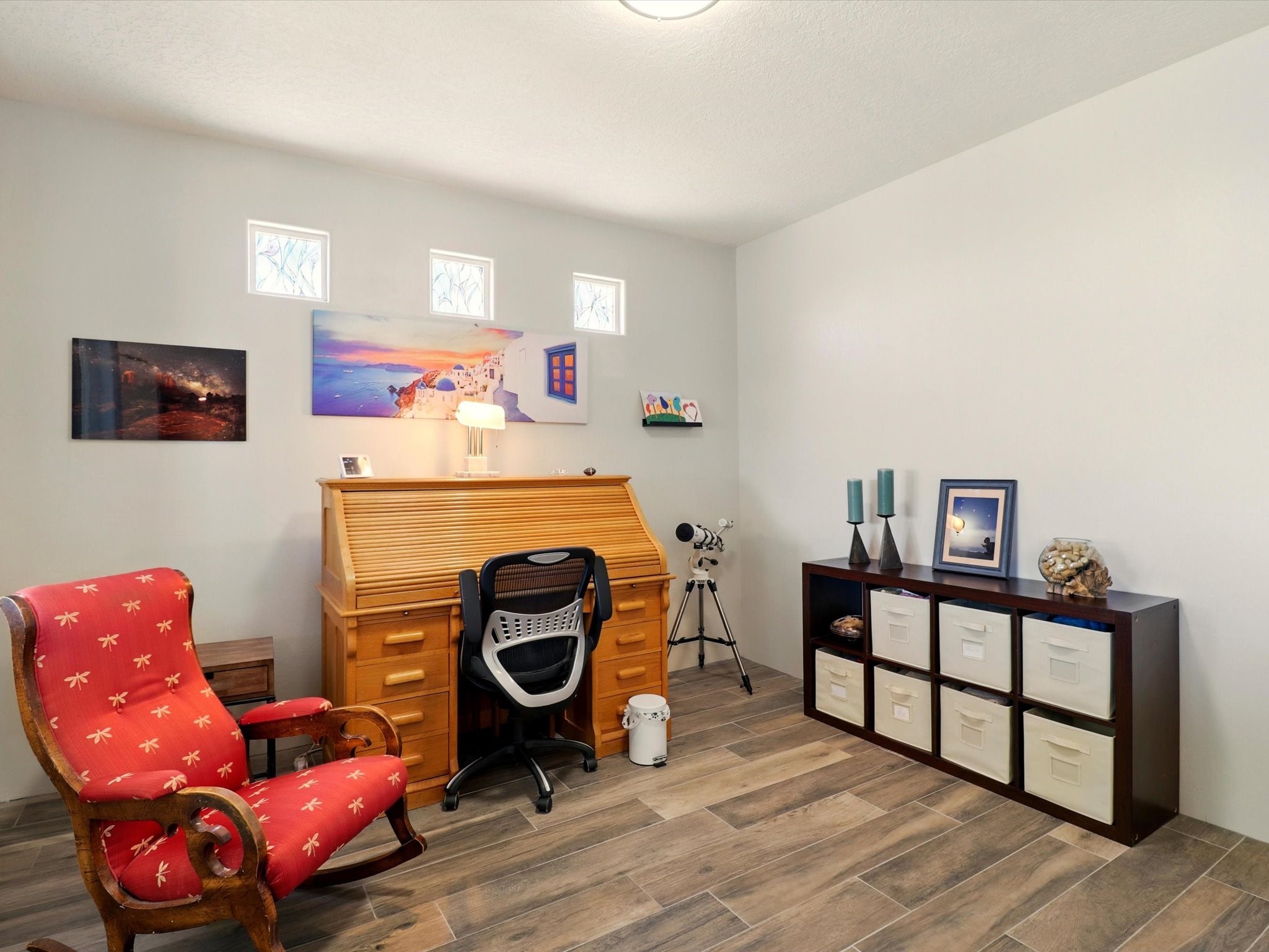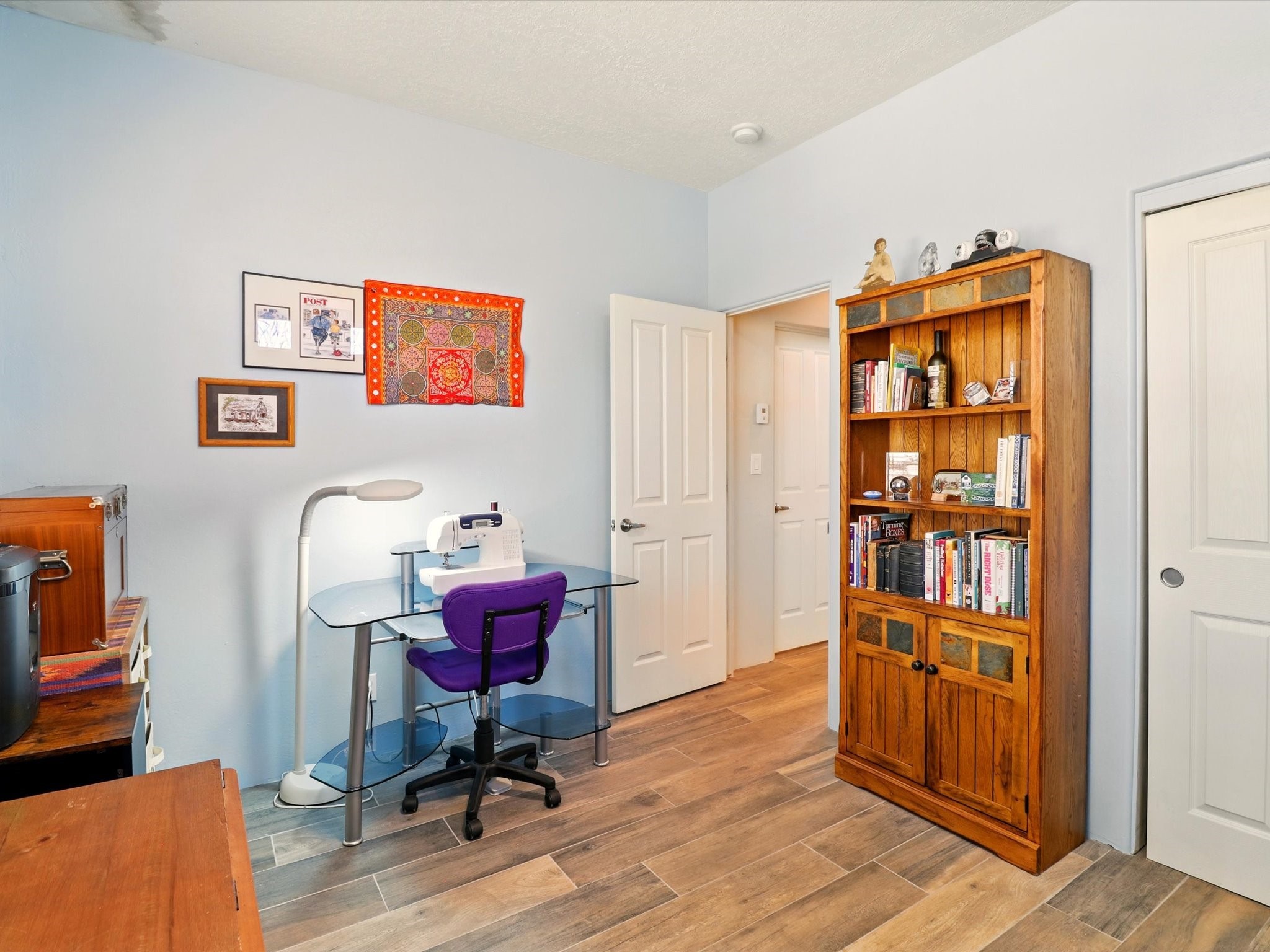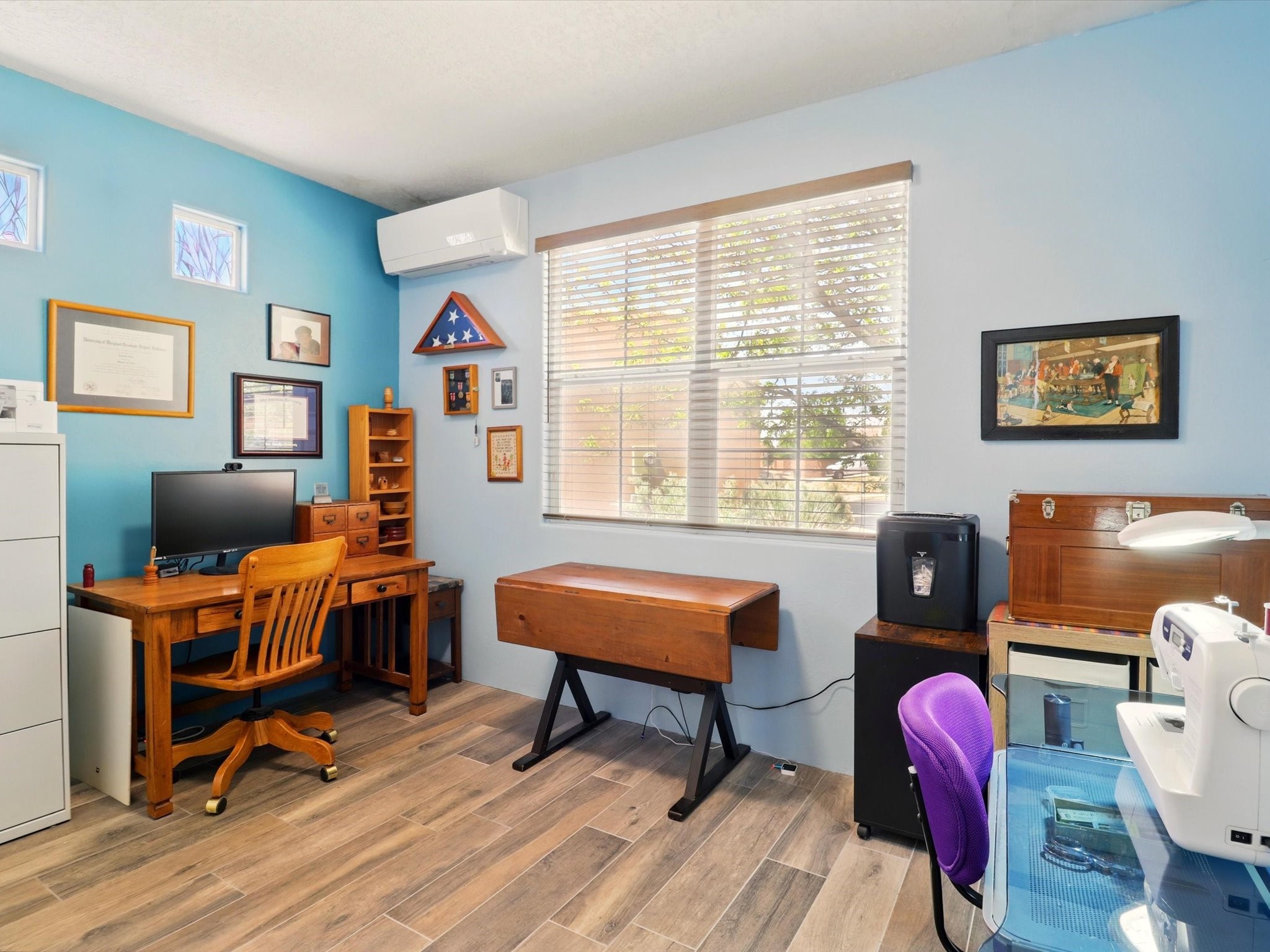 Welcome to one of the rare gems in the sought-after Rancho Viejo community--4 SierraGrande, where spectacular views and peaceful living come together. Nestled in a quiet4-home cul-de-sac, this beautifully maintained 3-bedroom, 2-bath home offerspanoramic vistas of the Sandia, Ortiz, and Jemez Mountains, with miles of open spaceto the south--protected HOA land that will never be developed. One of the standoutfeatures is the three-year-old sunroom, offering a sweeping, unobstructed view to thesouth--the perfect spot to enjoy vibrant sunsets and tranquil mornings year-round. This2,090 sqft Wild Iris model is filled with natural light and features a bright open-conceptlayout that seamlessly connects the kitchen, dining, and living areas. The primary suiteis tucked away for privacy and includes a spacious walk-in closet, double-sink vanity,and enclosed shower. Two additional guest bedrooms and a full bath are located on theopposite side of the home. Enjoy peace of mind with recent upgrades including a twoyear old boiler, instant water heater, mini-split systems, whole-house tile flooring, a fullyrenovated kitchen with updated cabinets, quartz countertops, updated appliances andlights, fresh interior paint, and new front-facing blinds--all completed within the lastthree years. Step outside to a spacious fenced backyard with a patio, ideal forgardening or relaxing while taking in the expansive, southwesterly views. With radiantheating, ductless air conditioning , and no steps throughout, this energy-efficient homeoffers year-round comfort and ease of living. Homes with this level of care, comfort, anduninterrupted natural beauty are a rare find--don't miss your chance to call this onehome.
