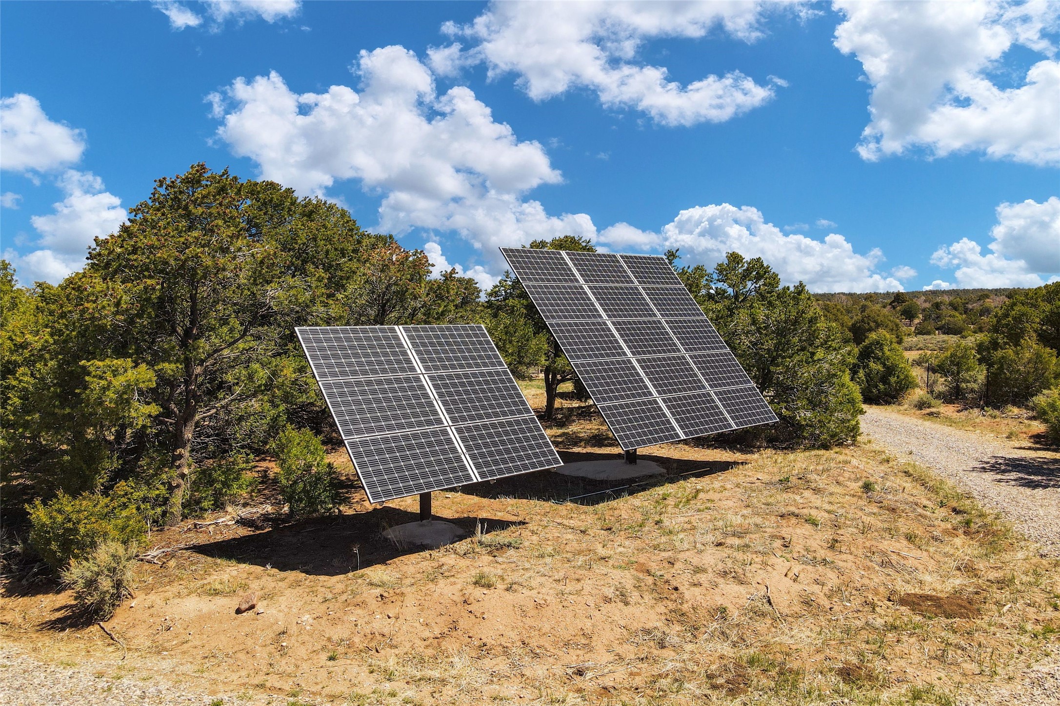 Beautiful and private hideaway in Truchas. 10.24 acres on County Road 77 (maintained by the county) and located northwest of the Truchas village, is situated on four separately surveyed parcels. Magnificent views of the Truchas Peaks to the east and the Jemez mountain range to the west. There are no covenants or restrictions on this property. The property includes Surface Water Rights and a private domestic well with a high end, off grid 1800 watt solar setup specifically for the well and includes 4 hydrants at various locations. An additional high end, off grid 4500 watt solar setup for electricity to a home. Electrical infrastructure in place to the RV pad (possible home site or cabin) and three additional locations. A new septic system sized to accommodate a 3 bedroom home. Drainage installed with culverts to prevent flooding/pooling and mud. The 240 sf cabin is sized to be a great workshop while you are building your home. There is a separate shed which houses all of the solar batteries and infrastructure for the solar system. The property is gated and fenced on three sides with 5 strand barb wire, heavy duty metal posts and T posts and on the fourth side with a two strand older hot wire fence setup. Access to the Carson National Forest and BLM public lands is a short hike. Fantastic opportunity to own a mountain retreat at 8000 feet elevation and experience the cooler summer days and nights. Close proximity to Sipapu, Pajarito, Santa Fe and Taos ski resorts for your winter time activity. Great property for the animal lover and outdoor enthusiast. Fantastic place to call home and raise your family.