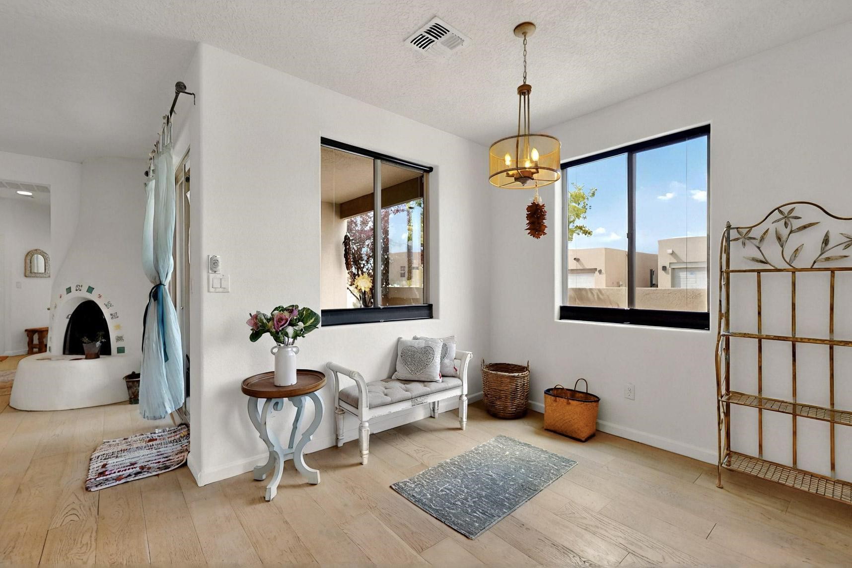 Charming Corner-Lot Gem with Mountain Views! Pride of ownership shines in this lovingly maintained single-owner home, nestled on a desirable corner lot with stunning mountain and sunset views. This 3-bedroom, 2-bathroom residence offers both comfort and style, featuring a finished 1-car attached garage and a beautifully landscaped walled courtyard for added privacy and curb appeal. The expanded driveway, enhanced with pavers, provides both improved parking and a polished appearance, while the courtyard wall has been finished in matching stucco for a cohesive look with the home. Step inside to find a bright, welcoming interior with abundant natural light and thoughtful upgrades throughout. The refreshed kitchen boasts stainless steel appliances, granite countertops, and tile flooring--perfect for both everyday living and entertaining. Relax by the cozy wood-burning kiva fireplace in the well-appointed living room. All bedrooms are outfitted with ceiling fans and 100% wool Berber carpet for a warm and luxurious feel. Enjoy outdoor living under the generously sized covered portal, ideal for dining al fresco or simply taking in the fresh air and views. The property has ash, aspen, and plum trees, adding natural beauty to every season. A Gaco Roof was completed in 2021. Don't miss this rare opportunity to own a well-cared-for home in a peaceful setting with timeless charm and modern touches!