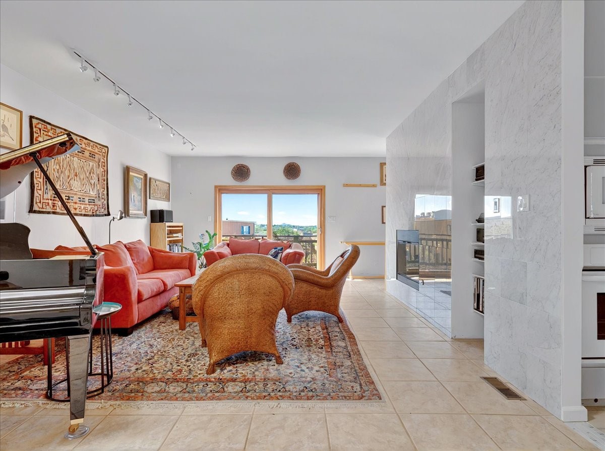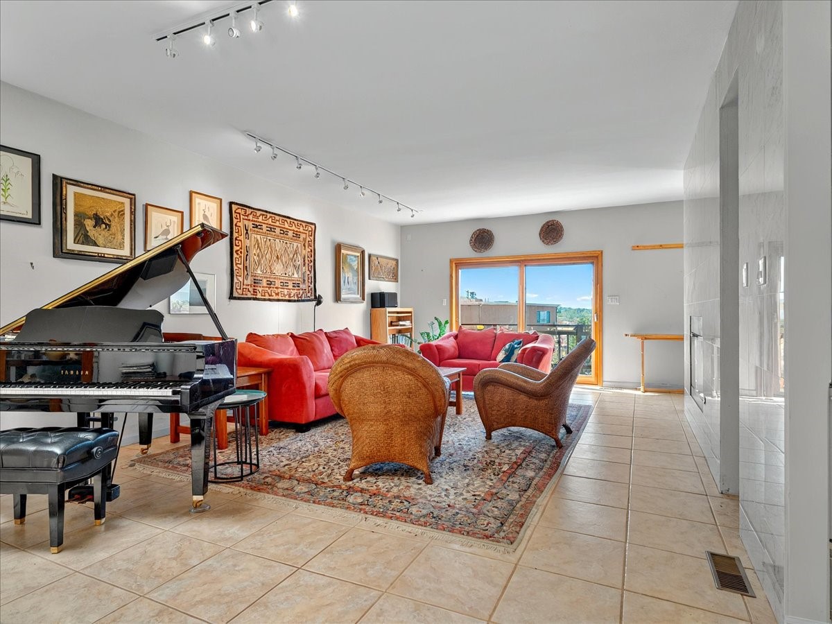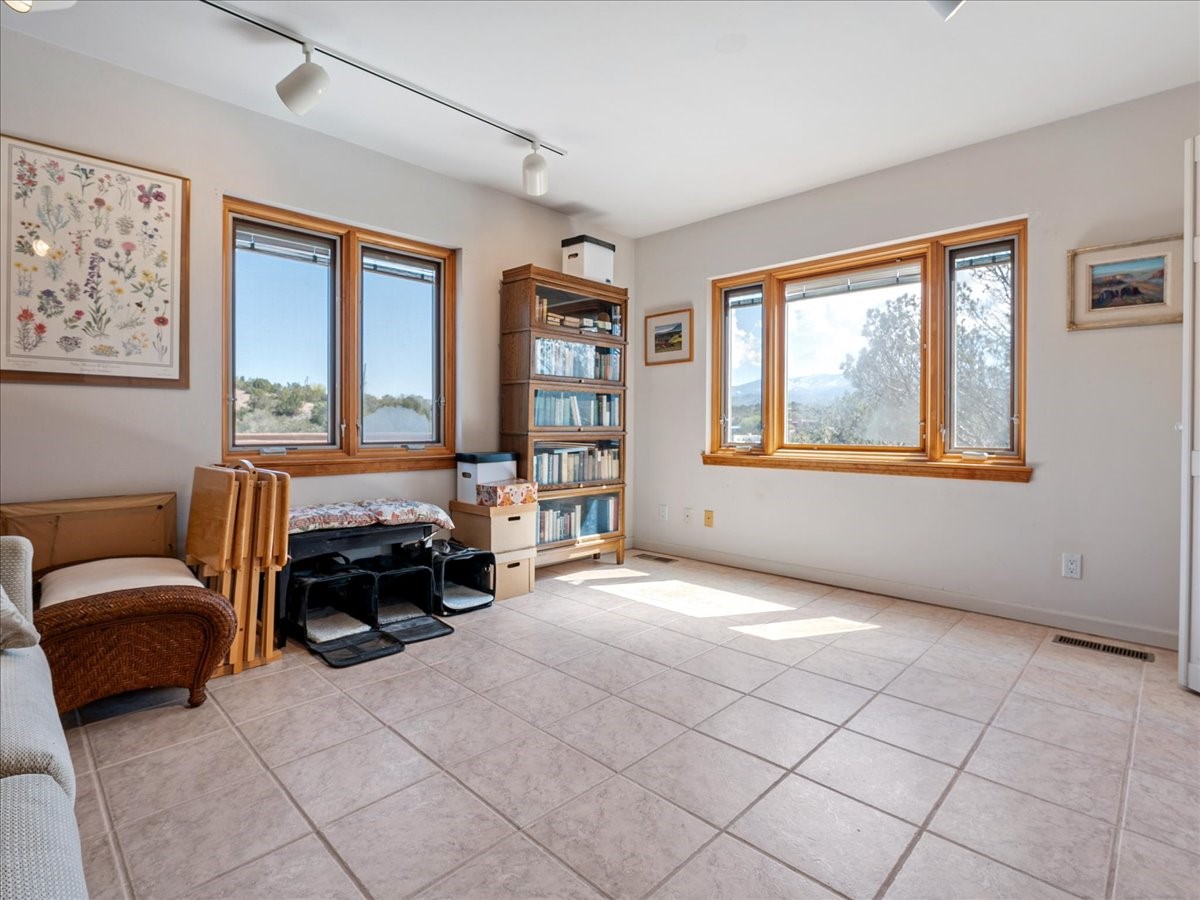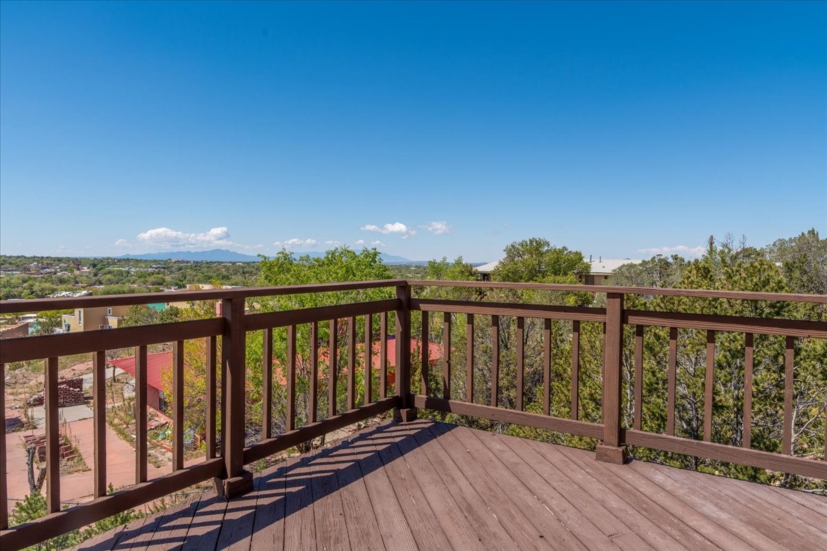 This lovely home is perched on a ridge overlooking Downtown Santa Fe. The viewing deck faces south bringing abundant light into the living space. With 3 Bedrooms/ 2 Baths on half an acre, the 1946 sf feels very open. The large 2 car garage is separate with paved access. Broker present for all showings