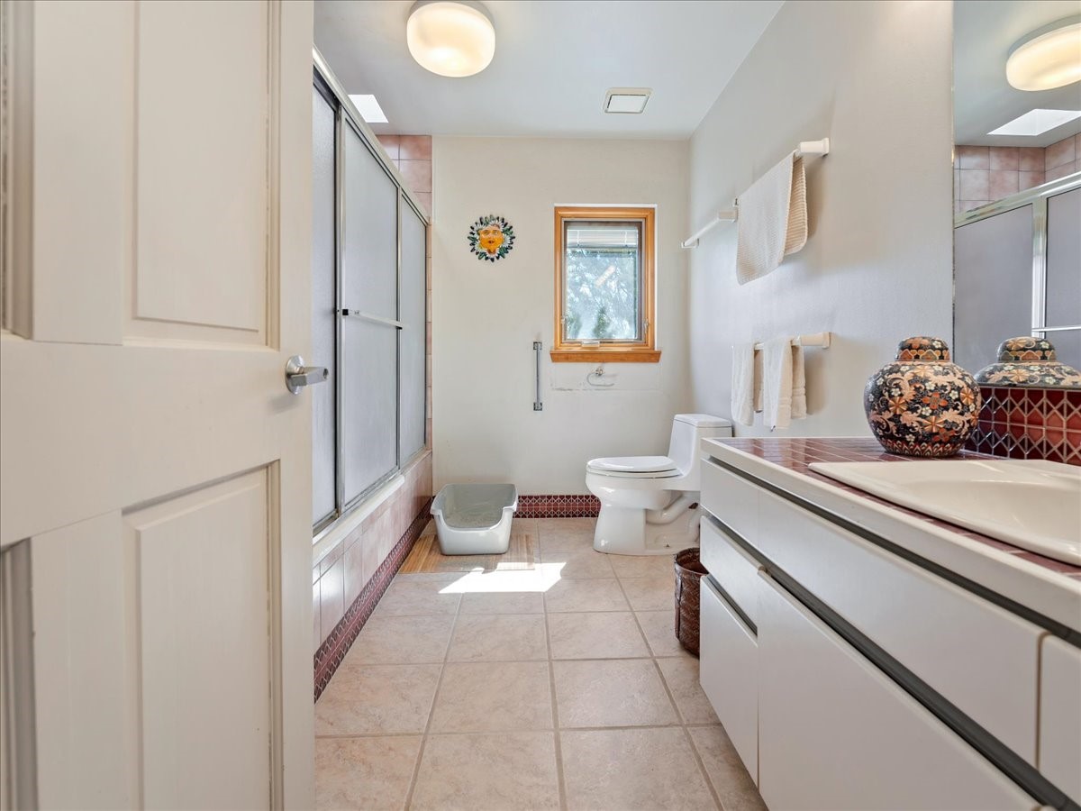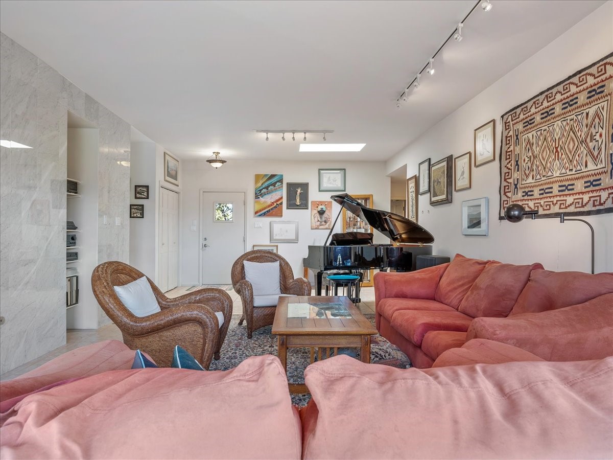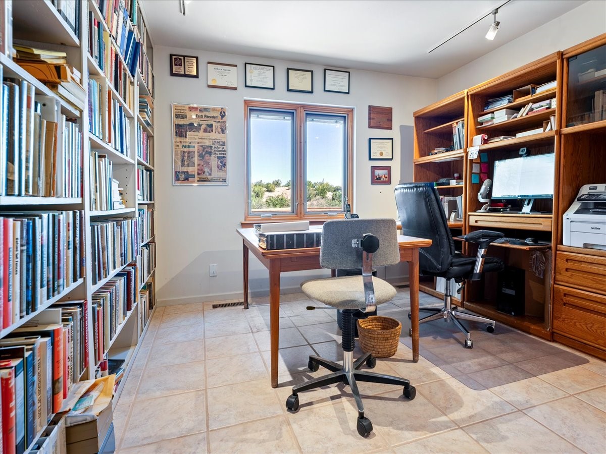 This lovely home is perched on a ridge overlooking Downtown Santa Fe. The viewing deck faces south bringing abundant light into the living space. With 3 Bedrooms/ 2 Baths on half an acre, the 1946 sf feels very open. The large 2 car garage is separate with paved access. Broker present for all showings