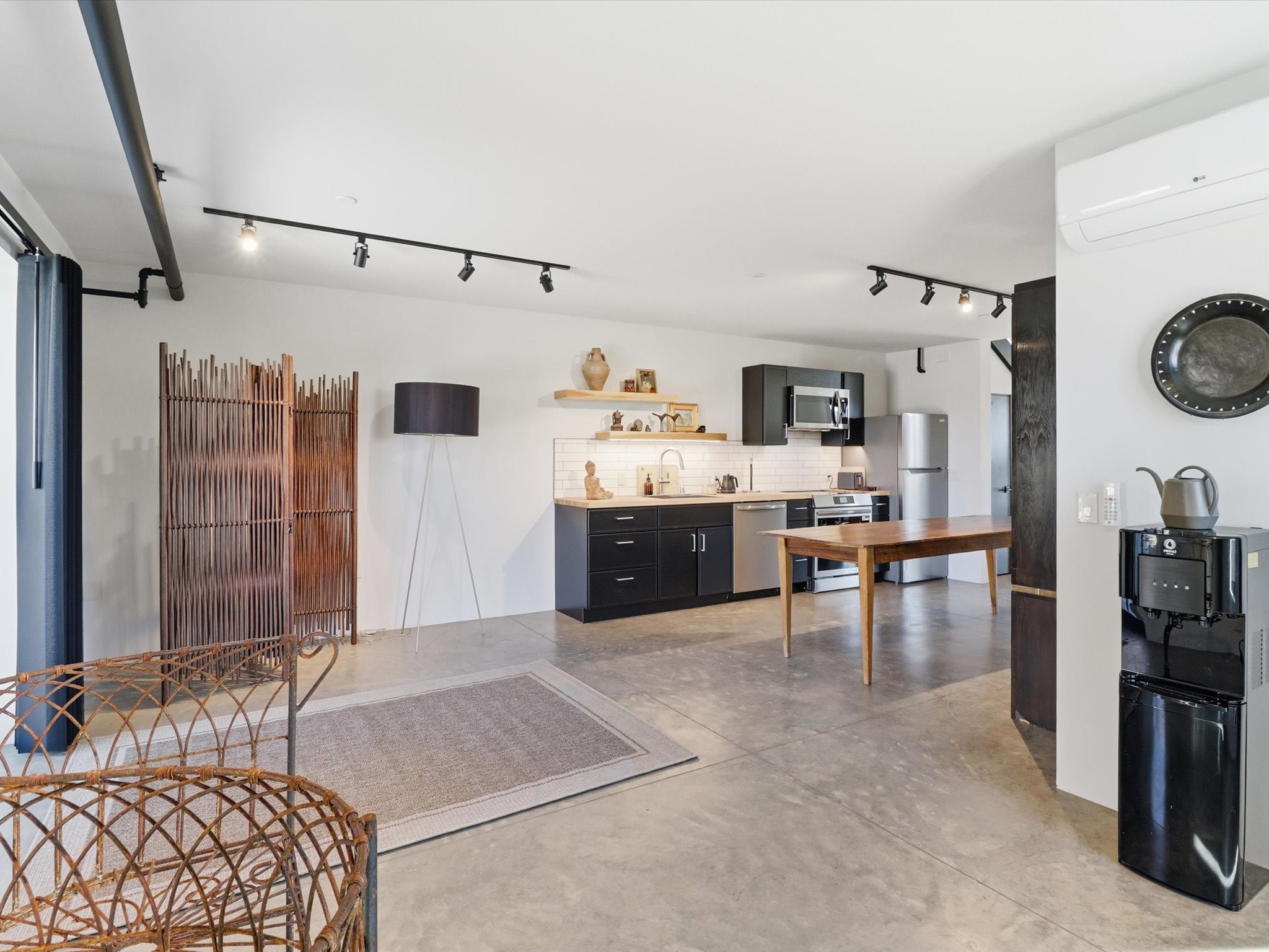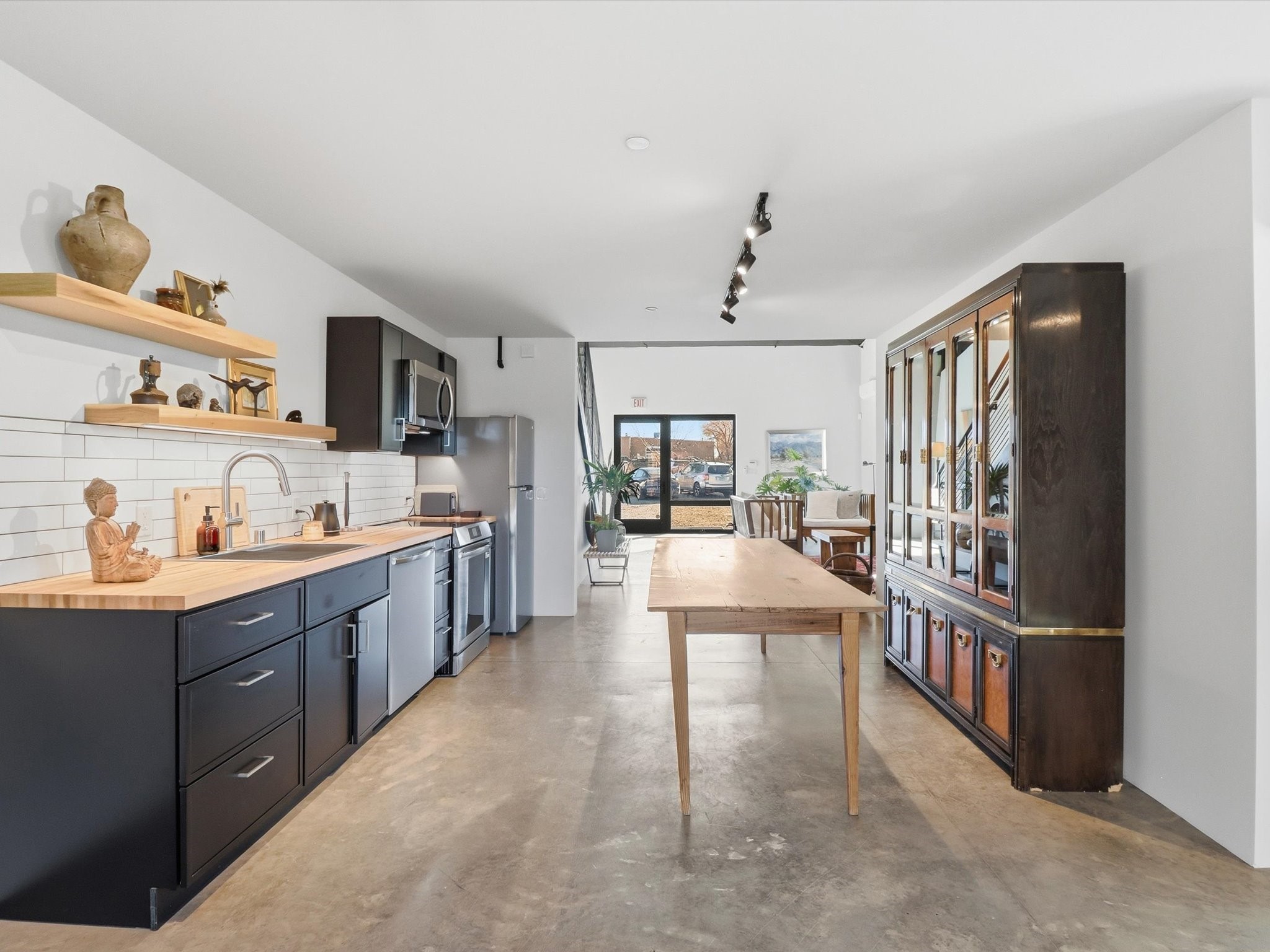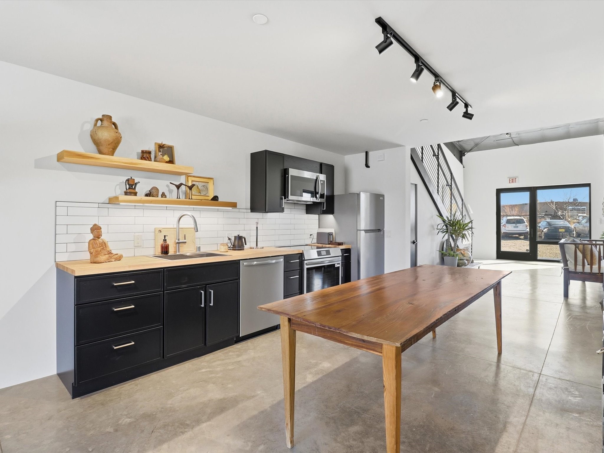 Brand-new industrial modern construction in Santa Fe's evolving Siler Rufina District, a dynamic creative and light-industrial corridor just off Cerrillos Road. Designed for professionals, artists, designers, architects, and creative retailers.Whether launching a new studio, opening a gallery, or growing a design-forward business, this space is crafted to elevate your work. Features include: Gallery-style interiors with high ceilings and abundant natural light. Flexible live/work layouts ideal for studios, showrooms, offices, or creative workspaces. Retail-ready storefronts adjacent to The Consignment Warehouse, a 5,000-square-foot art and furniture consignment gallery with a loyal following, Full kitchen and two full bathrooms plus washer/dryer. Ample parking with EV charging available. Easy access for clients, visitors, and deliveries.C-2 zoning supports a wide range of uses including retail, gallery, office, and live/work. The property is gated and fully secured.Lease terms: $3,400/month plus utilities. Internet included. No CAM fees.