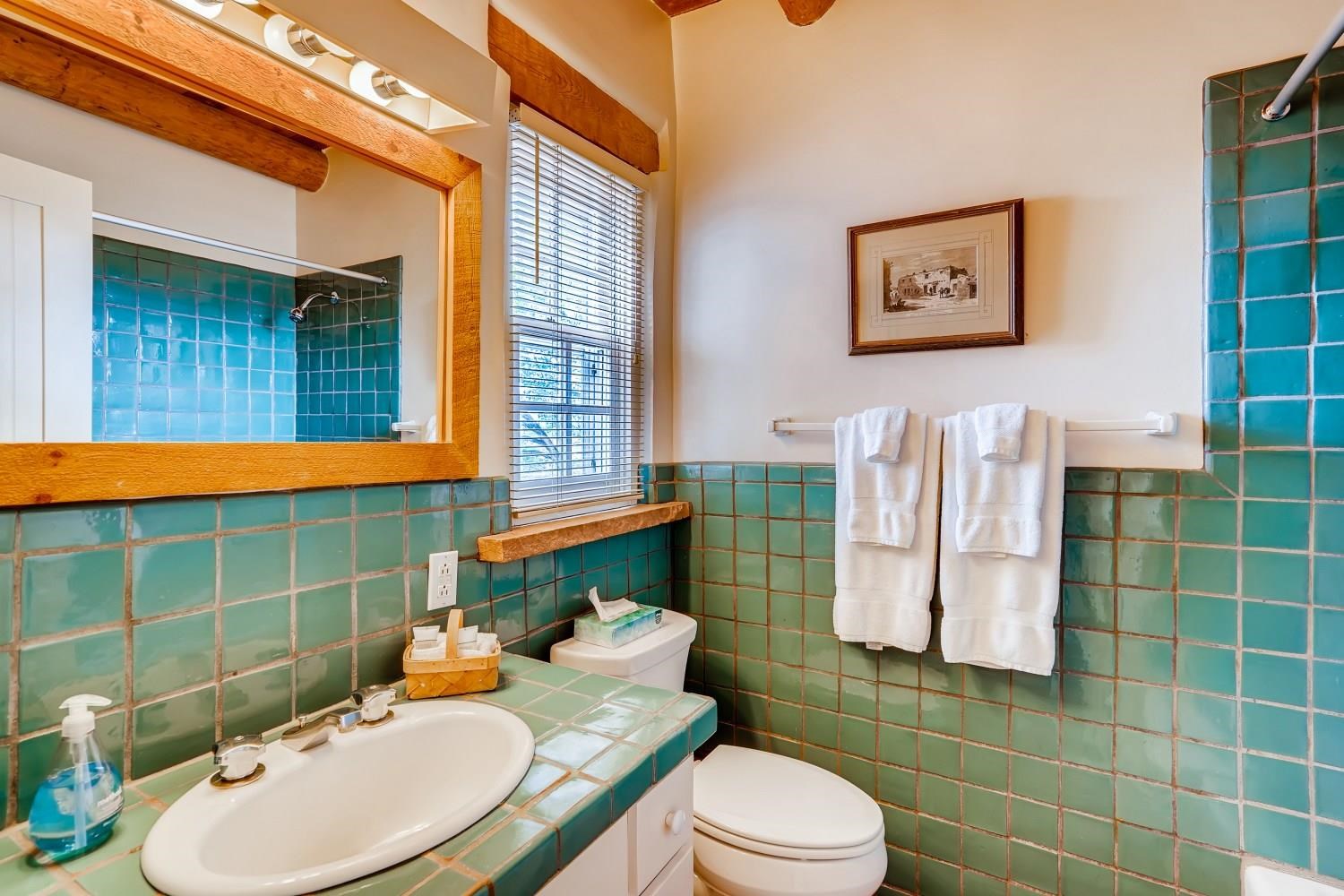 Charming condominium quarter ownership just a few blocks from the Plaza. Beautiful architectural details found in gracious old adobe home with vigas, kiva fireplaces, sculptural smooth plaster walls, hand adzed lintels above windows and doors. Tile kitchen and baths. All furnishings and maintenance, inside and out by Owners Association. Owners Associationmanagement operates established rental program.