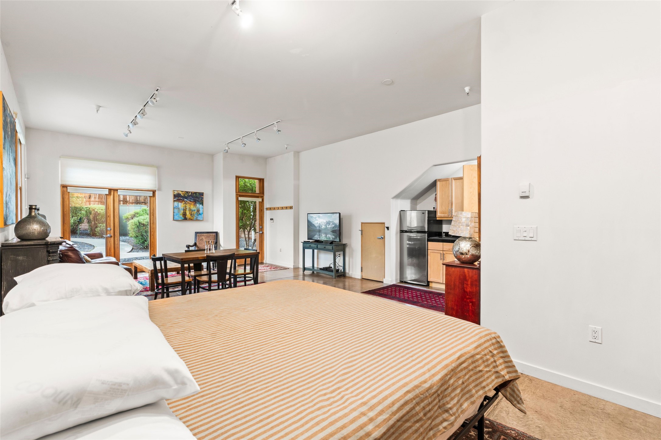 This light-filled Studio offers the perfect blend of comfort, convenience, and flexibility in the heart of Santa Fe. Whether you're looking for a chic pied--terre, a full-time residence, or a live/work setup, this unit delivers.Located in the desirable Marquez Place Lofts, this ground-floor condo enjoys abundant natural light, high ceilings, and an open-concept layout that feels both spacious and modern. Just minutes from the Plaza, Railyard, Whole Foods, Trader Joe's, and some of Santa Fe's favorite local spots, you'll enjoy a walkable lifestyle in a vibrant, centrally located community. Professionally maintained with beautifully landscaped common areas, this property also makes a smart lock-and-leave, rental investment, or creative workspace. Experience the best of Santa Fe living in this stylish and versatile condo.