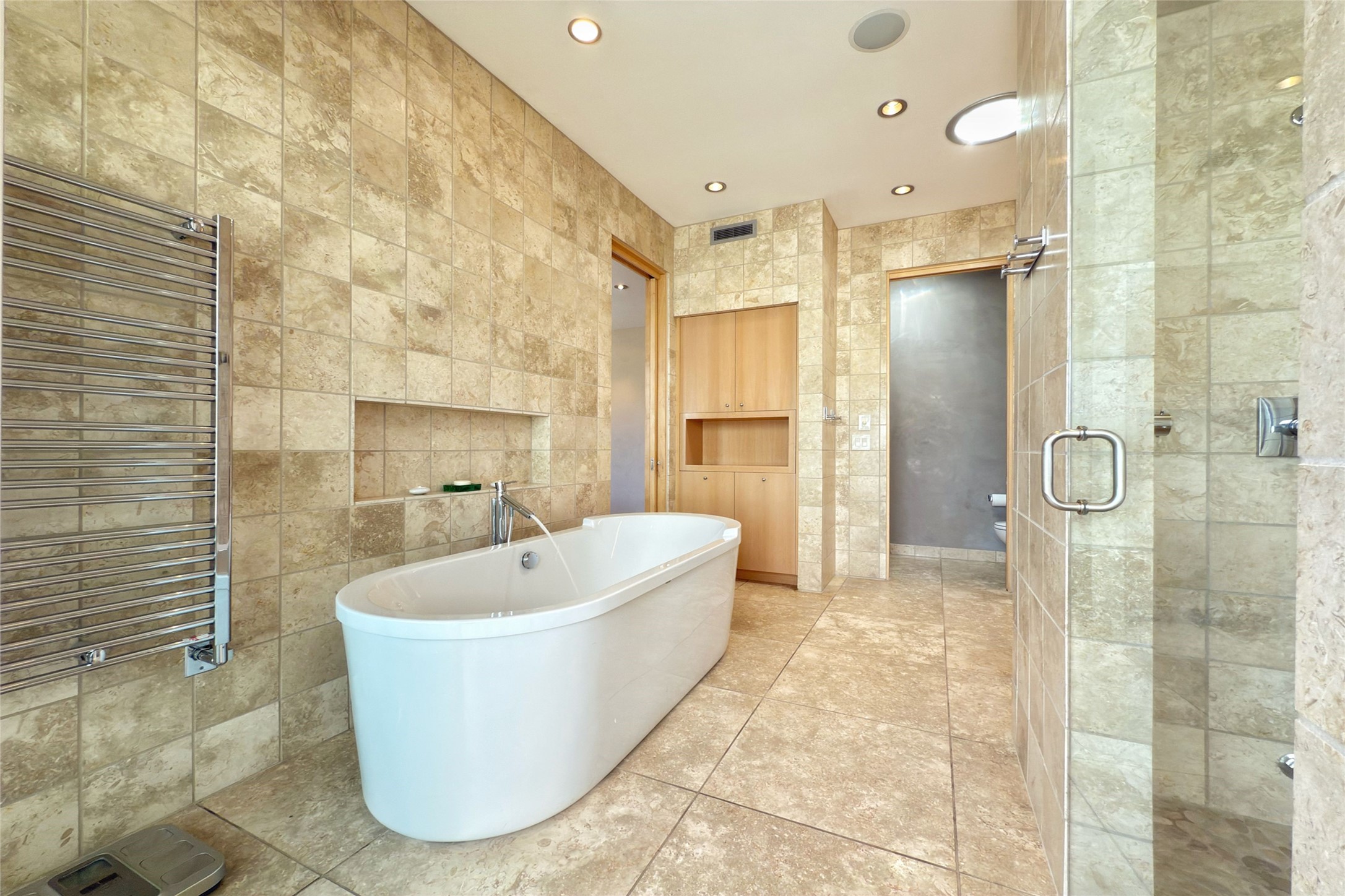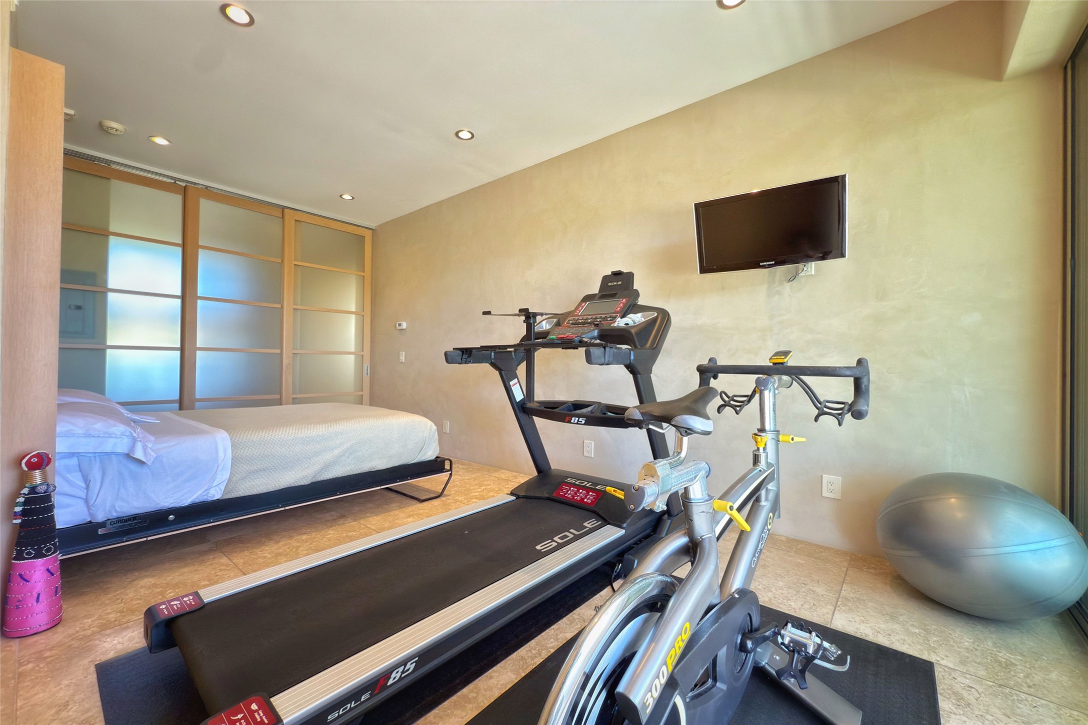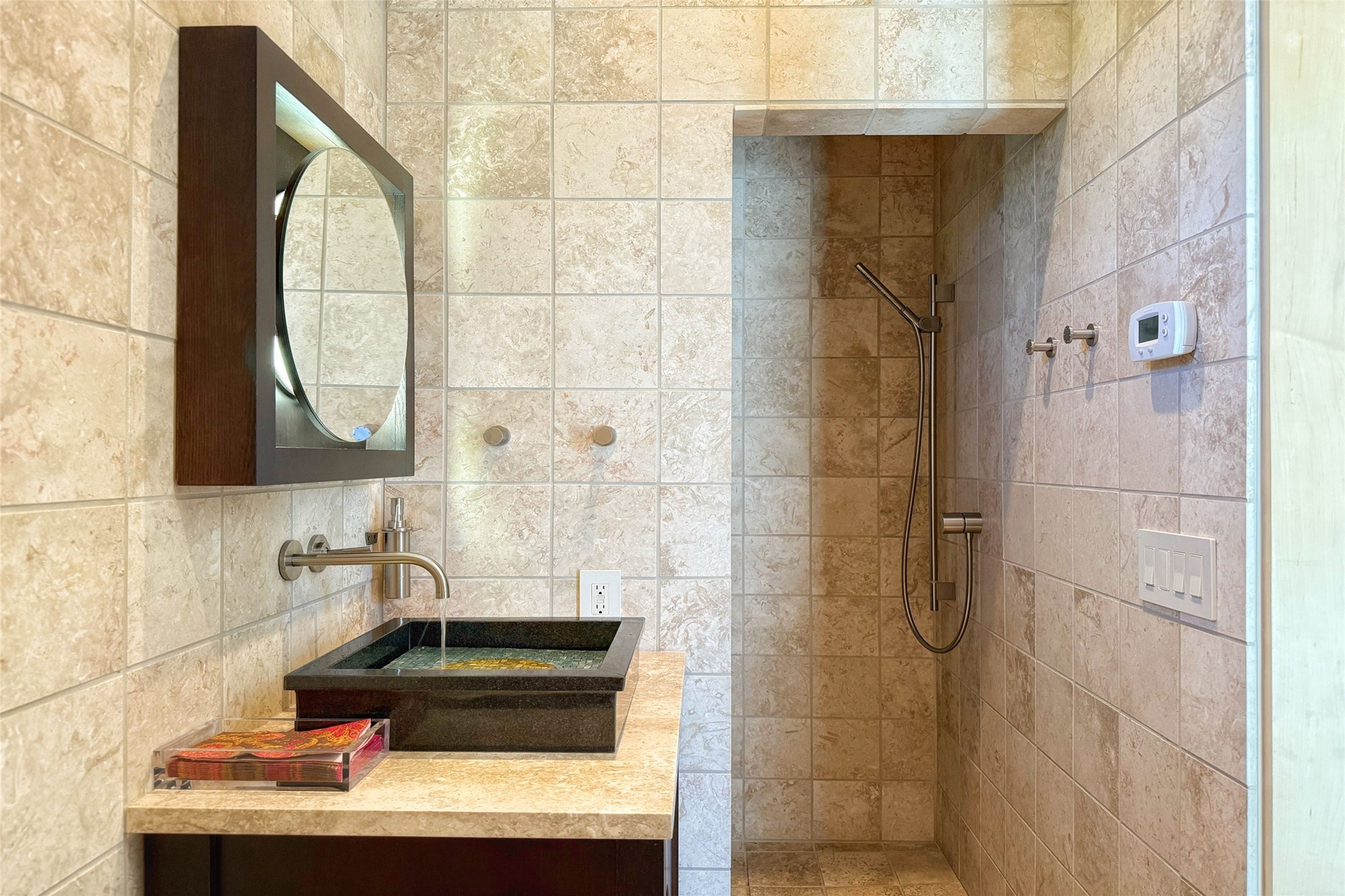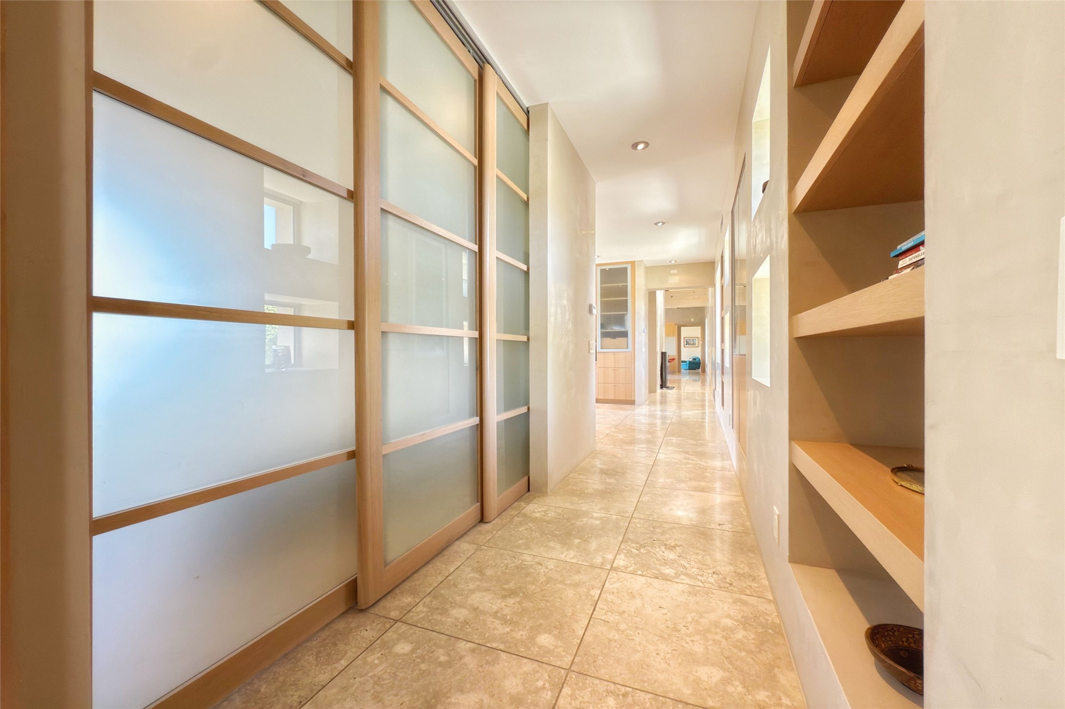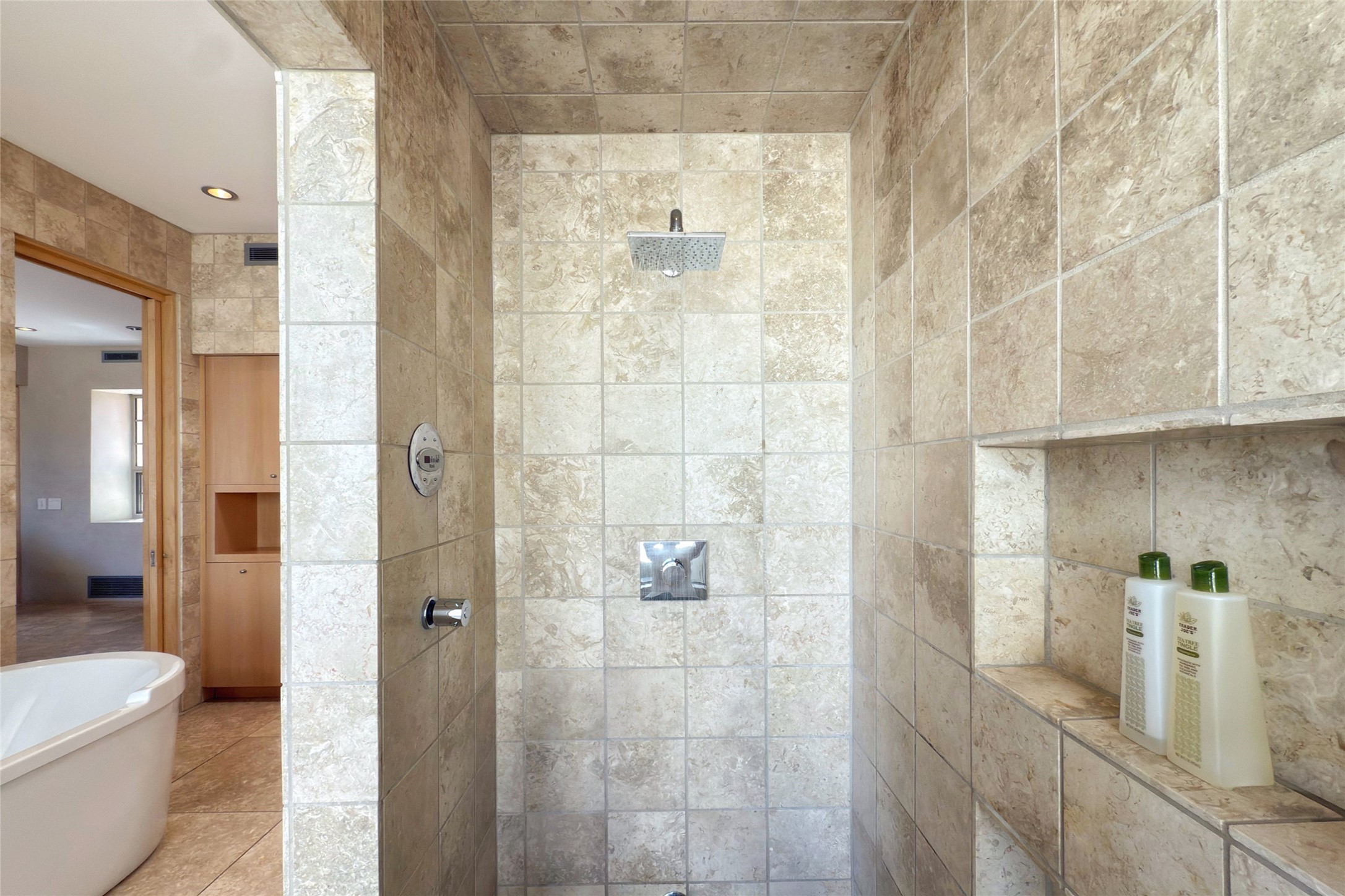Spectacular and mesmerizing views of the Sangre de Cristo Mountains define this approximate 3,150 sq ft single-level contemporary home atop Monte Sereno, just six minutes from the Plaza. Designed to maximize views from every room, the home features soaring 12-foot ceilings in the great room and kitchen, expansive floor-to-ceiling windows, and no interior steps. Jerusalem limestone flooring runs throughout, complemented by artisan plaster walls and exposed woodbeams. The gourmet kitchen is outfitted with top-of-the-line Thermador and Miele appliances, custom cabinetry, and a large island workspace. A versatile flex room with a built-in Murphy bed serves as an ideal overflow bedroom. Additional highlights include an entryway water feature, radiant floor heating, forced-air HVAC with CleanEffects air filtration, a Lutron lighting system, solar thermal and PV panels, whole-house water filtration with reverse osmosis at thekitchen sink, and a new roof. The 1.58-acre property offers privacy, direct access to hiking trails, and a circular driveway with parking for six or more vehicles.