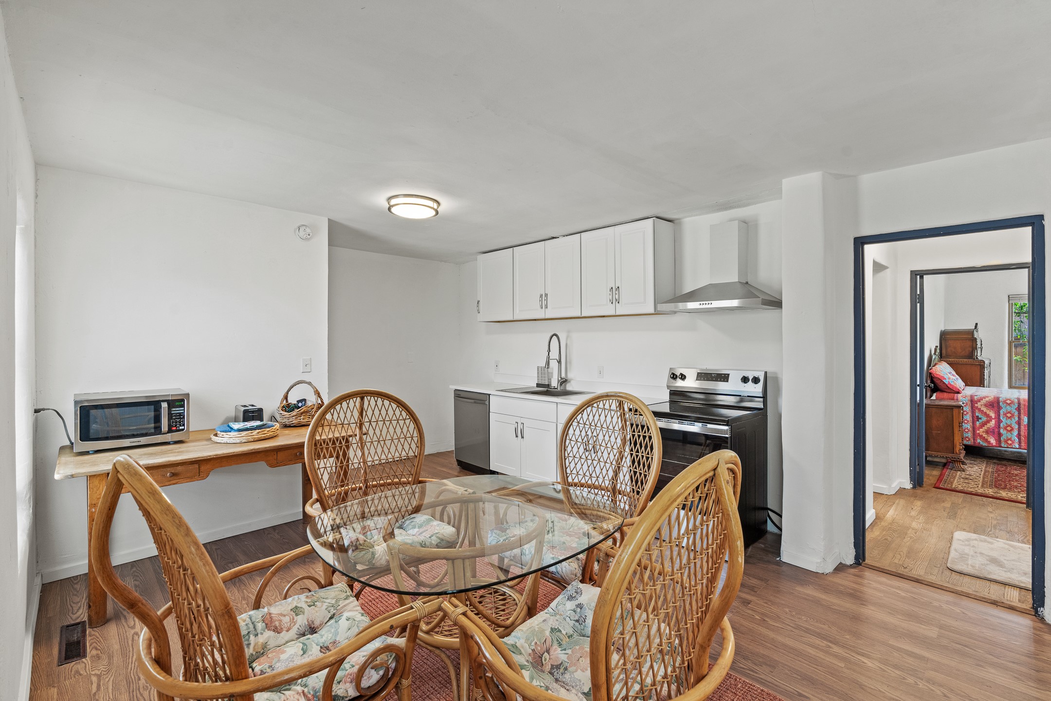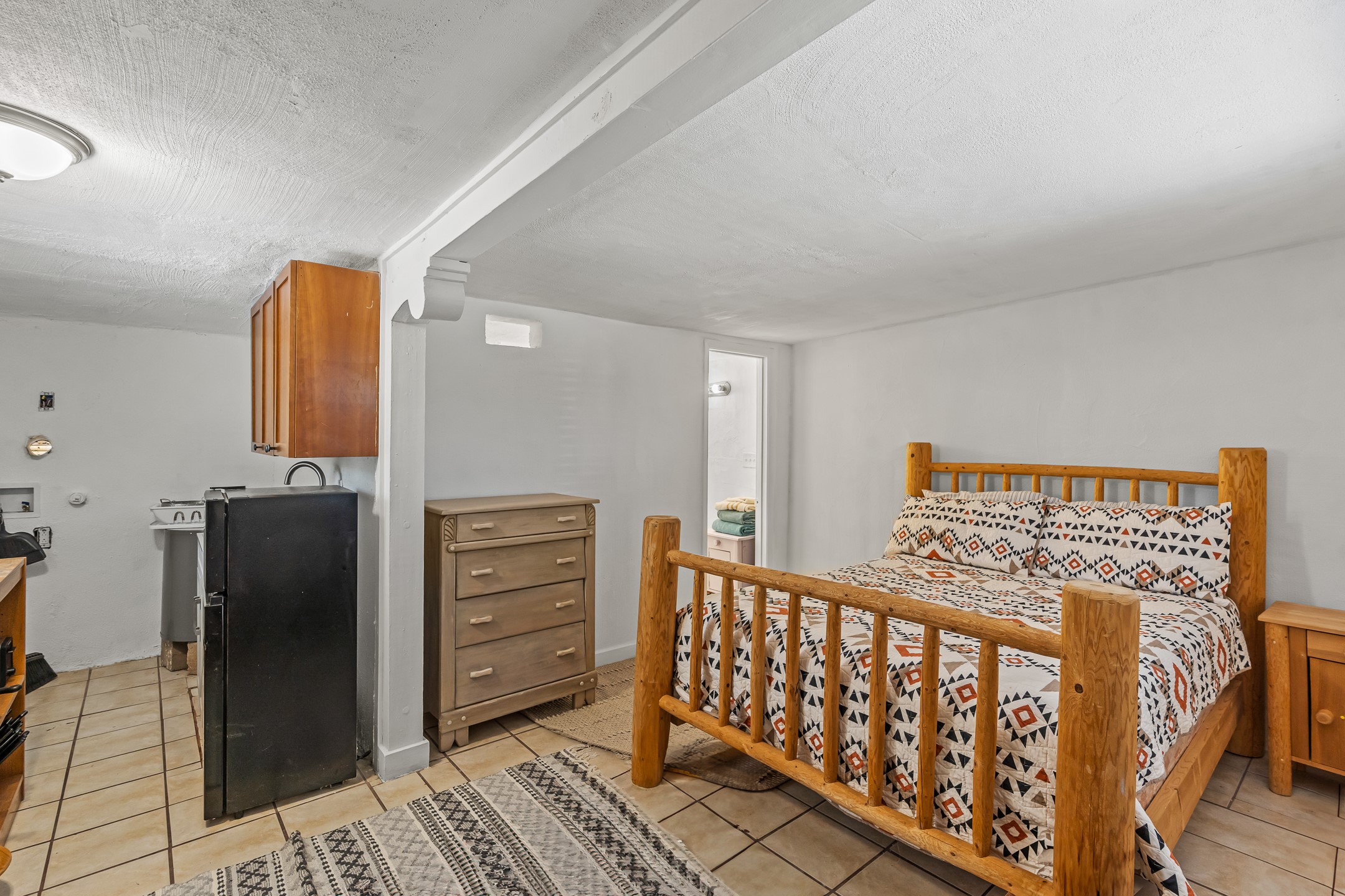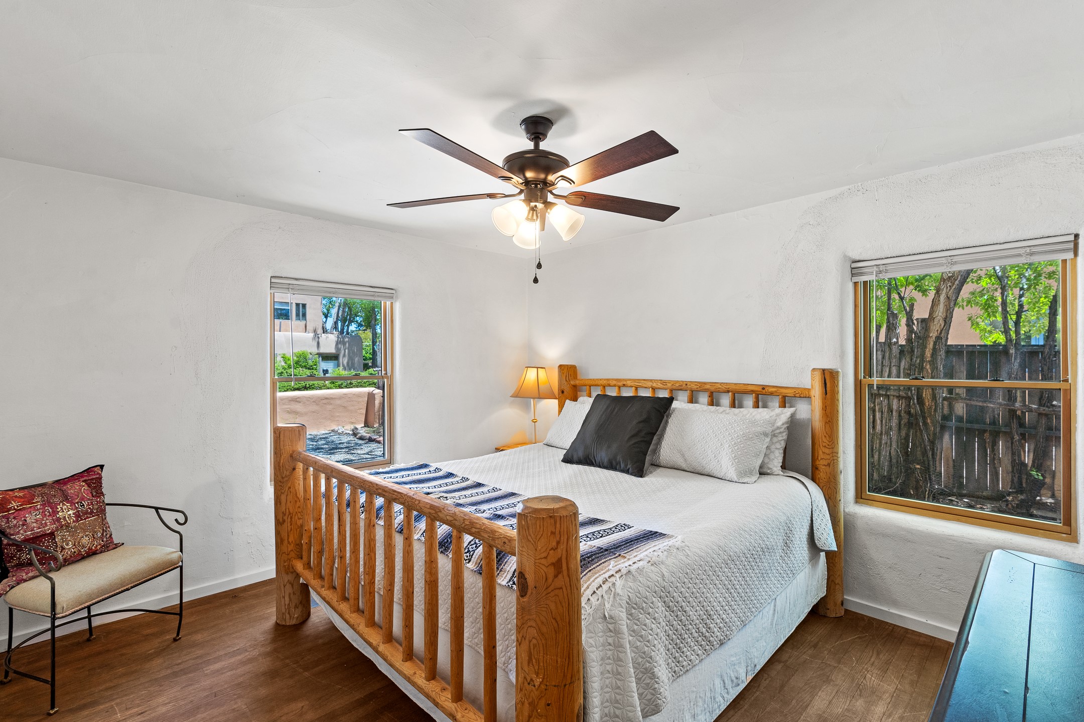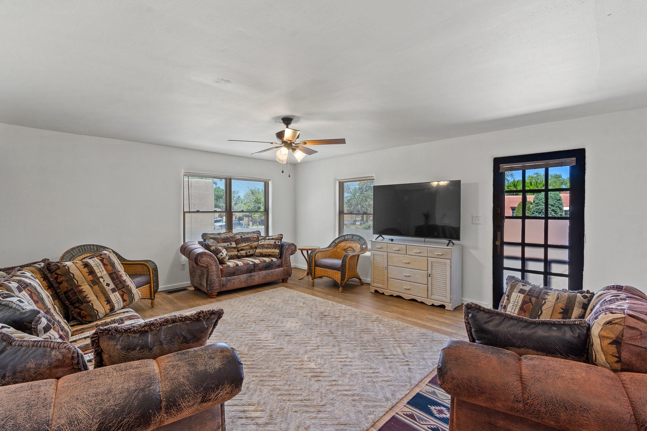 Situated on a spacious, fully fenced lot, this classic Northern New Mexico adobe offers charm, flexibility, and strong income potential. The character-rich main house features wood floors, artisan details, and a cozy fireplace, while a separate guest house--eligible for short-term rental--provides immediate income opportunity. Recent updates include refreshed bathrooms, lighting, appliances, and interior paint. With no historic restrictions, favorable zoning, and ample off-street parking, this is a rare investment or live/work opportunity in a sought-after Santa Fe location.