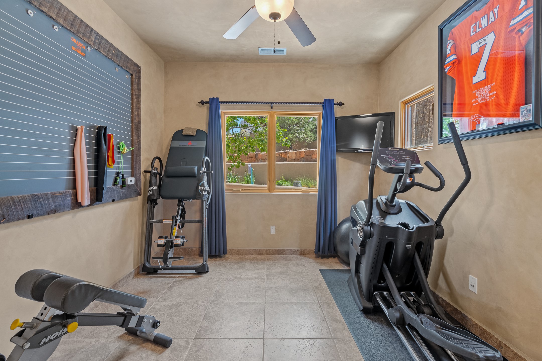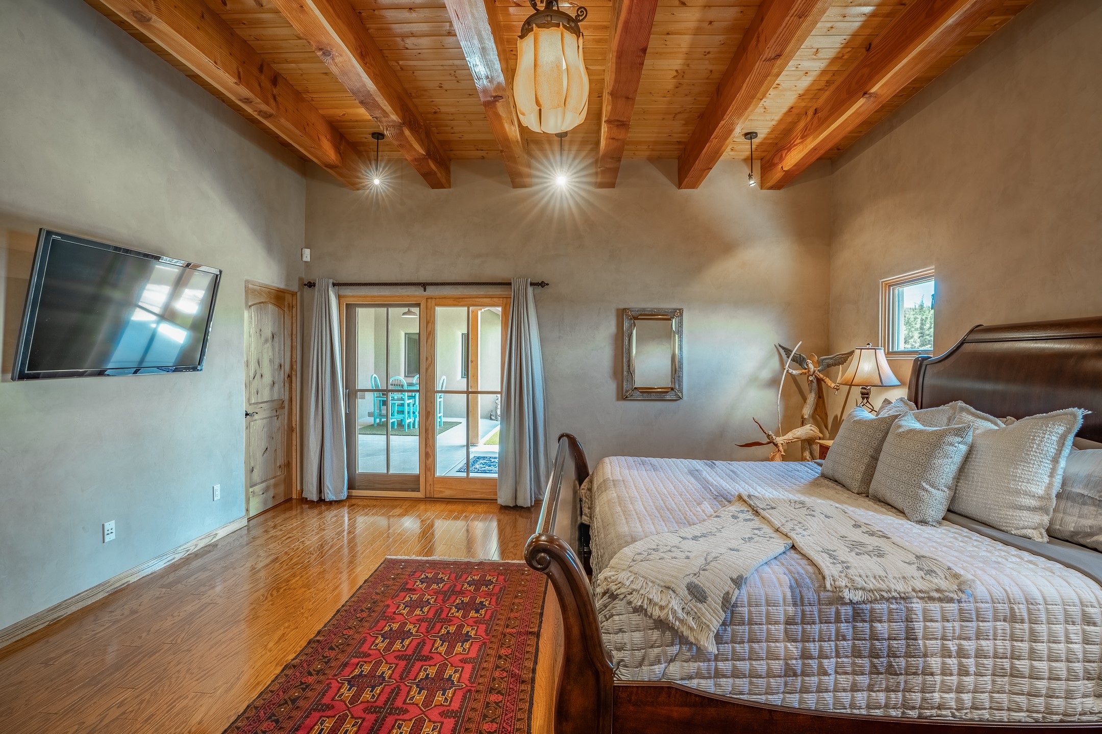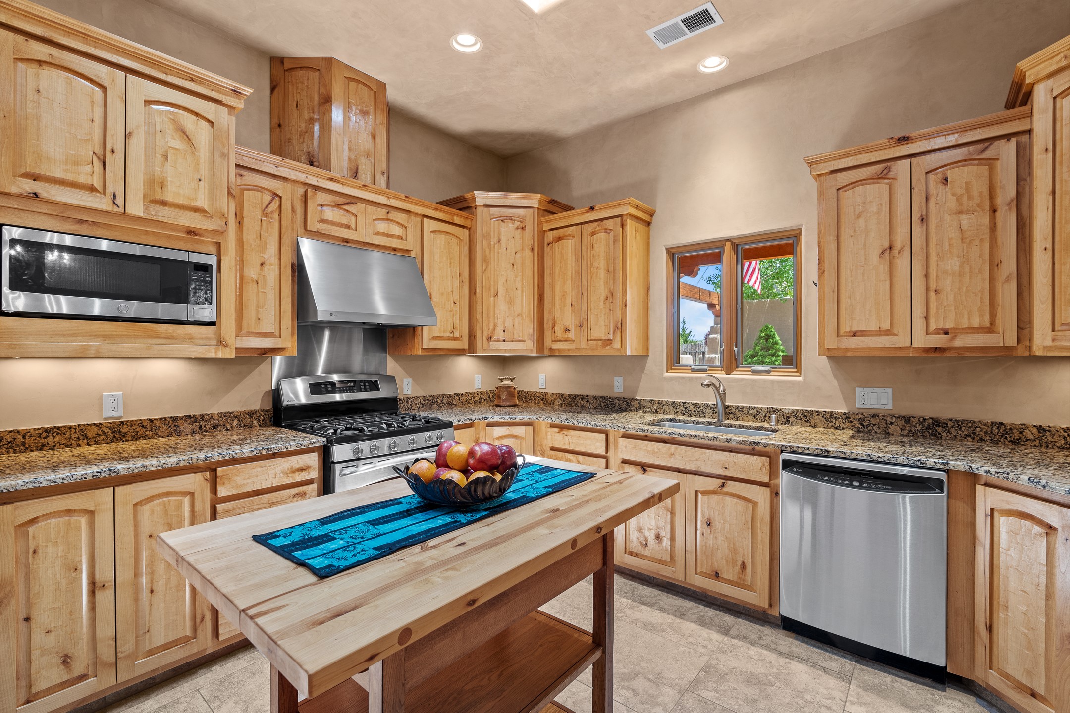 Southwest Elegance at 21 Camino BarrancaDiscover timeless Santa Fe style in this custom-built 3-bedroom, 2-bath 2 car garage, home located in the highly sought-after Aldea de Santa Fe community. Impeccably maintained and offering 2,129 square feet of thoughtfully designed living space, this home seamlessly blends authentic Southwestern charm with modern comfort.Inside, you'll find exposed wood beams, hand-troweled plaster walls, and a mix of rich wood and tile flooring, creating a warm, inviting atmosphere. A traditional kiva fireplace anchors the living room, perfect for cozy evenings, while large windows bathe the home in natural light and frame views of the lush, landscaped surroundings.The open-concept kitchen and living areas are ideal for both everyday living and entertaining. Outdoors, enjoy the tranquility of mature landscaping, raised garden beds, and peaceful patio areas--perfect for al fresco dining or quiet reflection. The yard is completely fenced or walled for your furry friends. New stucco in 2023, water heater replaced in 2018, microwave in 2021. New Gaco roof with 10-yr warranty. There is radiant in floor heat (No Kitec :)forced air and AC. the driveway is finished nicely with pavers. Set in a quiet, well-established neighborhood with access to walking trails and community amenities. Aldea is an active new-urbanist community that offers 13 miles of walking trails, Numerous parks and shared open spaces, basketball, tennis and pickleball courts and a playground and community center for special events.This home offers the best of Santa Fe living--comfort, character, and connection to nature. A truly special home, ready to welcome you.