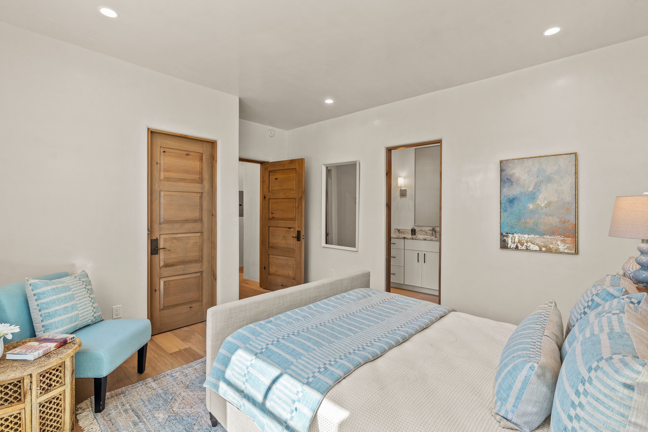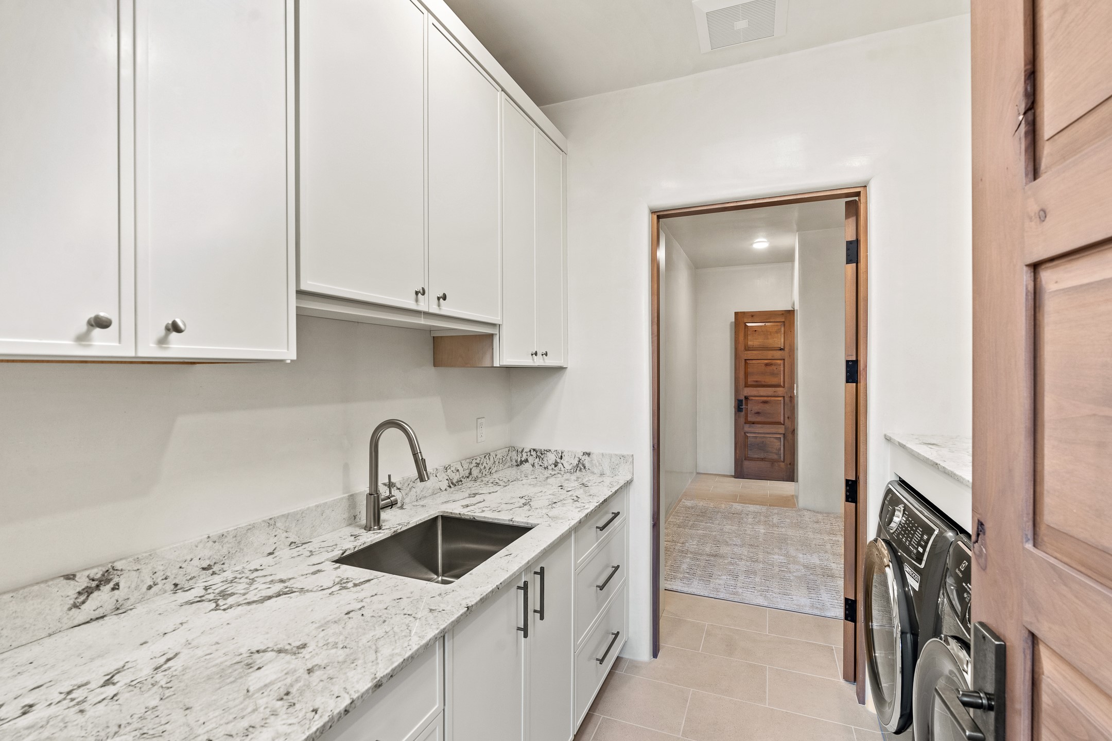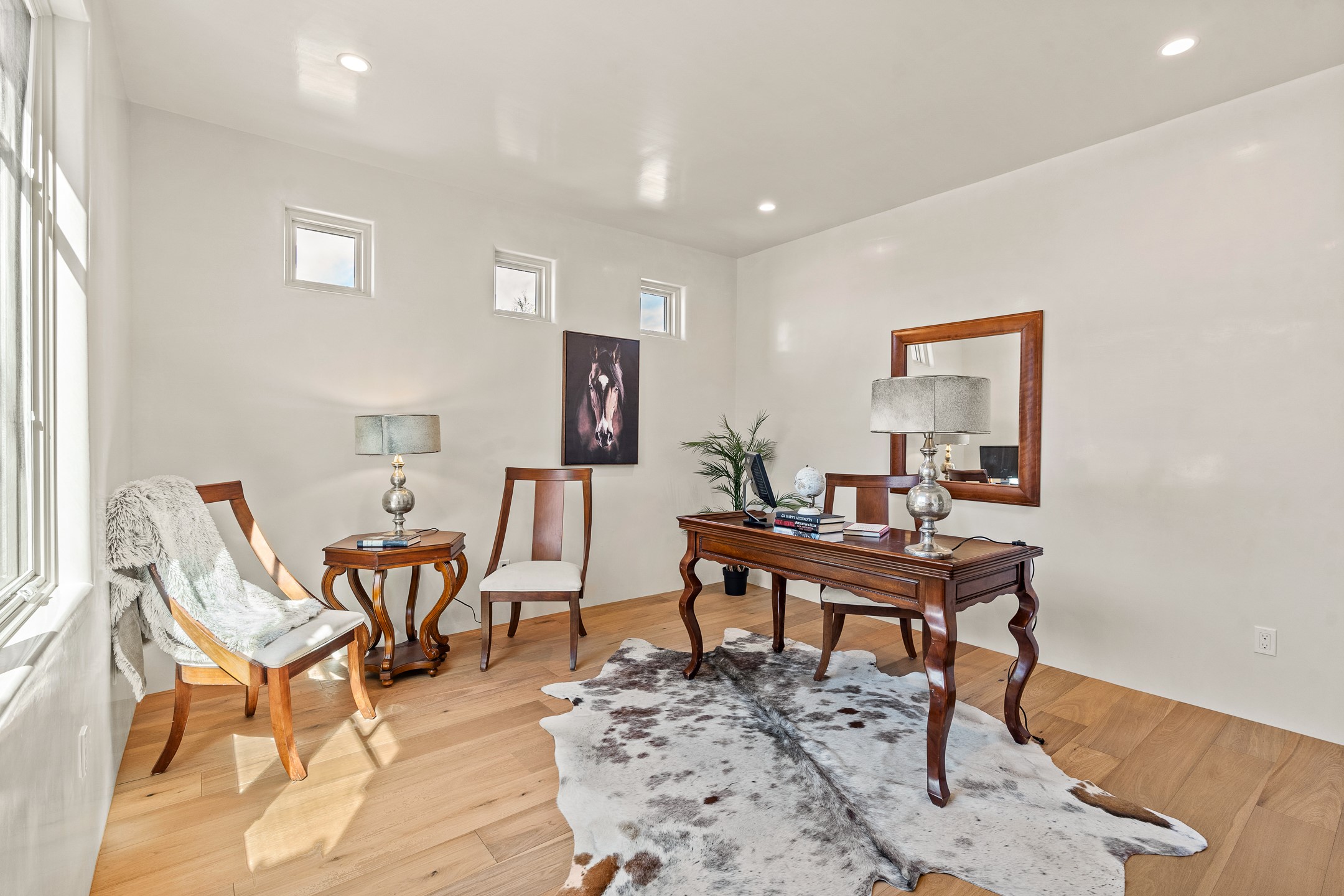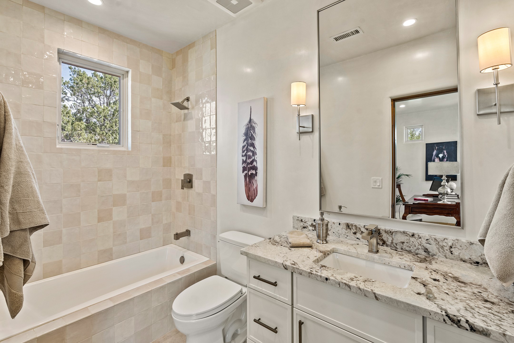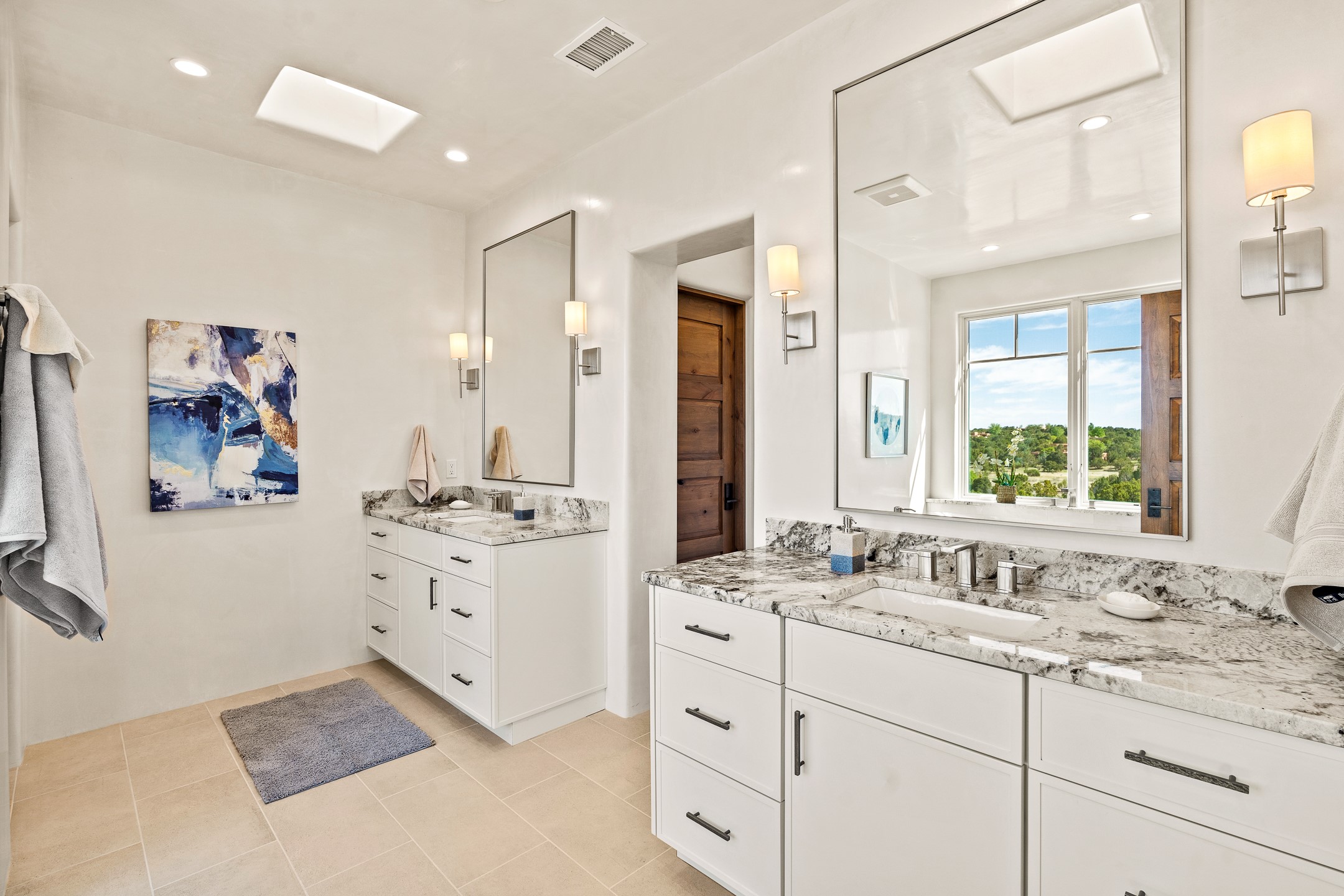 Newly constructed and just 15 minutes from The Plaza, this stunning 3,251 sq. ft. single-level home is bathed in soft natural light and offers sweeping views of the Sangre de Cristo Mountains. From the moment you enter, the sophisticated blend of Southwestern and contemporary architecture is evident, featuring hand-troweled diamond plaster walls, white oak flooring, and striking vigas. Expansive picture windows, accented with divided light transoms, frame dramatic mountain views, bringing Santa Fe's natural light into every room. The kitchen is a natural gathering spot with a generous island and sink for prep and socializing, an eat-in bar for casual dining, a 6-burner Wolf gas cooktop, Subzero appliances, custom cabinetry, and a perfectly positioned sink that captures the mountain vistas. The deep east-facing brick portal, accessible from the living and dining areas, extends the Southwestern experience outdoors with high ceilings, vigas, and a traditional wood-burning kiva fireplace. Tucked in the southeast wing, the private primary suite features a corner gas fireplace and direct access to the rear portal, offering seclusion and views. The ensuite bath includes dual vanities, a deep soaking tub, walk-in shower, and a closet spacious enough for even the most devoted shopper. The large laundry room connects directly to the primary closet for convenience. The guest wing offers two ensuite bedrooms with full bathrooms, designed for visitor comfort and privacy. In-floor radiant heat, forced air heating, central air conditioning, and a spacious 3-car garage add exceptional comfort and value. A special bonus: 6 Sierra Ct is located in Colinas Verdes, a distinct neighborhood with its own HOA within the gates of Las Campanas. Discover a home where elegance, comfort, and the beauty of Santa Fe come together seamlessly--your sanctuary awaits at 6 Sierra Ct.
