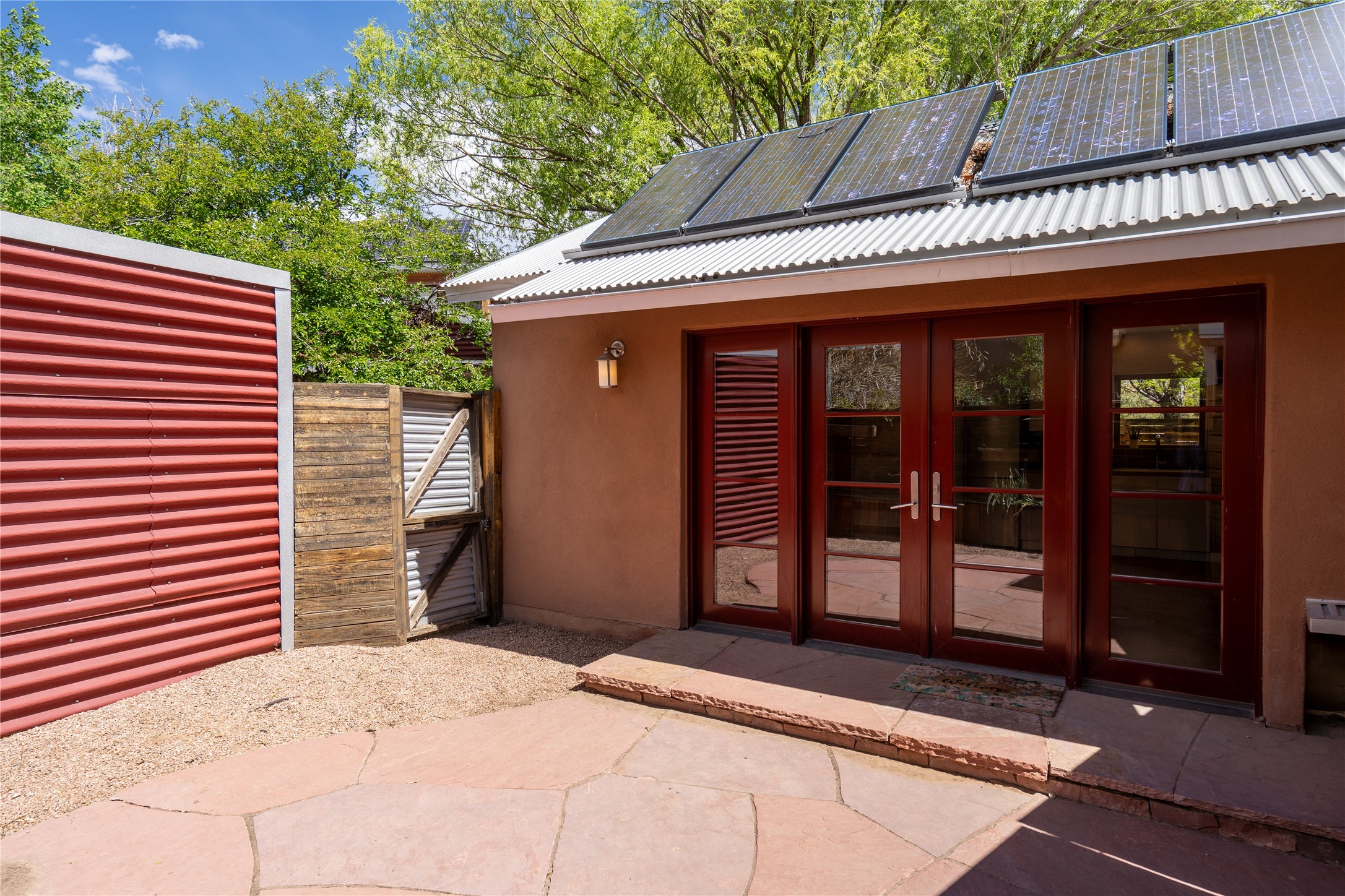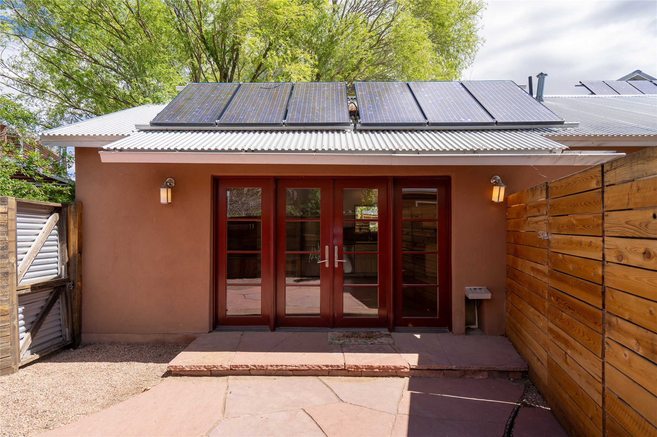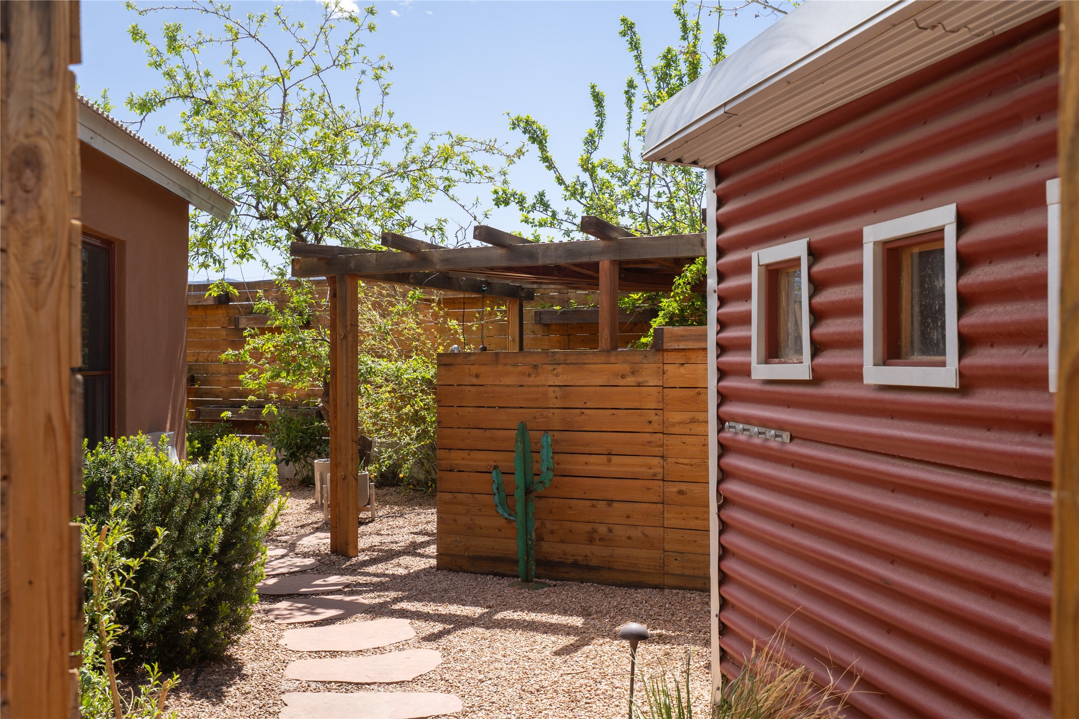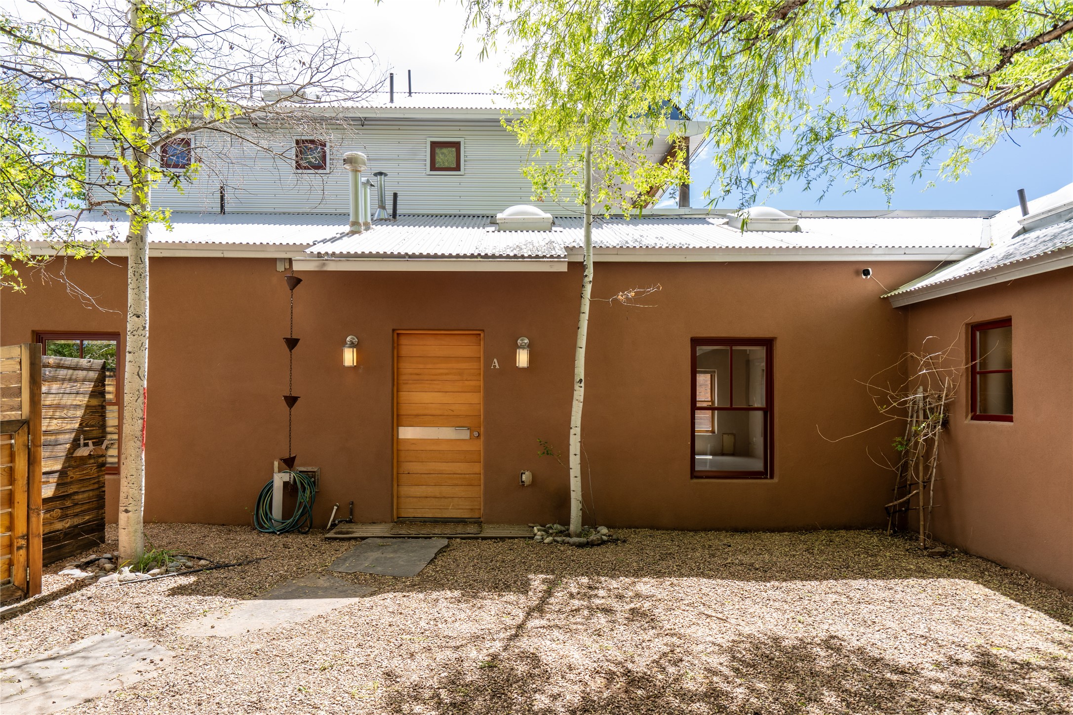 Price Reduced November 4th, and now offering $25,000 in Seller concessions to use toward improvements or apply as needed. Modern Adobe Retreat with Private Casita. Timeless adobe meets modern elegance in this thoughtfully designed 3-bed, 2-bath home. Open and full of light, a full bath, kitchen, open living areas, and two bedrooms are downstairs. The upstairs primary suite offers privacy, views, and a spacious balcony. Inside is serene, with exposed wooden beams, hand troweled clay walls, and in floor radiant heat.A separate 1-bed casita, complete with private entrance, open kitchen-living space, dedicated office, and private yard space will be inviting for your guests, income, or multigenerational living.Outside, mature landscaping frames every view. Dual pet doors offer ease and freedom. A domed adobe storage structure out front and a generous garden shed in the back blend with a pergola-shaded BBQ area to complement the intelligent, inviting layout. A visual palate of earth, wood, metals and light awaits.Private. Flexible. Ready to live in--or to earn.