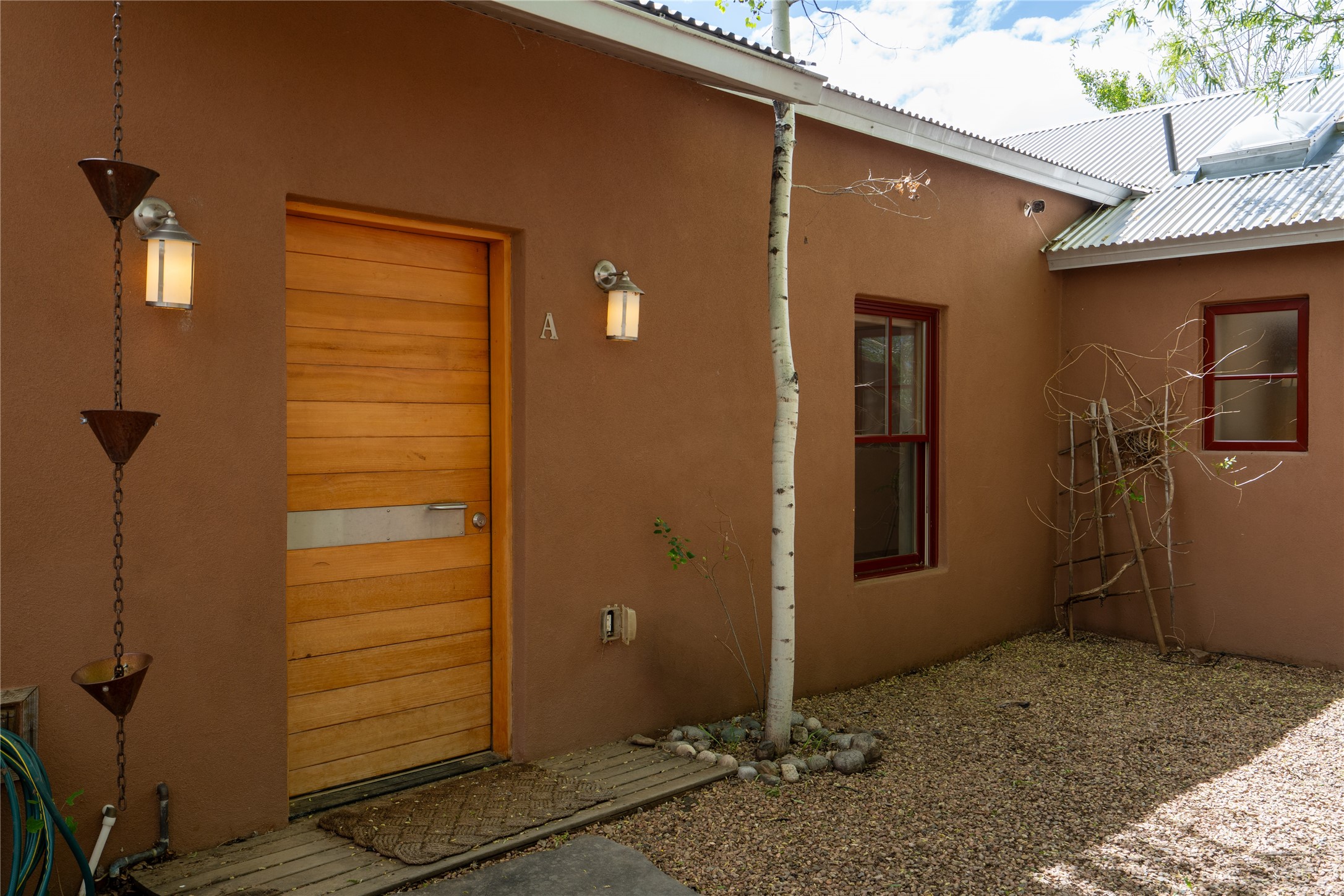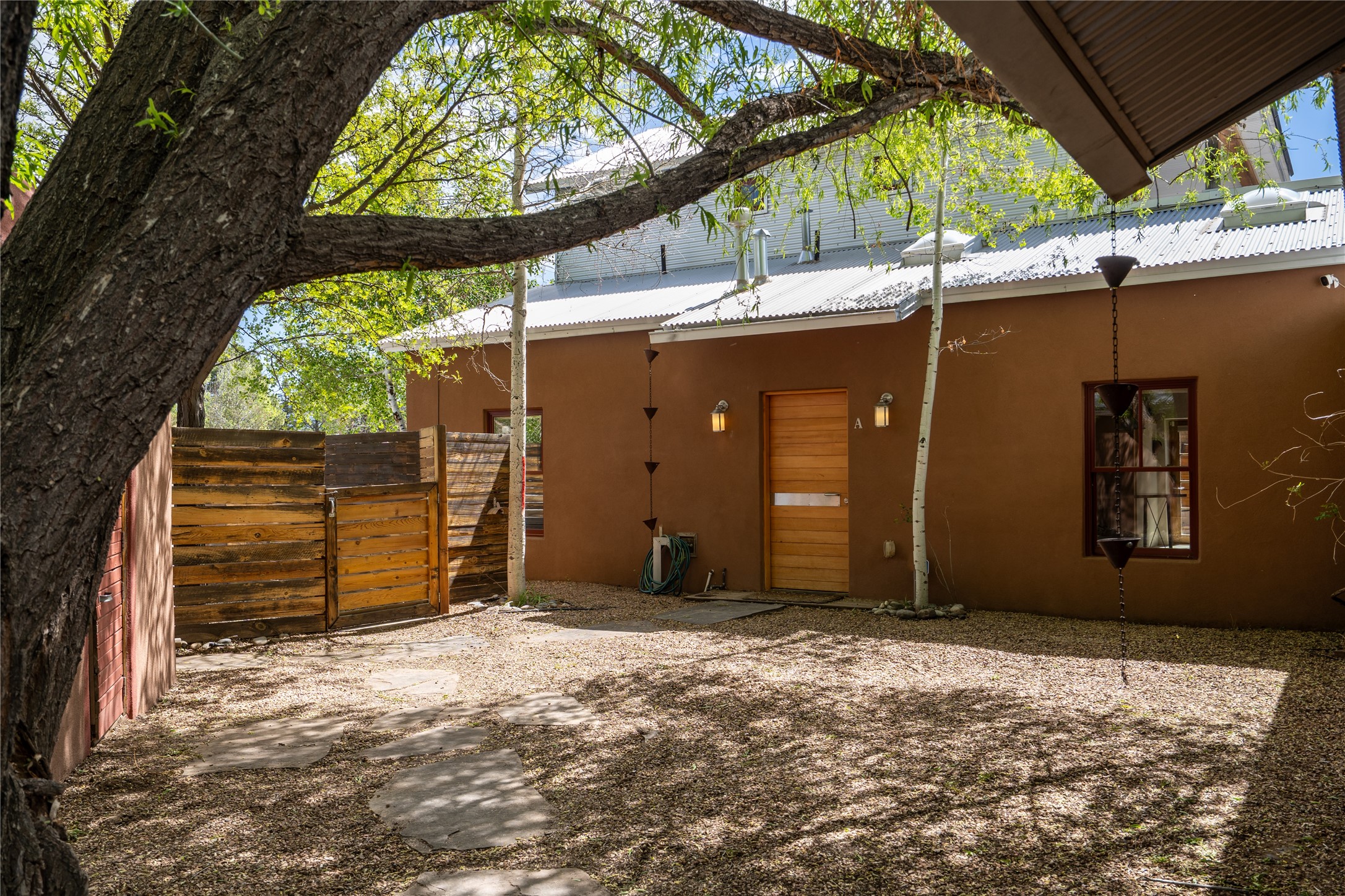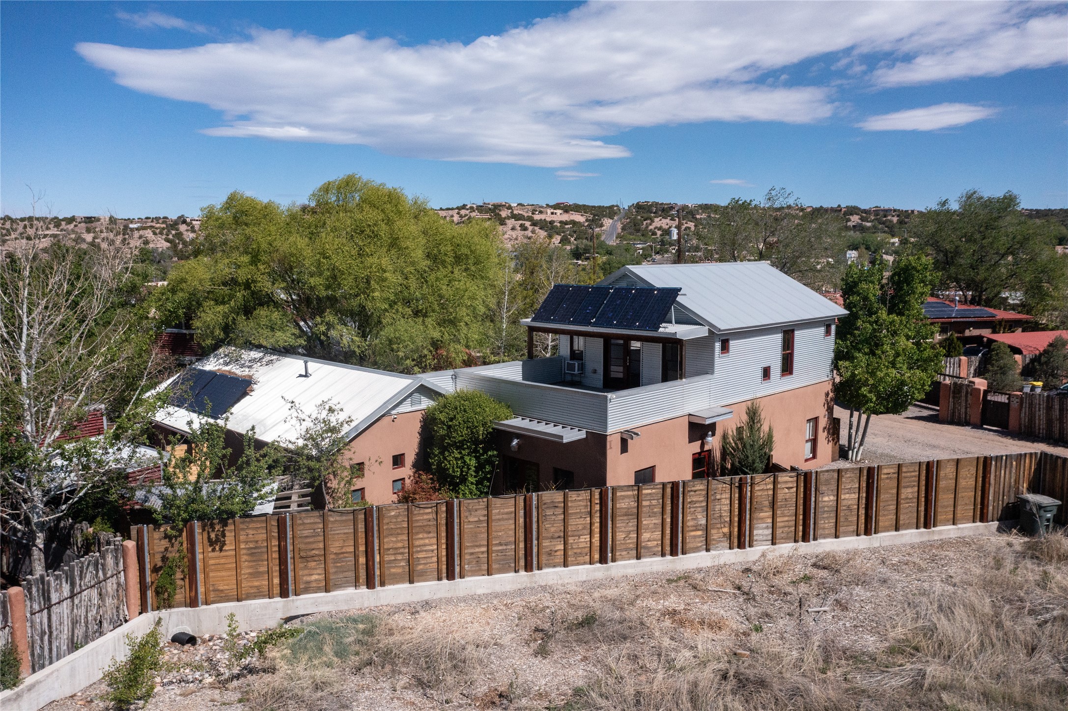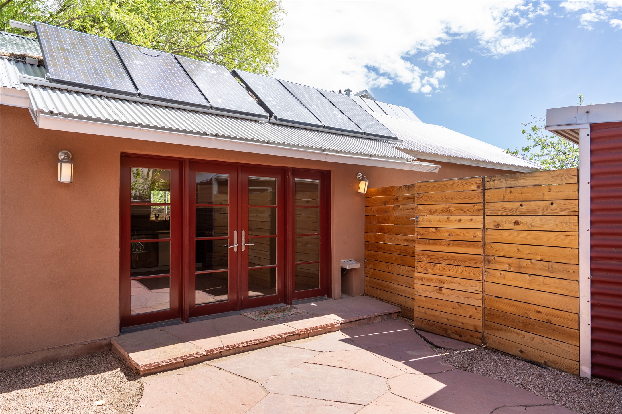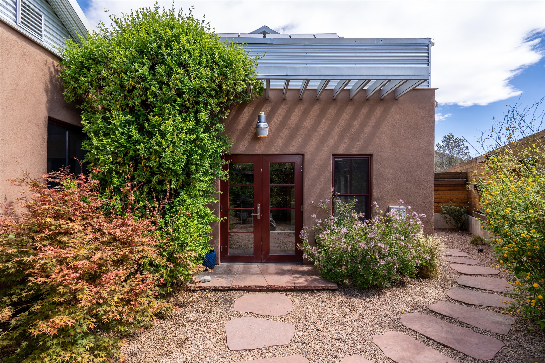 Price Reduced November 4th, and now offering $25,000 in Seller concessions to use toward improvements or apply as needed. Modern Adobe Retreat with Private Casita. Timeless adobe meets modern elegance in this thoughtfully designed 3-bed, 2-bath home. Open and full of light, a full bath, kitchen, open living areas, and two bedrooms are downstairs. The upstairs primary suite offers privacy, views, and a spacious balcony. Inside is serene, with exposed wooden beams, hand troweled clay walls, and in floor radiant heat.A separate 1-bed casita, complete with private entrance, open kitchen-living space, dedicated office, and private yard space will be inviting for your guests, income, or multigenerational living.Outside, mature landscaping frames every view. Dual pet doors offer ease and freedom. A domed adobe storage structure out front and a generous garden shed in the back blend with a pergola-shaded BBQ area to complement the intelligent, inviting layout. A visual palate of earth, wood, metals and light awaits.Private. Flexible. Ready to live in--or to earn.