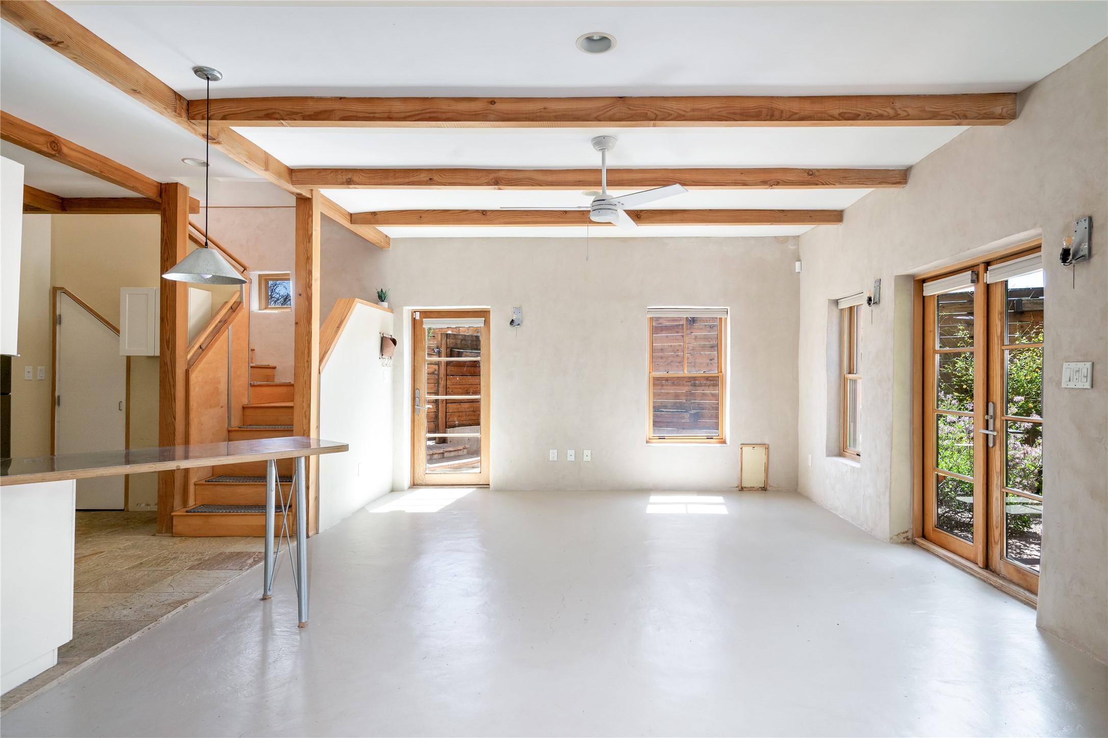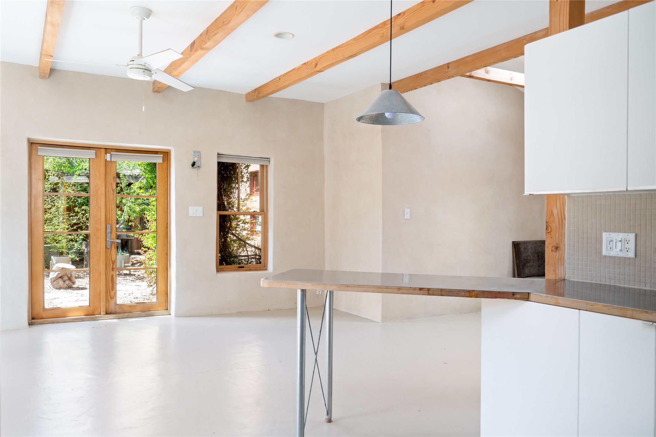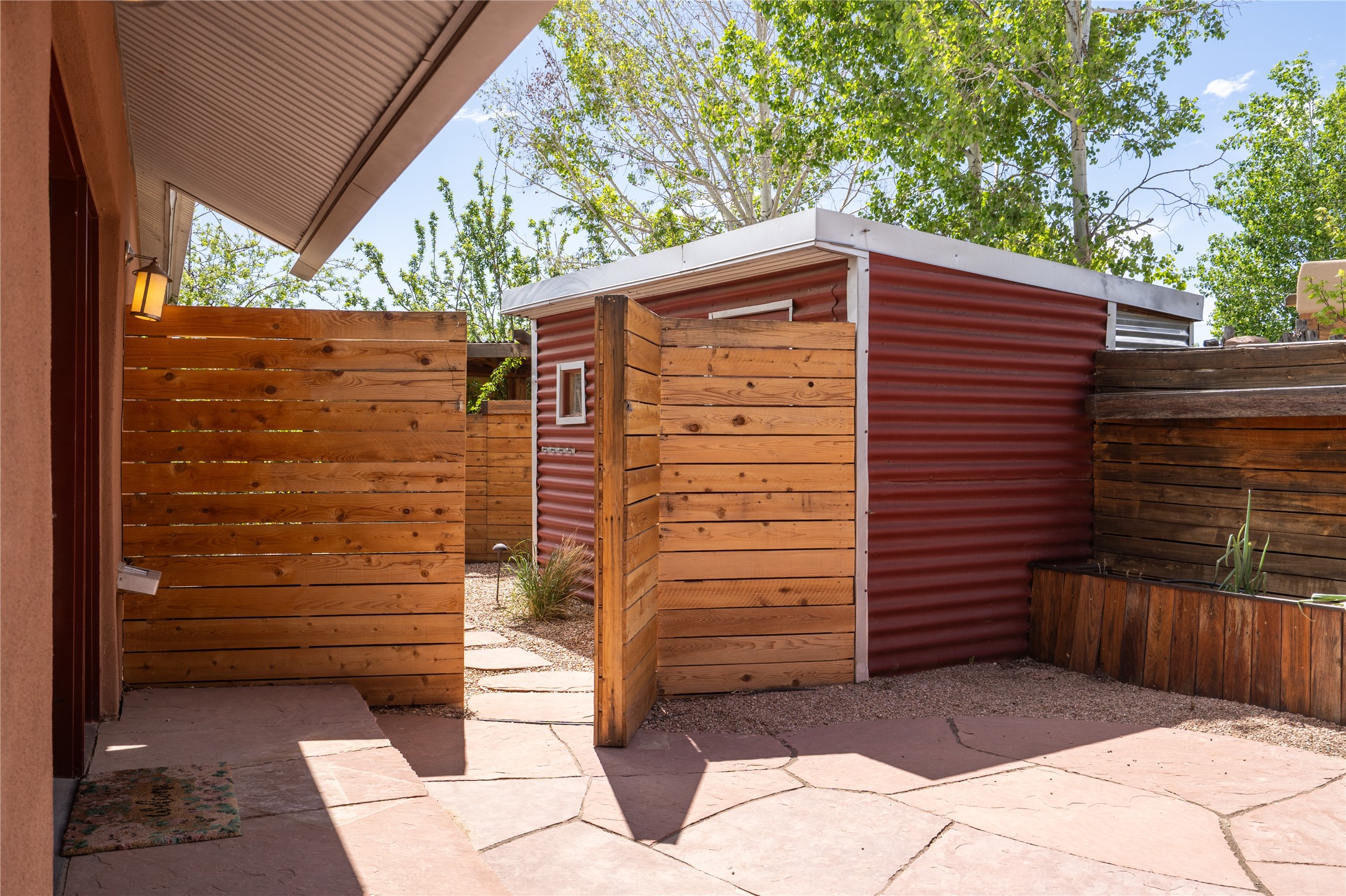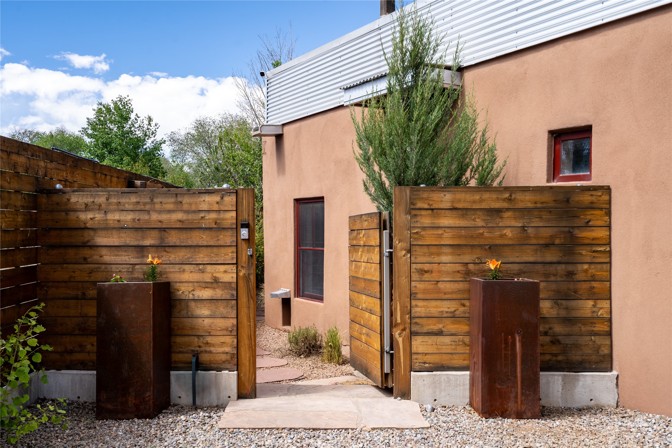 Price Reduced November 4th, and now offering $25,000 in Seller concessions to use toward improvements or apply as needed. Modern Adobe Retreat with Private Casita. Timeless adobe meets modern elegance in this thoughtfully designed 3-bed, 2-bath home. Open and full of light, a full bath, kitchen, open living areas, and two bedrooms are downstairs. The upstairs primary suite offers privacy, views, and a spacious balcony. Inside is serene, with exposed wooden beams, hand troweled clay walls, and in floor radiant heat.A separate 1-bed casita, complete with private entrance, open kitchen-living space, dedicated office, and private yard space will be inviting for your guests, income, or multigenerational living.Outside, mature landscaping frames every view. Dual pet doors offer ease and freedom. A domed adobe storage structure out front and a generous garden shed in the back blend with a pergola-shaded BBQ area to complement the intelligent, inviting layout. A visual palate of earth, wood, metals and light awaits.Private. Flexible. Ready to live in--or to earn.