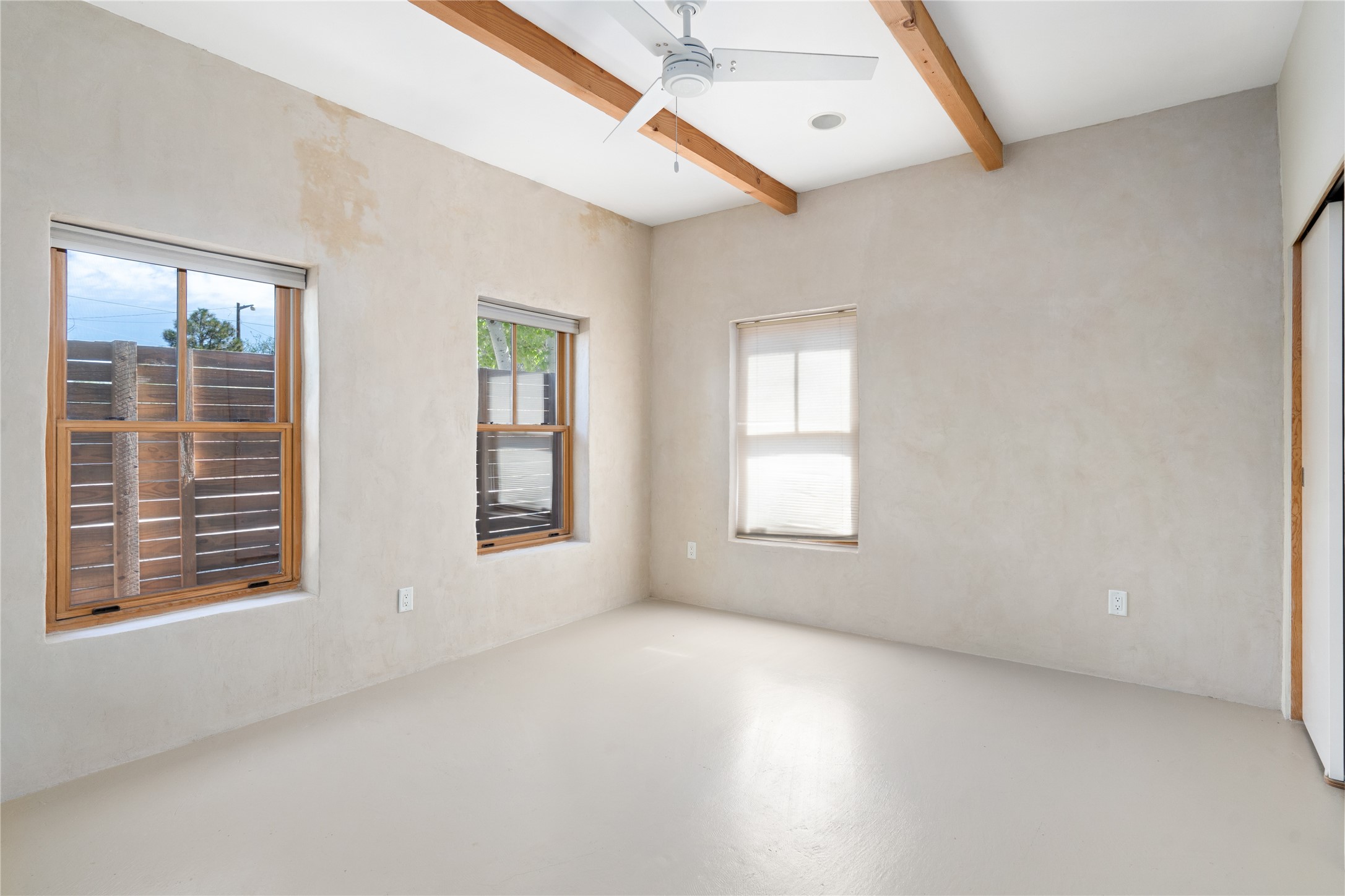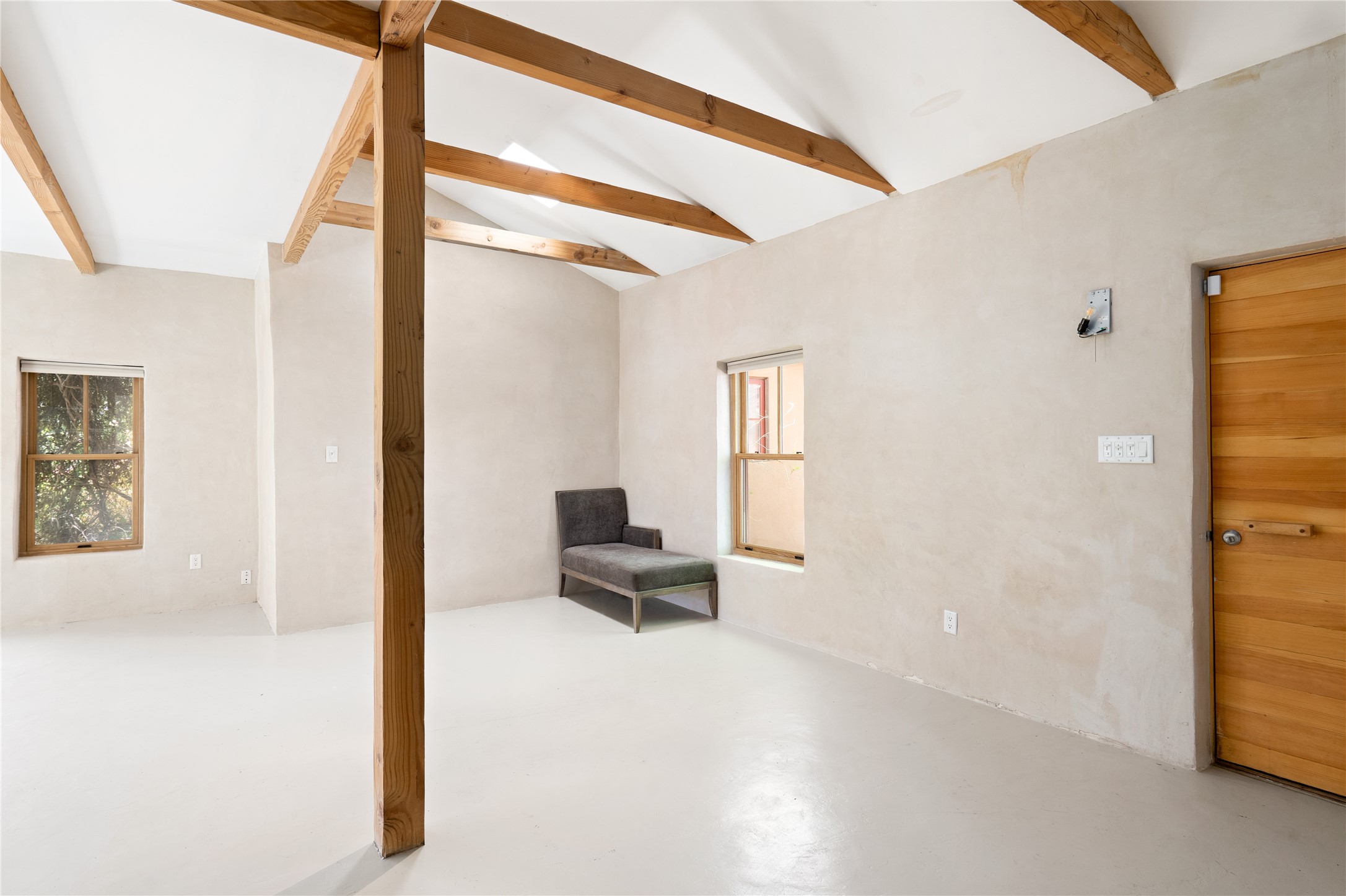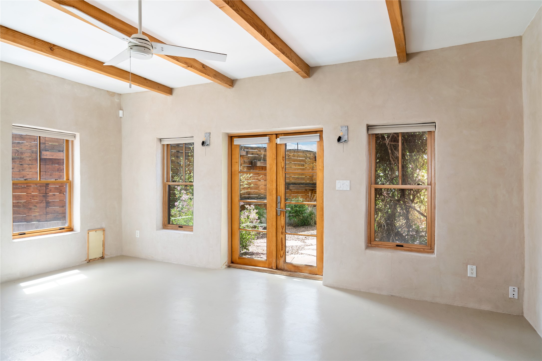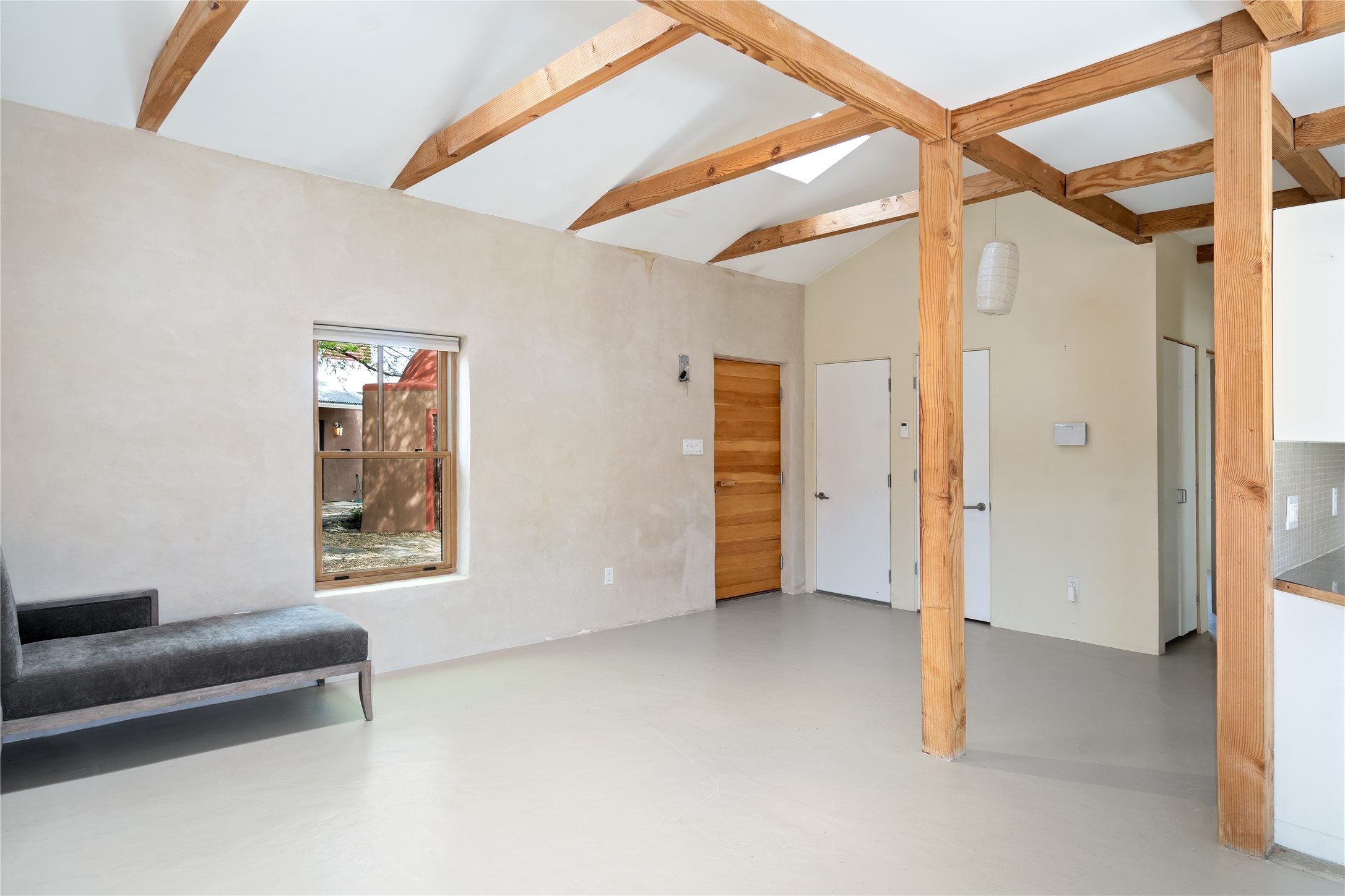 Price Reduced November 4th, and now offering $25,000 in Seller concessions to use toward improvements or apply as needed. Modern Adobe Retreat with Private Casita. Timeless adobe meets modern elegance in this thoughtfully designed 3-bed, 2-bath home. Open and full of light, a full bath, kitchen, open living areas, and two bedrooms are downstairs. The upstairs primary suite offers privacy, views, and a spacious balcony. Inside is serene, with exposed wooden beams, hand troweled clay walls, and in floor radiant heat.A separate 1-bed casita, complete with private entrance, open kitchen-living space, dedicated office, and private yard space will be inviting for your guests, income, or multigenerational living.Outside, mature landscaping frames every view. Dual pet doors offer ease and freedom. A domed adobe storage structure out front and a generous garden shed in the back blend with a pergola-shaded BBQ area to complement the intelligent, inviting layout. A visual palate of earth, wood, metals and light awaits.Private. Flexible. Ready to live in--or to earn.