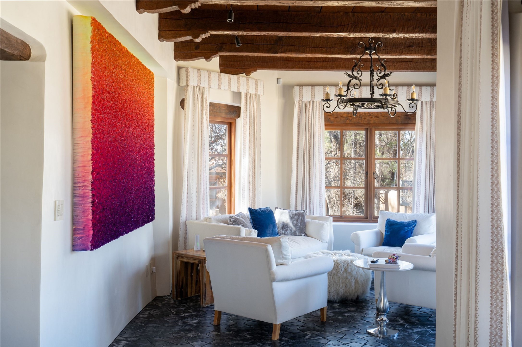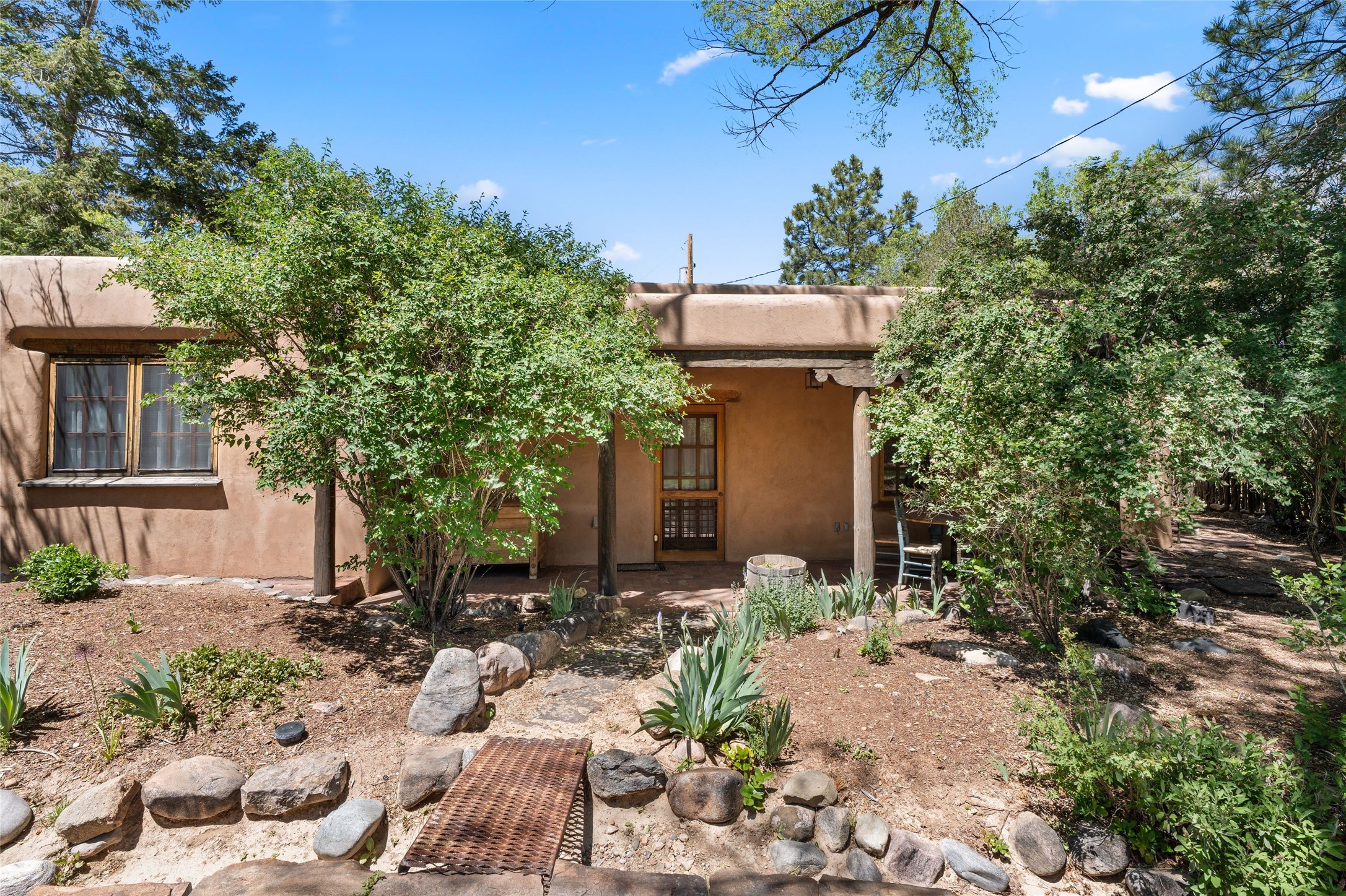 Experience the timeless elegance of The De La Pena/Frank Applegate Residence, a distinguished historical treasure nestled in Santa Fe's coveted Historic Eastside. An extraordinary opportunity to own a true piece of Santa Fe history, this landmark estate sits on 1.78 acres along a private lane, just moments from world-renowned Canyon Road and its celebrated galleries, boutiques, and fine dining. Constructed in 1650, and recognized for its National Historic Status, this remarkable property was acquired in 1845 by Spanish officer Francisco de la Pea and later purchased by esteemed artist and architect Frank Applegate. Meticulously restored to honor its past while seamlessly integrating modern luxury, the estate is designed around a picturesque placita courtyard, with a stunning 5-bedroom, 7-bath main residence and a welcoming guest casita. With every detail reflecting the finest level of artisanal craftsmanship, this incomparable estate offers a custom wine cellar with refrigeration, two garages, a clay tennis court, a ramada, and a private well for irrigation. The idyllic outdoor areas offer fabulous entertaining spaces, mature trees, multiple courtyards, along with a lush lawn, portals, and an abundance of privacy. Modern amenities are seamlessly integrated into the estate with a Control 4 Smart Home operating system. With its premier location and unparalleled provenance, this estate is a rare gem for discerning buyers seeking a luxurious lifestyle in the heart of Santa Fe.