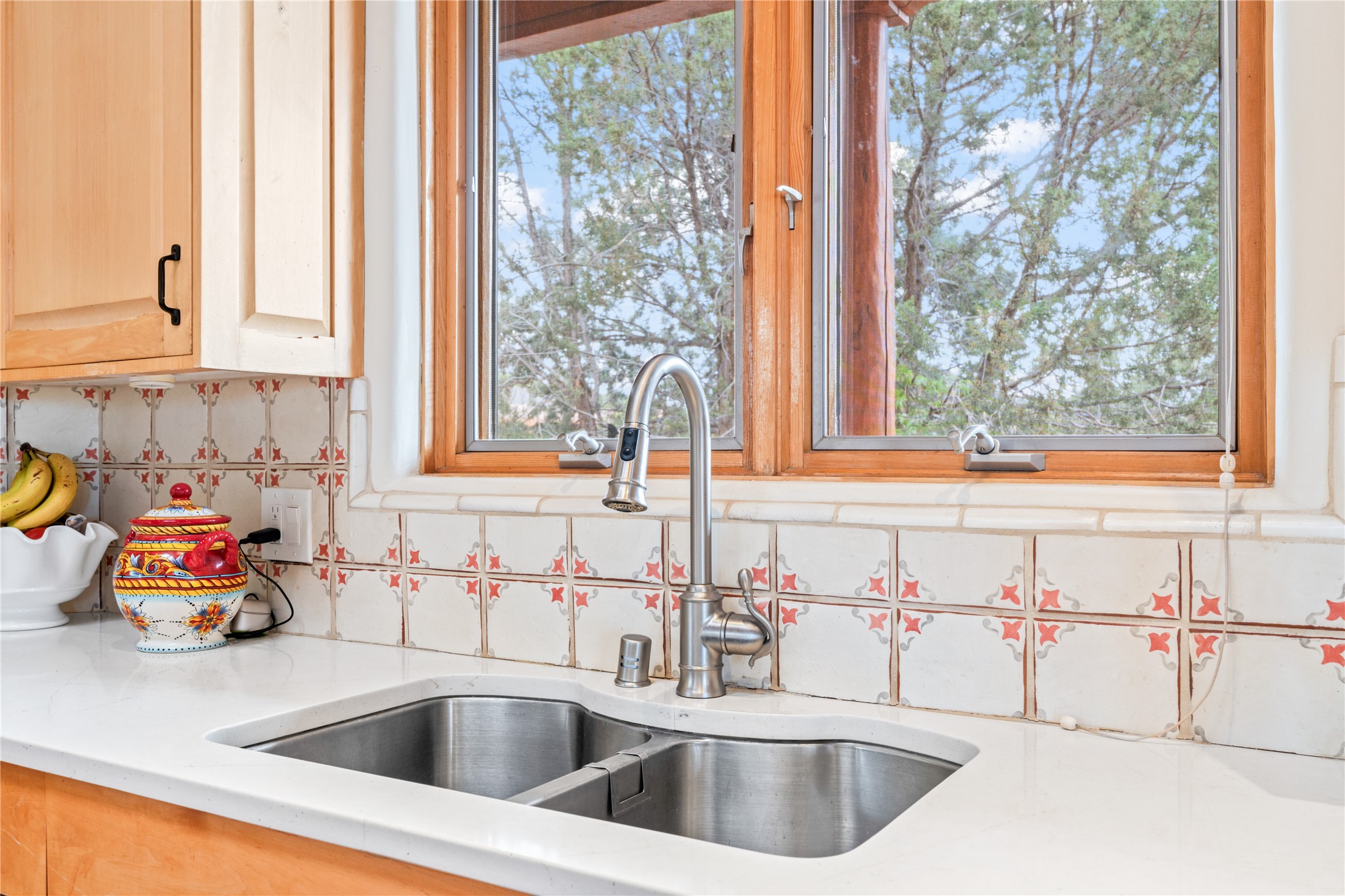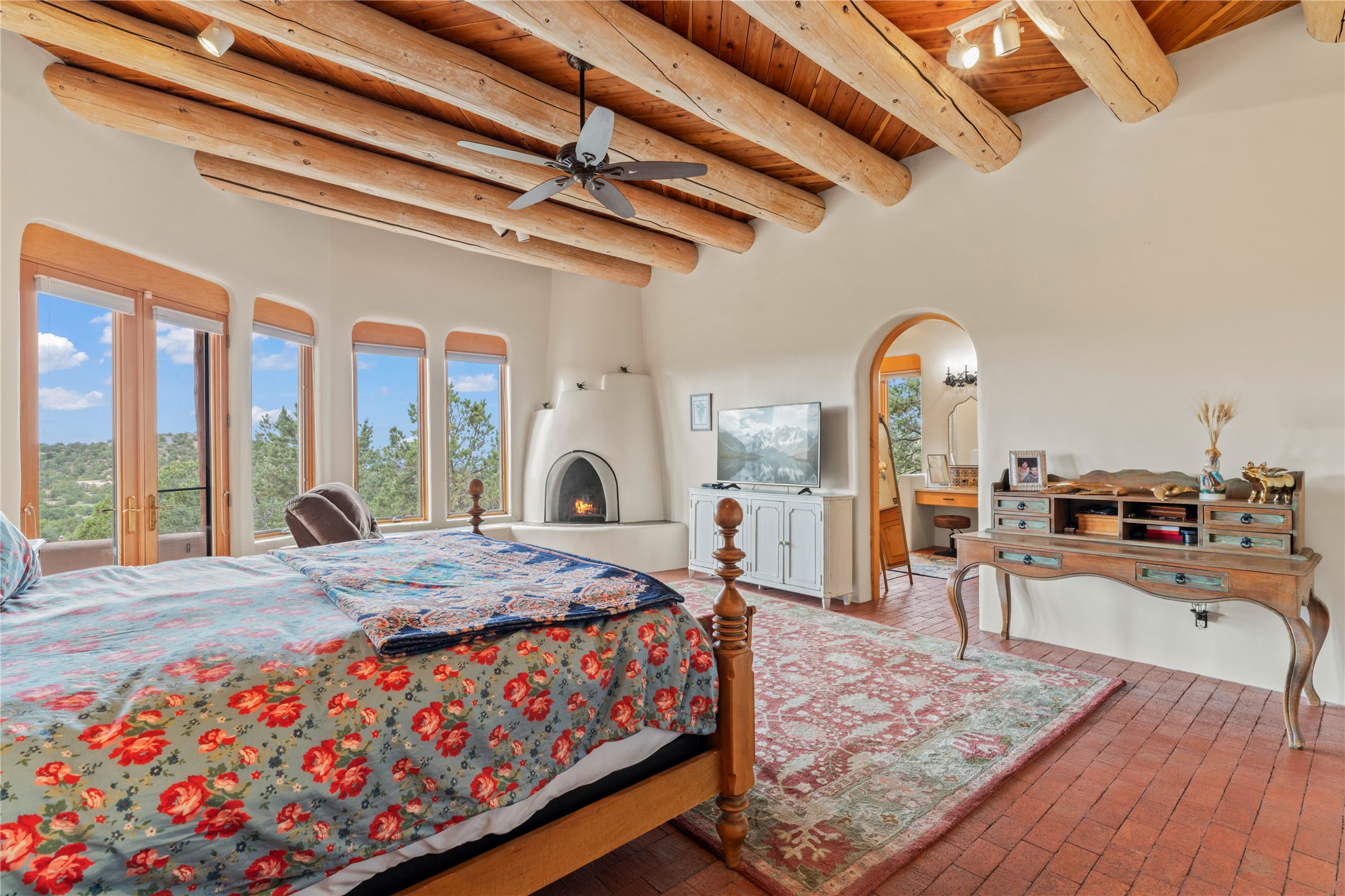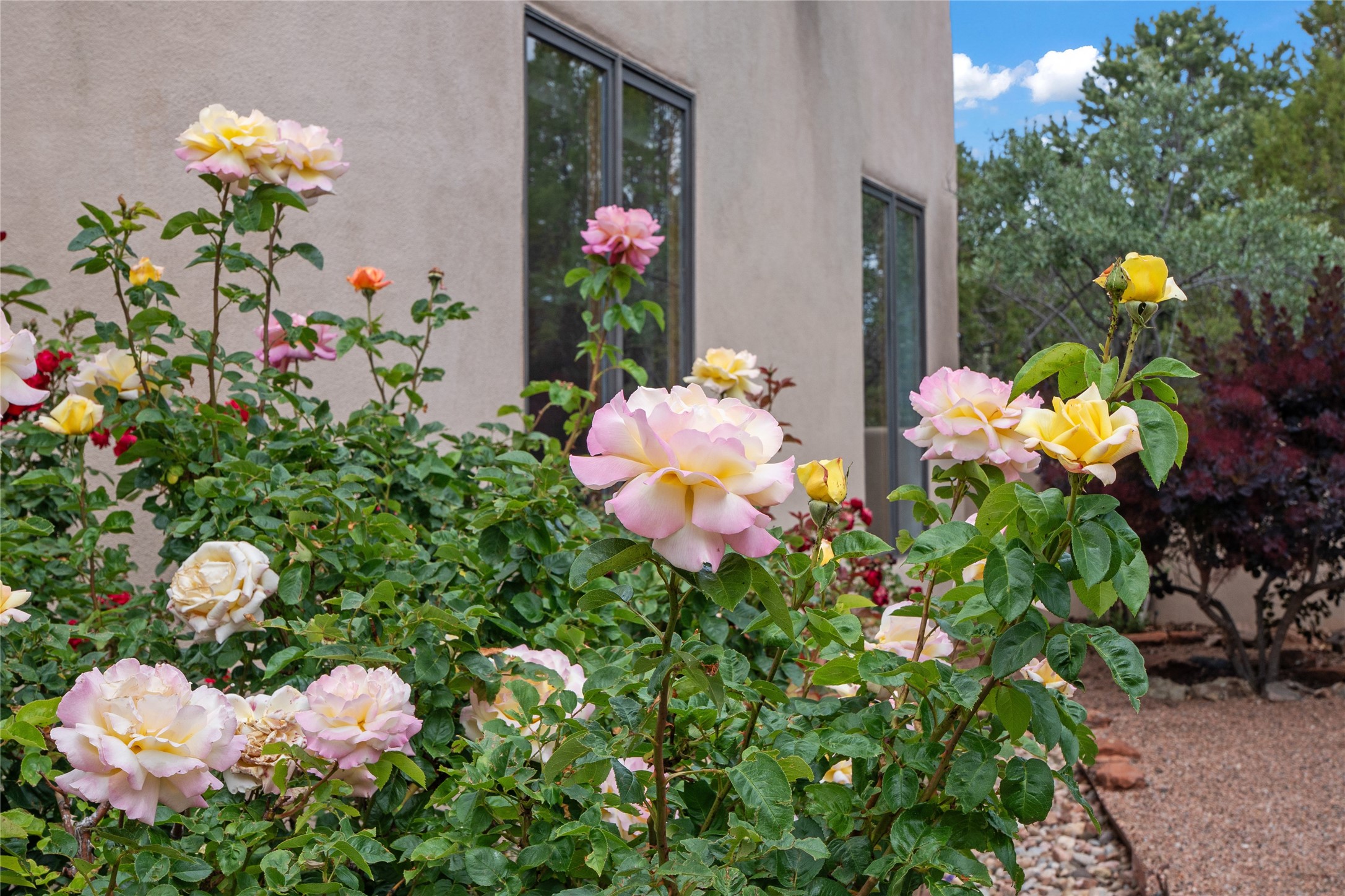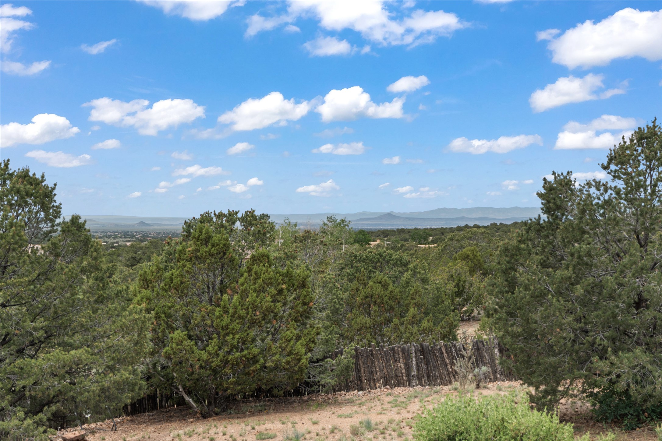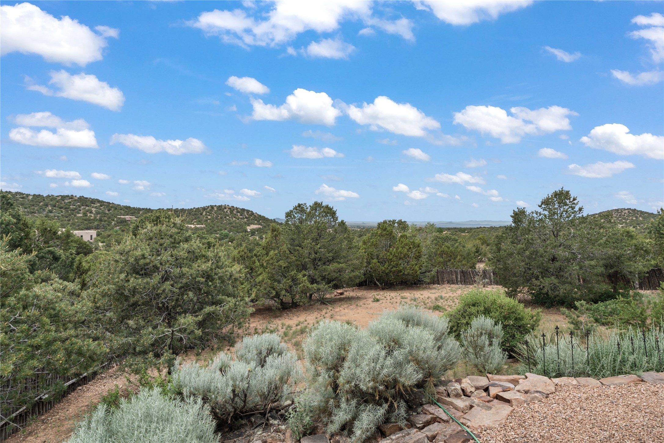 THE JEWEL OF ALTEZA ESTATES. Privacy and astounding views from this spectacular light and bright property with lush rose gardens and long-range mountain views from the entertainer's portal complete with fireplace. The sunroom's abundant windows open to a covered wrap-around portal which has many seating and dining options. Beautiful, remodeled cook's kitchen with quartz counters, Sub-Zero refrigerator, Wolf range with gorgeous maple cabinetry and pantry. Island has a prep sink and storage. Luxurious primary bedroom has room for a seating area, viga ceilings and a kiva fireplace. Spa bath has large separate shower, quartz counters, double sinks and a large walk-in closet. Dramatic living room with fireplace opens to dining room with handmade built-in sideboard. Two guestrooms and spacious guest bath with separate tub and shower. Generous fully fenced backyard. Landscaping all on drip. Four fireplaces. Pretty powder room. Walled front courtyard. All this on a paved road in a small, gated community. Approved ILR is in supplements and lot corners are flagged. Tankless water heater. Gorgeous Restoration Hardware entertainment center in living room conveys with the property. WIRSBO tubing in the floors, copper in the walls. Overzised and tall finished 2-car garage with great storage. There is a spot for a casita. NO CARPET. NO KITEC. Most of the furnishings can stay with the house at no charge if buyer wishes - a few exclusions in supplements.