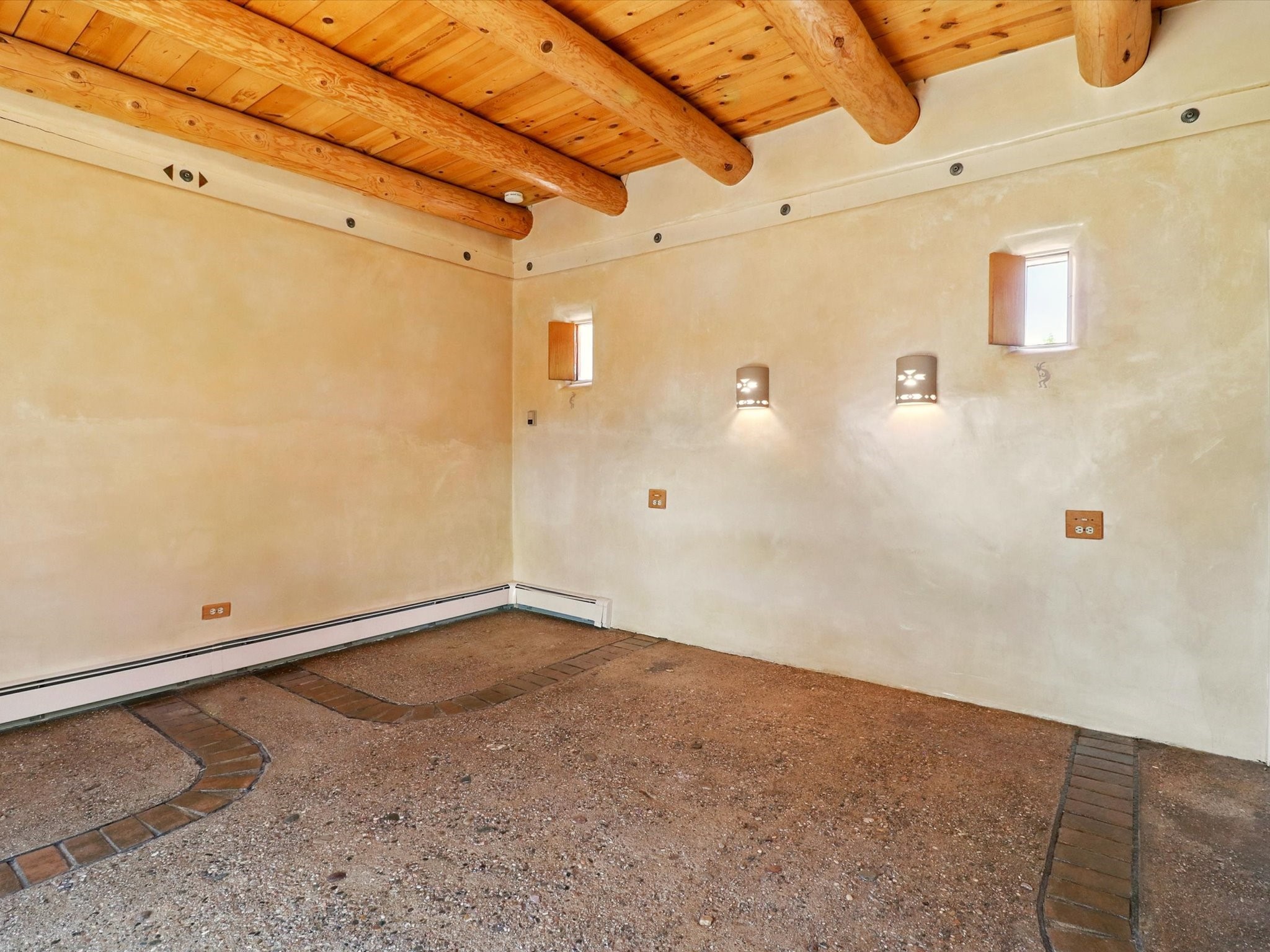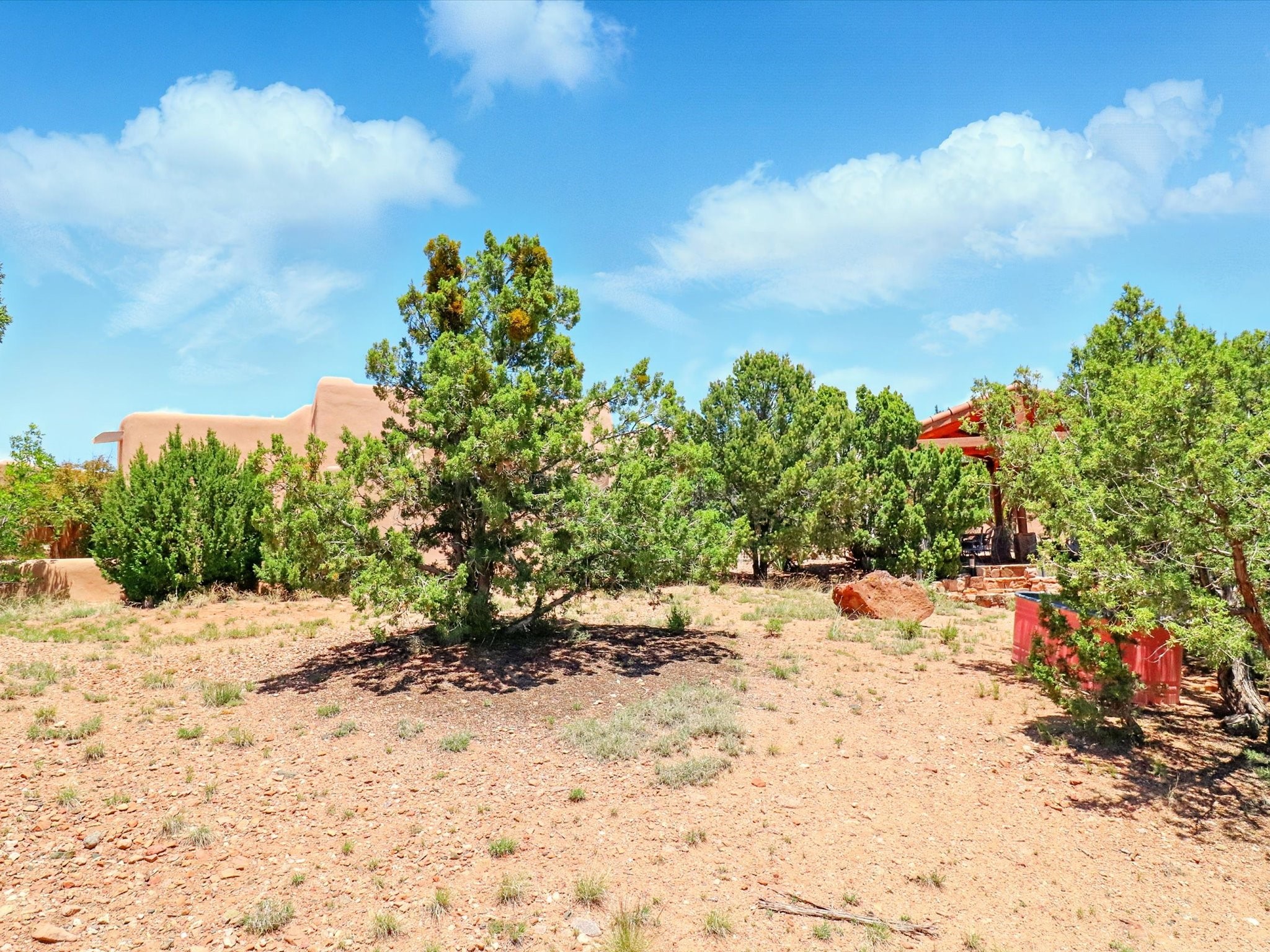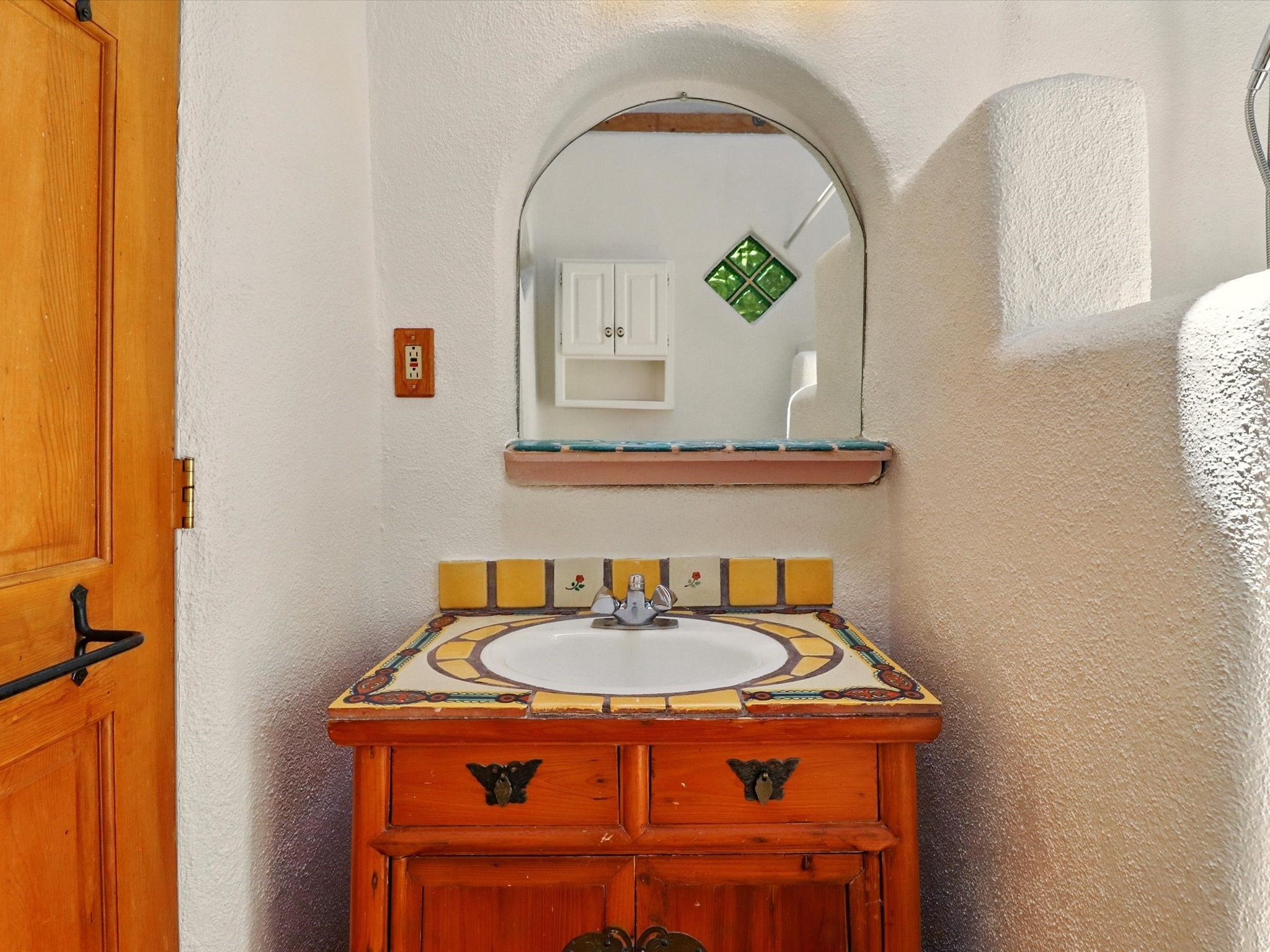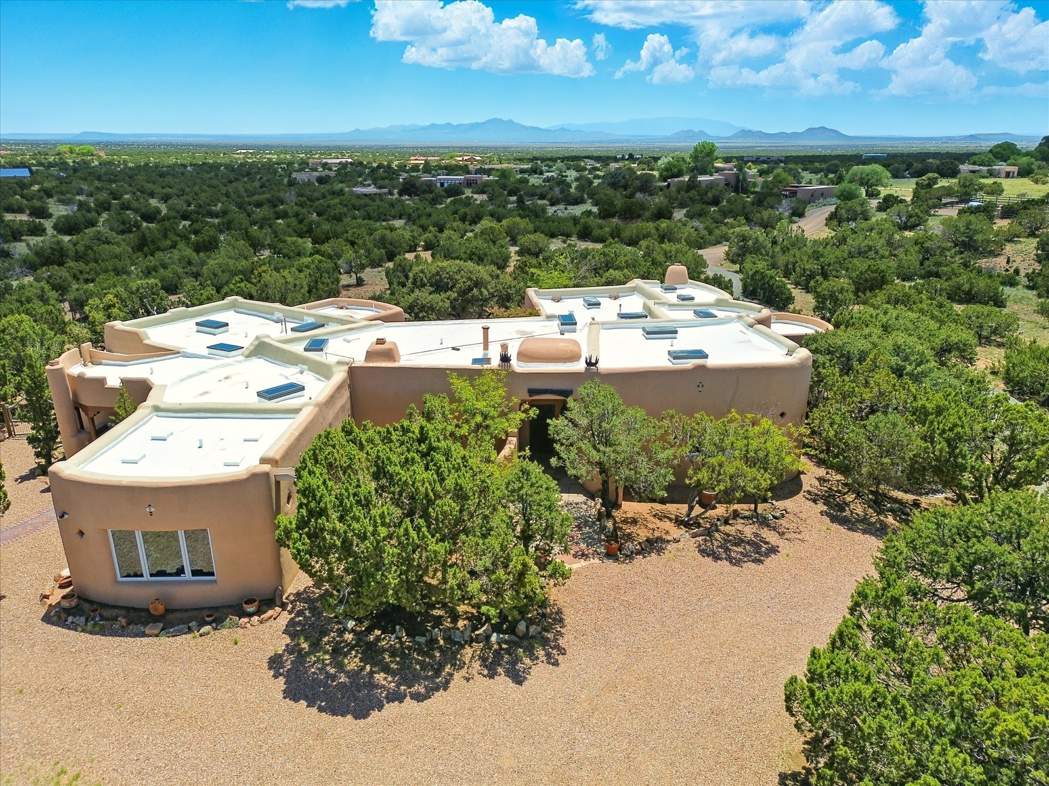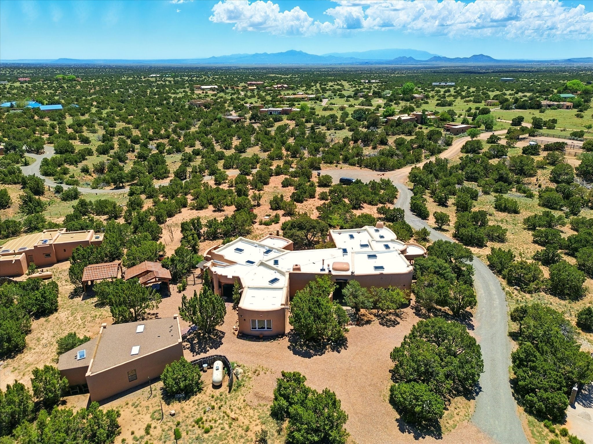 Enchanting Adobe Retreat with Guest Casita on 5 Private Acres - A timeless sanctuary nestled in the foothills of Santa Fe, where every sunrise brings serenity and every sunset invites reflection. For over three decades, this property has been cherished and curated, blending rich Santa Fe tradition with European influences.Begin your mornings on the covered kitchen patio, coffee in hand, as the sun rises over the Sangre De Cristo Mountains. Inside, the heart of the home unfolds with a kitchen island overlooking the living room's doors and windows -- framing an ornamental cherry tree and a 300-year-old pion tree.This custom adobe overflows with craftsmanship. Hand-carved beams, herringbone latillas, corbels, nichos, and structolite plastered walls speak to the region's architectural heritage. Thoughtful design details elevate the space: Venetian glass lighting, custom fixtures crafted by local artisans, and elegant Italian porcelain baths with satin nickel finishes from "Santa Fe by Design."Enjoy year-round comfort thanks to thick adobe walls, Marvin doors and windows, and radiant in-floor heating throughout the home. As the day winds down, indulge in a soak in the luxurious 6-foot clawfoot tub, gazing out the large picture window by sunset.Multiple portals -- two attached and two detached -- offer peaceful spots to unwind, each with its own perspective of the lush 5-acre grounds. Designed as an equestrian property, the land is both functional and magical, offering serenity, privacy, and space to explore.Included is a charming and fully private custom adobe guest house -- perfect for guests or as a proven income-generating rental.31 A&B Hondo Trail is more than a home; it's a living piece of art, a place of beauty, peace, and purpose. Come experience the enchantment for yourself.MAIN HOME HAS A NEW ROOF INSTALLED MAY 2025
