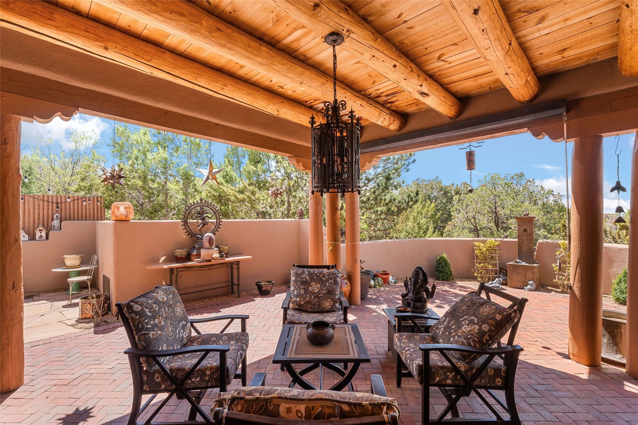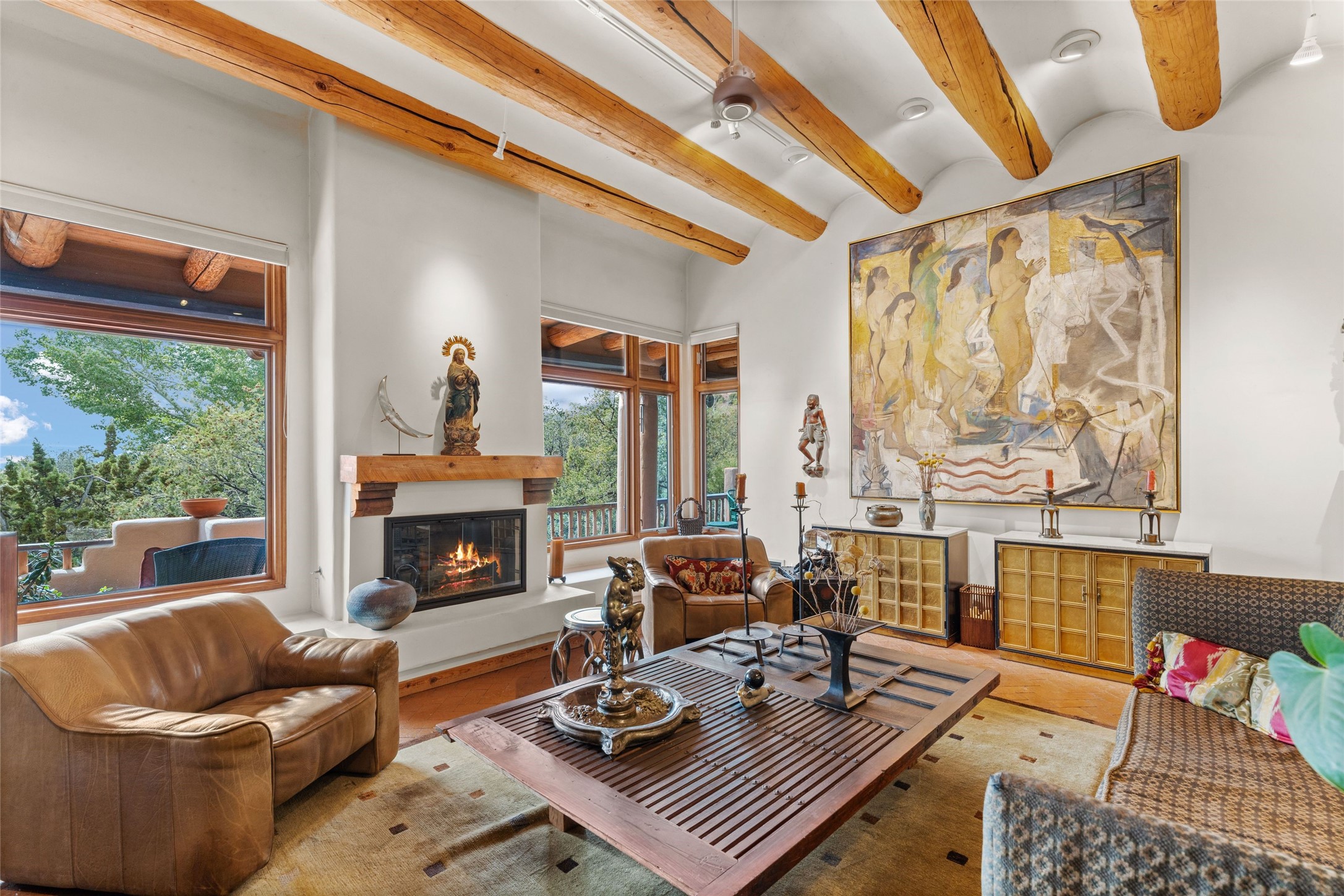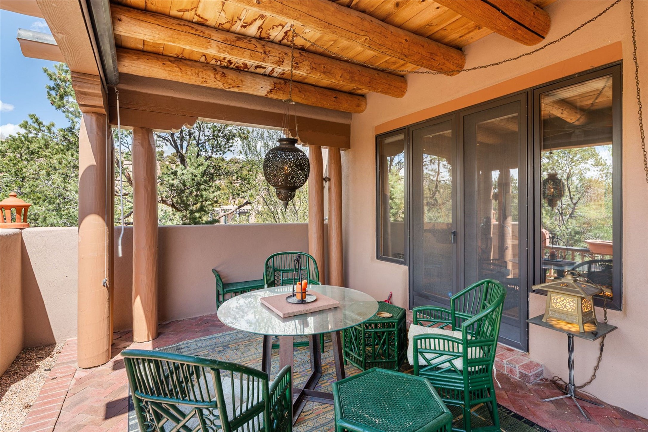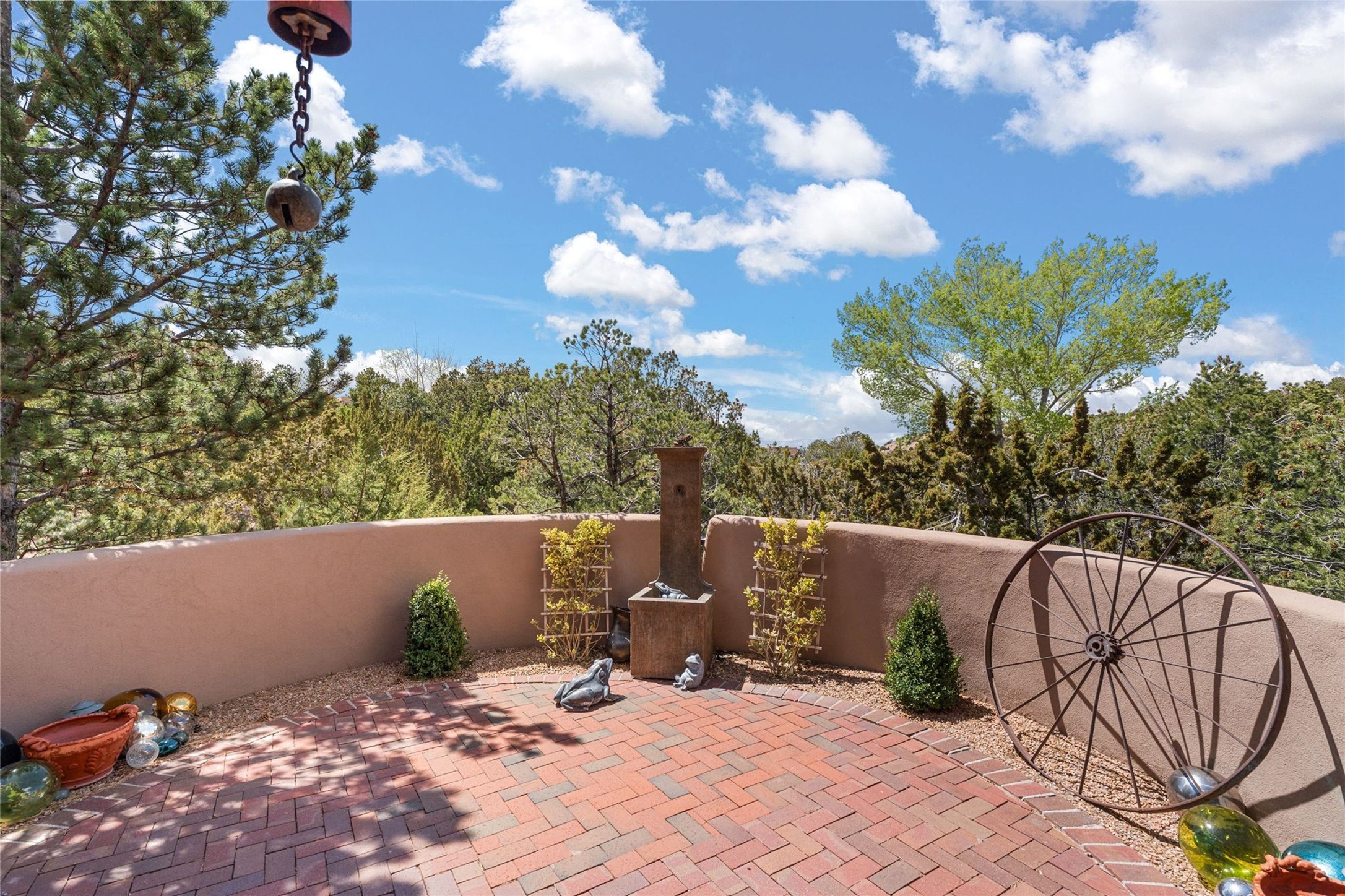 Delightful 3-bedroom, 3-bath condo located in a private setting in the sought-after gated community of 1000 East. This single-level residence offers the convenience of no interior steps, making it accessible and easy to navigate. The interior is an art collector's dream, complete with gallery track lighting throughout to beautifully showcase your favorite pieces. The gourmet kitchen, fully updated 2.5 years ago, features elegant glass front cabinets, a KitchenAid 6-burner stove/oven, and a second oven, making it perfect for both everyday meals and special gatherings. The spacious primary bedroom is a cozy retreat, complete with a gas fireplace and a private walk-out to the beckoning back patio/portal. The recently remodeled bath features a jetted tub and a separate walk-in closet for added benefit and luxury. The front entry courtyard and covered portal provide lovely outdoor spaces for relaxation, while the back courtyard wraps around the side of the house, offering additional room for outdoor enjoyment. Designed for privacy, the property features a private wall and coyote fence, along with a recirculating fountain and a grill connected to natural gas--ideal for entertaining or unwinding in your own oasis. With a 2-car garage and an EV charger, you'll enjoy modern amenities that cater to your lifestyle. Ideally located close to downtown Santa Fe, you'll have easy access to the vibrant culture, art, and dining the city has to offer.