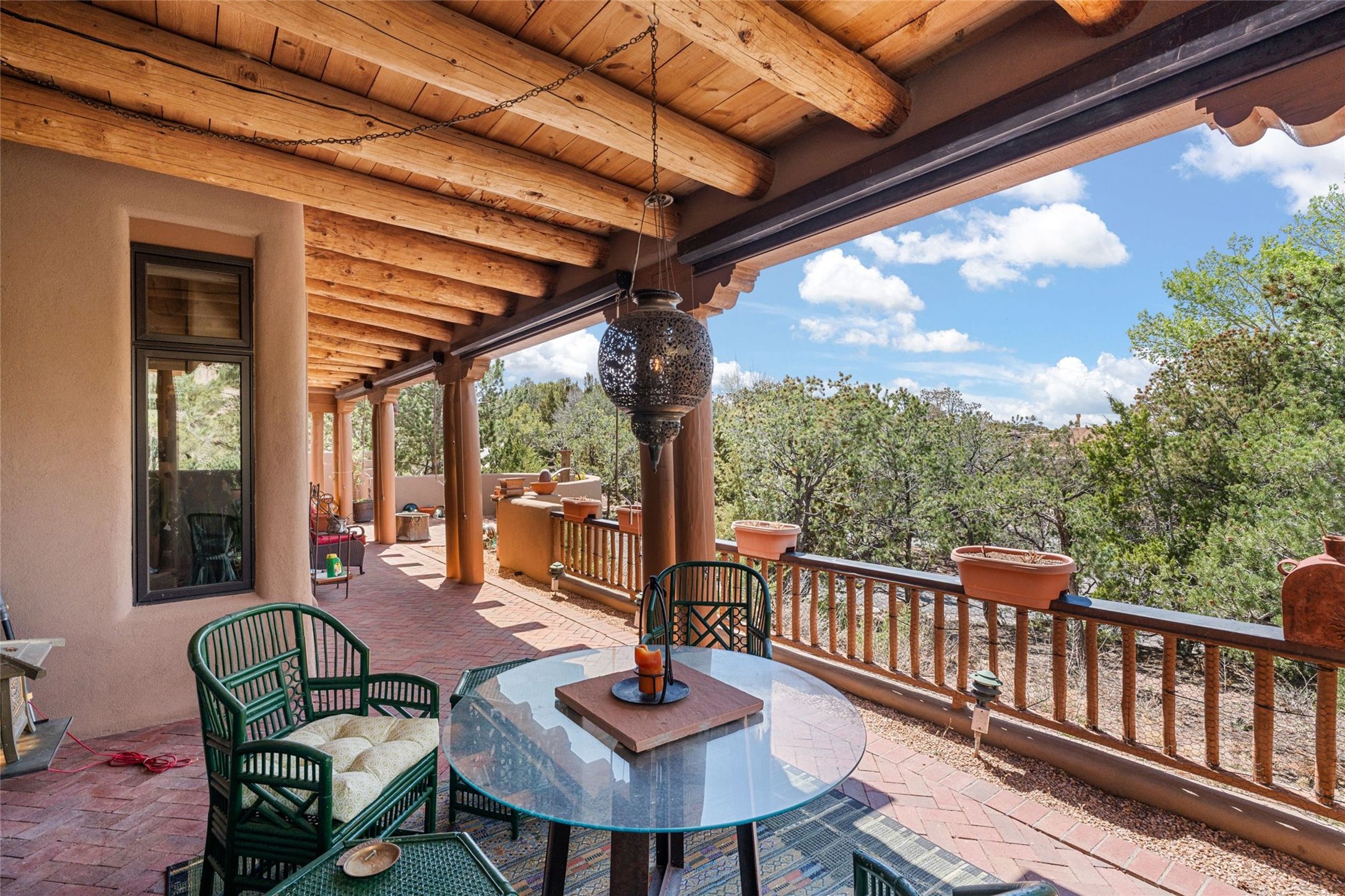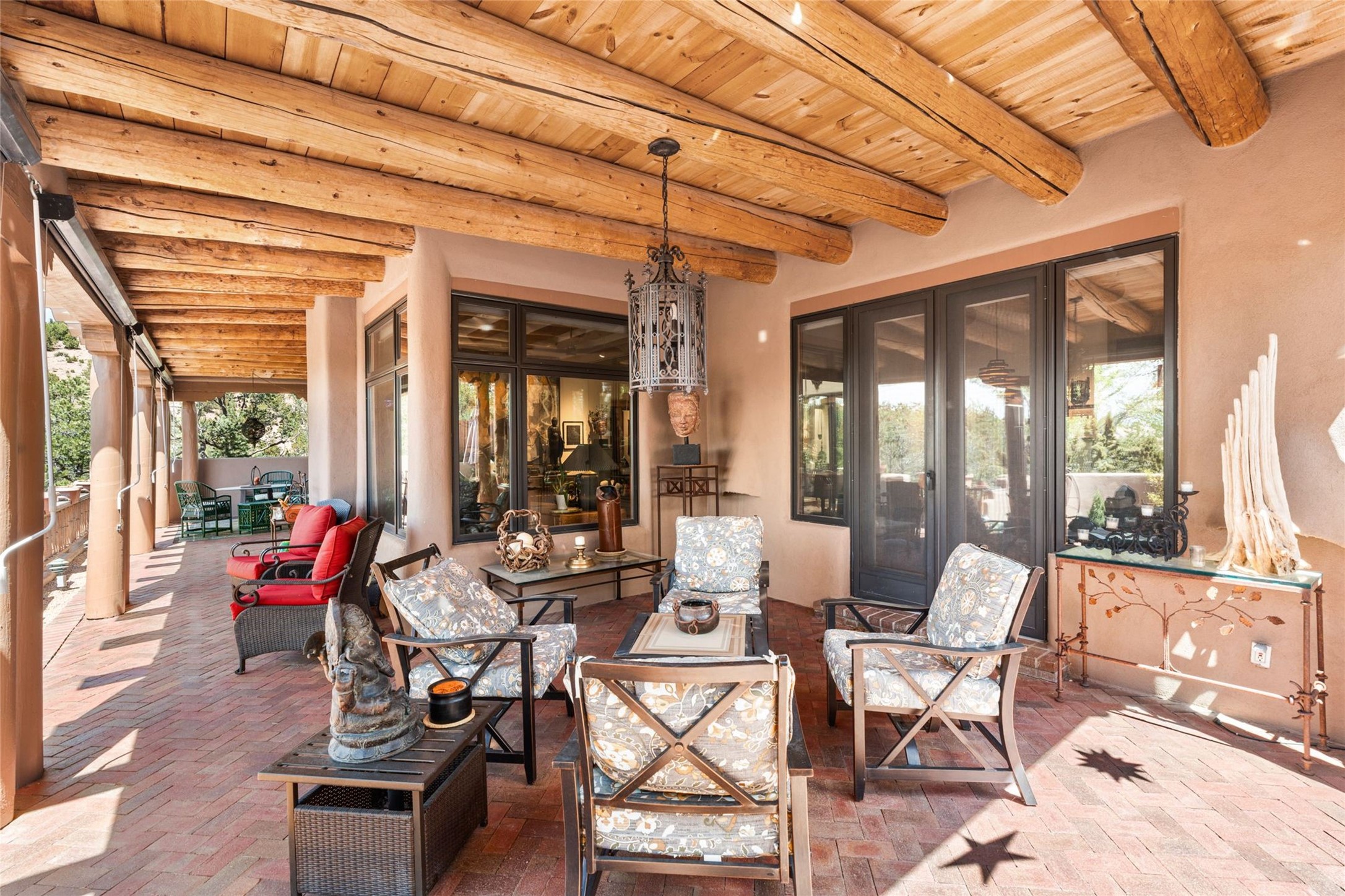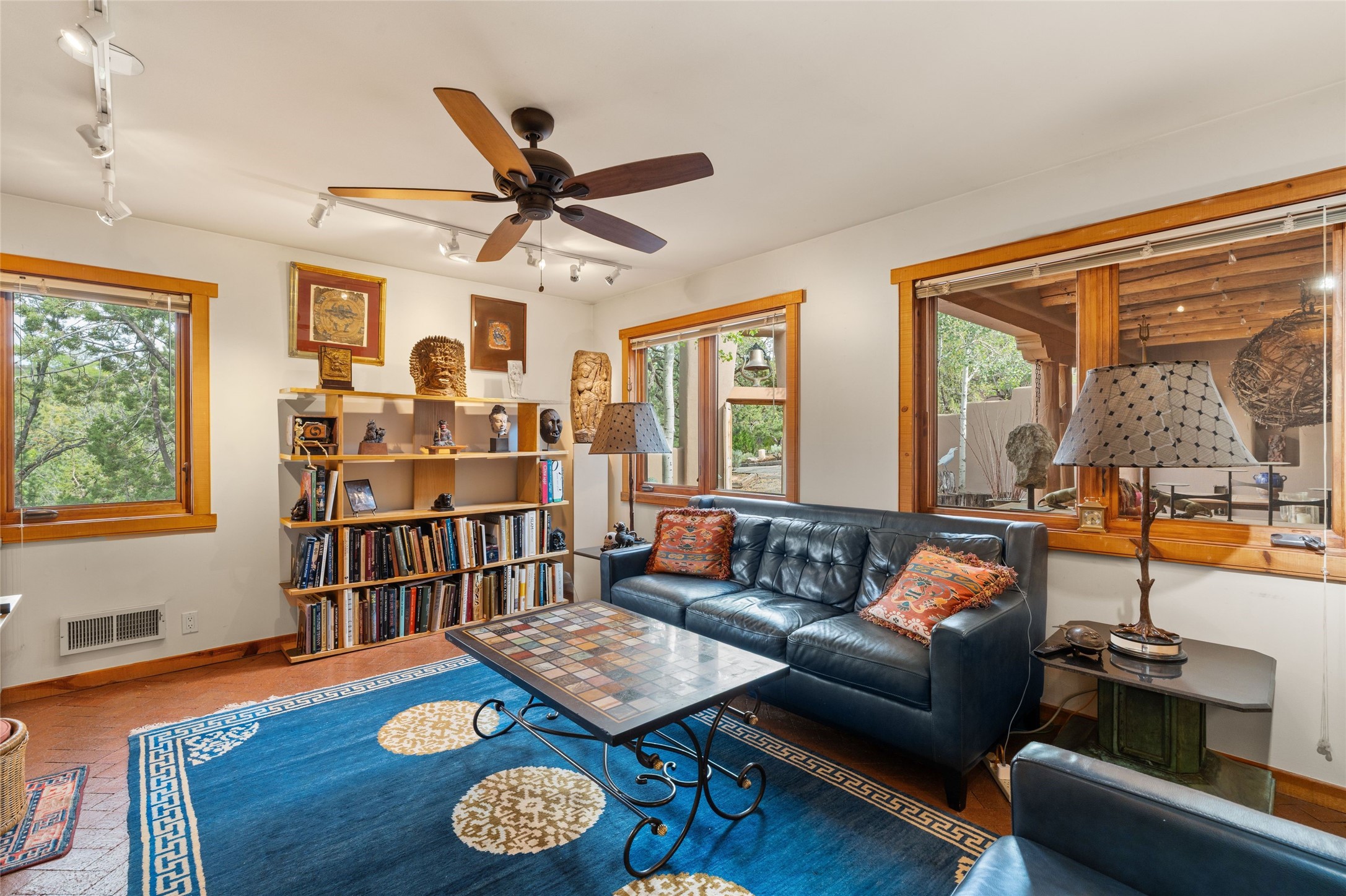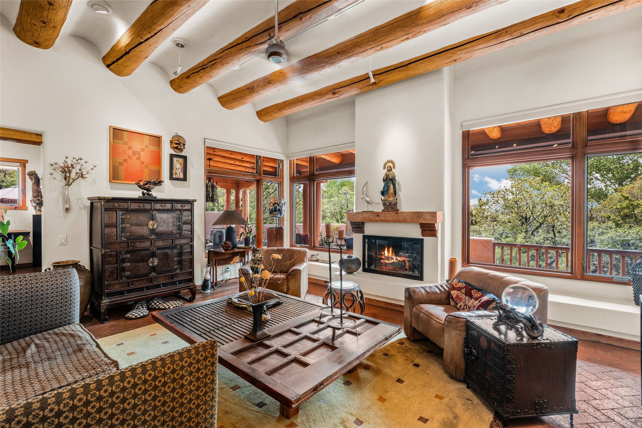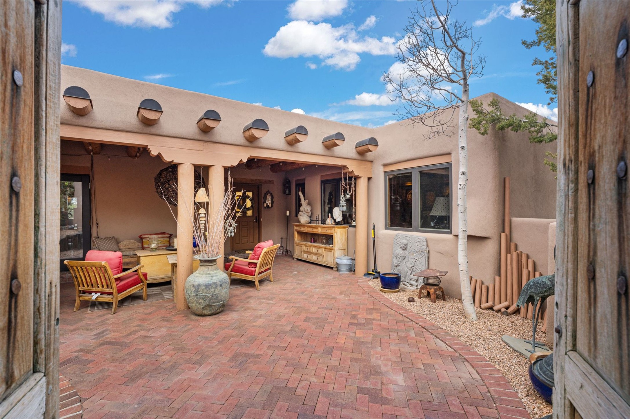 Delightful 3-bedroom, 3-bath condo located in a private setting in the sought-after gated community of 1000 East. This single-level residence offers the convenience of no interior steps, making it accessible and easy to navigate. The interior is an art collector's dream, complete with gallery track lighting throughout to beautifully showcase your favorite pieces. The gourmet kitchen, fully updated 2.5 years ago, features elegant glass front cabinets, a KitchenAid 6-burner stove/oven, and a second oven, making it perfect for both everyday meals and special gatherings. The spacious primary bedroom is a cozy retreat, complete with a gas fireplace and a private walk-out to the beckoning back patio/portal. The recently remodeled bath features a jetted tub and a separate walk-in closet for added benefit and luxury. The front entry courtyard and covered portal provide lovely outdoor spaces for relaxation, while the back courtyard wraps around the side of the house, offering additional room for outdoor enjoyment. Designed for privacy, the property features a private wall and coyote fence, along with a recirculating fountain and a grill connected to natural gas--ideal for entertaining or unwinding in your own oasis. With a 2-car garage and an EV charger, you'll enjoy modern amenities that cater to your lifestyle. Ideally located close to downtown Santa Fe, you'll have easy access to the vibrant culture, art, and dining the city has to offer.