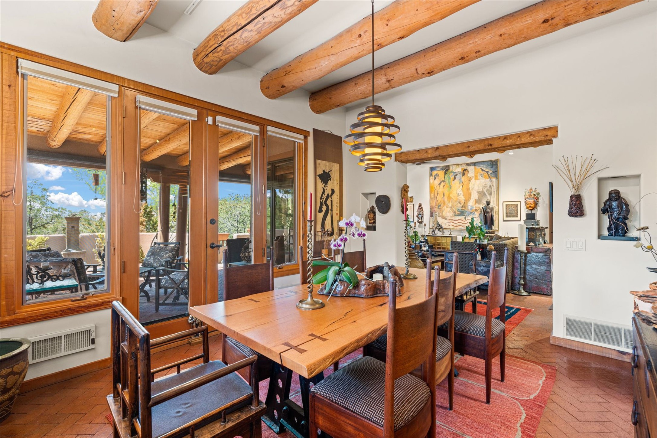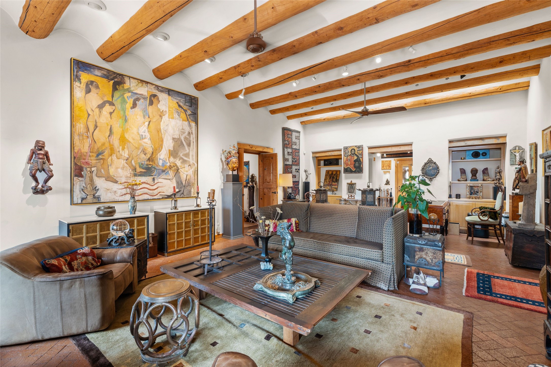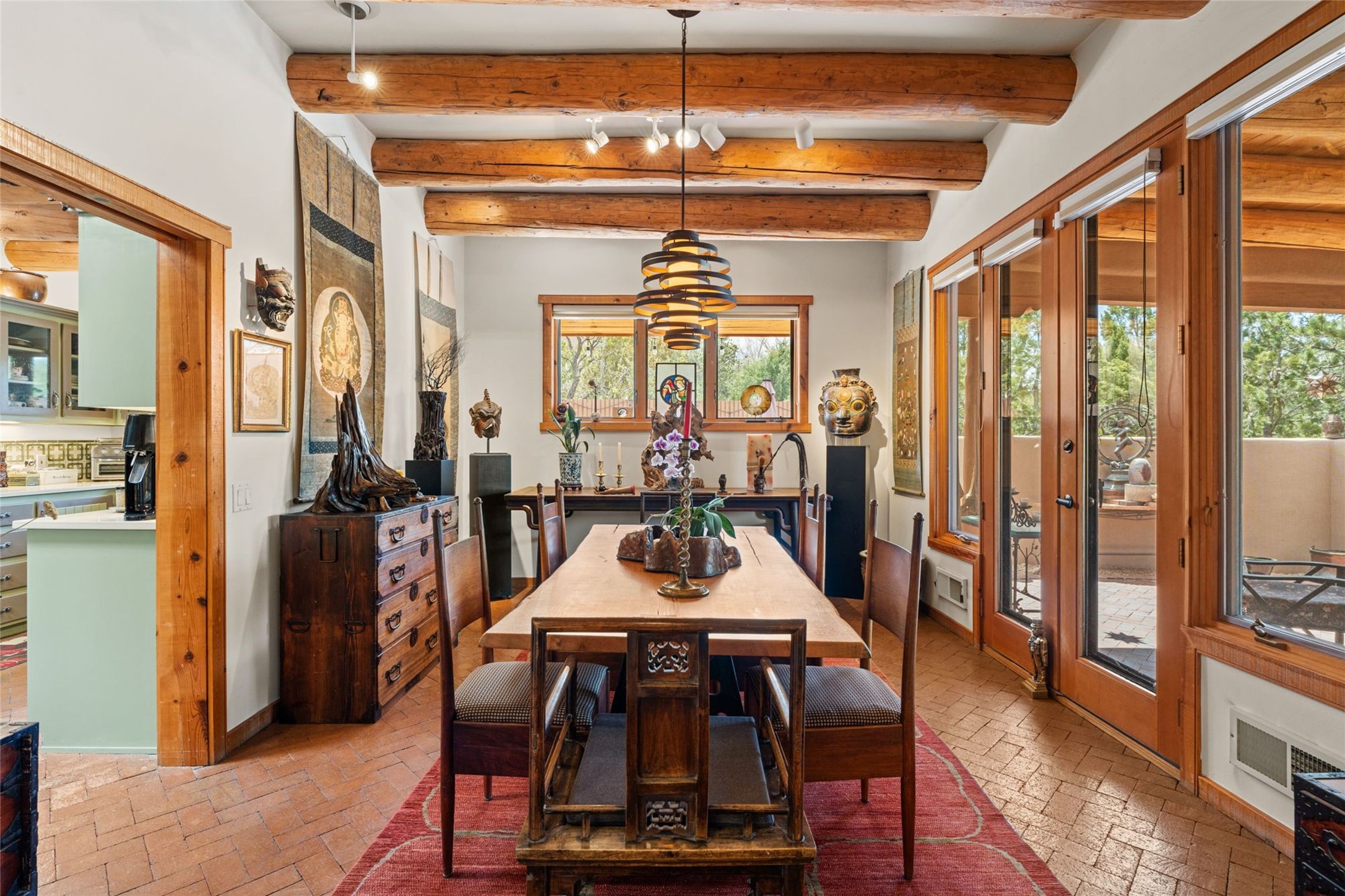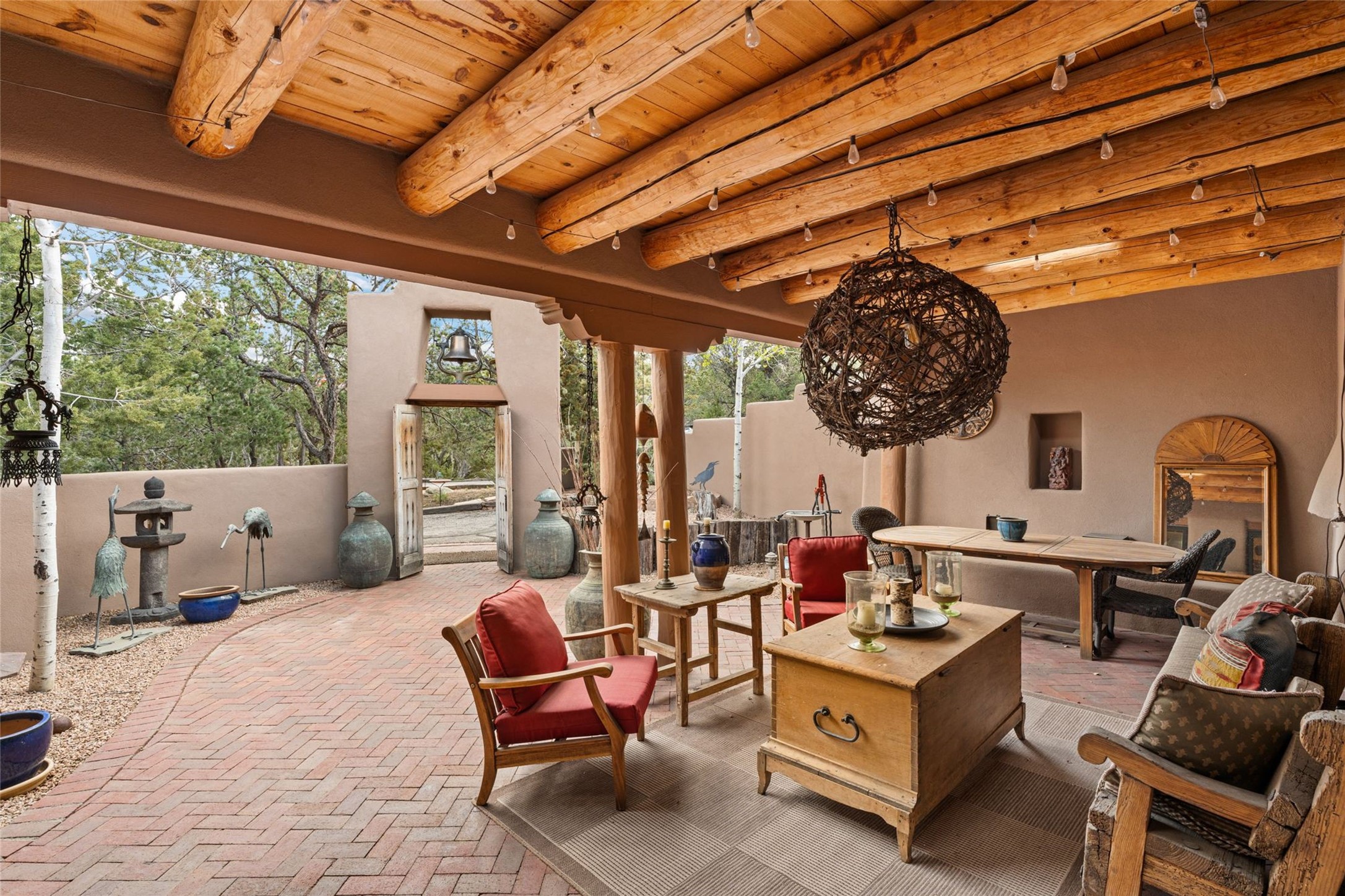 Delightful 3-bedroom, 3-bath condo located in a private setting in the sought-after gated community of 1000 East. This single-level residence offers the convenience of no interior steps, making it accessible and easy to navigate. The interior is an art collector's dream, complete with gallery track lighting throughout to beautifully showcase your favorite pieces. The gourmet kitchen, fully updated 2.5 years ago, features elegant glass front cabinets, a KitchenAid 6-burner stove/oven, and a second oven, making it perfect for both everyday meals and special gatherings. The spacious primary bedroom is a cozy retreat, complete with a gas fireplace and a private walk-out to the beckoning back patio/portal. The recently remodeled bath features a jetted tub and a separate walk-in closet for added benefit and luxury. The front entry courtyard and covered portal provide lovely outdoor spaces for relaxation, while the back courtyard wraps around the side of the house, offering additional room for outdoor enjoyment. Designed for privacy, the property features a private wall and coyote fence, along with a recirculating fountain and a grill connected to natural gas--ideal for entertaining or unwinding in your own oasis. With a 2-car garage and an EV charger, you'll enjoy modern amenities that cater to your lifestyle. Ideally located close to downtown Santa Fe, you'll have easy access to the vibrant culture, art, and dining the city has to offer.