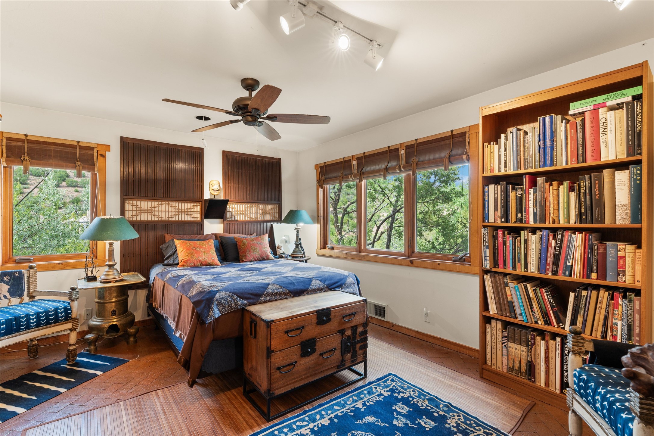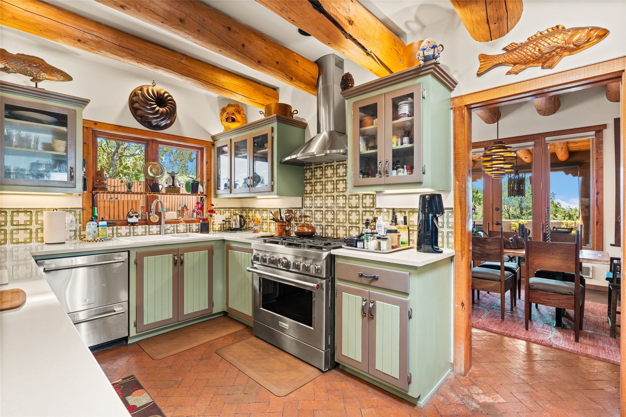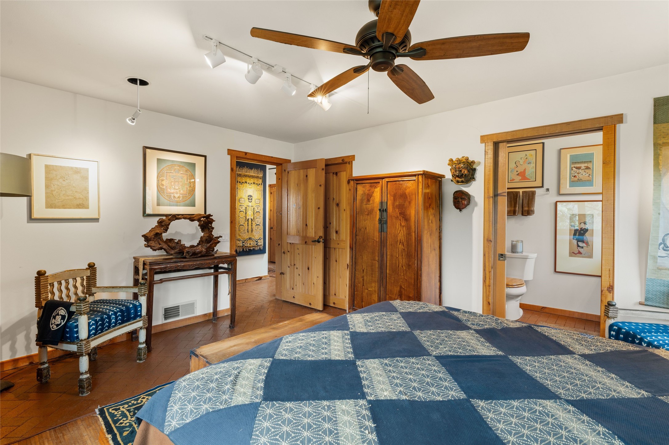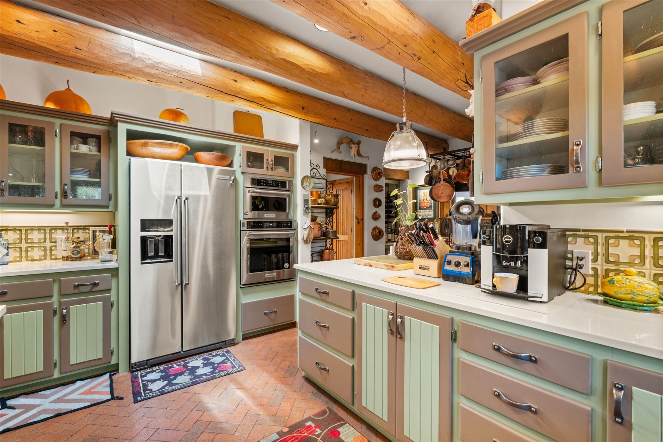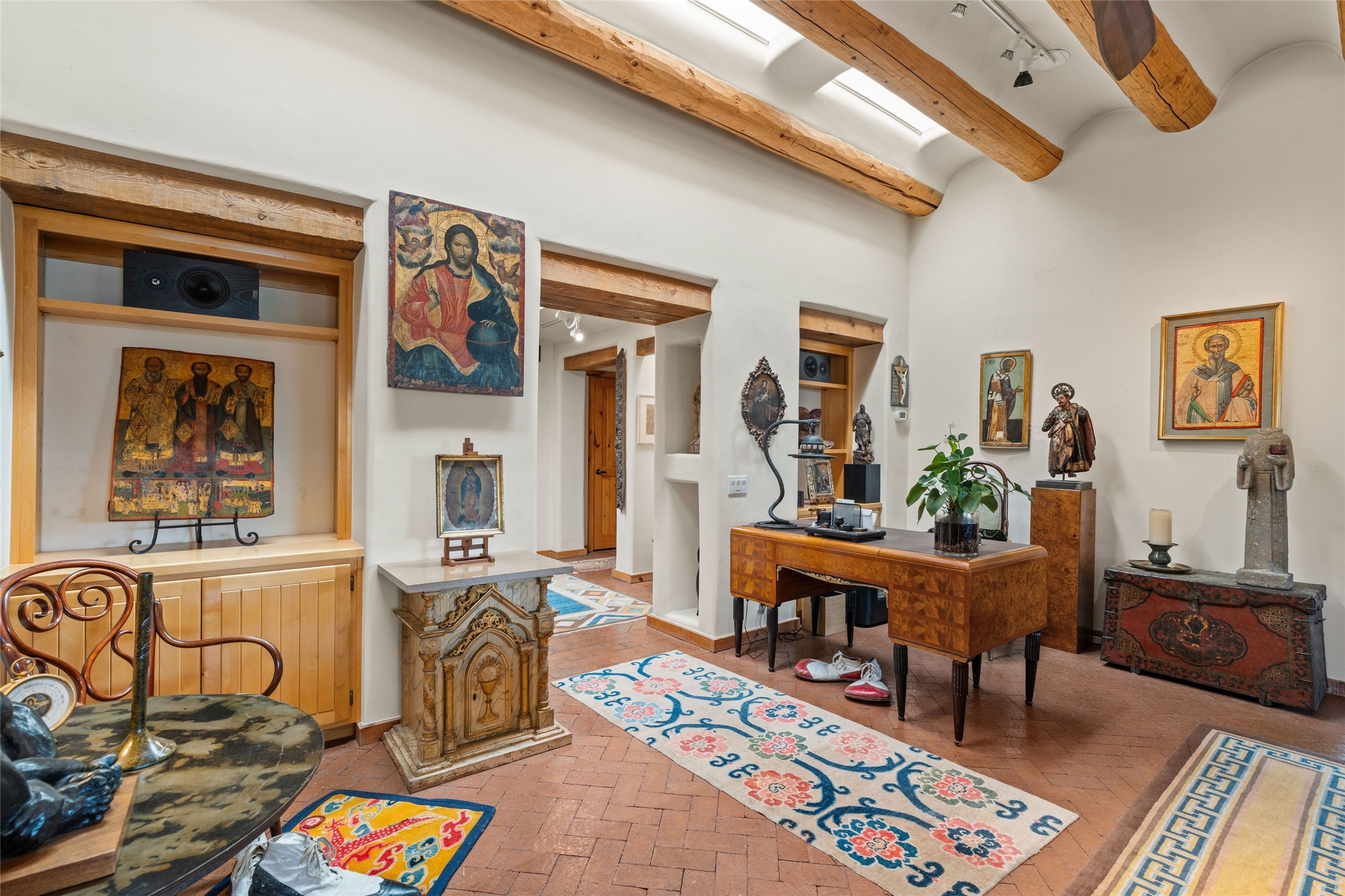 Delightful 3-bedroom, 3-bath condo located in a private setting in the sought-after gated community of 1000 East. This single-level residence offers the convenience of no interior steps, making it accessible and easy to navigate. The interior is an art collector's dream, complete with gallery track lighting throughout to beautifully showcase your favorite pieces. The gourmet kitchen, fully updated 2.5 years ago, features elegant glass front cabinets, a KitchenAid 6-burner stove/oven, and a second oven, making it perfect for both everyday meals and special gatherings. The spacious primary bedroom is a cozy retreat, complete with a gas fireplace and a private walk-out to the beckoning back patio/portal. The recently remodeled bath features a jetted tub and a separate walk-in closet for added benefit and luxury. The front entry courtyard and covered portal provide lovely outdoor spaces for relaxation, while the back courtyard wraps around the side of the house, offering additional room for outdoor enjoyment. Designed for privacy, the property features a private wall and coyote fence, along with a recirculating fountain and a grill connected to natural gas--ideal for entertaining or unwinding in your own oasis. With a 2-car garage and an EV charger, you'll enjoy modern amenities that cater to your lifestyle. Ideally located close to downtown Santa Fe, you'll have easy access to the vibrant culture, art, and dining the city has to offer.