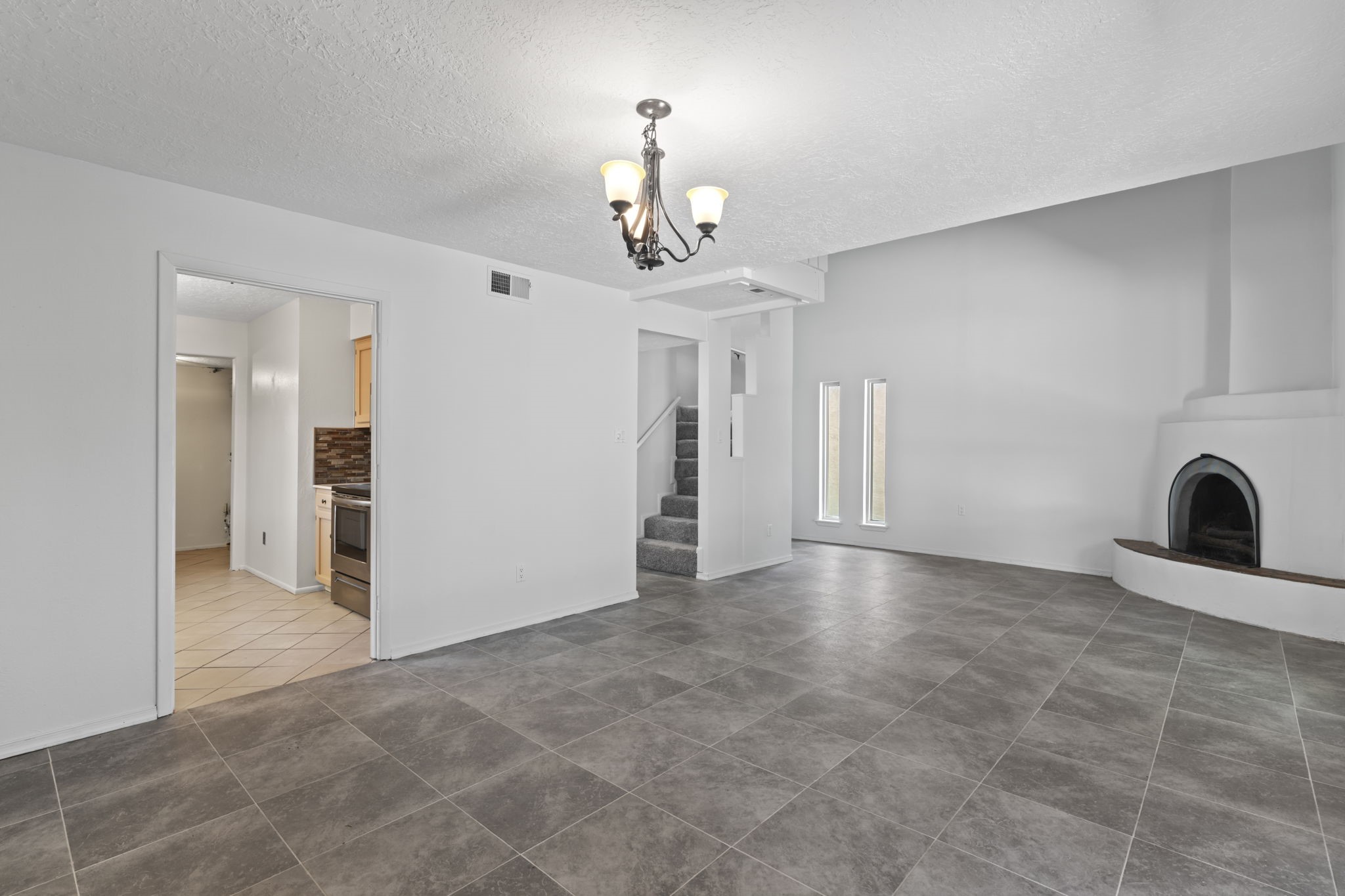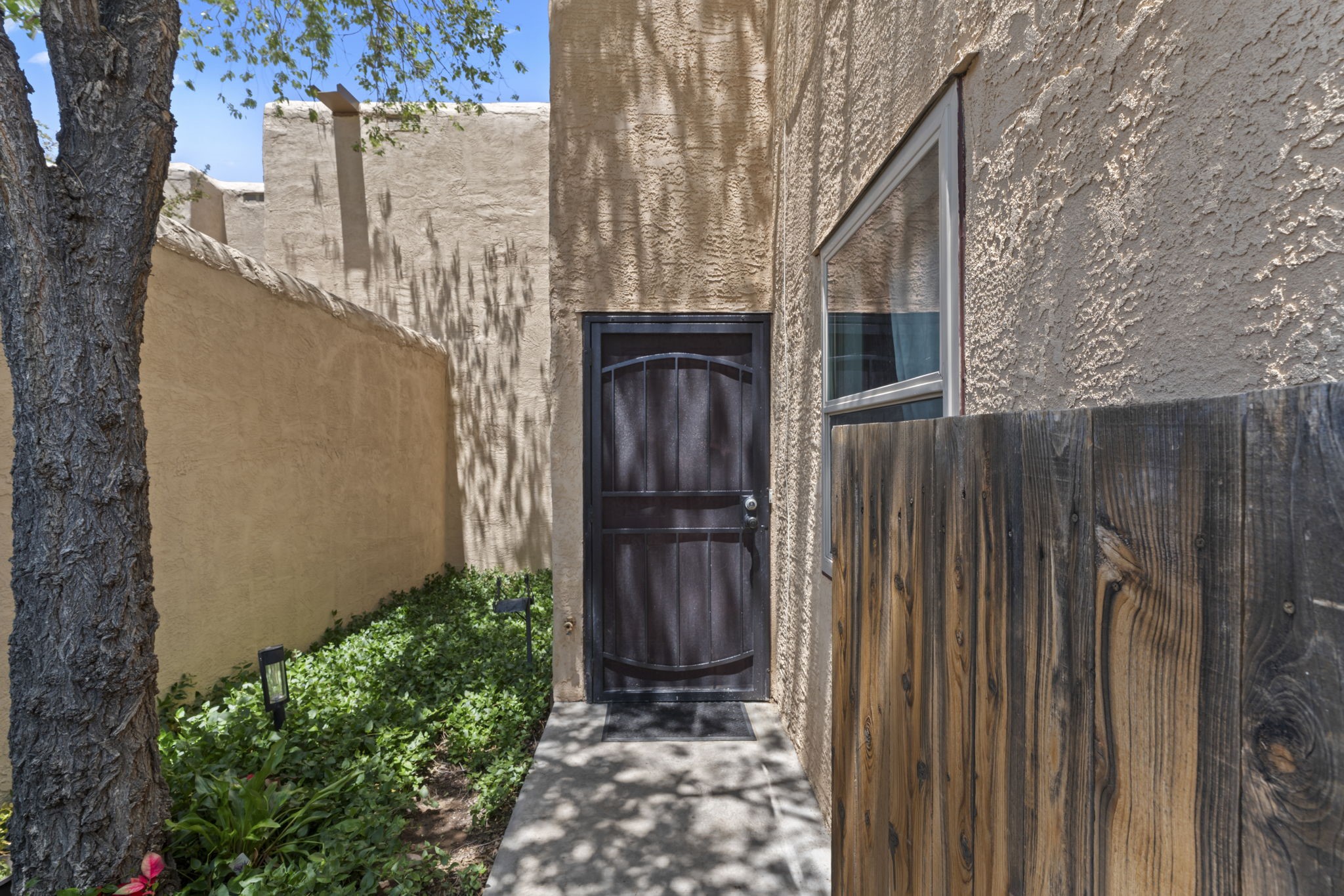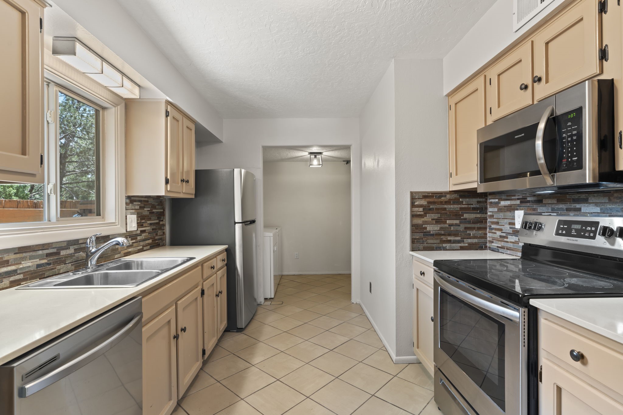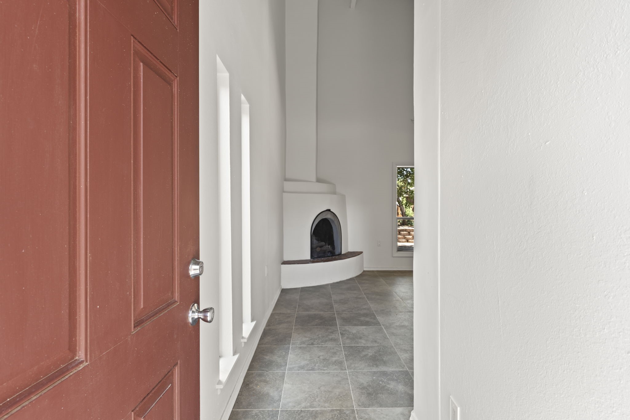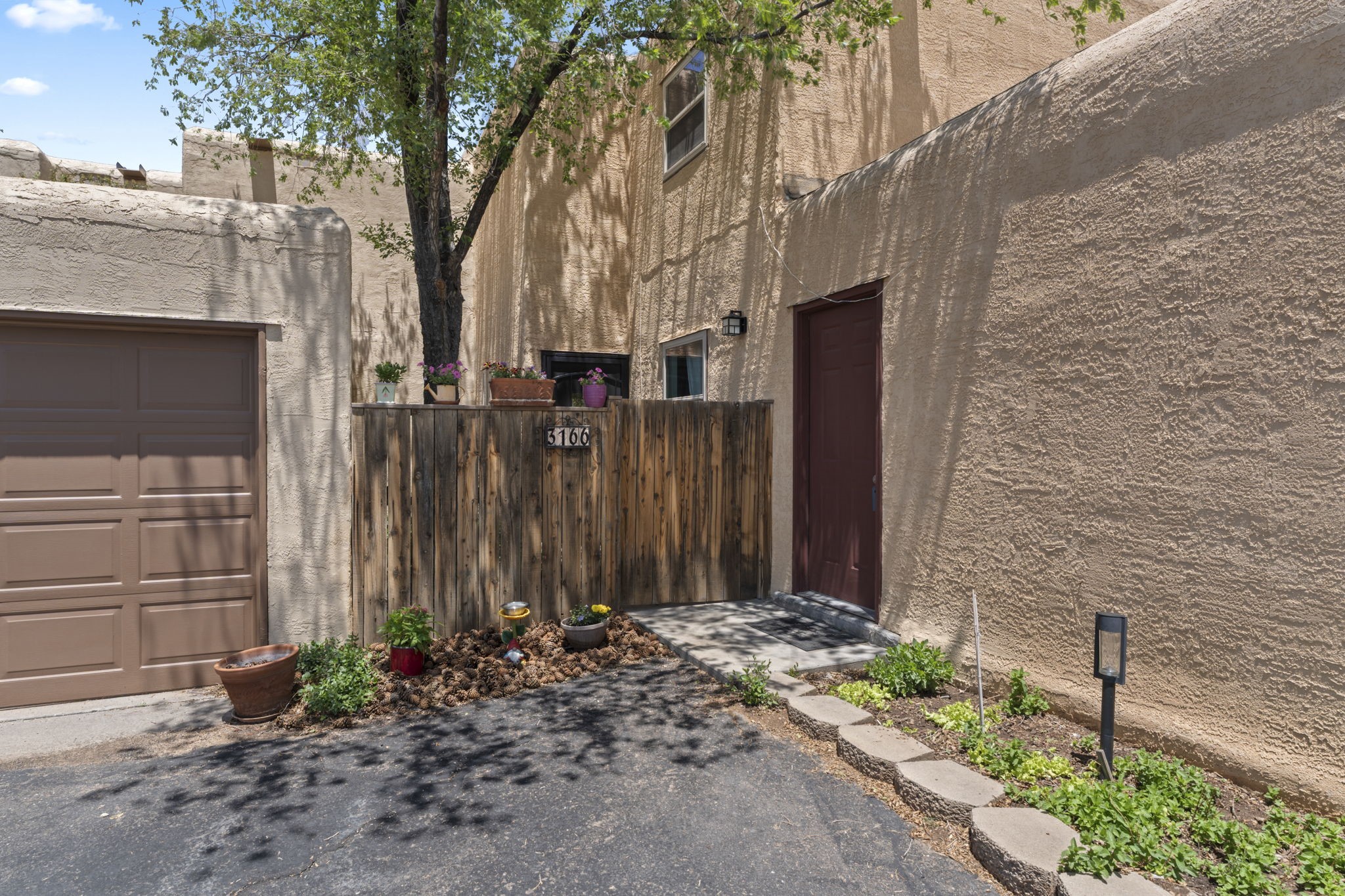 Welcome to this beautifully updated two-story townhouse nestled in the highly sought-after Park Plazas community--where convenience meets comfort and charm. This 3-bedroom, 1.5-bath home features a 2-car garage with a brand-new garage door, all in a neighborhood known for its extensive walking trails, off-leash dog park, tennis and pickleball courts, RV storage, and well-managed HOA.Step inside to a dramatic living room with two-story high ceilings, rich architectural detail, and a cozy corner Kiva-style wood-burning fireplace. The adjoining dining area and living room showcase newer 18" tile flooring and open seamlessly to a fully enclosed, professionally landscaped backyard. Enjoy crisp Santa Fe evenings around the built-in firepit--your own private oasis for entertaining or relaxing.The kitchen is a dream with all-new appliances, Corian countertops, and an eye-catching tile backsplash. A separate laundry room off the kitchen offers abundant shelving and a newer washer. The downstairs bedroom and powder room offer flexibility for guests or a home office.Upstairs, two sunlit bedrooms feature new engineered wood floors and share a stylish Jack and Jill bathroom adorned with colorful Talavera tile accents. Thoughtful upgrades throughout include newer light fixtures, windows, a 2023 water heater, and recently new furnace and refrigerated A/C.With exceptional interior character, practical updates, and access to a vibrant community filled with amenities, this Park Plazas gem is truly a rare find. Don't miss your chance to own a move-in-ready home in one of Santa Fe's most livable neighborhoods!