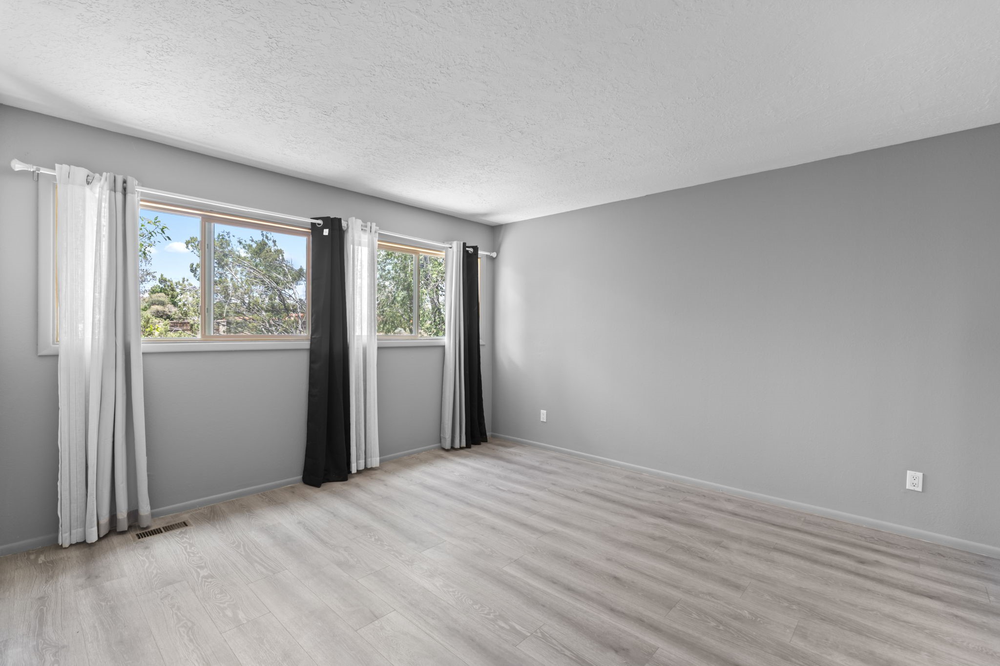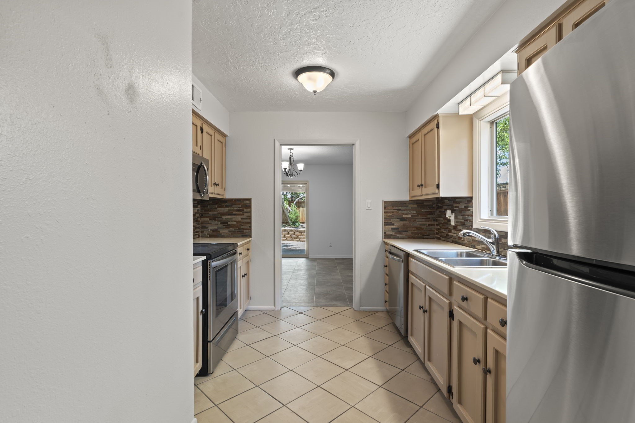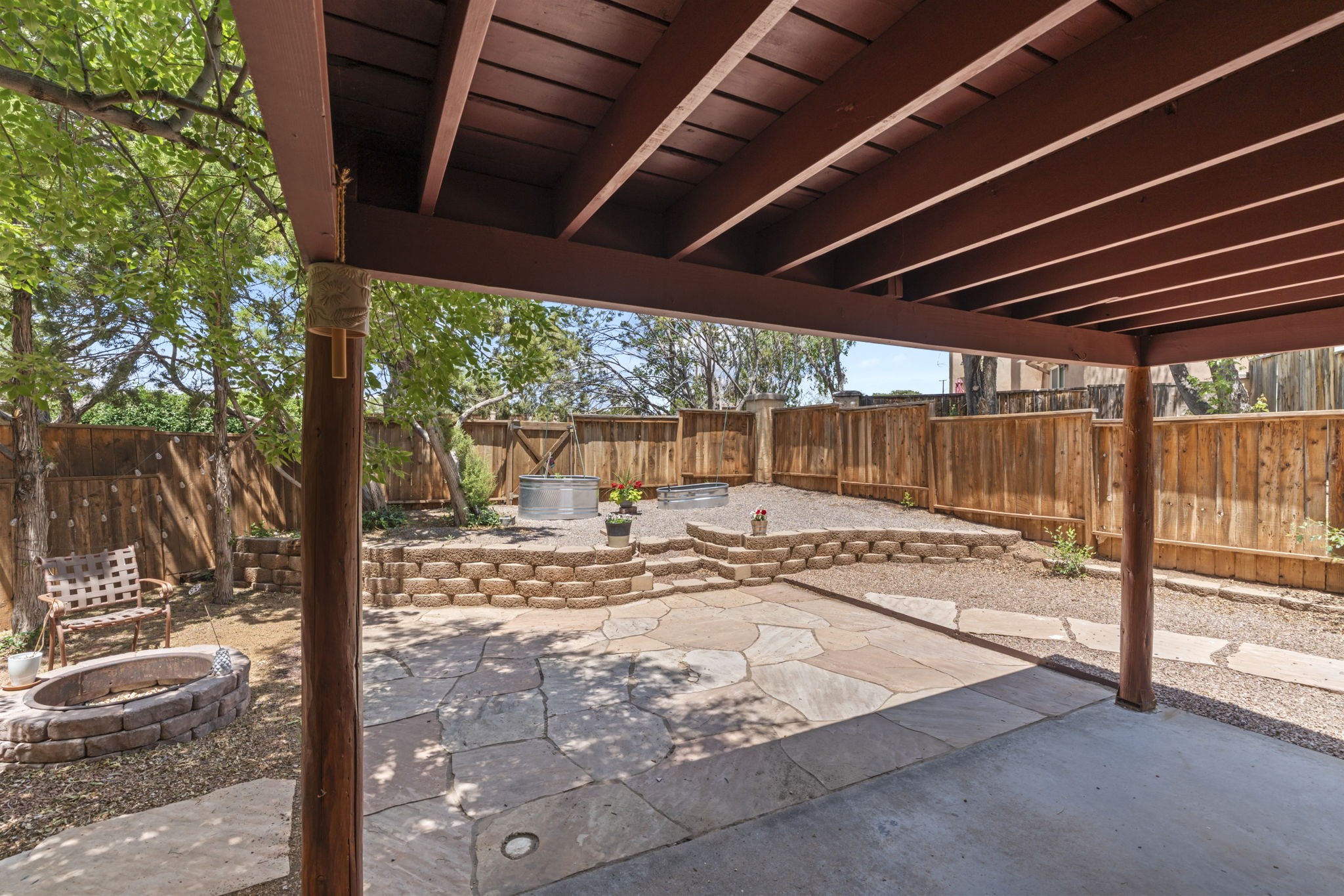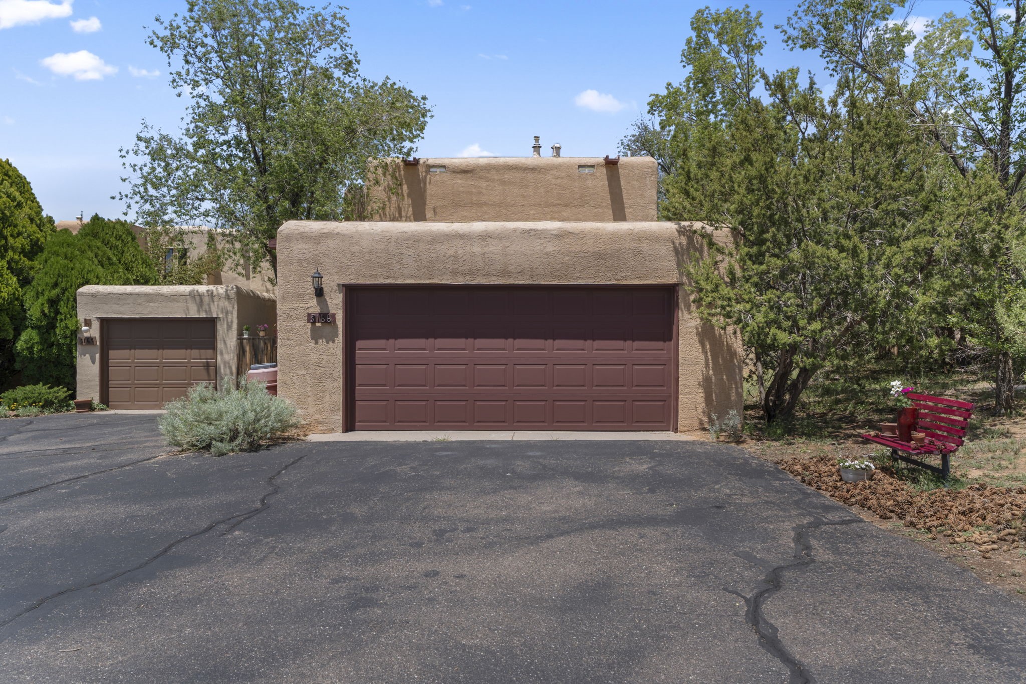 Welcome to this beautifully updated two-story townhouse nestled in the highly sought-after Park Plazas community--where convenience meets comfort and charm. This 3-bedroom, 1.5-bath home features a 2-car garage with a brand-new garage door, all in a neighborhood known for its extensive walking trails, off-leash dog park, tennis and pickleball courts, RV storage, and well-managed HOA.Step inside to a dramatic living room with two-story high ceilings, rich architectural detail, and a cozy corner Kiva-style wood-burning fireplace. The adjoining dining area and living room showcase newer 18" tile flooring and open seamlessly to a fully enclosed, professionally landscaped backyard. Enjoy crisp Santa Fe evenings around the built-in firepit--your own private oasis for entertaining or relaxing.The kitchen is a dream with all-new appliances, Corian countertops, and an eye-catching tile backsplash. A separate laundry room off the kitchen offers abundant shelving and a newer washer. The downstairs bedroom and powder room offer flexibility for guests or a home office.Upstairs, two sunlit bedrooms feature new engineered wood floors and share a stylish Jack and Jill bathroom adorned with colorful Talavera tile accents. Thoughtful upgrades throughout include newer light fixtures, windows, a 2023 water heater, and recently new furnace and refrigerated A/C.With exceptional interior character, practical updates, and access to a vibrant community filled with amenities, this Park Plazas gem is truly a rare find. Don't miss your chance to own a move-in-ready home in one of Santa Fe's most livable neighborhoods!