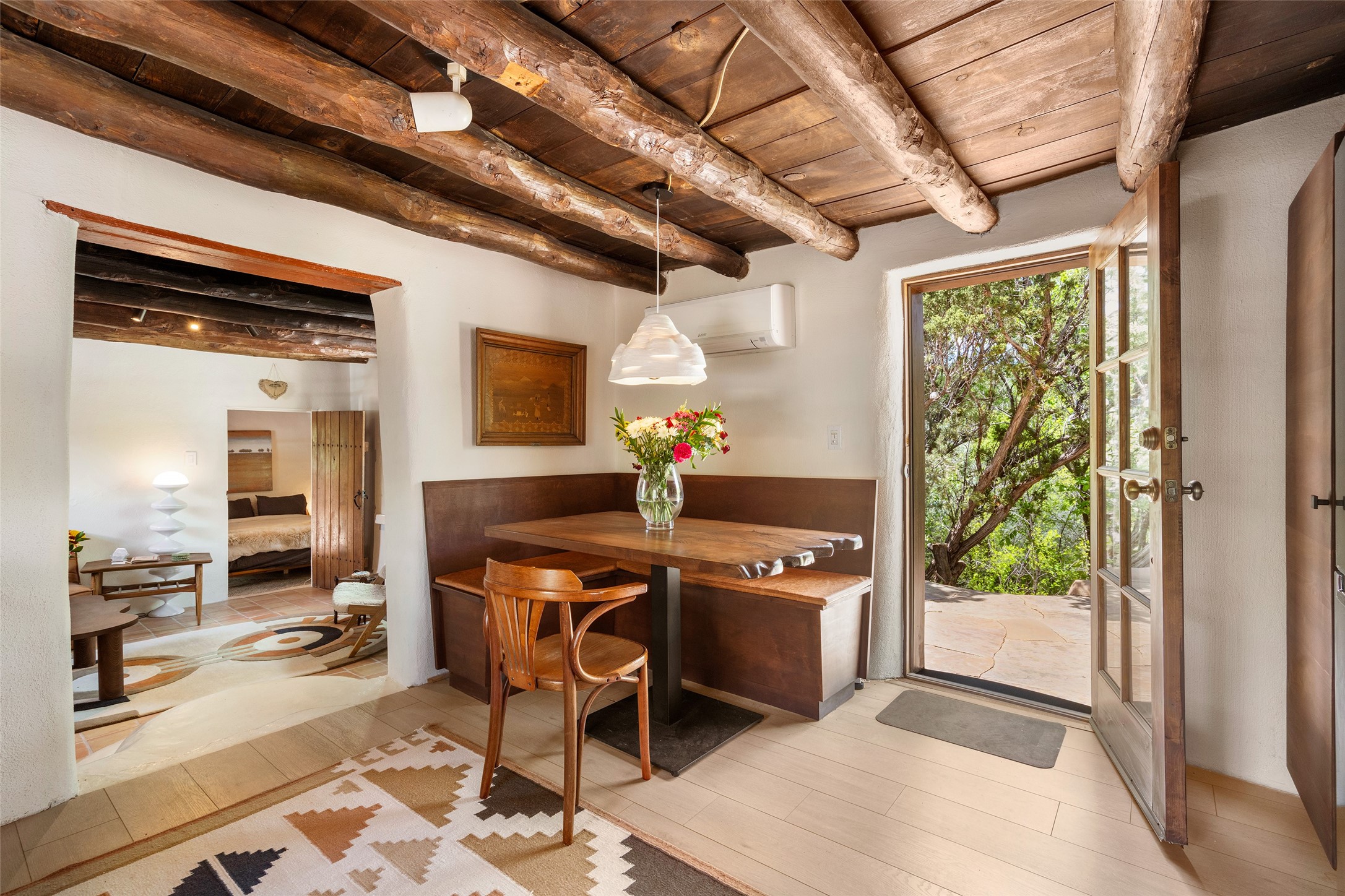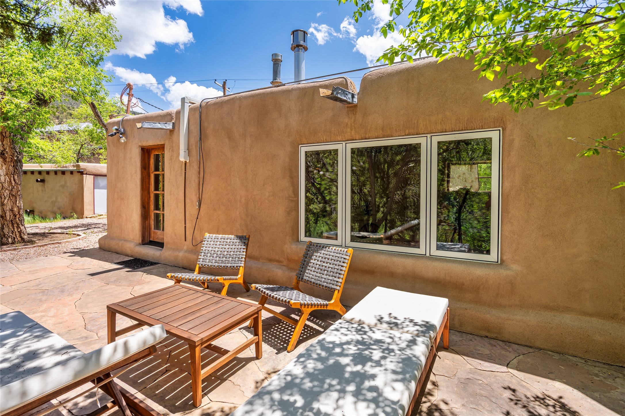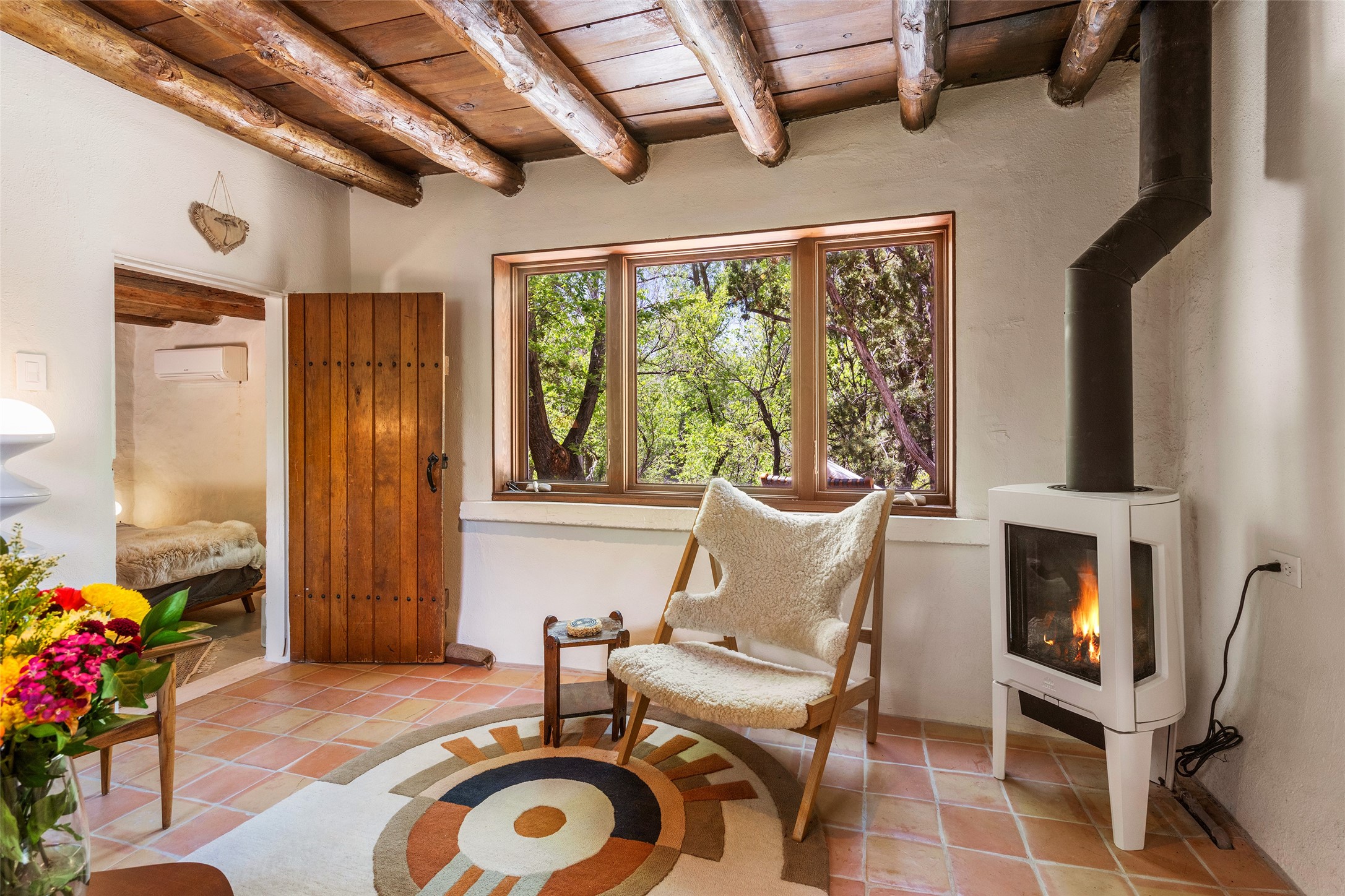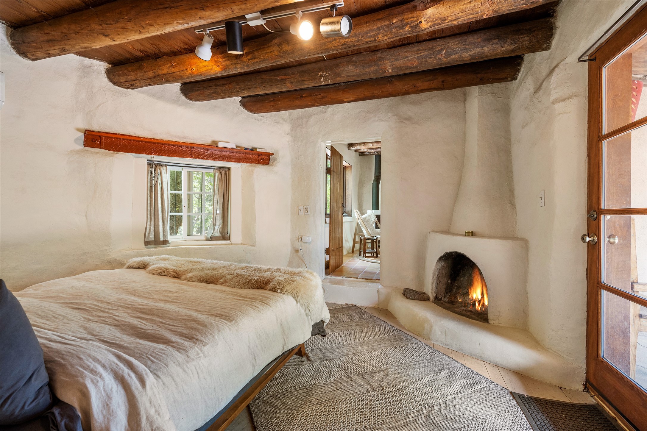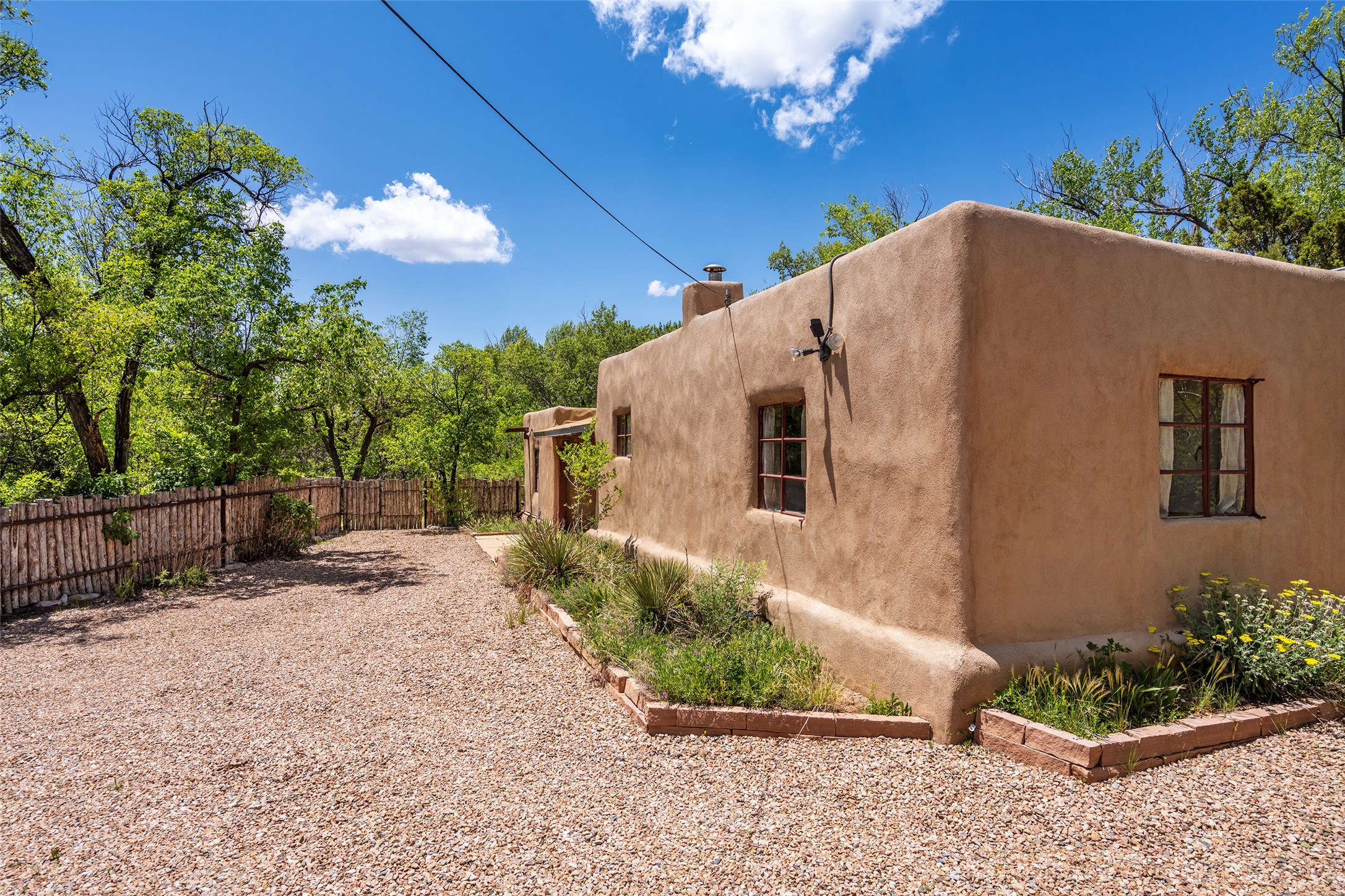 Adorable, authentic adobe home sits atop an absolutely perfect, lush 3/4 acre Canyon Road lot overlooking 260 feet of river frontage, huge trees, meadow with fields/orchard area. Simply charming adobe features 1 bedroom 1 bath with beautiful viga ceilings, 2 kiva fireplaces, gas freestanding stove, absolutely charming kitchen in the perfect Upper Canyon location. The home is beyond charming. Potential expansion available on this beautiful lot. Listen to sounds of the rushing Santa Fe River in your backyard and in the meadow below! Very special adobe casita, on an exquisite lot and in a tremendous location surrounded by grand multi-million dollar estates! If you love nature, hiking and the outdoors, this is a dream spot! Across the street from Dale Ball Trails and just down the street from the SF Conservancy and Randall Davey Auduban center. Please request proposed build plan of home and guest with beautiful orchard along the river! This can be a primary residence or a get-away cabin with so much more potential to expand! One-of-a-kind opportunity! Dale Ball trails directly out your front door and the River trail directly out your back door! Doesn't get any easier than this! Incredible!!
