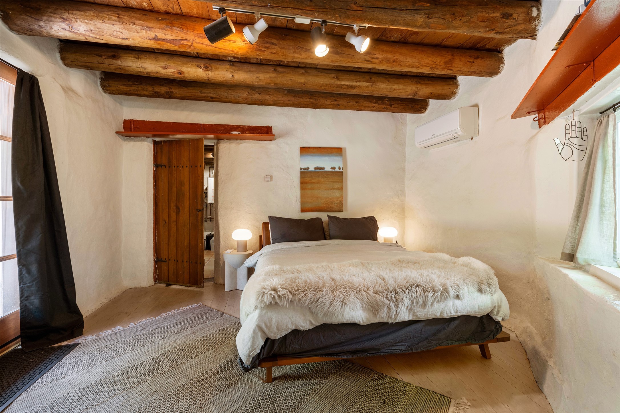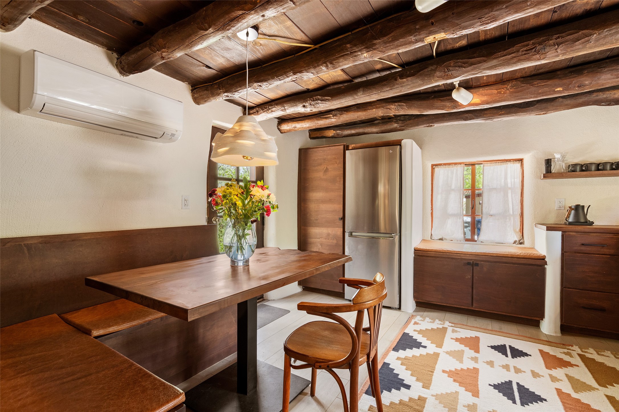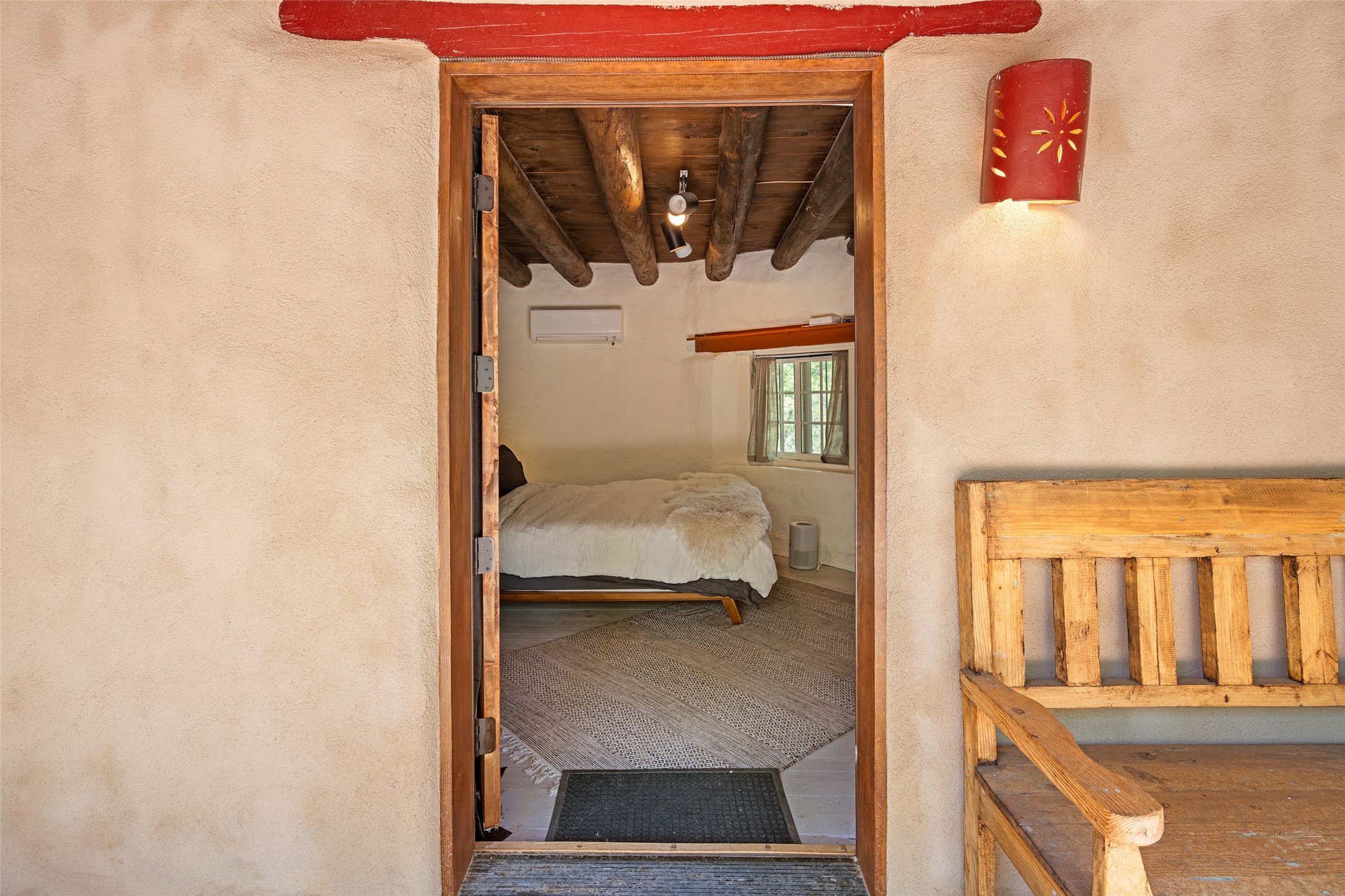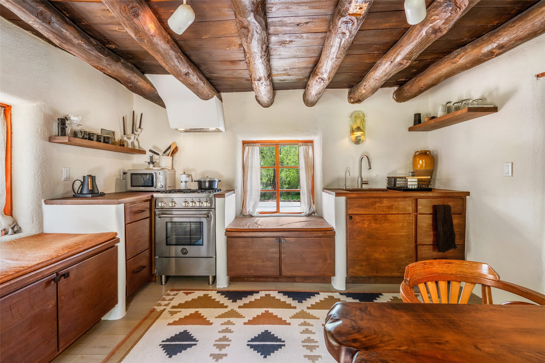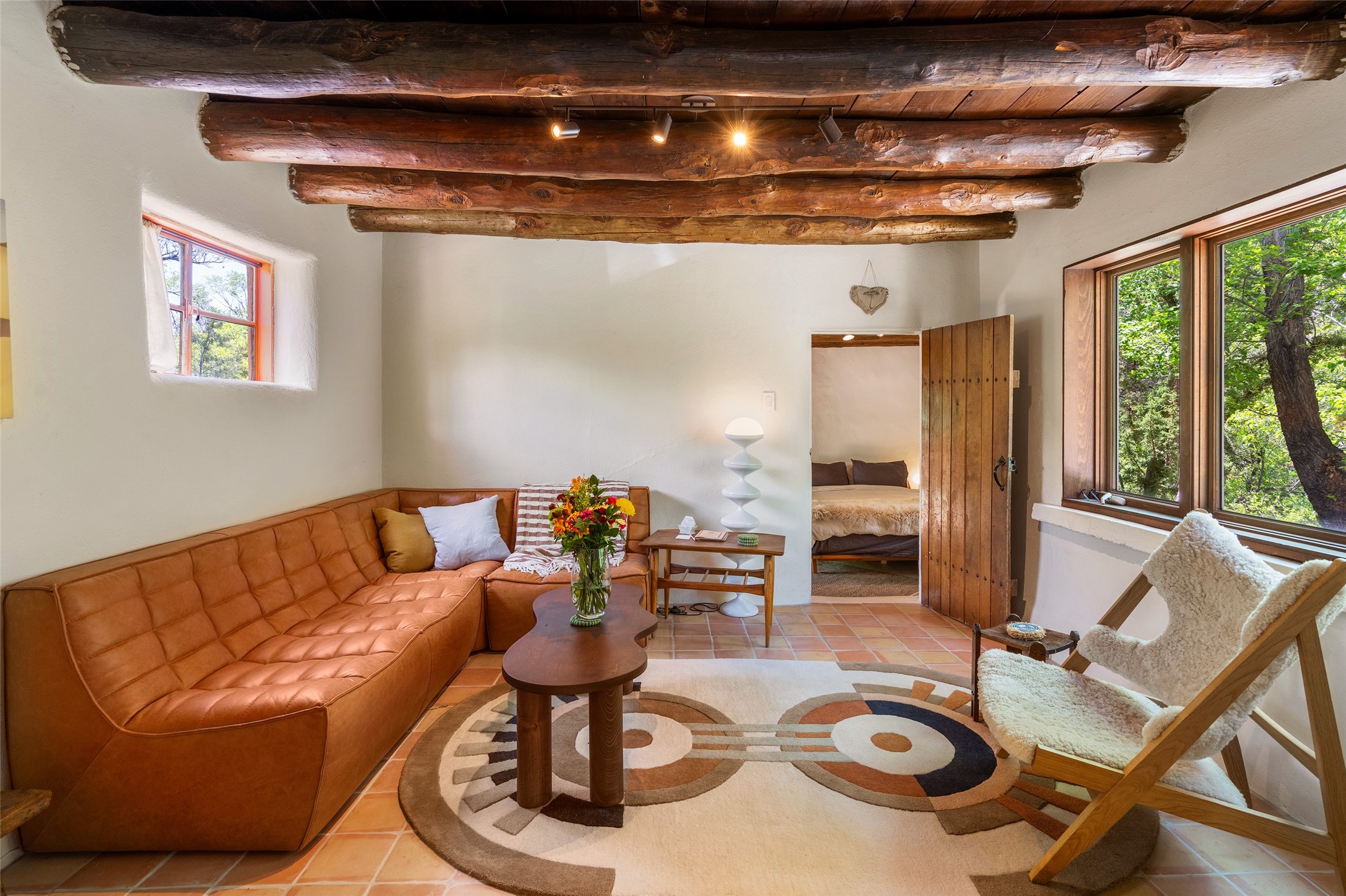 Adorable, authentic adobe home sits atop an absolutely perfect, lush 3/4 acre Canyon Road lot overlooking 260 feet of river frontage, huge trees, meadow with fields/orchard area. Simply charming adobe features 1 bedroom 1 bath with beautiful viga ceilings, 2 kiva fireplaces, gas freestanding stove, absolutely charming kitchen in the perfect Upper Canyon location. The home is beyond charming. Potential expansion available on this beautiful lot. Listen to sounds of the rushing Santa Fe River in your backyard and in the meadow below! Very special adobe casita, on an exquisite lot and in a tremendous location surrounded by grand multi-million dollar estates! If you love nature, hiking and the outdoors, this is a dream spot! Across the street from Dale Ball Trails and just down the street from the SF Conservancy and Randall Davey Auduban center. Please request proposed build plan of home and guest with beautiful orchard along the river! This can be a primary residence or a get-away cabin with so much more potential to expand! One-of-a-kind opportunity! Dale Ball trails directly out your front door and the River trail directly out your back door! Doesn't get any easier than this! Incredible!!