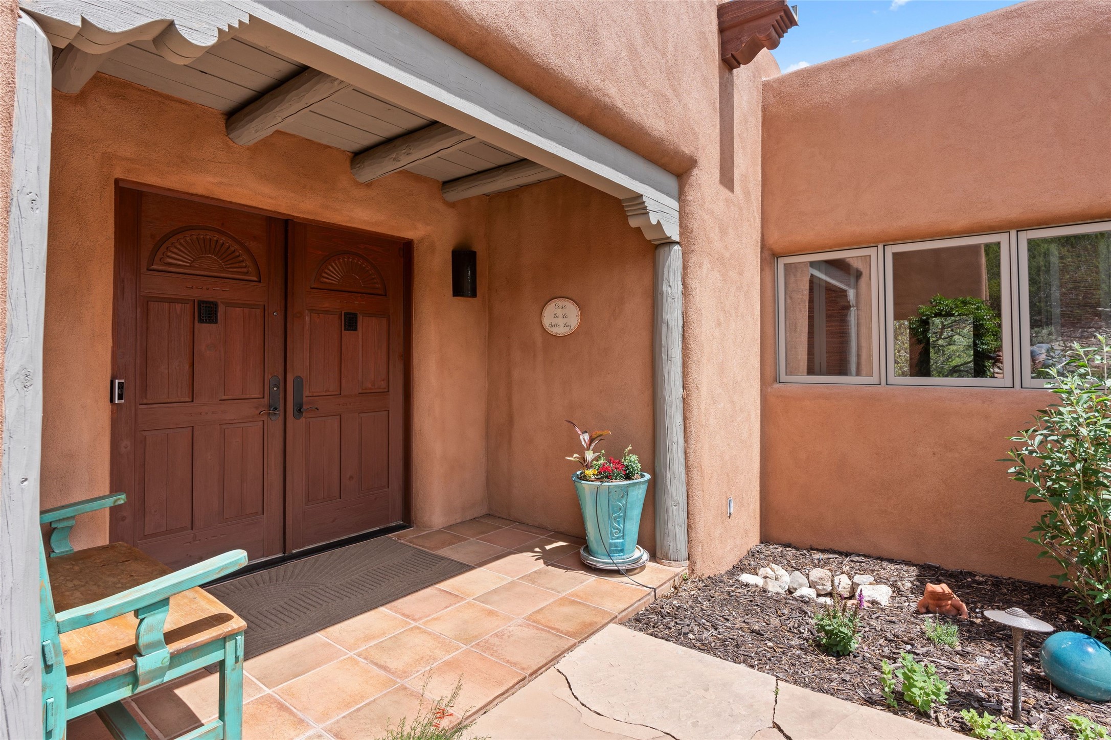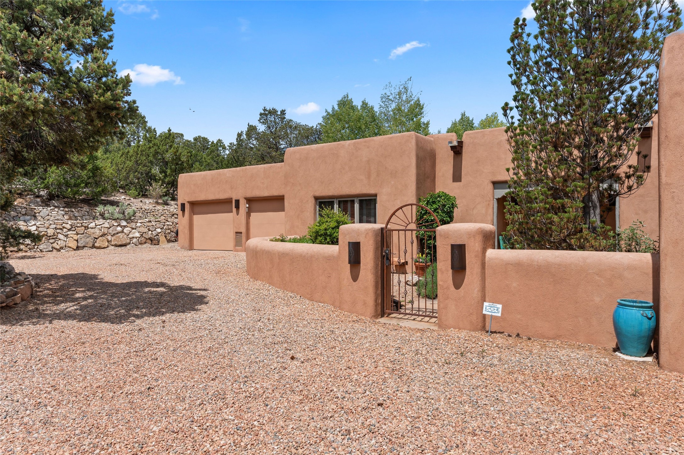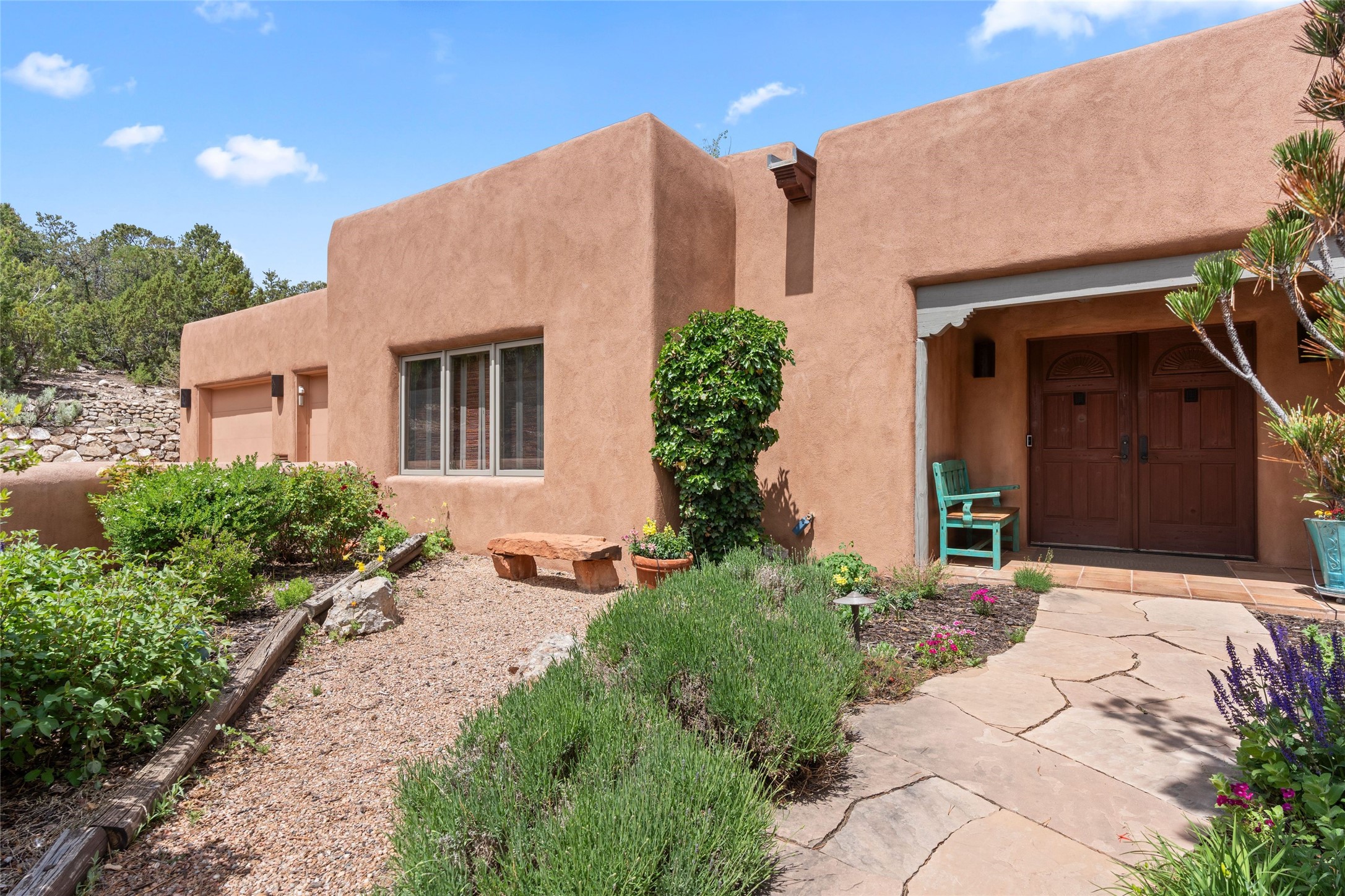 Tucked into the serene hills just above the historic Santa Fe Plaza, this timeless adobe-style residence offers the quintessential blend of Southwestern charm and refined privacy. With over 3,000 square feet of elegant living space, this three-bedroom sanctuary also includes a versatile den or office--perfect for quiet workdays or creative pursuits.Classic vigas, kiva fireplaces, and thick plaster walls showcase the rich architectural heritage of Northern New Mexico, while expansive windows frame peek-a-boo views of the surrounding mountains and distant sunsets. Thoughtfully positioned for tranquility, the property feels worlds away yet remains just minutes from the heart of Santa Fe's galleries, shops, and world-class dining.The open floor plan includes amazing access to multiple outdoor portals. Located on the main level, the primary suite features wood floors, his / hers closets and a sitting room just off the bath. On lower level you will find 2 guest bedrooms and a full bathroom. Whether hosting under the stars on a peaceful patio or retreating into a cozy reading nook, this home embodies the spirit of Santa Fe living--where authenticity meets effortless comfort.