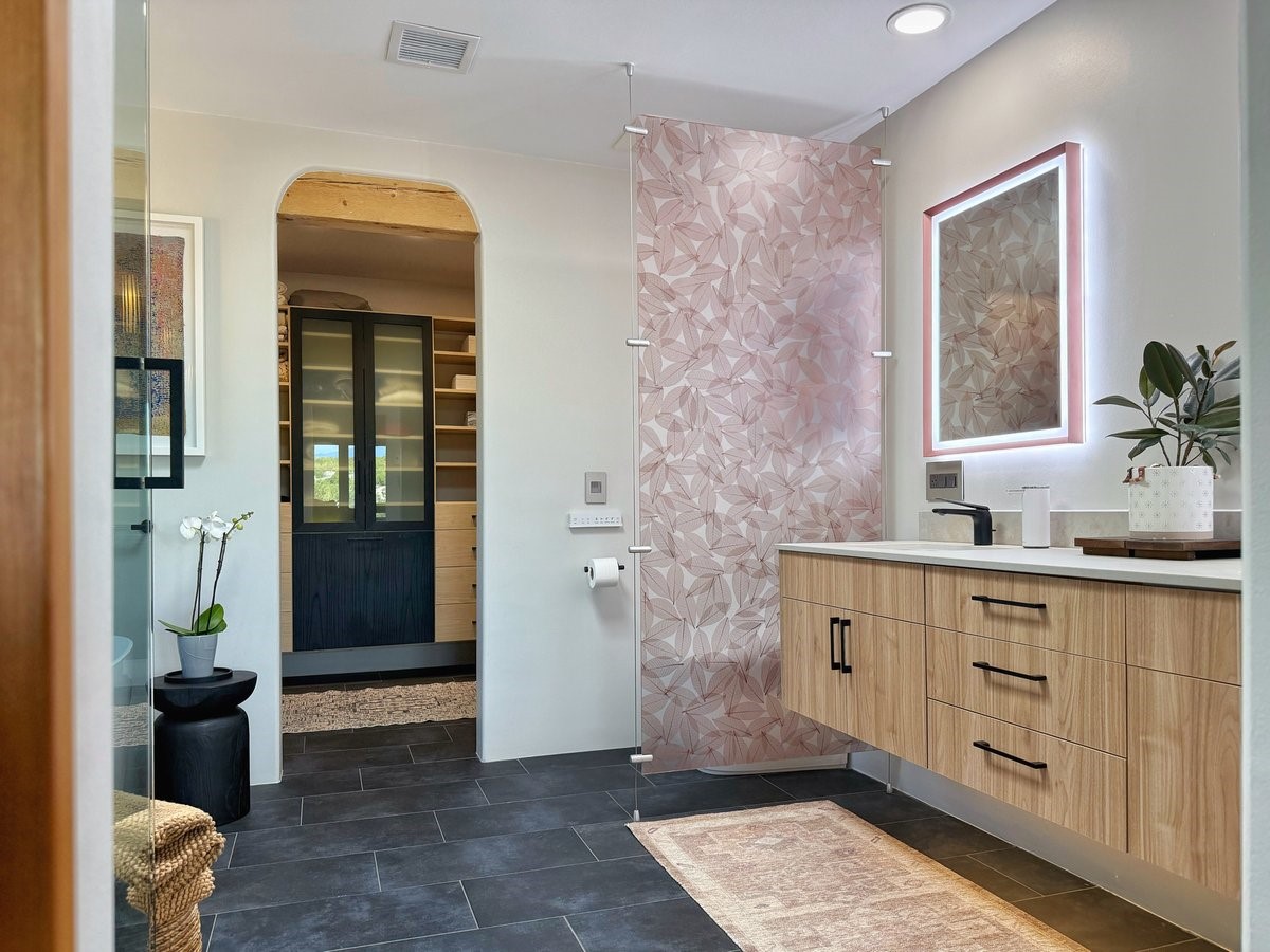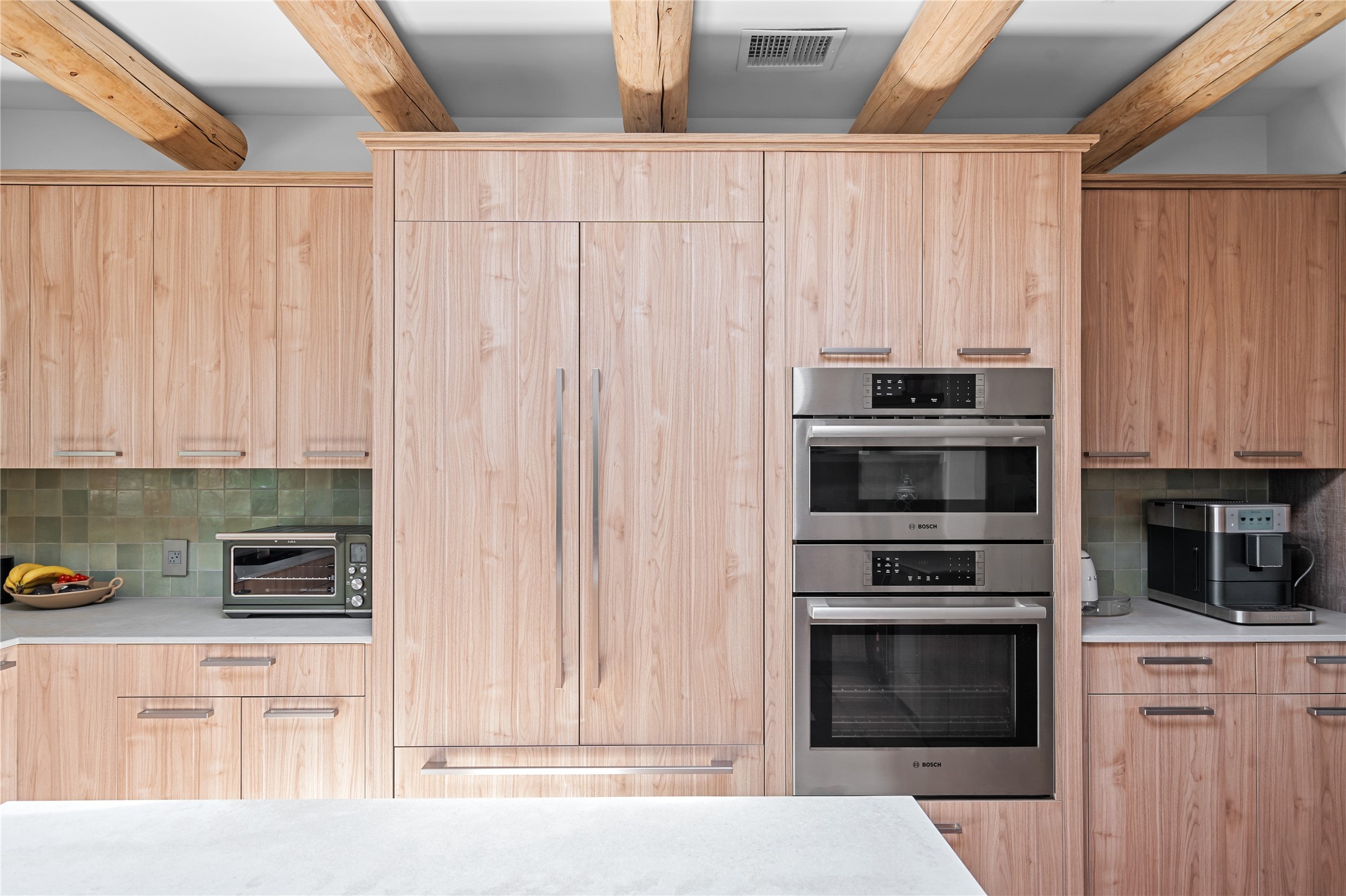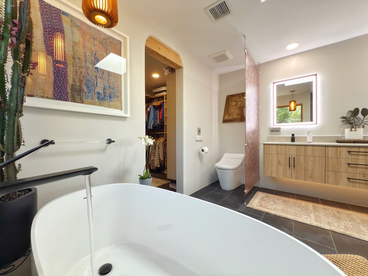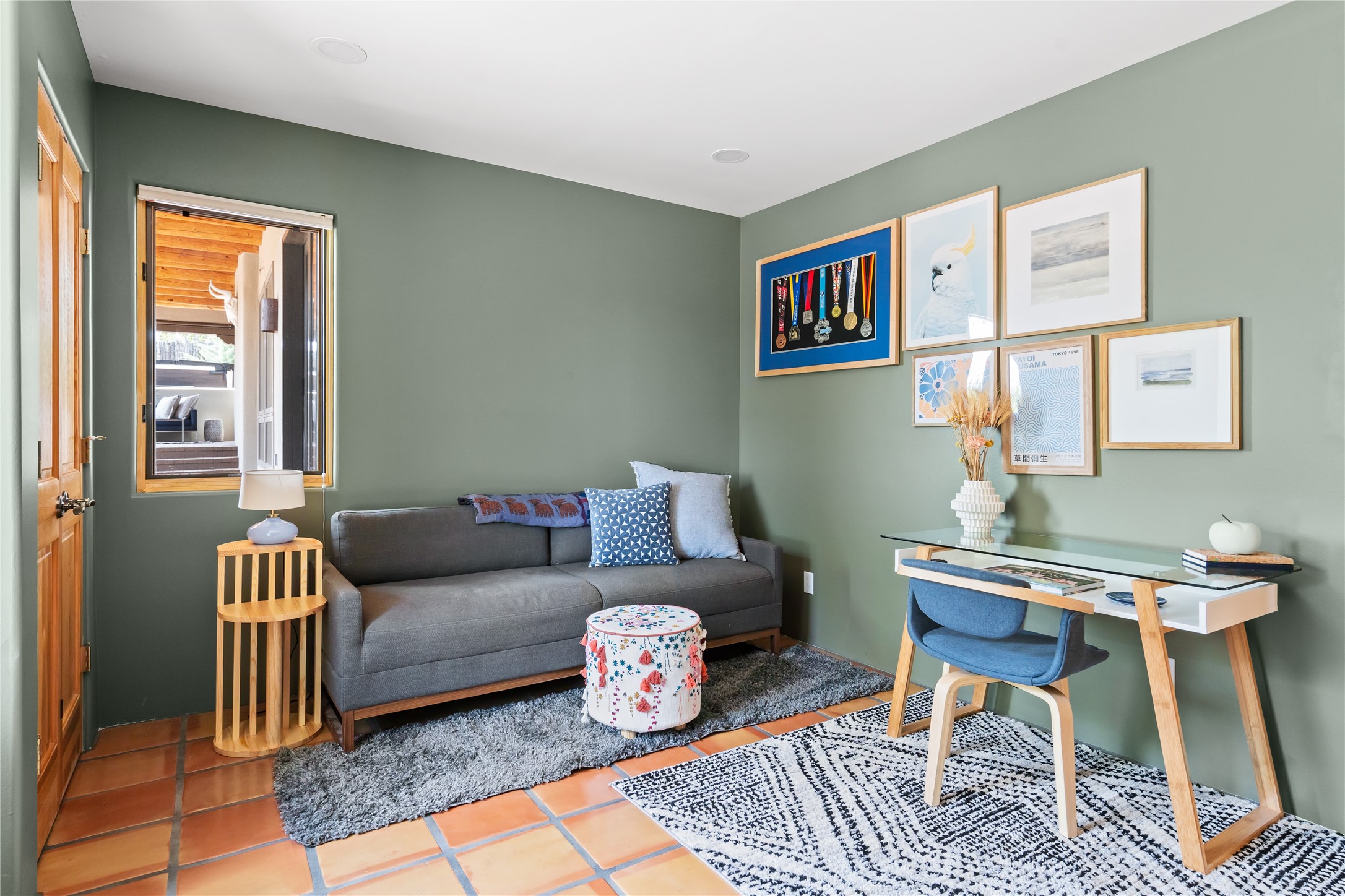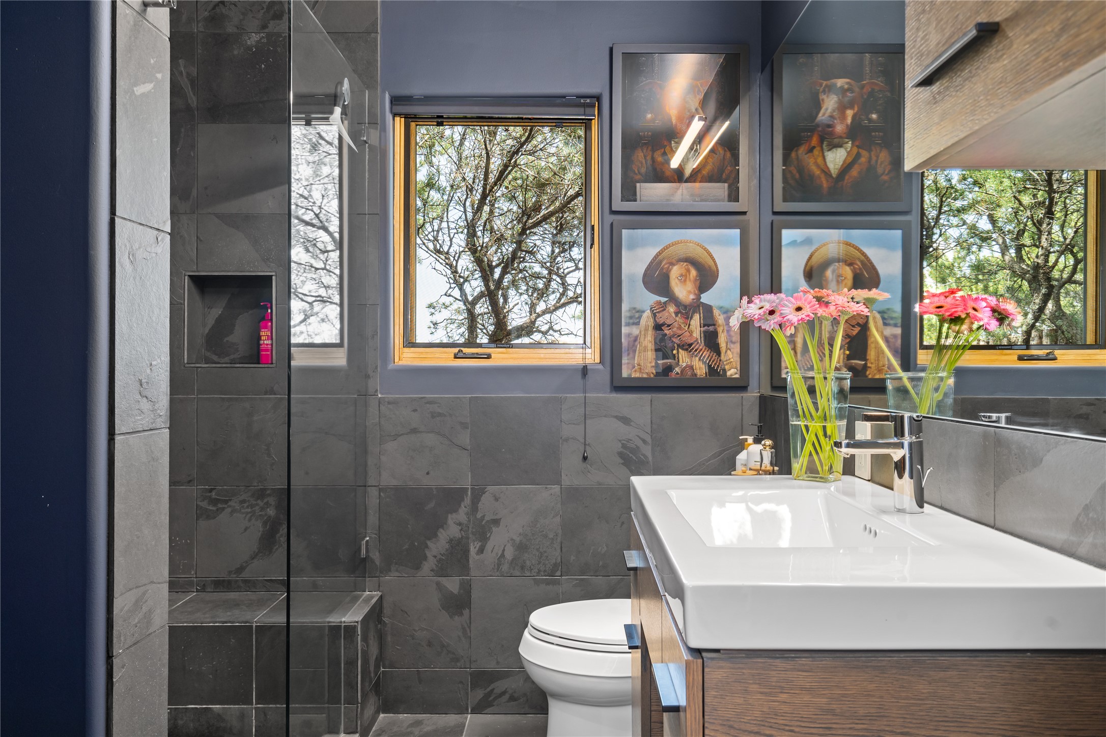 Perched on 2.5 serene acres with sweeping views of both the Jemez and Sangre de Cristo mountains, this 4-bedroom, 2-bath beauty brings together the best of Santa Fe style and mid-century design. From the moment you enter the front courtyard--complete with a kiva fireplace and peaceful water feature--you'll feel like you've stepped into your own private retreat where mid-century hip meets Santa Fe soul.Inside, traditional elements like hand-adzed vigas, saltillo tile floors, and two cozy kiva fireplaces (one in the living room, one in the primary suite) provide that authentic Santa Fe warmth. But the heart of the home? It's the spectacular, magazine-featured kitchen. Thoughtfully remodeled by DMC Fine Cabinetry & Renovations and builder Eric Smith, this space has been showcased in Santa Fe Magazine, TREND, and more--and it shows. It's sleek, modern, and expertly designed for everyday ease and entertaining alike.The bathrooms are just as impressive--completely reimagined with a hip, contemporary flair that perfectly complements the home's classic style. The sellers had planned to stay here forever and invested accordingly--making this a rare opportunity for a new buyer to enjoy high-end updates without the wait or cost.The outdoor living is just as magical as the interior, with xeriscaped landscaping, a fully fenced backyard, and deep portals for relaxing, dining, or watching the mountains glow at sunset. Of course, there's a 2-car garage, because that's just what you'd expect from a home this perfect.With new windows, and recent stucco maintenance, as well as a frequently maintained roof, this is a home where every detail has been loved and it shows.Furniture and spa package negotiable.