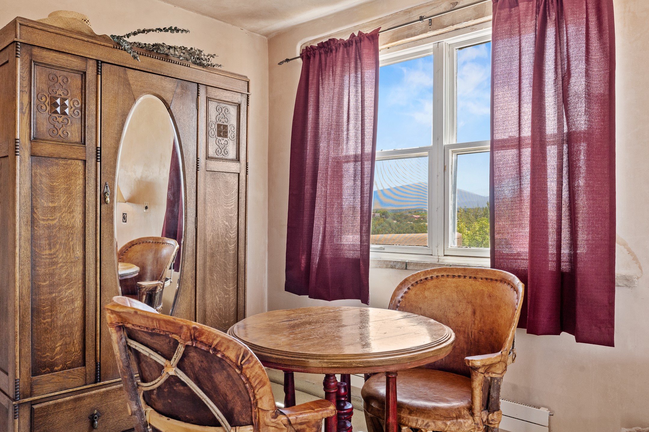Las Campanas Gem: Timeless Character Meets Exceptional livingNestled in the prestigious Las Campanas community, this distinctive residence offers a rare opportunity to own a property brimming with authentic Santa Fe charm and unparalleled architectural character. Set on a generous 1.71-acre lot, the main home boasts approximately 4,195 sq ft of living space, complemented by a detached, pull-through two-car garage and a separate 2-bedroom guest house of about 1,031 sq ft--providing exceptional flexibility and privacy.Designed for seamless indoor/outdoor living, the expansive covered patio invites year-round entertaining with a classic kiva fireplace and built-in grill, perfect for al fresco gatherings amid breathtaking natural surroundings. An exquisite exposed adobe wall inside adds warmth and authenticity, complementing the traditional vigas and coved ceilings throughout.The property is graced by a serene Aspen grove, creating a tranquil natural setting and enhancing privacy. Panoramic 180-degree views stretch from the Sandia and Ortiz Mountains to the Sangre de Cristo range, offering an ever-changing backdrop of dramatic New Mexico landscapes.Inside, stunning rock wall accents and a light-filled indoor atrium create a unique ambiance, while large skylights flood the space with natural light. The built-in kitchen nook offers a cozy space for casual dining, and generous living areas provide a thoughtful floor plan that invites personalization and renovation.While the home offers solid bones and timeless elements, it presents an exceptional canvas for a tasteful renovation or enhancement to meet modern luxury standards.Experience the charm and promise of this captivating Las Campanas retreat--an exclusive opportunity to craft your dream home in one of Santa Fe's most coveted neighborhoods. Unlock the full potential of this one-of-a-kind residence where tradition meets possibility.
