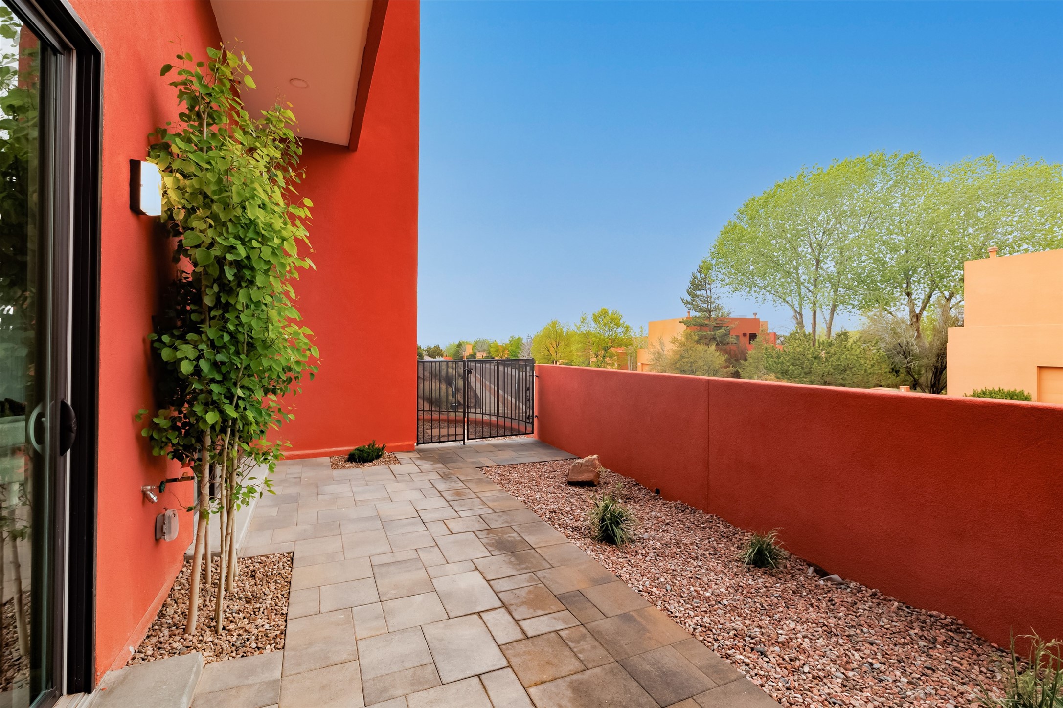 Welcome to Zocalo, Santa Fe -- This exceptional end unit is a gem within the community, combining luxury and practicality. Step into the spacious great room, featuring MODERN GRAY TONES and beautiful SPC luxury vinyl flooring. The space is enhanced by a sleek beverage bar and a contemporary fireplace, perfect for entertaining or relaxing evenings. The kitchen and bathrooms are adorned with white and grey quartz countertops, adding elegance and brightness. In the primary suite, enjoy a second fireplace, creating a luxurious retreat for restful nights. Outside, the upgraded landscaping complements the stunning Santa Fe climate, offering a peaceful setting for outdoor enjoyment.