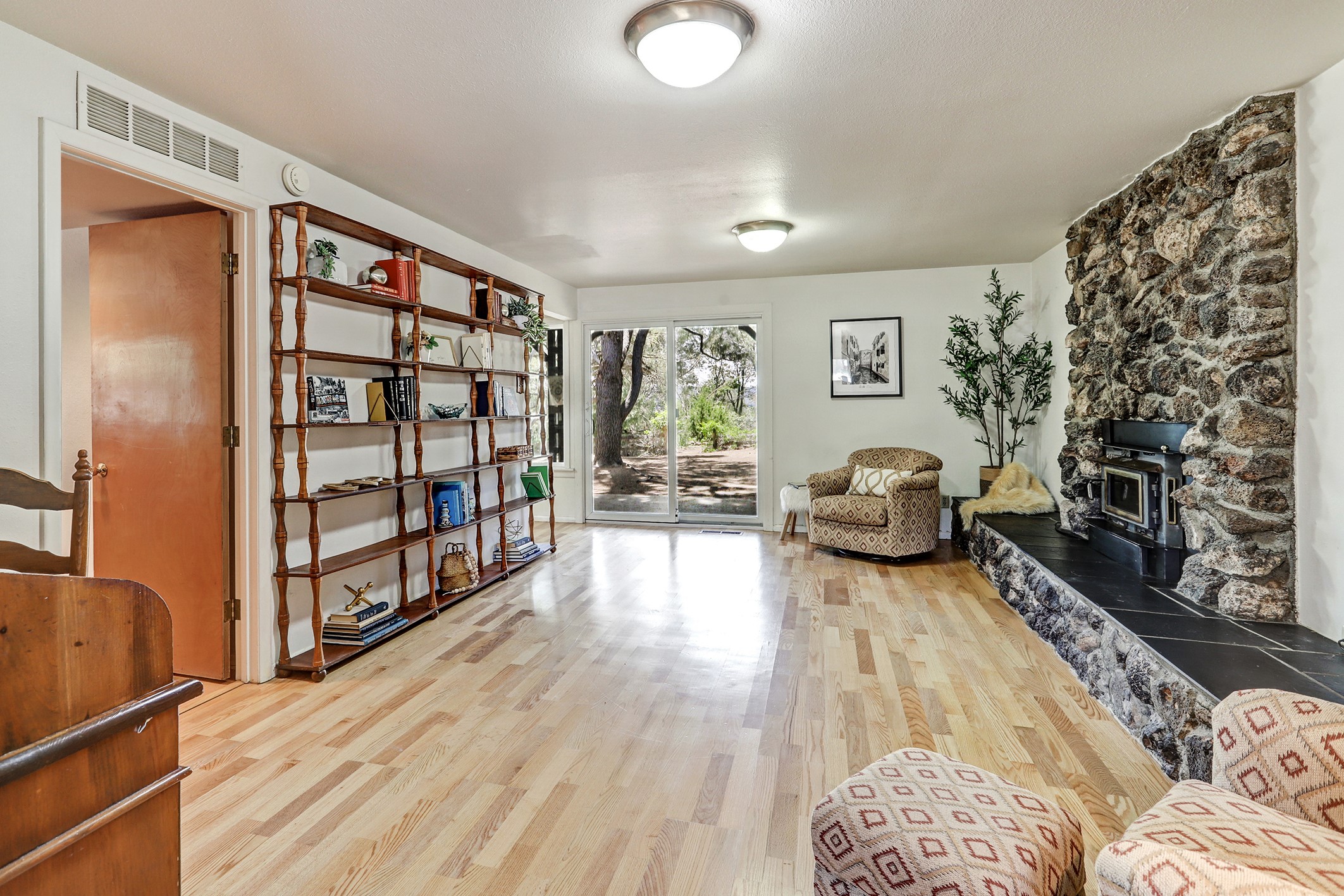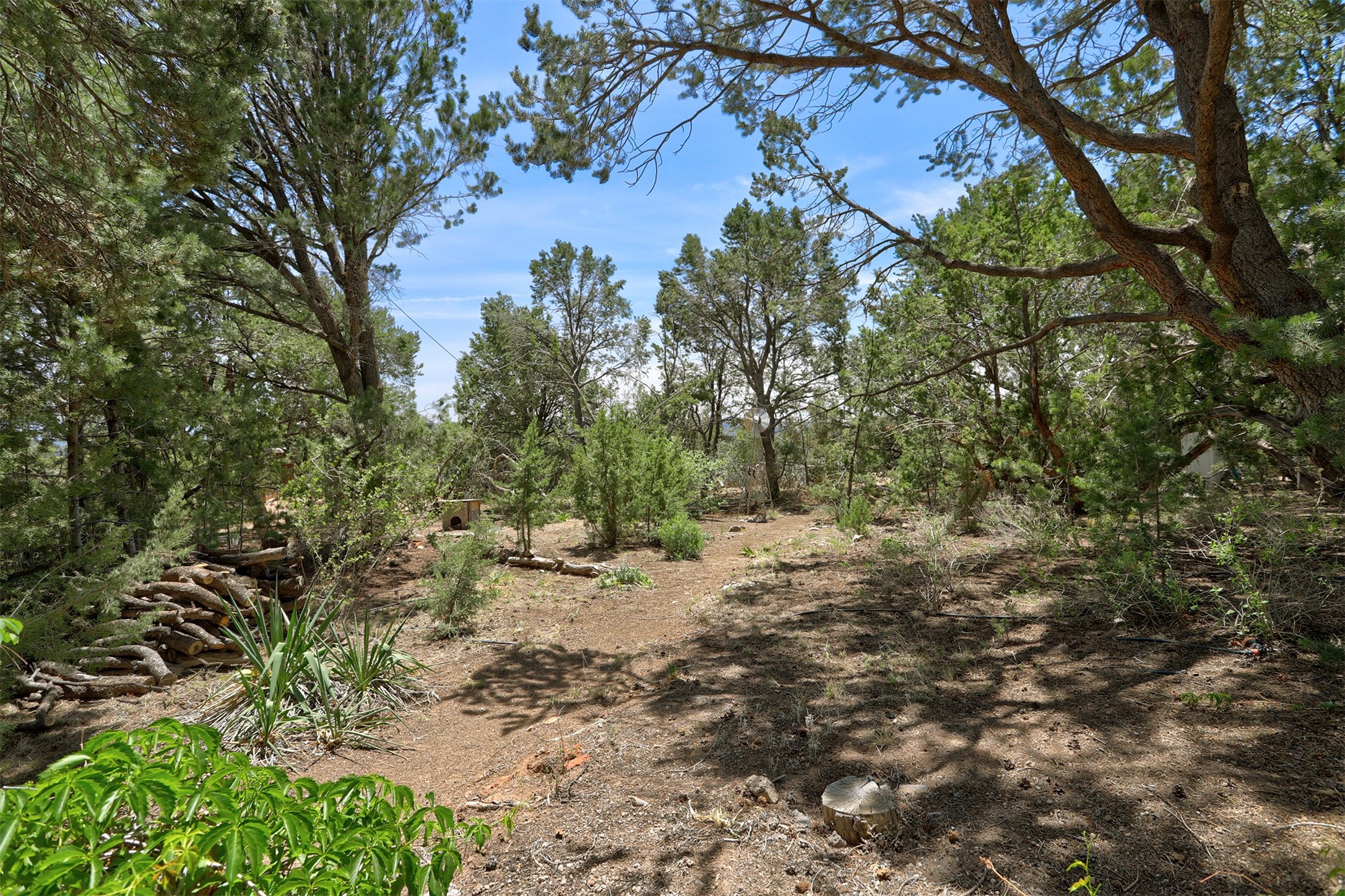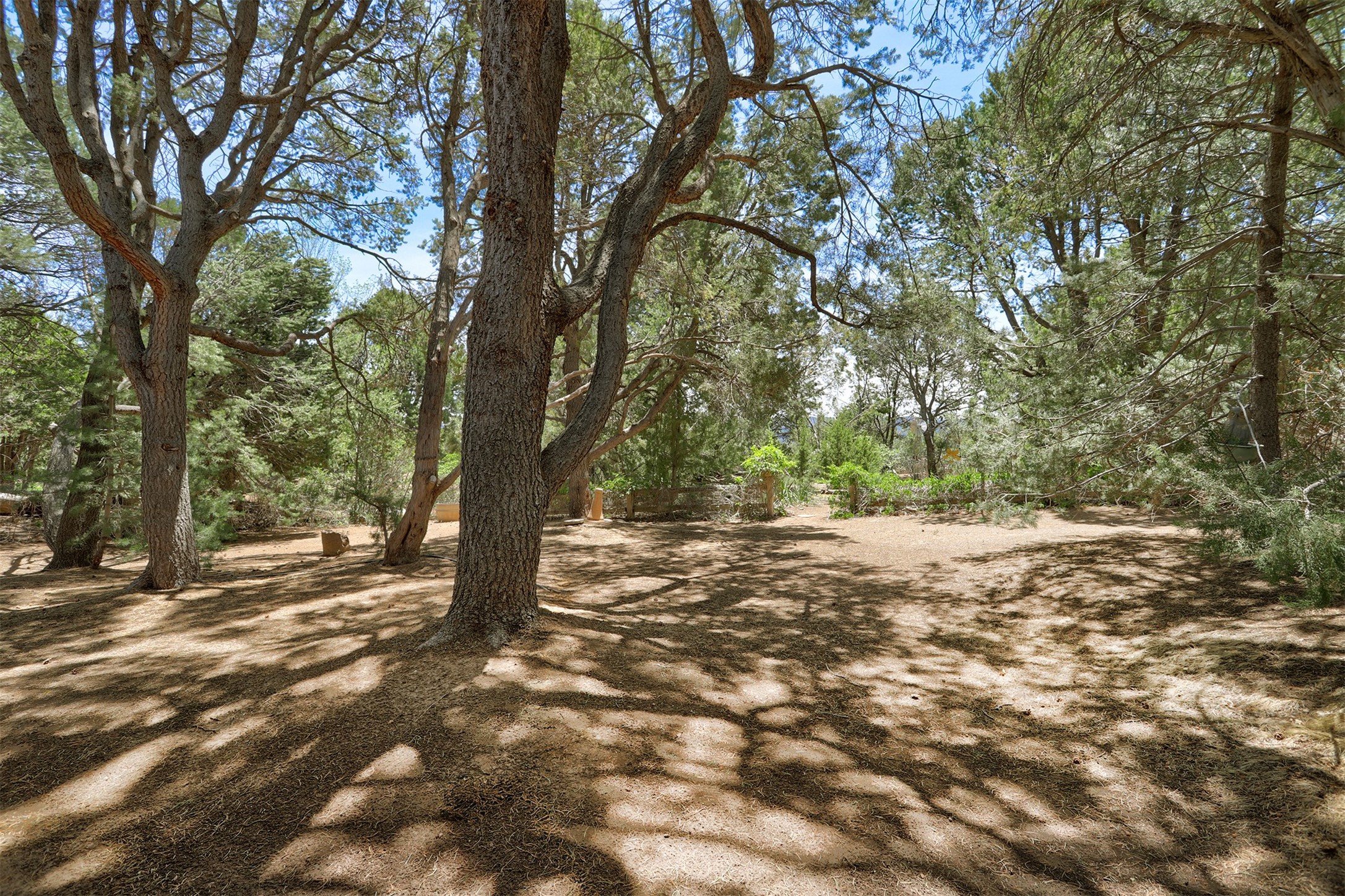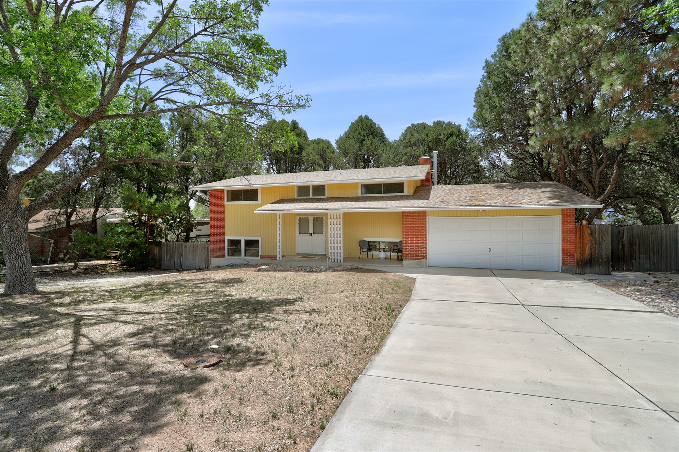 Situated on a stunning canyon lot, this home offers an exceptional setting with direct access to hiking trails along the Rio Grande rim and Pajarito Canyon. Surrounded by mature trees and vibrant foliage, the property conveys a forested feel. You'll feel like you are in your very own forest and private retreat while still being conveniently located in town. Thoughtfully positioned at the front of the lot, the home allows for a generous backyard ideal for entertaining, gardening, or simply enjoying the serene, wooded surroundings. The home's main level features a welcoming living room, a formal dining area, and a well-appointed kitchen providing direct access to a covered patio and the expansive yard. A cozy family room with a wood-burning fireplace provides a warm gathering space, along with convenient access to the two-car garage and a designated laundry room. Upstairs, the primary suite offers a peaceful escape with an en suite bathroom and a private deck--perfect for morning coffee or evening relaxation among the treetops. Three additional bedrooms and a full hall bath complete the second level, with one bedroom thoughtfully equipped with a built-in Murphy bed. The home also includes air conditioning, making it comfortable year-round. Schedule a private showing today!