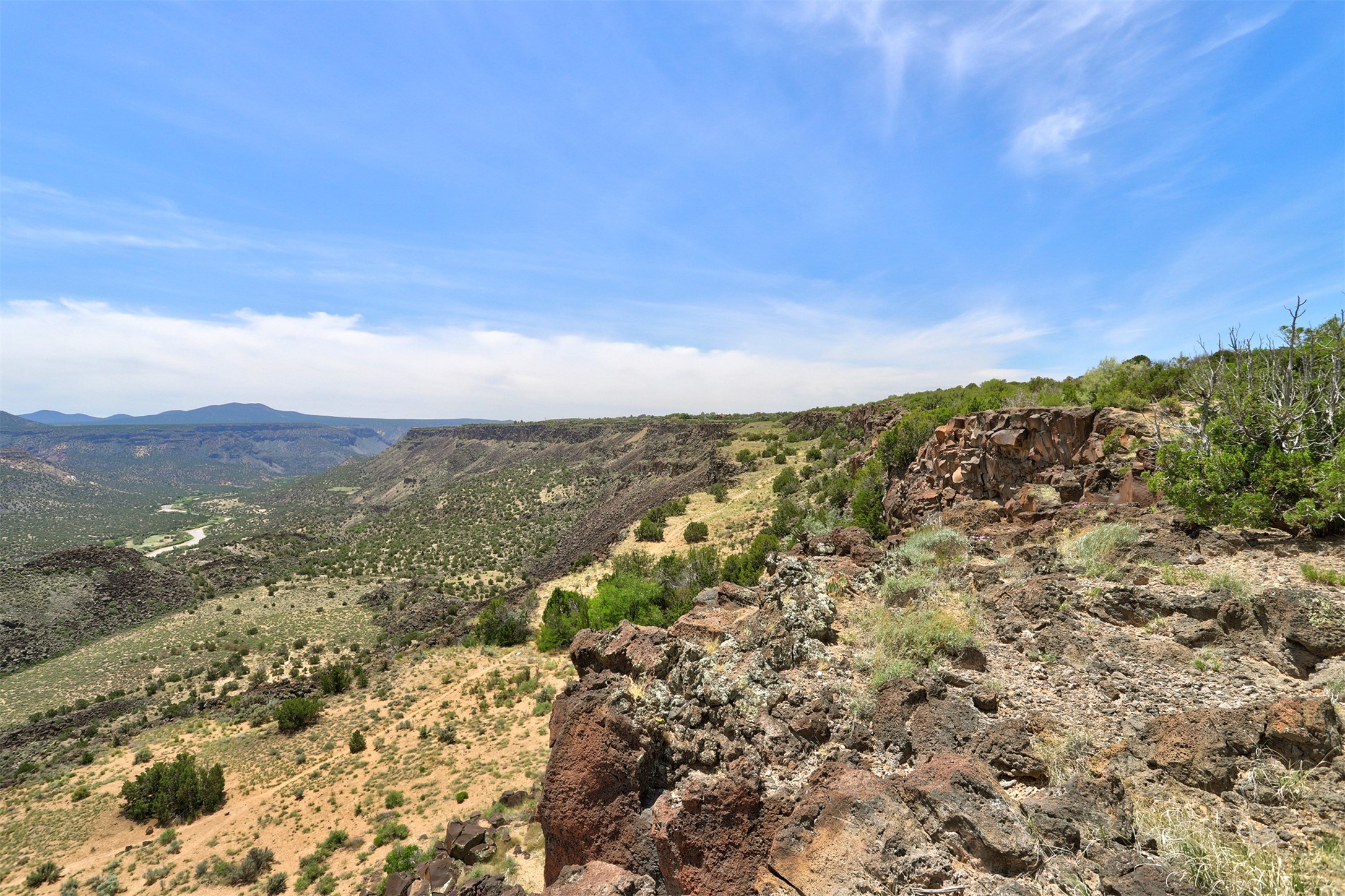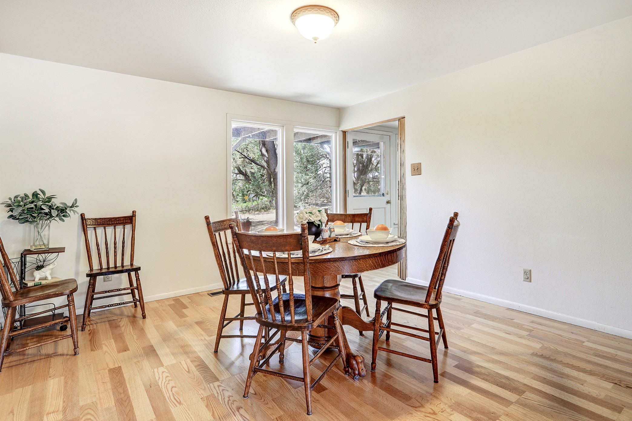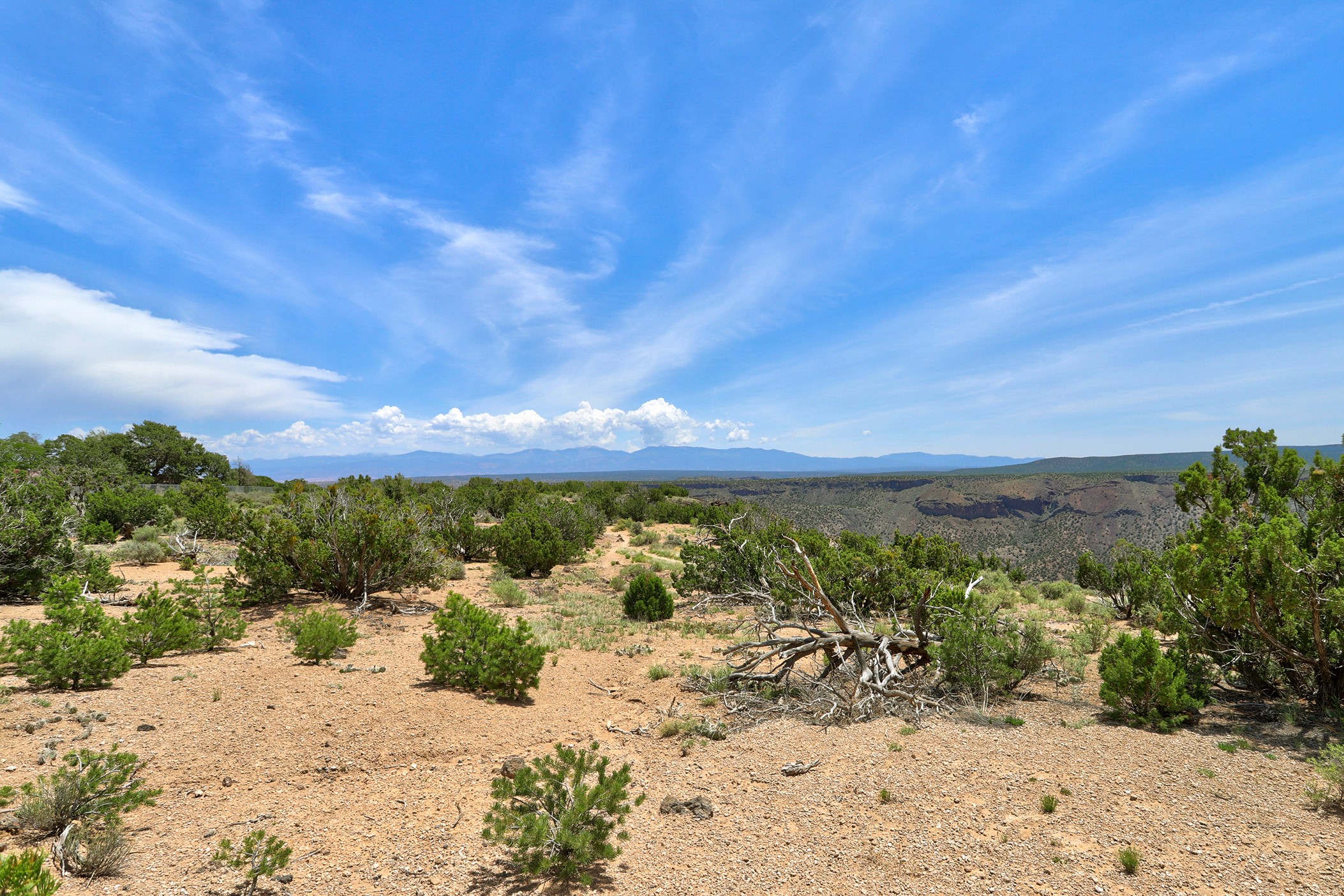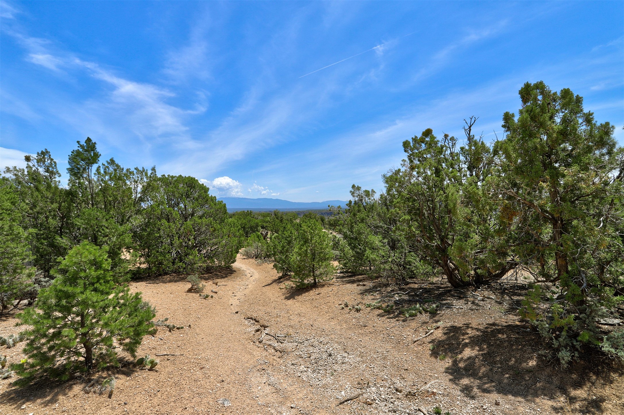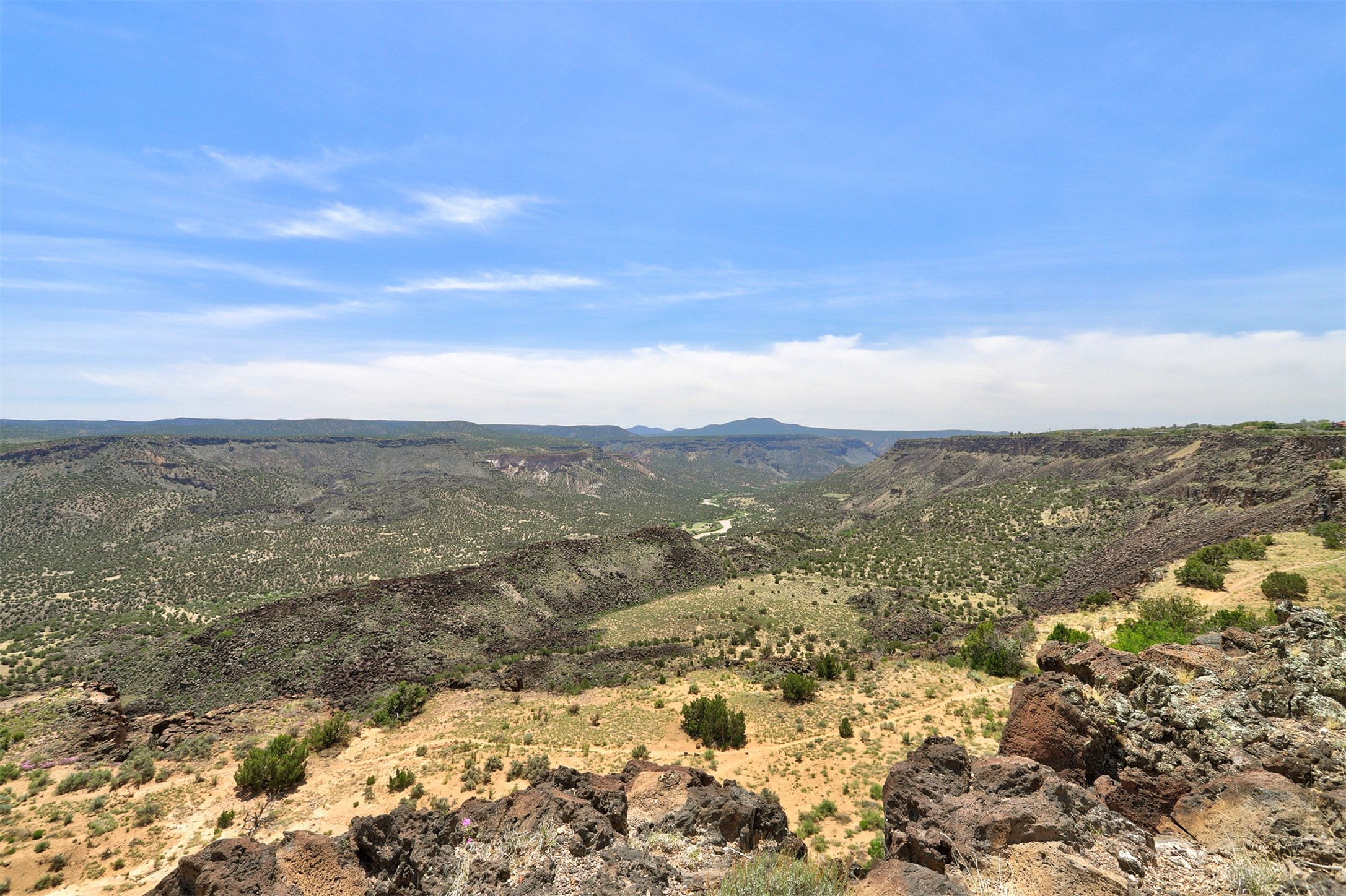 Situated on a stunning canyon lot, this home offers an exceptional setting with direct access to hiking trails along the Rio Grande rim and Pajarito Canyon. Surrounded by mature trees and vibrant foliage, the property conveys a forested feel. You'll feel like you are in your very own forest and private retreat while still being conveniently located in town. Thoughtfully positioned at the front of the lot, the home allows for a generous backyard ideal for entertaining, gardening, or simply enjoying the serene, wooded surroundings. The home's main level features a welcoming living room, a formal dining area, and a well-appointed kitchen providing direct access to a covered patio and the expansive yard. A cozy family room with a wood-burning fireplace provides a warm gathering space, along with convenient access to the two-car garage and a designated laundry room. Upstairs, the primary suite offers a peaceful escape with an en suite bathroom and a private deck--perfect for morning coffee or evening relaxation among the treetops. Three additional bedrooms and a full hall bath complete the second level, with one bedroom thoughtfully equipped with a built-in Murphy bed. The home also includes air conditioning, making it comfortable year-round. Schedule a private showing today!