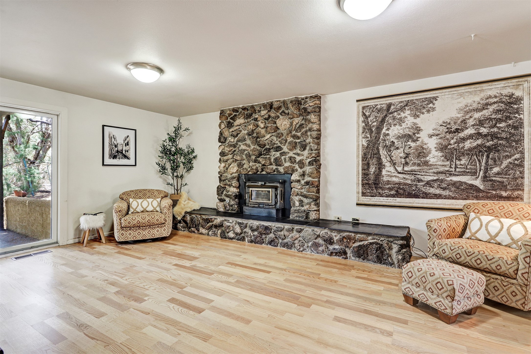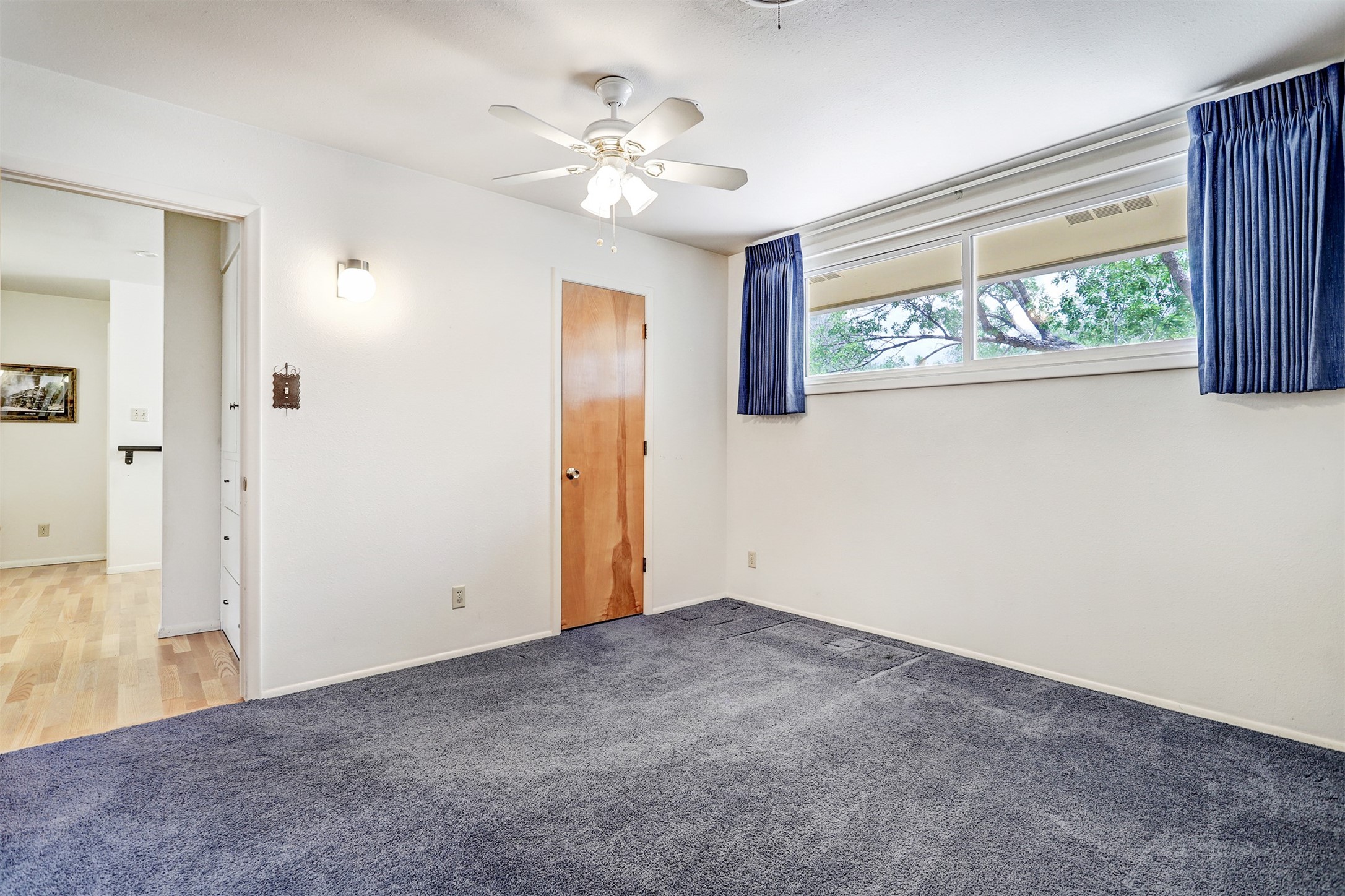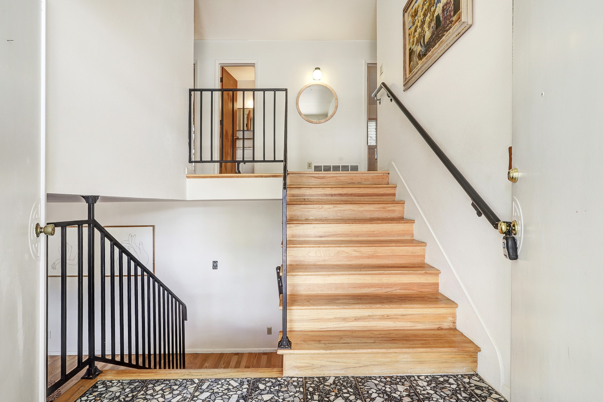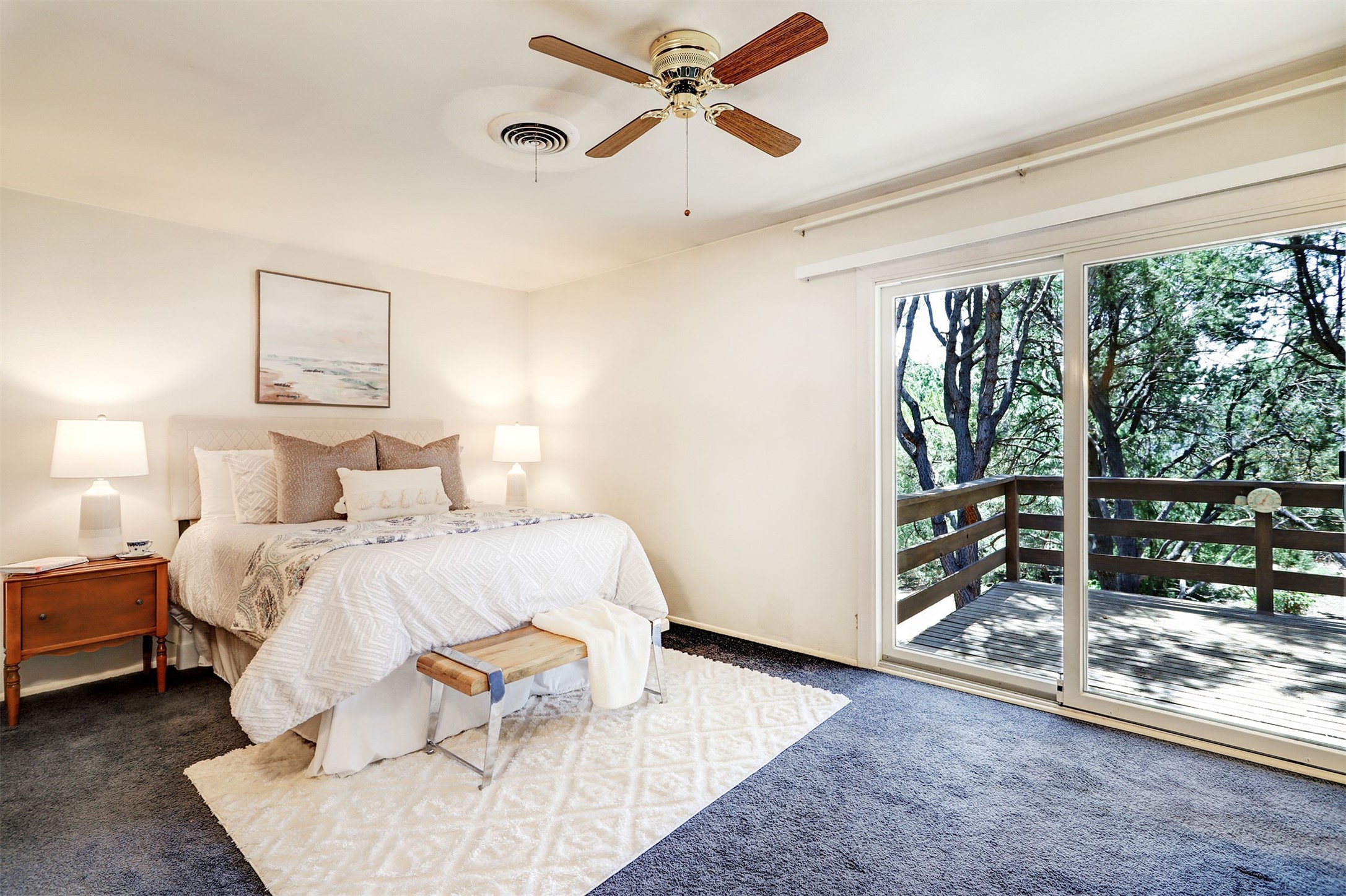 Situated on a stunning canyon lot, this home offers an exceptional setting with direct access to hiking trails along the Rio Grande rim and Pajarito Canyon. Surrounded by mature trees and vibrant foliage, the property conveys a forested feel. You'll feel like you are in your very own forest and private retreat while still being conveniently located in town. Thoughtfully positioned at the front of the lot, the home allows for a generous backyard ideal for entertaining, gardening, or simply enjoying the serene, wooded surroundings. The home's main level features a welcoming living room, a formal dining area, and a well-appointed kitchen providing direct access to a covered patio and the expansive yard. A cozy family room with a wood-burning fireplace provides a warm gathering space, along with convenient access to the two-car garage and a designated laundry room. Upstairs, the primary suite offers a peaceful escape with an en suite bathroom and a private deck--perfect for morning coffee or evening relaxation among the treetops. Three additional bedrooms and a full hall bath complete the second level, with one bedroom thoughtfully equipped with a built-in Murphy bed. The home also includes air conditioning, making it comfortable year-round. Schedule a private showing today!