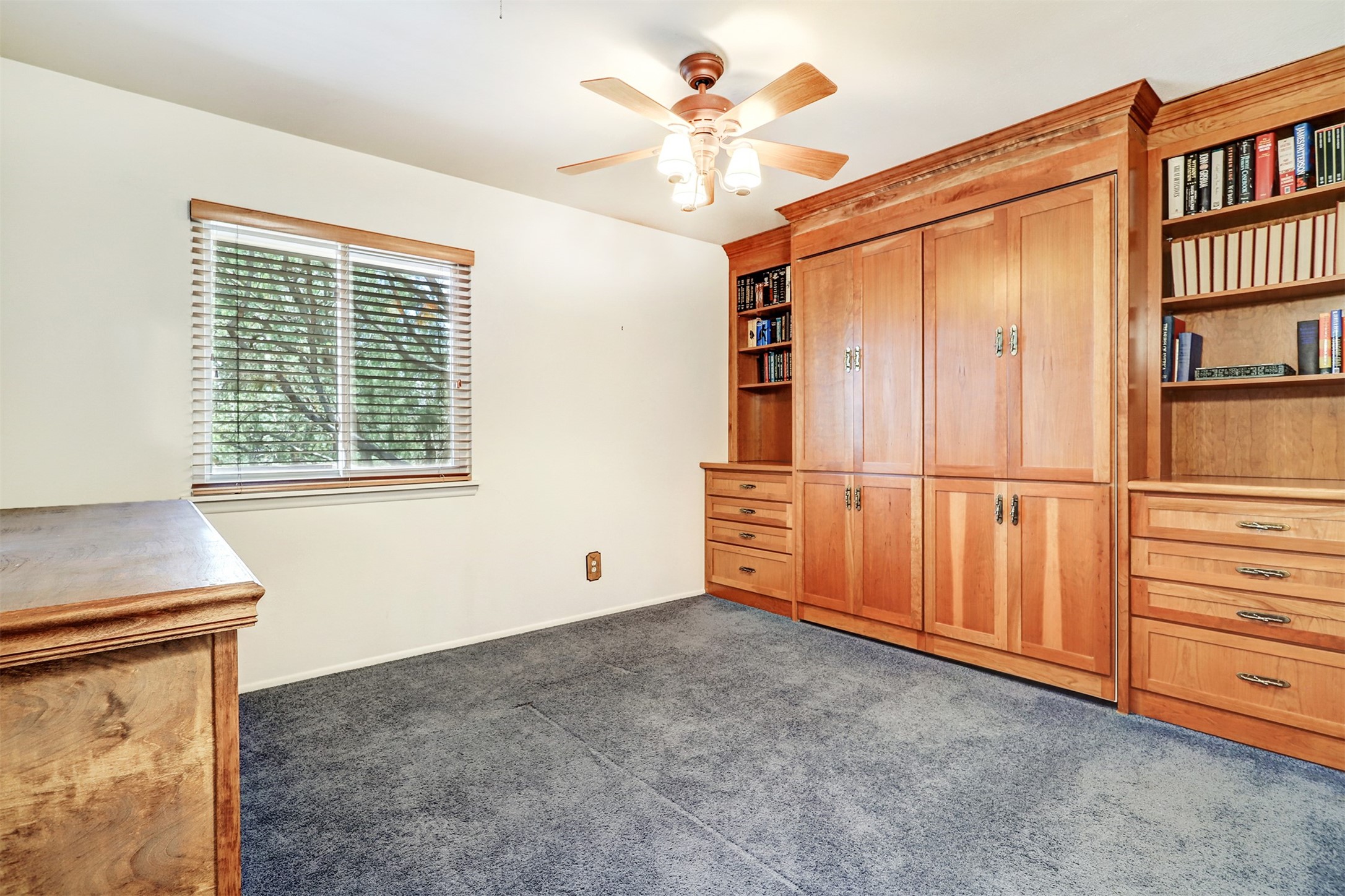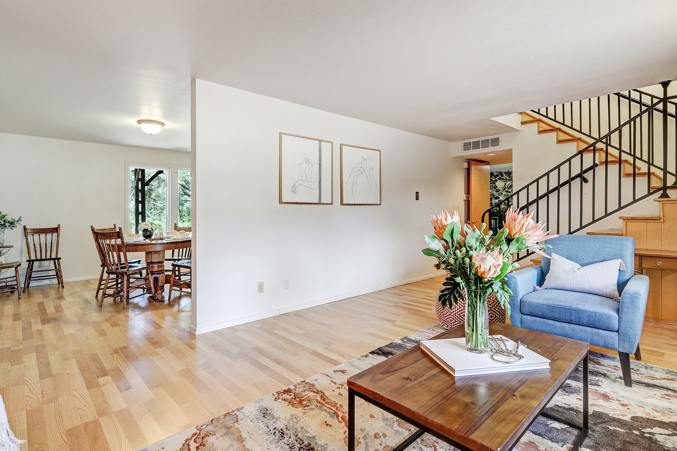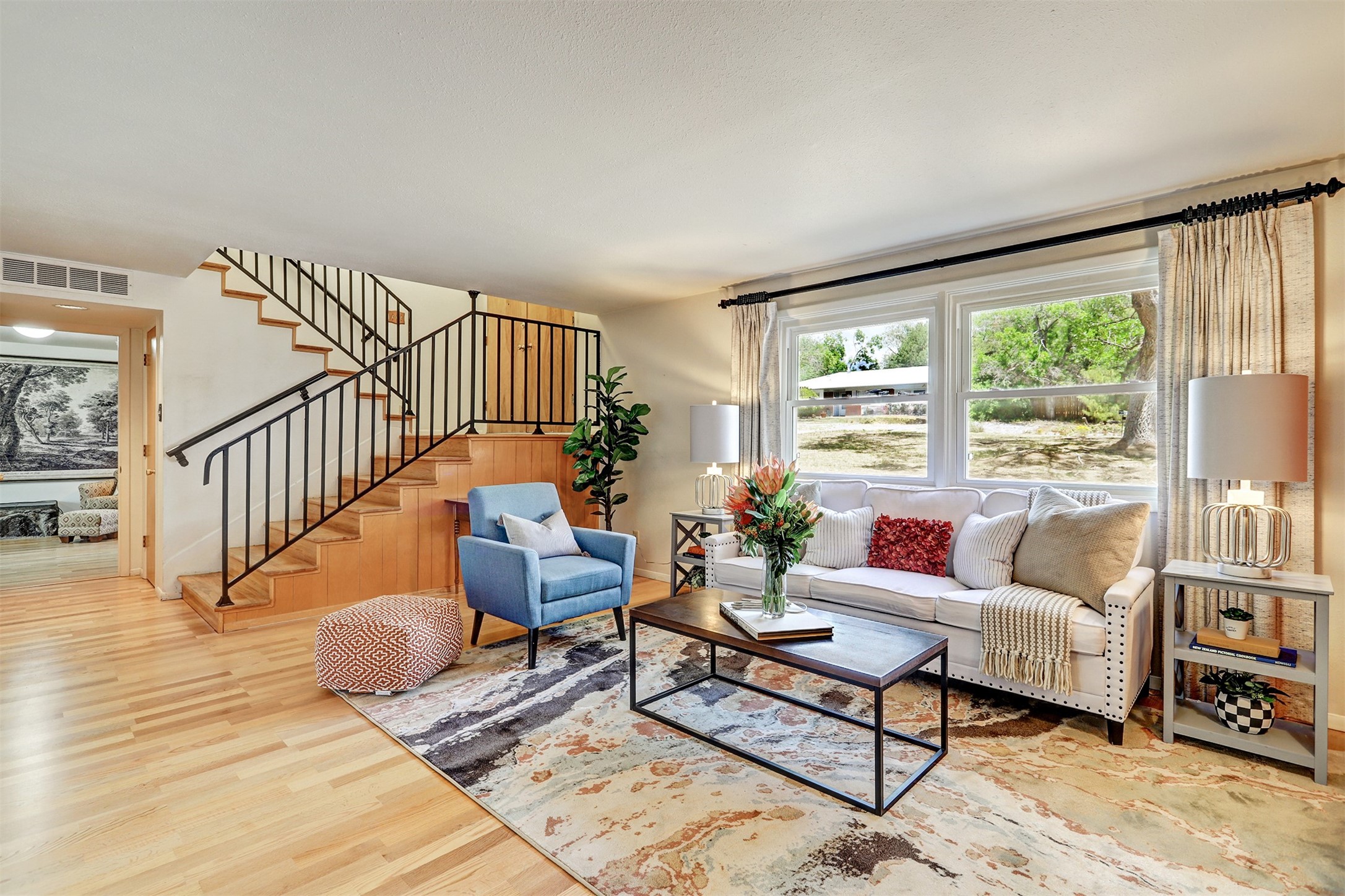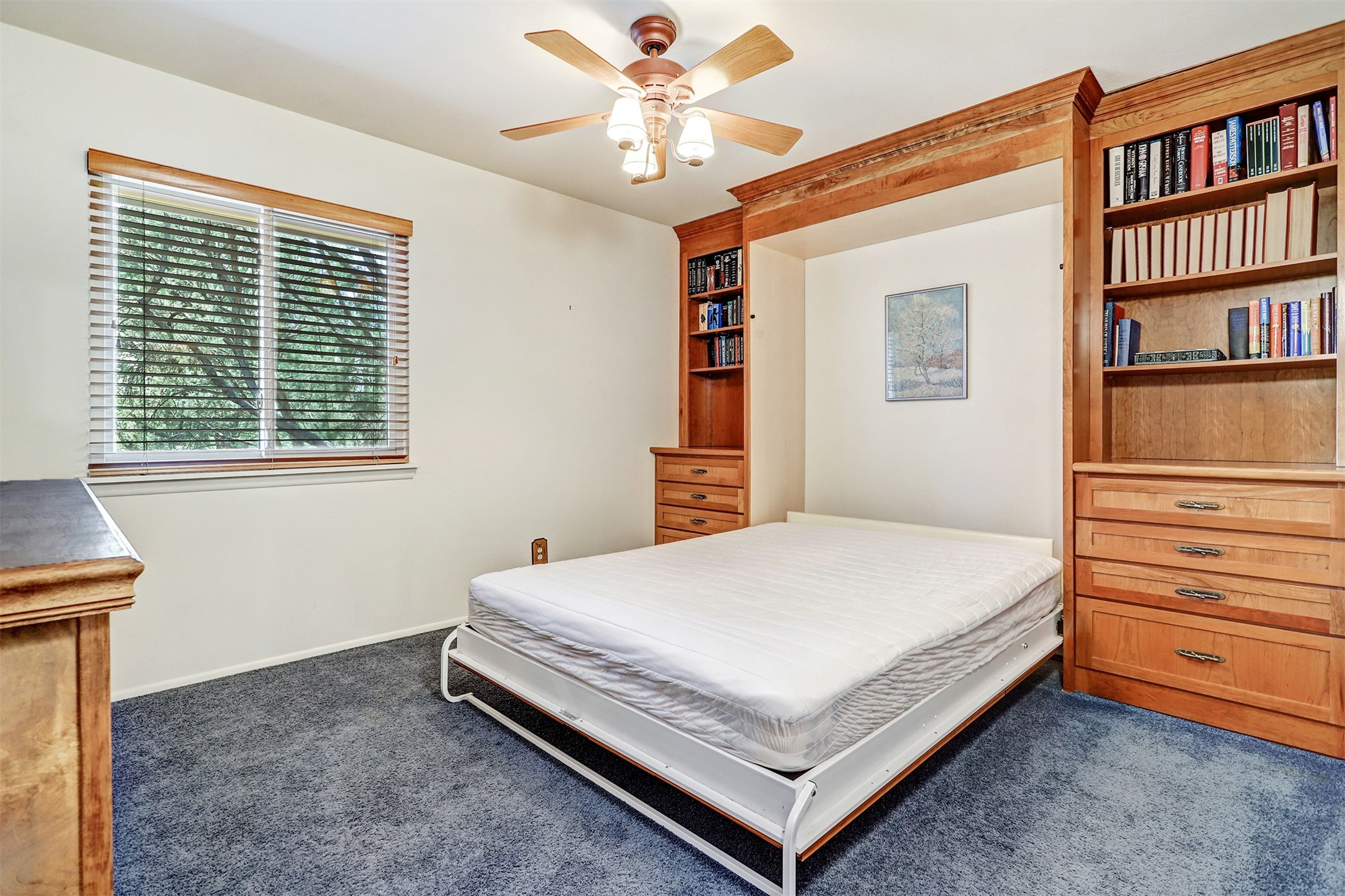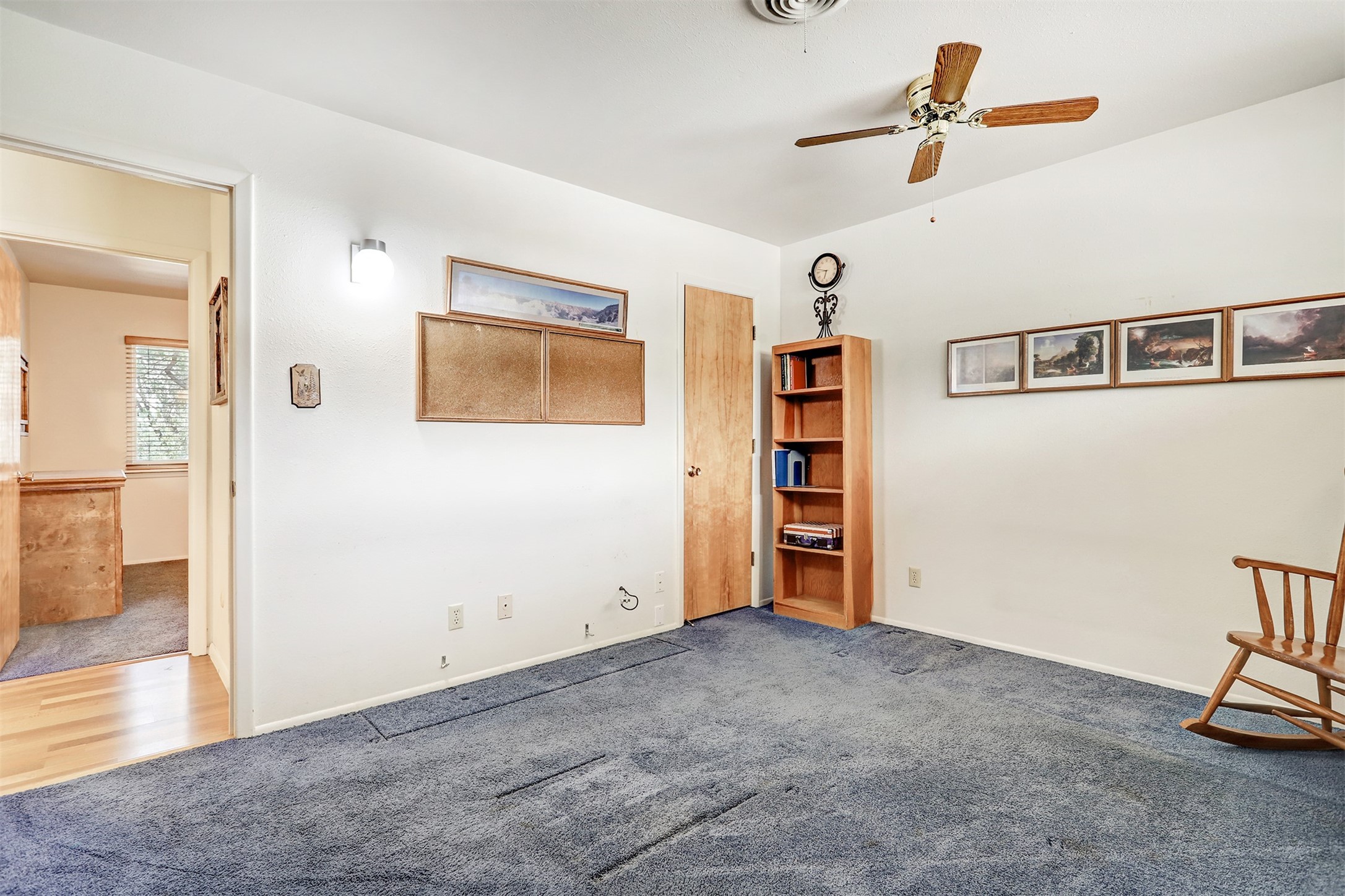 Situated on a stunning canyon lot, this home offers an exceptional setting with direct access to hiking trails along the Rio Grande rim and Pajarito Canyon. Surrounded by mature trees and vibrant foliage, the property conveys a forested feel. You'll feel like you are in your very own forest and private retreat while still being conveniently located in town. Thoughtfully positioned at the front of the lot, the home allows for a generous backyard ideal for entertaining, gardening, or simply enjoying the serene, wooded surroundings. The home's main level features a welcoming living room, a formal dining area, and a well-appointed kitchen providing direct access to a covered patio and the expansive yard. A cozy family room with a wood-burning fireplace provides a warm gathering space, along with convenient access to the two-car garage and a designated laundry room. Upstairs, the primary suite offers a peaceful escape with an en suite bathroom and a private deck--perfect for morning coffee or evening relaxation among the treetops. Three additional bedrooms and a full hall bath complete the second level, with one bedroom thoughtfully equipped with a built-in Murphy bed. The home also includes air conditioning, making it comfortable year-round. Schedule a private showing today!