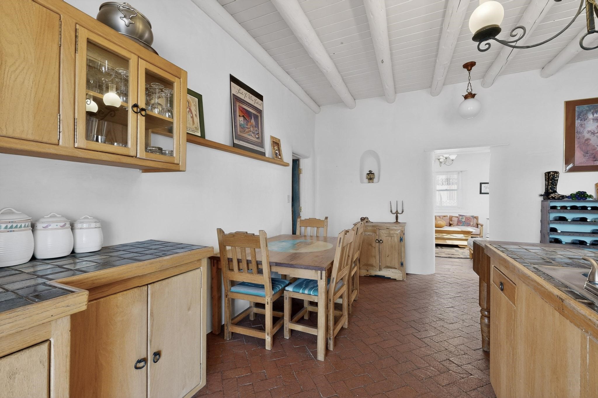 La Cienega Vineyard Estate - Four Parcels with Adobe Homes, Studios & Acequia Water Rights. Discover a unique opportunity in the heart of historic La Cienega--a vibrant 6-acre vineyard comprising four separately deeded parcels, rich with potential and authentic New Mexico charm. Anchored by two traditional adobe homes, the estate is steeped in regional character and surrounded by natural beauty. The main house features 3 bedrooms, 2 baths, and showcases classic Santa Fe style with brick floors, vigas, and elegant touches throughout. The adobe main residence is a quintessential historic home in the La Cienega Village. The second adobe home offers additional living space or rental income potential. In addition to the homes, the property includes a partially completed two-story apartment--ready for your finishing touches--and several studio structures that could be transformed into creative workspaces, studios, rentals or other uses associated with the Vineyard. The well-maintained vineyard is nourished by valuable acequia water rights, ensuring sustainable growth and offering agricultural possibilities for wine production, agritourism, or farm-to-table ventures. With flexible uses and multiple dwellings already in place, this rare offering is ideal for a variety of uses--live/work, multi-generational living, a creative retreat, or a boutique vineyard business. Properties with this combination of history, water, and opportunity are seldom available in La Cienega