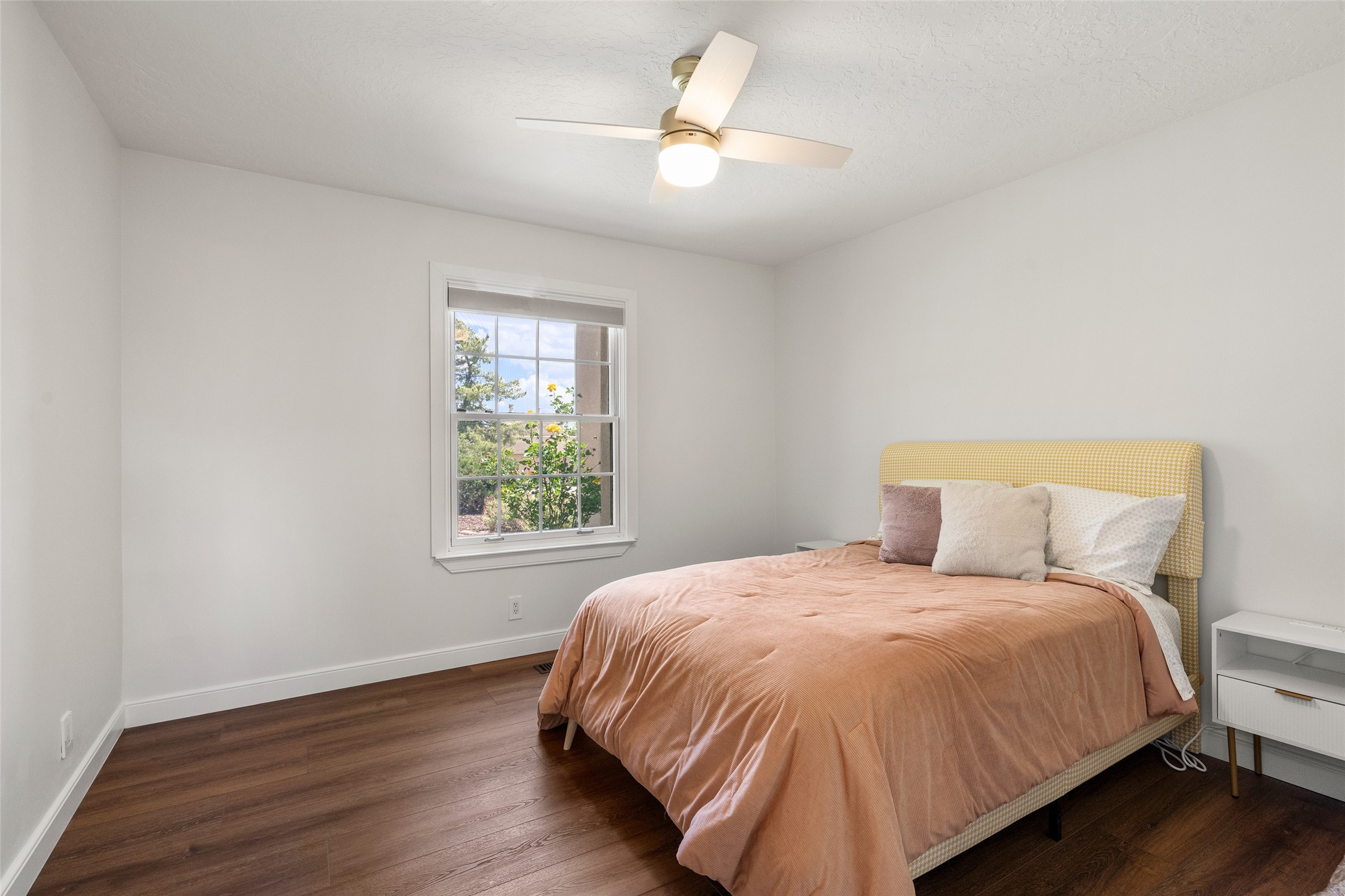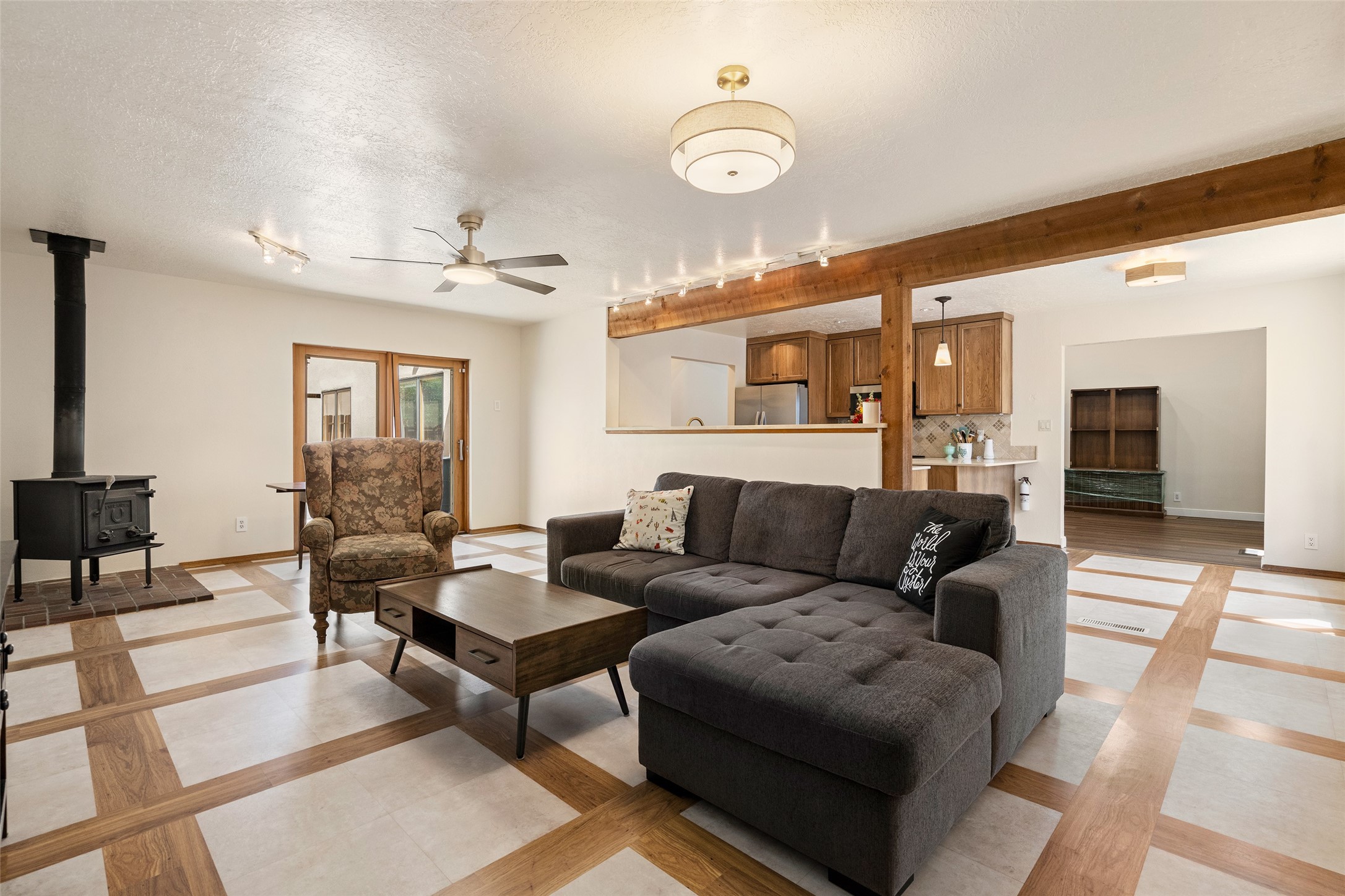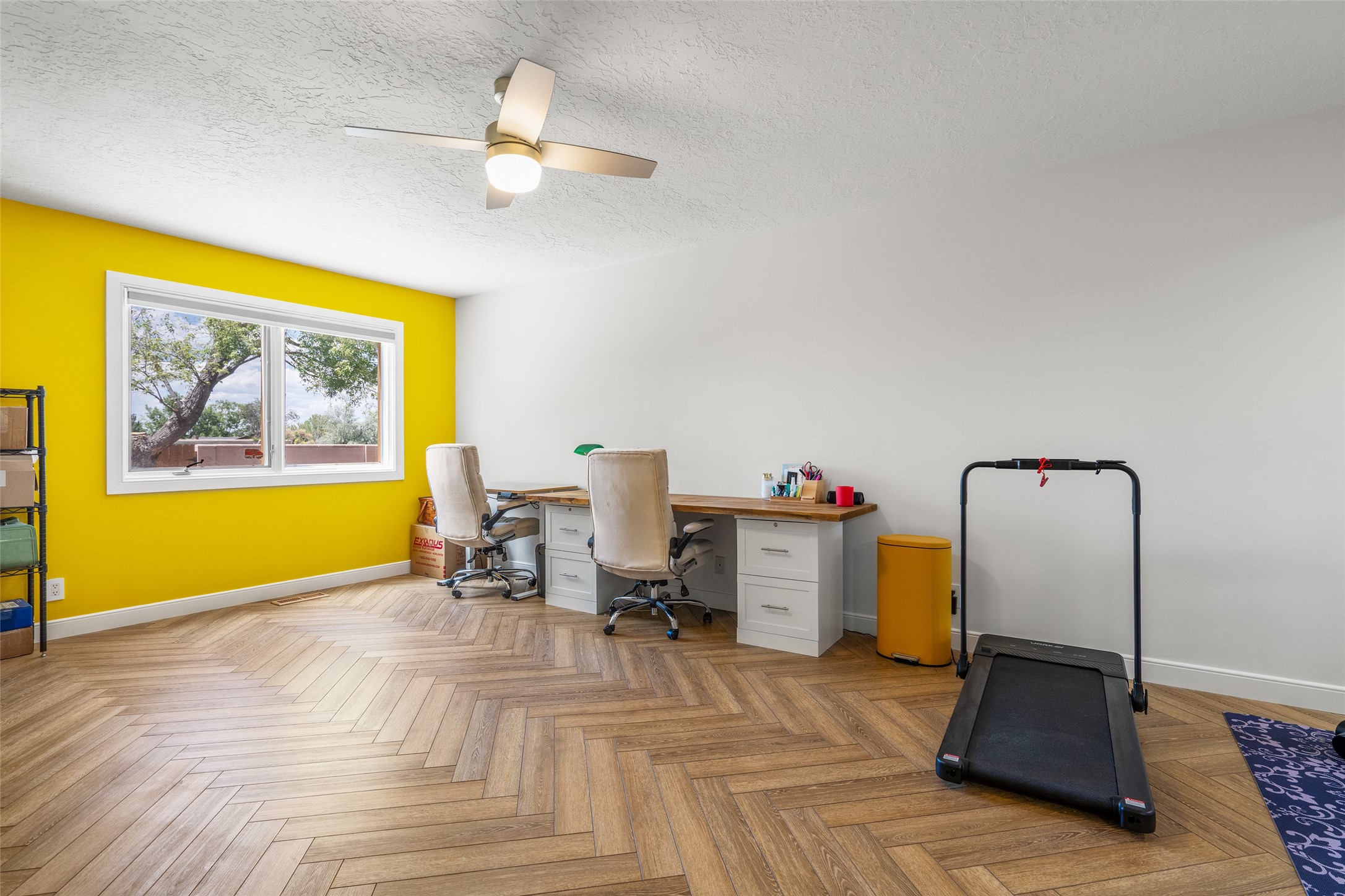 Beautifully updated & move in ready, this thoughtfully maintained home is nestled on a quiet cul-de-sac in Candalero. Recent renovations throughout offer peace of mind and modern comfort, including a new furnace, added central A/C, upgraded 200 amp electrical service, and top-of-the-line Cortec luxury vinyl plank flooring in the bedrooms, hallway, and office. The interior features refined updates such as retextured and freshly painted walls and ceiling beams in the living room. French doors with reeded glass elevate the dedicated office or 4th bedroom, while updated ceiling fans and lighting provide both style and energy efficiency. The kitchen has been upgraded included brand-new appliances and updated fixtures. A Simplesafe security system, Eufy video doorbell and backyard camera/light are included offering peace of mind with no subscription required. Enjoy a generous backyard and the shade of a mature cherry tree in the front yard. Centrally located just minutes to shopping, parks, schools with quick access to St. Francis and I-25, this home offers the ideal balance of tranquility and convenience.