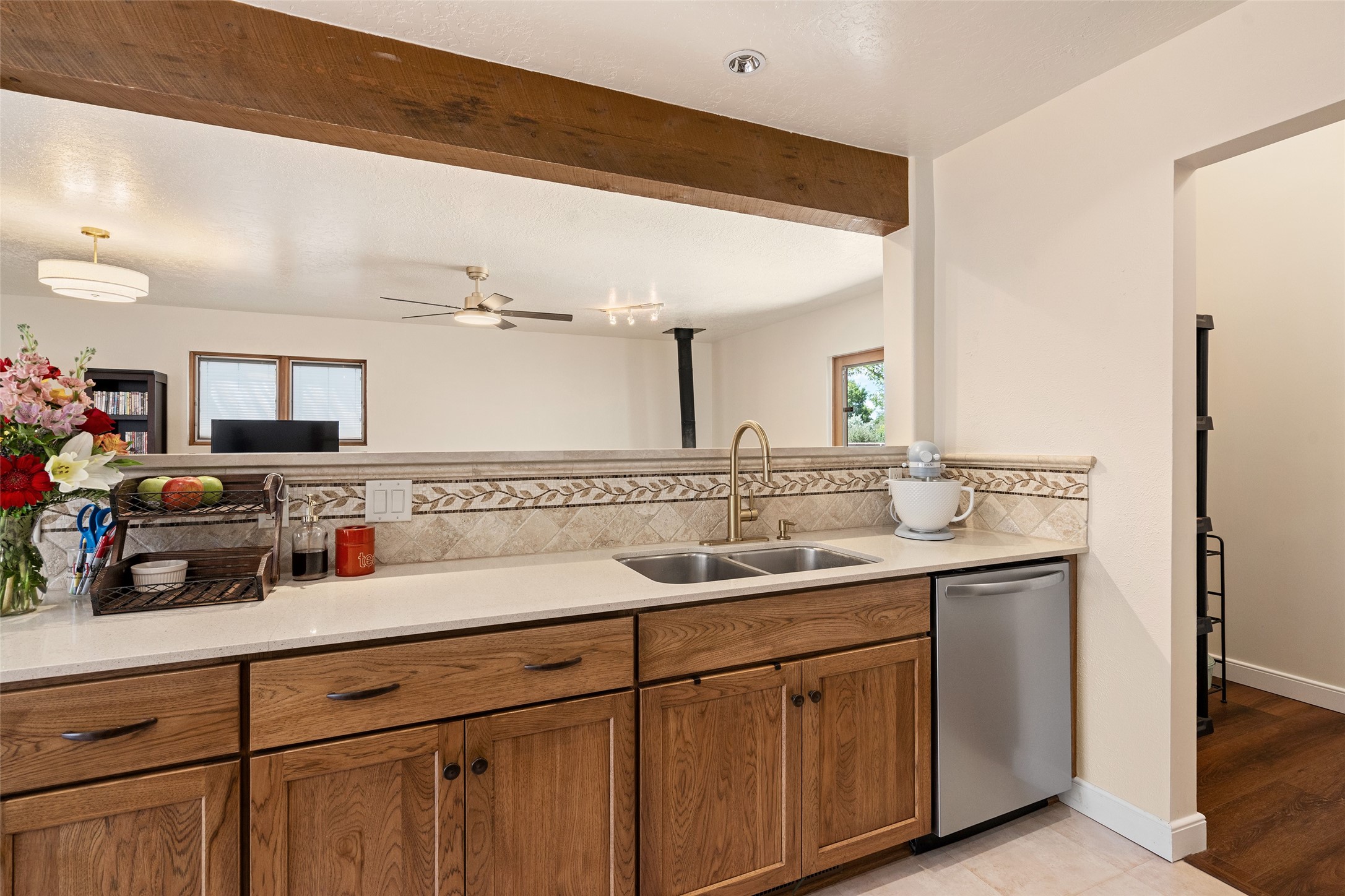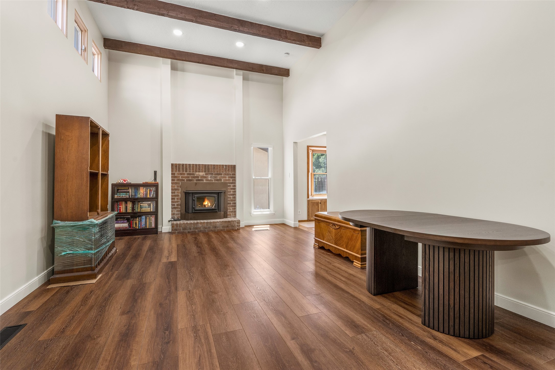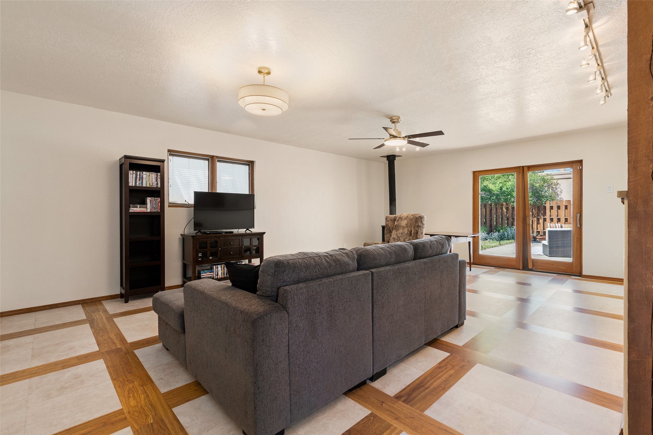 Beautifully updated & move in ready, this thoughtfully maintained home is nestled on a quiet cul-de-sac in Candalero. Recent renovations throughout offer peace of mind and modern comfort, including a new furnace, added central A/C, upgraded 200 amp electrical service, and top-of-the-line Cortec luxury vinyl plank flooring in the bedrooms, hallway, and office. The interior features refined updates such as retextured and freshly painted walls and ceiling beams in the living room. French doors with reeded glass elevate the dedicated office or 4th bedroom, while updated ceiling fans and lighting provide both style and energy efficiency. The kitchen has been upgraded included brand-new appliances and updated fixtures. A Simplesafe security system, Eufy video doorbell and backyard camera/light are included offering peace of mind with no subscription required. Enjoy a generous backyard and the shade of a mature cherry tree in the front yard. Centrally located just minutes to shopping, parks, schools with quick access to St. Francis and I-25, this home offers the ideal balance of tranquility and convenience.