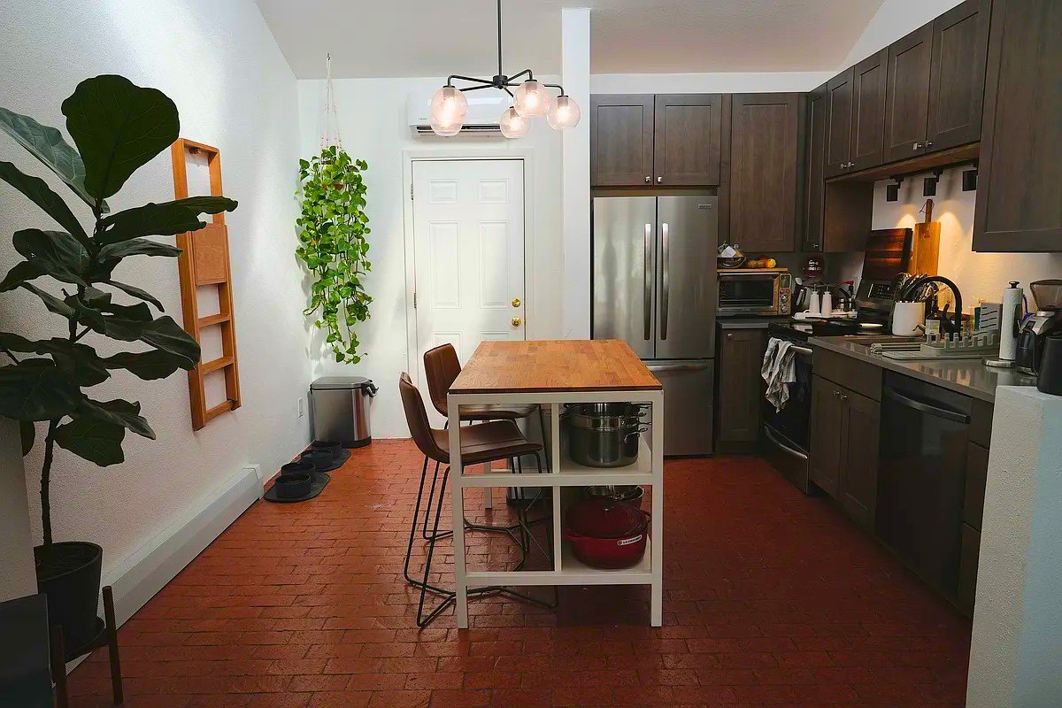 Located on a quiet, tree-shaded street just minutes from downtown, this cute two-bedroom, one-bathroom home offers a comfortable blend of charm and recent upgrades. Inside, rich brick flooring runs throughout, creating a warm, grounded feel that ties the home together. The entire interior has been freshly painted, and brand-new light fixtures brighten every room with a modern, welcoming glow.Designed with energy efficiency in mind, the home features a passive solar layout and an all-electric system to help maintain comfortable temperatures year-round. There's a cozy wood-burning stove that adds ambiance and warmth during cooler months. Clerestory windows bring in soft, natural light.The kitchen is well-equipped with sleek cabinetry, contemporary countertops, an induction range, and a new refrigerator. The bathroom has also been updated with a stylish new vanity and modern hardware, offering a clean, refreshed look.A storage shed in the back can house all of your tools or outdoor gear.Set back from the street, the property feels private and peaceful, with excellent insulation throughout for added quiet and comfort.