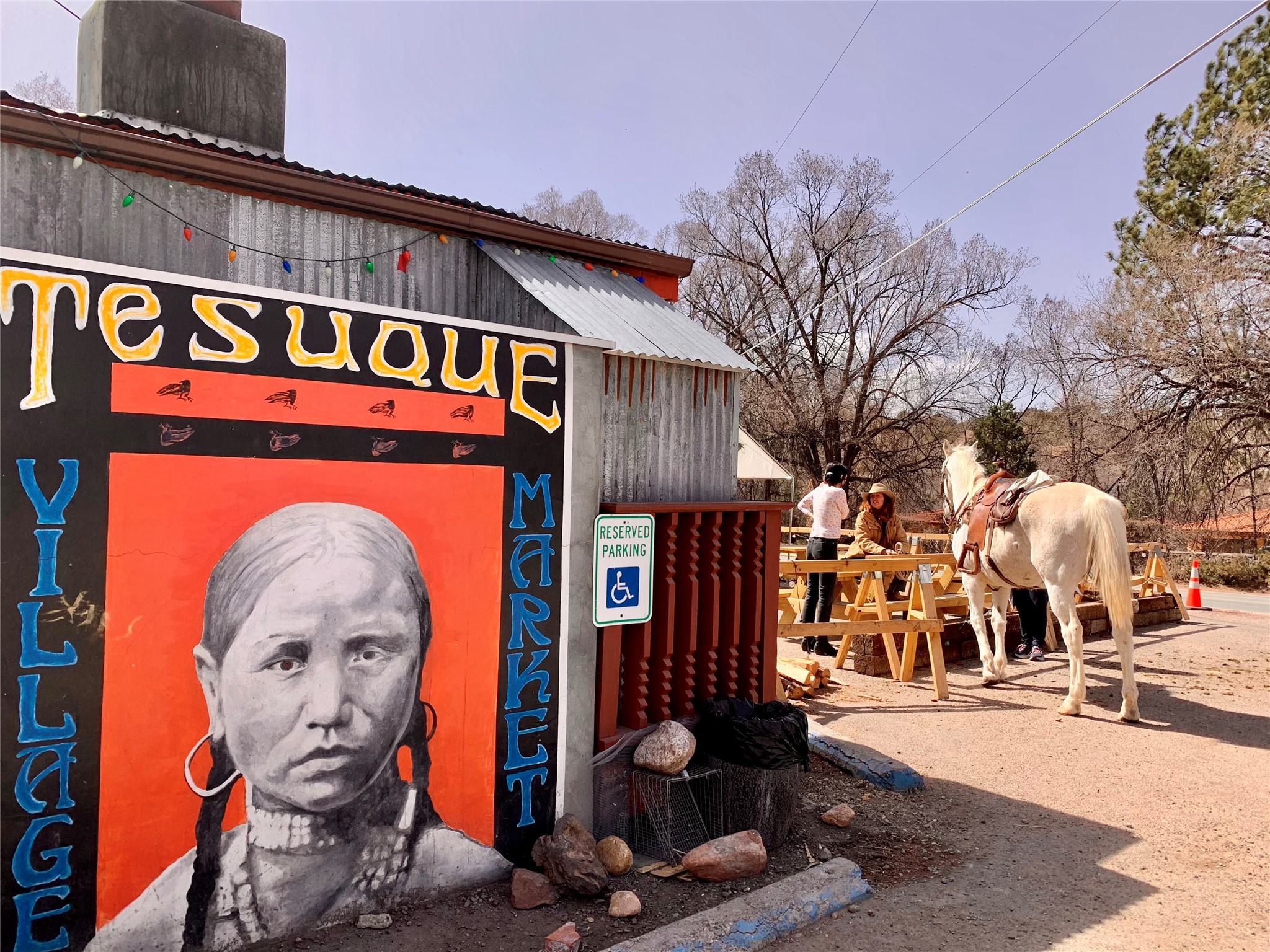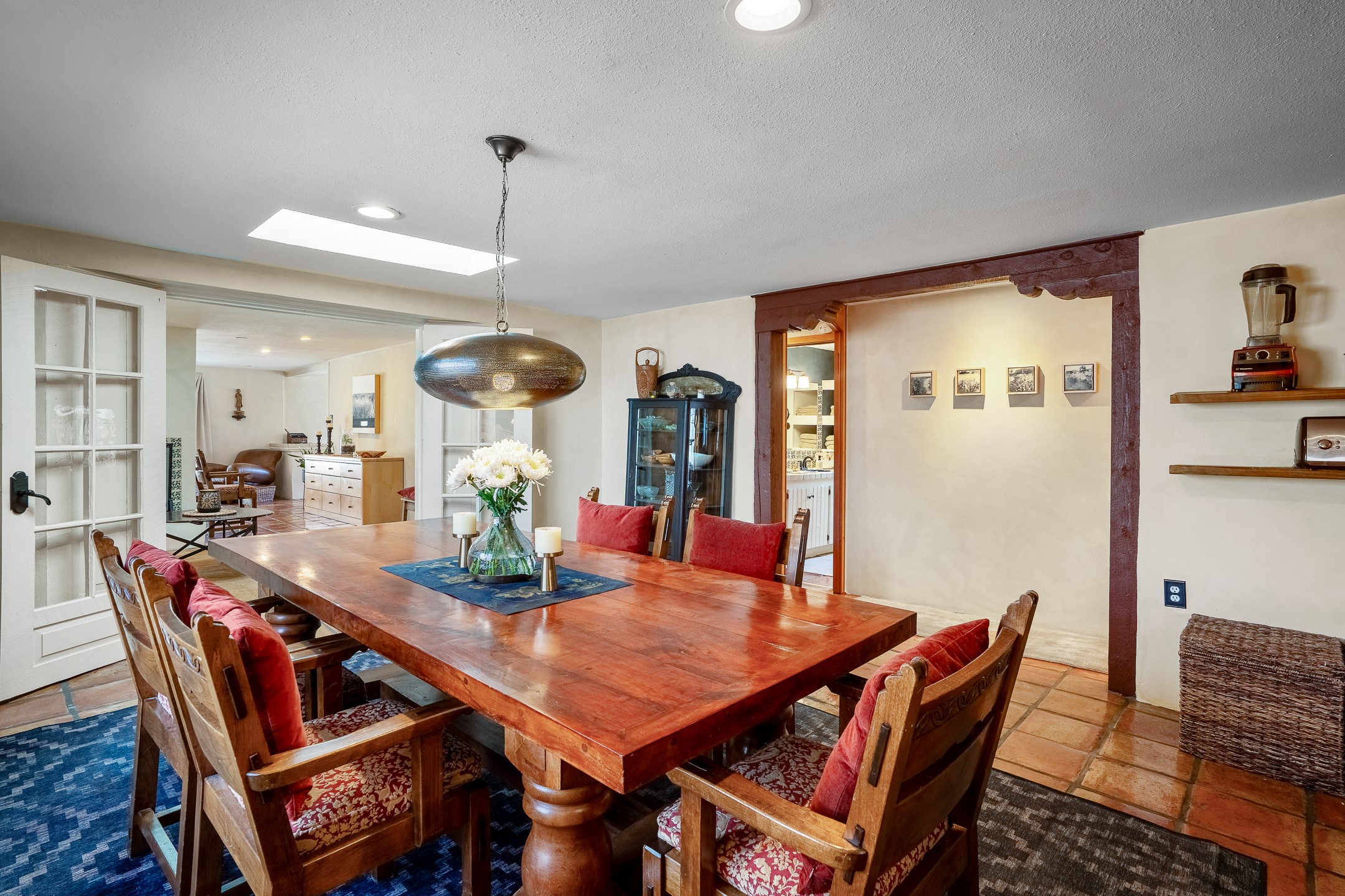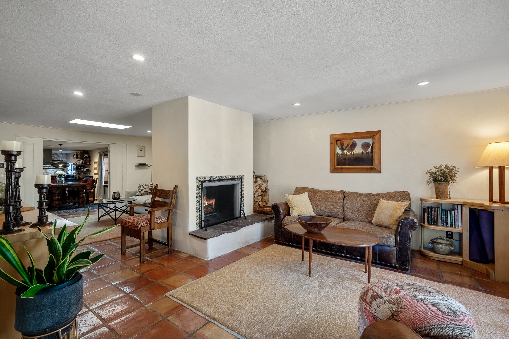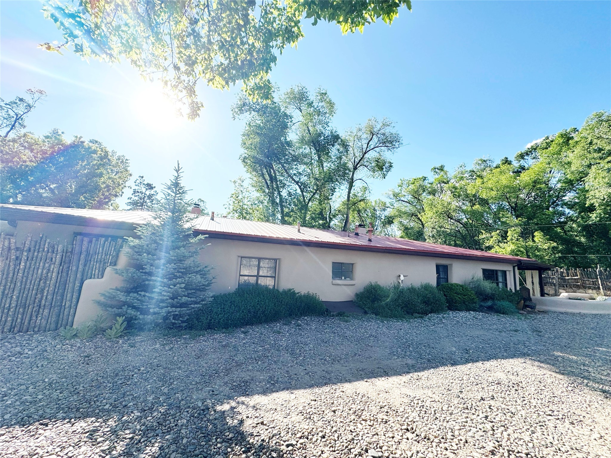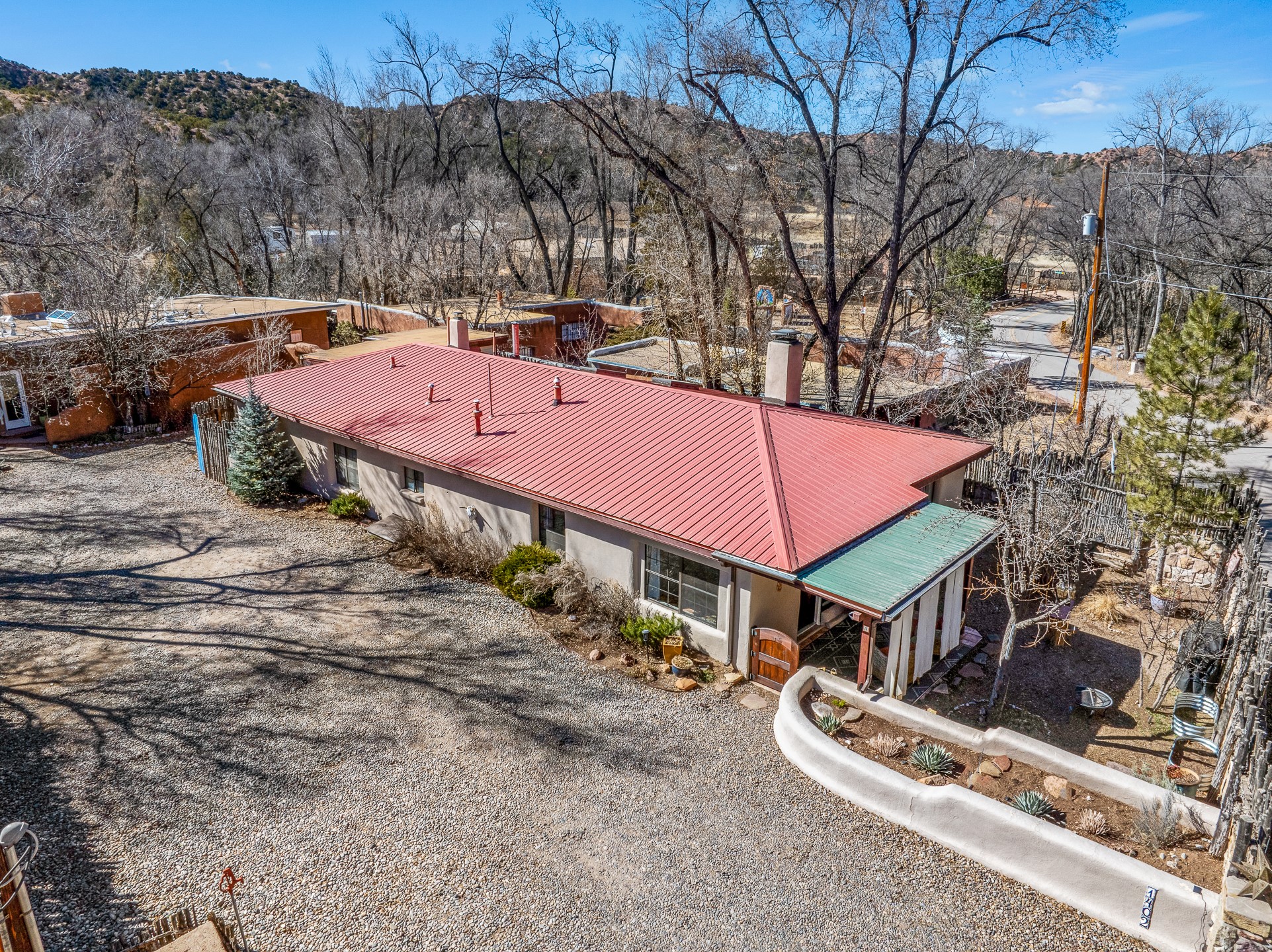 Historic Charm Meets Modern Elegance.Discover the perfect blend of historic charm and modern updates in this stunning, mostly adobe home located in the heart of Tesuque. This exquisite 3-bedroom, 2-bathroom residence features a spacious double-sided fireplace and an expansive dining area. The recently remodeled chef's kitchen boasts soapstone countertops, a quartz sink, and locally crafted cabinetry, including a hand-hewn mahogany pantry. The single-level layout ensures a seamless flow throughout the home. Interior highlights include a light-filled artist studio, skylights, handmade antique Saltillo tile floors, a Reverse Osmosis water system, a new washer and dryer, and a newer heating system (installed in 2022). Additional features include outdoor storage, a large attic, and ample parking.Step outside to a charming courtyard adorned with apple, pear, and pine trees--perfect for lounging during the warmer months. The native plant landscaping, surrounded by majestic Cottonwood trees, adds to the home's serene ambiance.Located just a few minutes' drive from Santa Fe Plaza, this home is conveniently near Tesuque Market and the Santa Fe Opera. Nature lovers will appreciate the proximity to the Santa Fe National Forest hiking trails and the Windsor Trail, with the soothing sound of the Rio Tesuque greeting you at the front door.This home is a rare find in the historic and highly sought-after Tesuque Village area of Northern New Mexico. It is part of a two-home condominium association with zero HOA fees. For more information, please visit http://tesuque-charm.com/