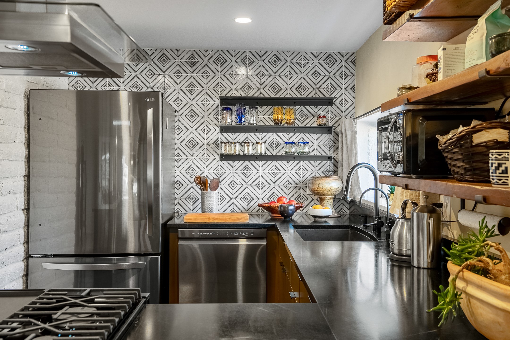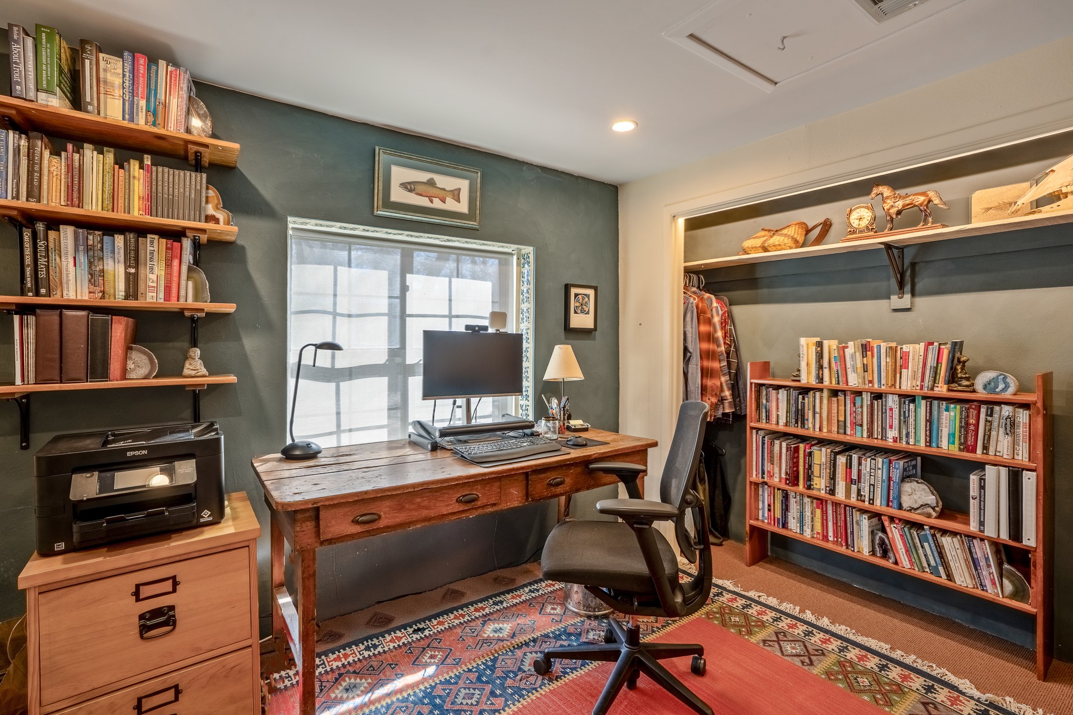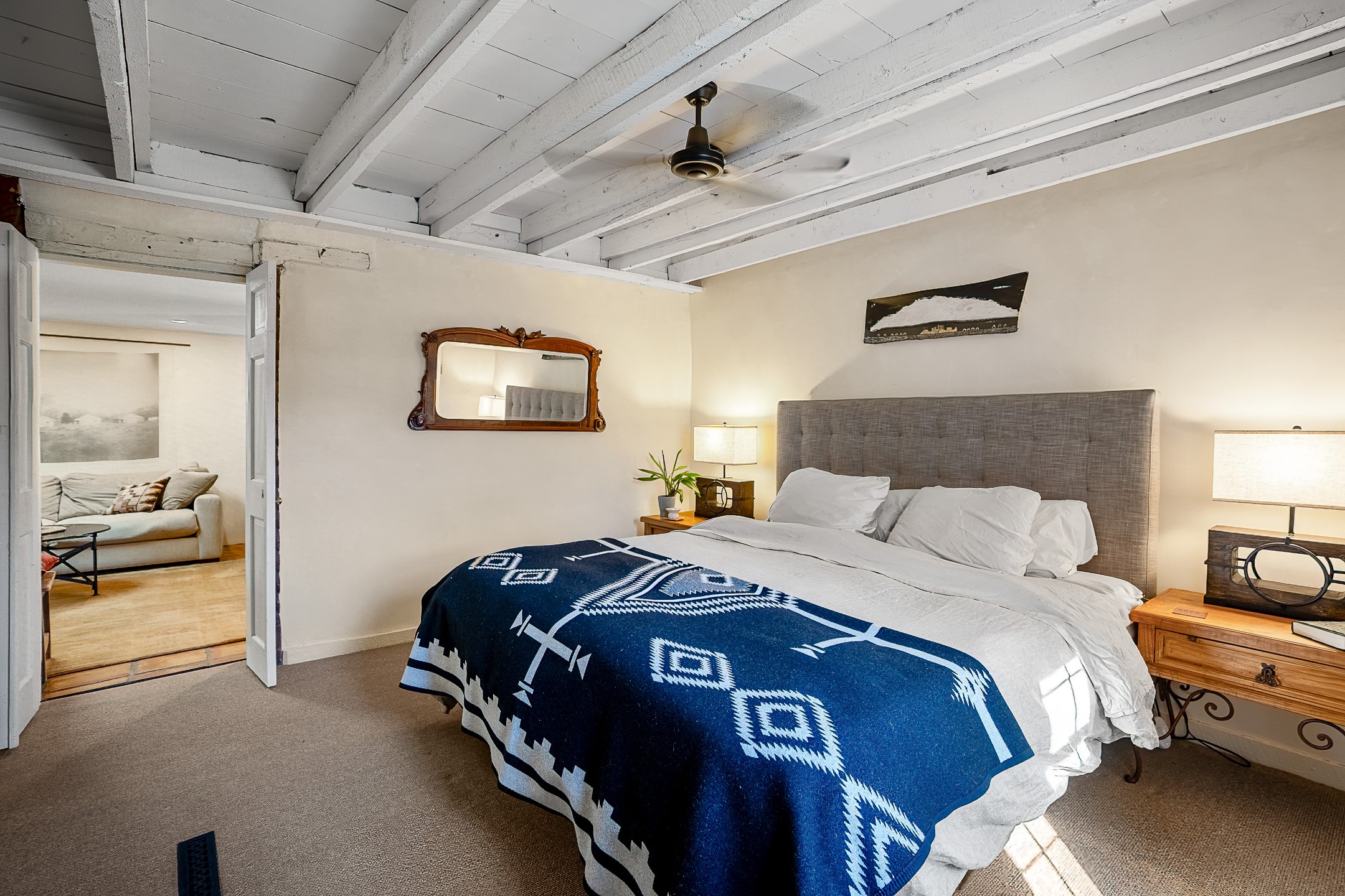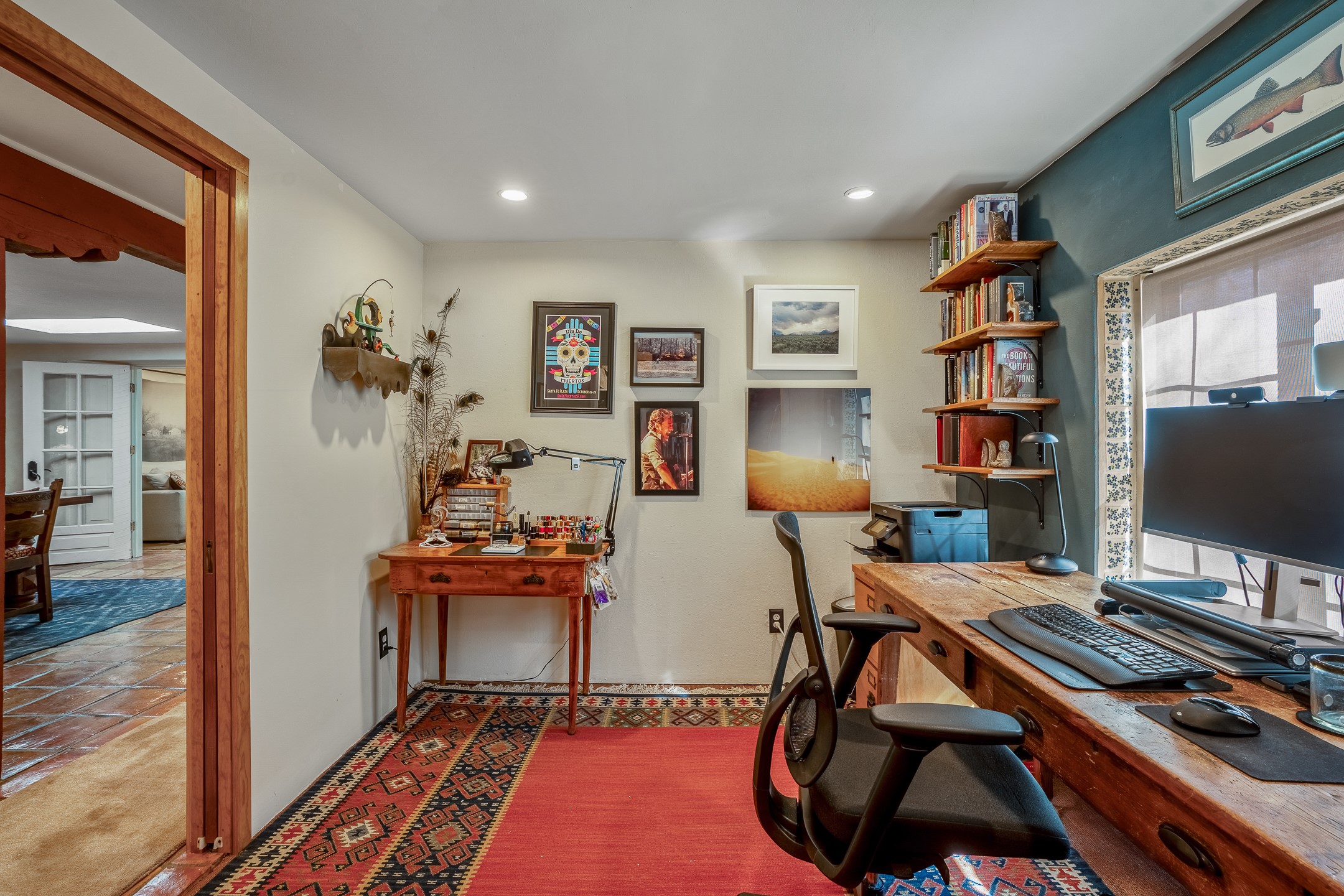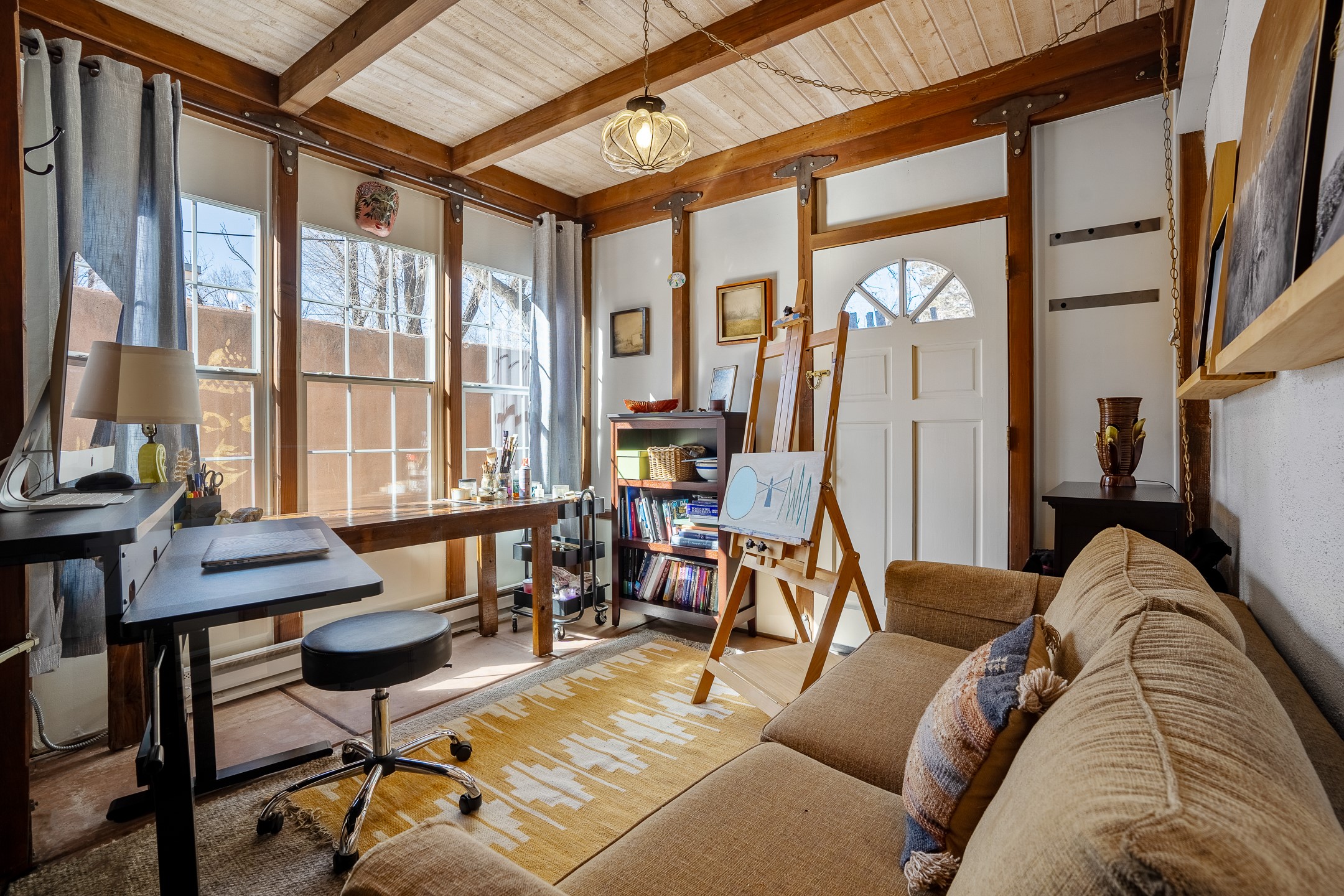 Historic Charm Meets Modern Elegance.Discover the perfect blend of historic charm and modern updates in this stunning, mostly adobe home located in the heart of Tesuque. This exquisite 3-bedroom, 2-bathroom residence features a spacious double-sided fireplace and an expansive dining area. The recently remodeled chef's kitchen boasts soapstone countertops, a quartz sink, and locally crafted cabinetry, including a hand-hewn mahogany pantry. The single-level layout ensures a seamless flow throughout the home. Interior highlights include a light-filled artist studio, skylights, handmade antique Saltillo tile floors, a Reverse Osmosis water system, a new washer and dryer, and a newer heating system (installed in 2022). Additional features include outdoor storage, a large attic, and ample parking.Step outside to a charming courtyard adorned with apple, pear, and pine trees--perfect for lounging during the warmer months. The native plant landscaping, surrounded by majestic Cottonwood trees, adds to the home's serene ambiance.Located just a few minutes' drive from Santa Fe Plaza, this home is conveniently near Tesuque Market and the Santa Fe Opera. Nature lovers will appreciate the proximity to the Santa Fe National Forest hiking trails and the Windsor Trail, with the soothing sound of the Rio Tesuque greeting you at the front door.This home is a rare find in the historic and highly sought-after Tesuque Village area of Northern New Mexico. It is part of a two-home condominium association with zero HOA fees. For more information, please visit http://tesuque-charm.com/