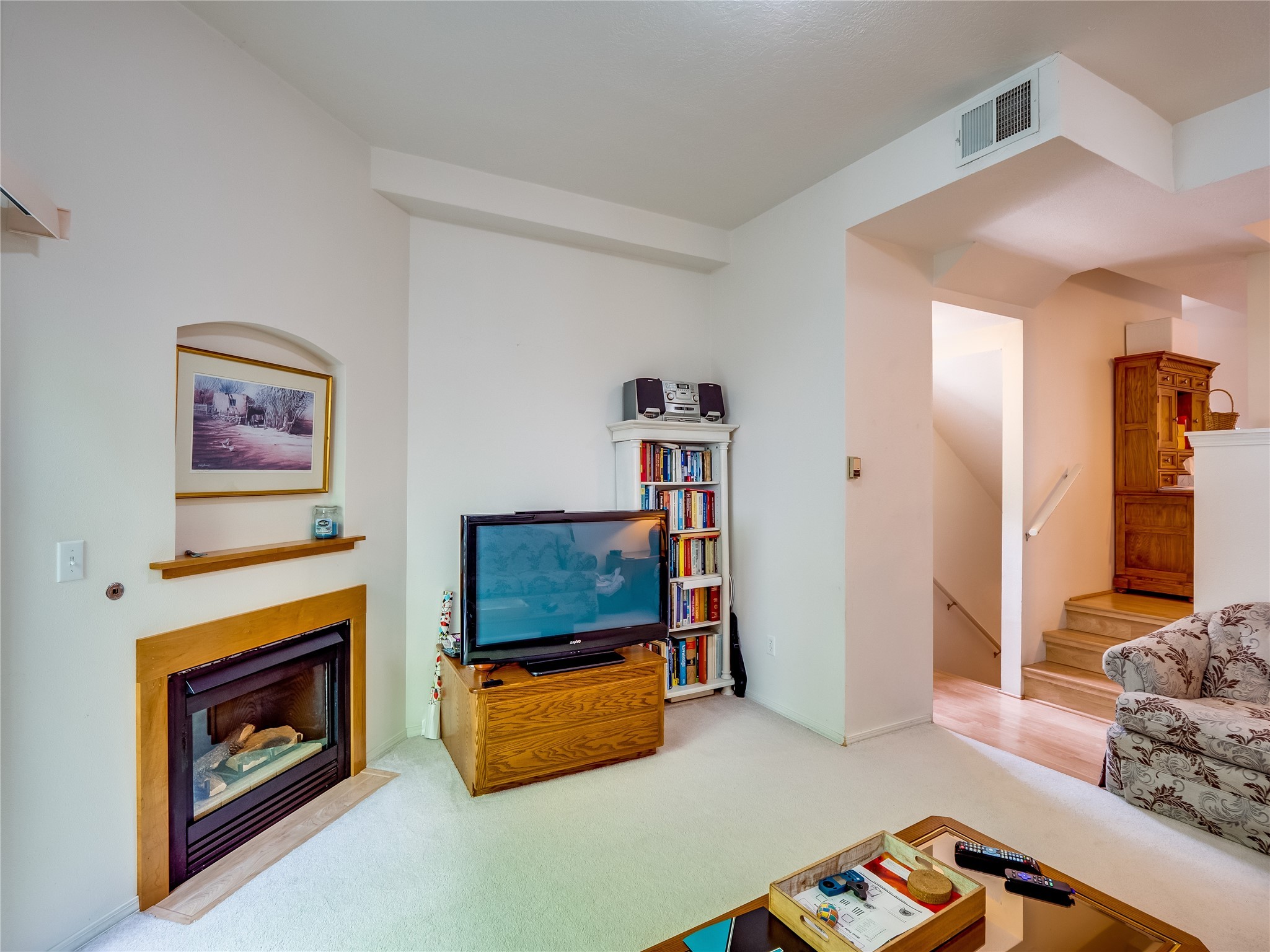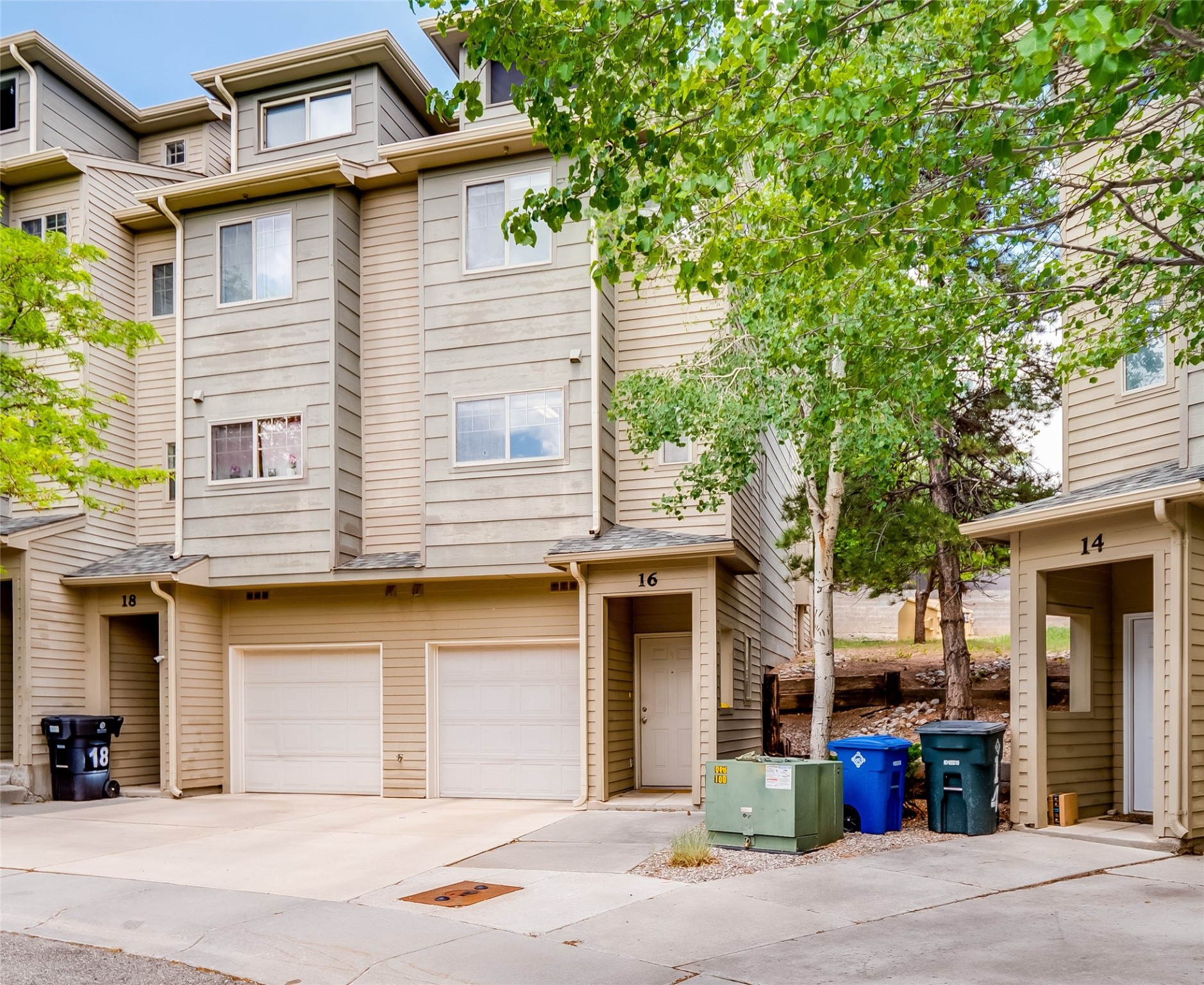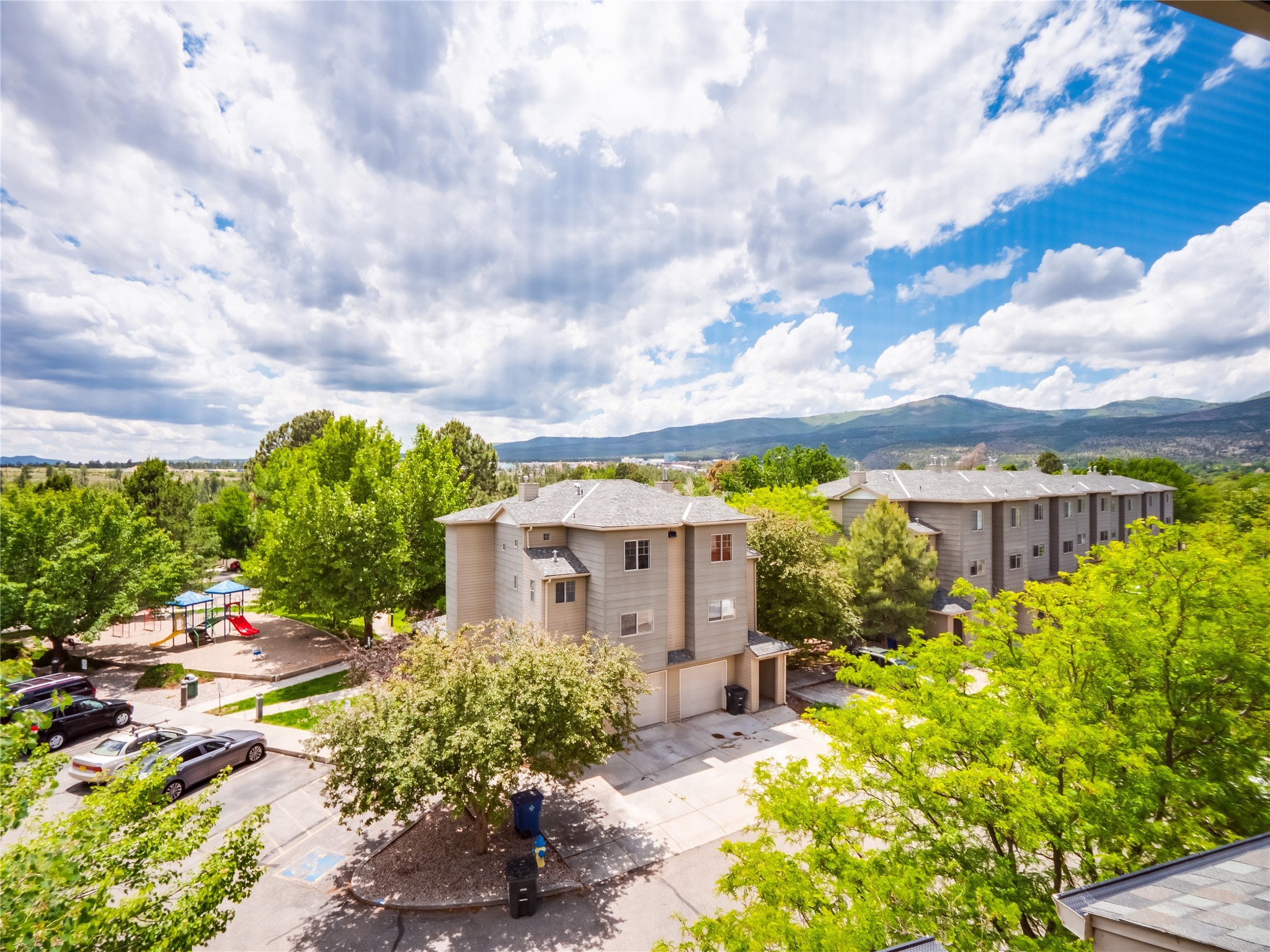 Welcome to this charming and move-in-ready multi-level condo, perfectly situated in the desirable Eastern Area of Los Alamos--just moments from parks, scenic trails, shopping, restaurants, and entertainment. This thoughtfully designed home offers spacious living across multiple levels, blending comfort with convenience. Step inside through the front entrance and onto laminate wood floors that flow through the main entry space. On this floor, you'll find interior access to the single-car garage, which also houses a washer and dryer for added convenience. Head upstairs to the inviting main living area featuring a bright and cozy living room with plush carpeting, a warm gas fireplace, and sliding glass doors that open to a private, fenced-in patio--ideal for relaxing or entertaining outdoors. Continue up a short flight of stairs to the open dining space, which overlooks the living room and connects seamlessly to the bright kitchen. The kitchen features classic wood cabinetry, white appliances, a pantry for added storage, and ample counter space. A crisp white powder room is also located on this level for guests. On the next level, two generously sized guest bedrooms provide comfortable accommodations with access to a full shared bathroom complete with a large single sink vanity and a tub/shower combo. The top floor is dedicated to the spacious primary en-suite retreat. This private level includes a large bedroom, walk-in closet, and full bathroom with a shower/tub combo and an extended single sink vanity. Step outside onto your own enclosed patio deck and enjoy peaceful views of the surrounding mountains--your very own personal sanctuary. With multiple levels of living, a functional layout, and an unbeatable location, this condo is a rare find. Don't miss your chance to call it home--schedule your private showing today!