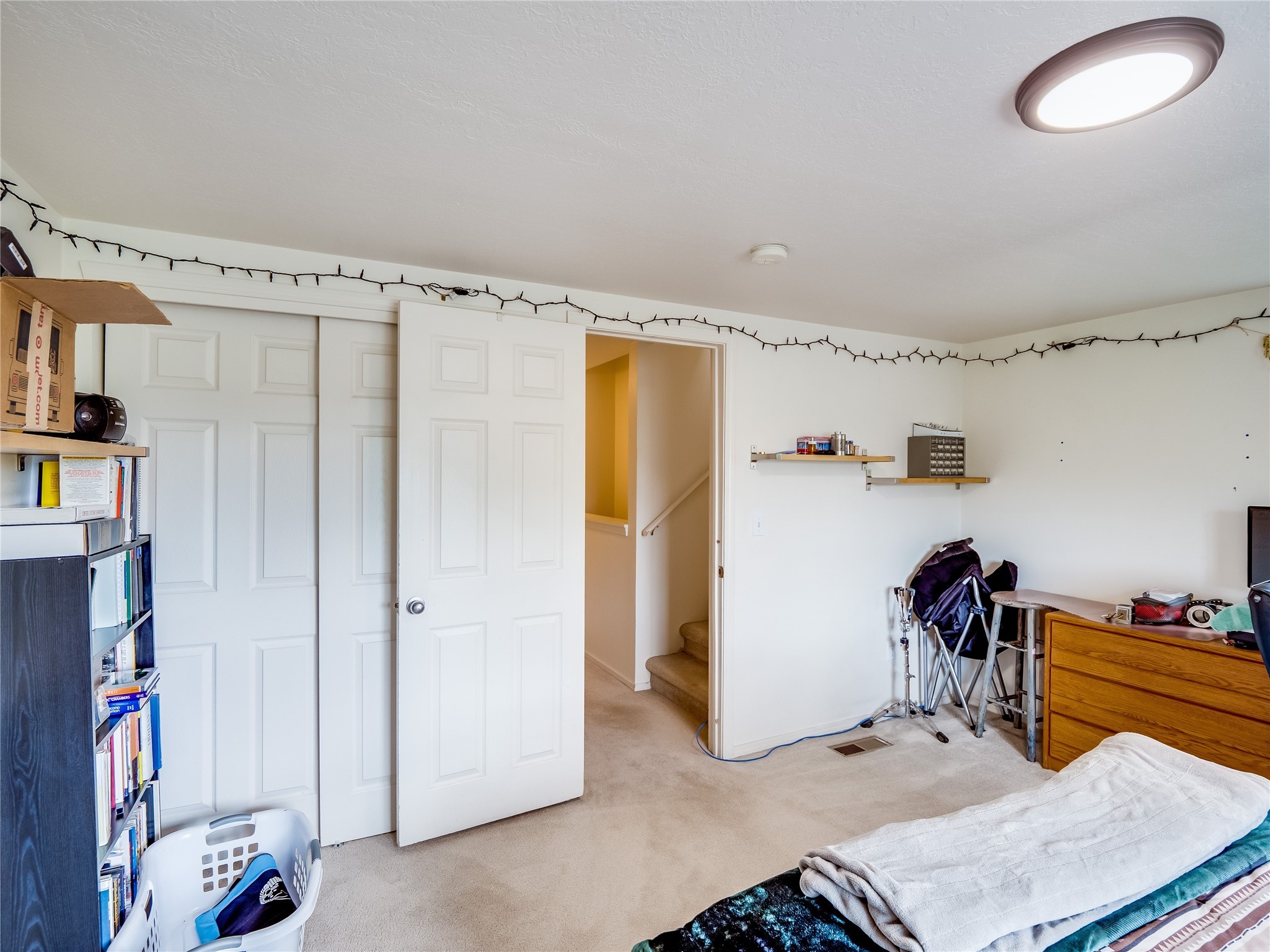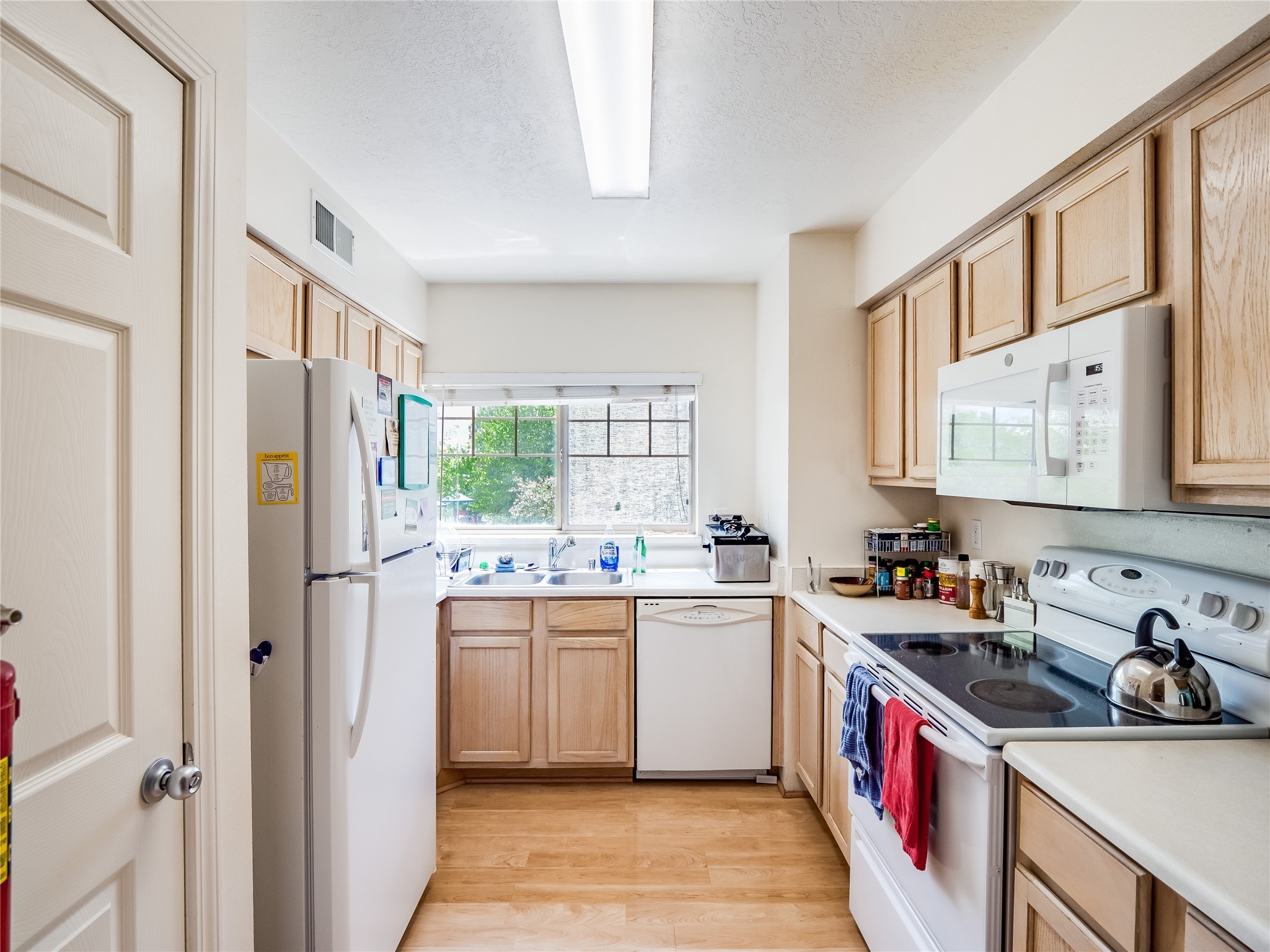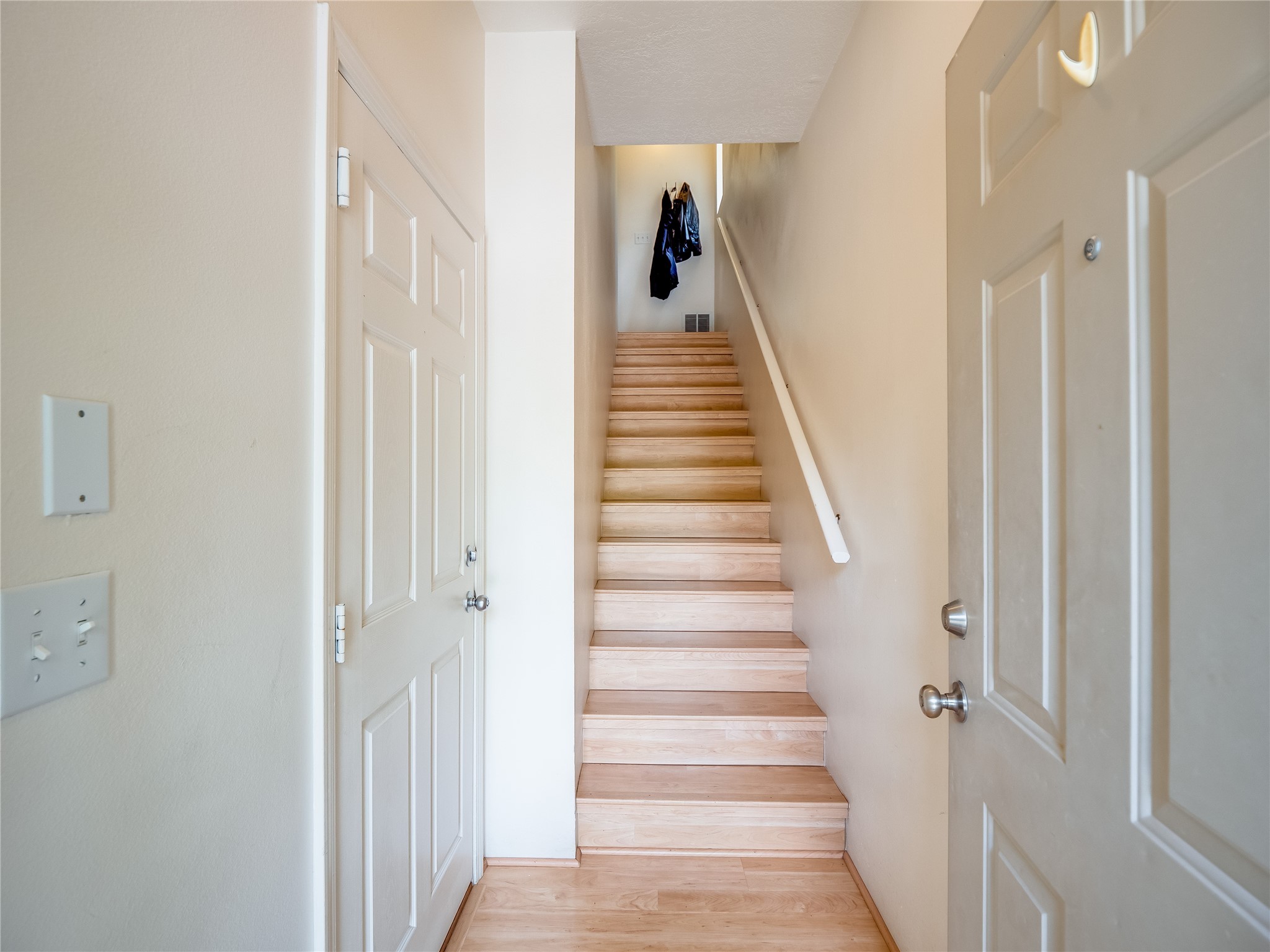 Welcome to this charming and move-in-ready multi-level condo, perfectly situated in the desirable Eastern Area of Los Alamos--just moments from parks, scenic trails, shopping, restaurants, and entertainment. This thoughtfully designed home offers spacious living across multiple levels, blending comfort with convenience. Step inside through the front entrance and onto laminate wood floors that flow through the main entry space. On this floor, you'll find interior access to the single-car garage, which also houses a washer and dryer for added convenience. Head upstairs to the inviting main living area featuring a bright and cozy living room with plush carpeting, a warm gas fireplace, and sliding glass doors that open to a private, fenced-in patio--ideal for relaxing or entertaining outdoors. Continue up a short flight of stairs to the open dining space, which overlooks the living room and connects seamlessly to the bright kitchen. The kitchen features classic wood cabinetry, white appliances, a pantry for added storage, and ample counter space. A crisp white powder room is also located on this level for guests. On the next level, two generously sized guest bedrooms provide comfortable accommodations with access to a full shared bathroom complete with a large single sink vanity and a tub/shower combo. The top floor is dedicated to the spacious primary en-suite retreat. This private level includes a large bedroom, walk-in closet, and full bathroom with a shower/tub combo and an extended single sink vanity. Step outside onto your own enclosed patio deck and enjoy peaceful views of the surrounding mountains--your very own personal sanctuary. With multiple levels of living, a functional layout, and an unbeatable location, this condo is a rare find. Don't miss your chance to call it home--schedule your private showing today!