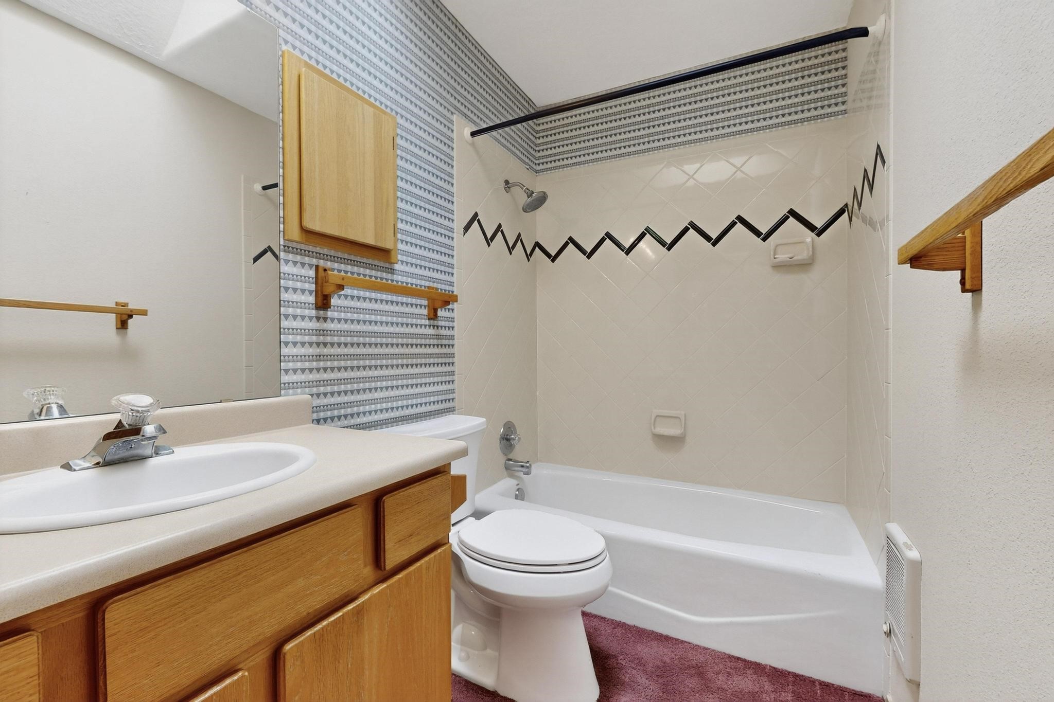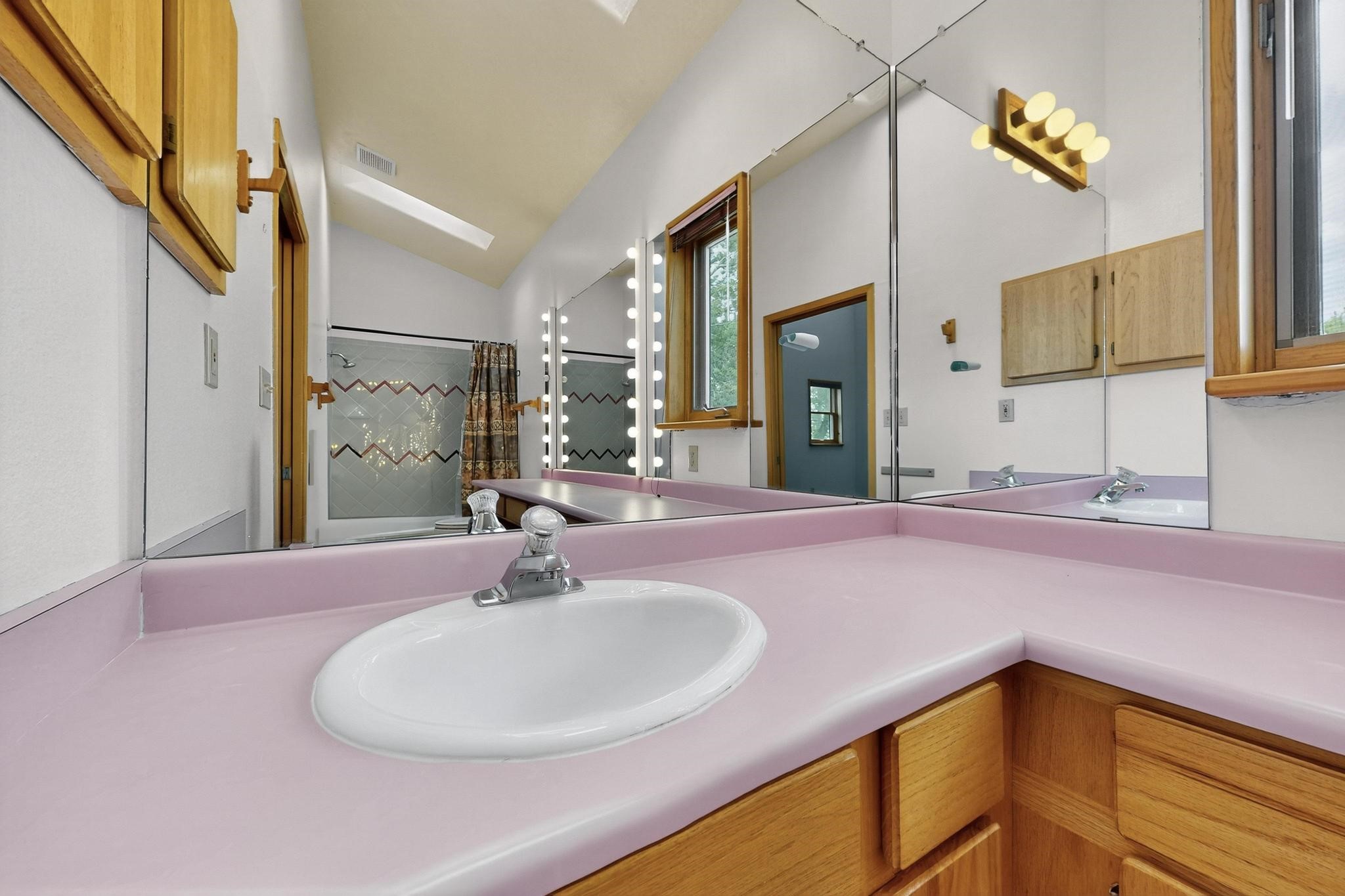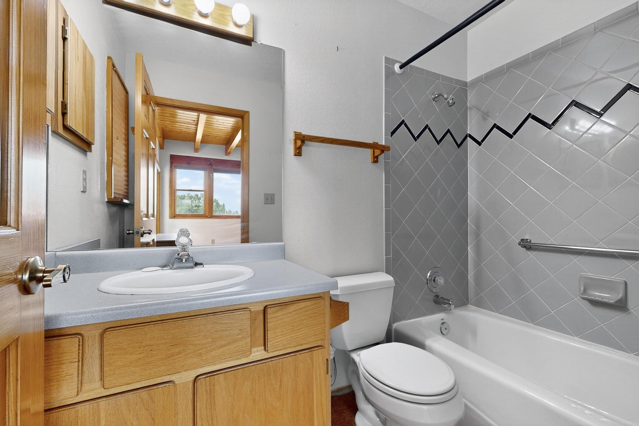 Priced to Sell! First time on the market, grand one owner home custom built by Sierra Homes bordering a large greenbelt, on a cul de sac close to the Eldorado community center and amenities. The passive solar open great room combines kitchen, dining and living room with Kiva fireplace and a mini split. Separate guest bedroom with bathroom off the living room, plus another guest bedroom and full bath, plus an office/library with walk in closet/storage room with extra access from the garage.. A spacious owners suite with large bathroom and mini split for comfortable living. There is an oversized 600sf finished 2 car garage with plenty of storage space and plenty of guest parking. All this close to Eldorado amenities, local shopping, schools, parks, trails, library and senior center, and only minutes into Santa Fe