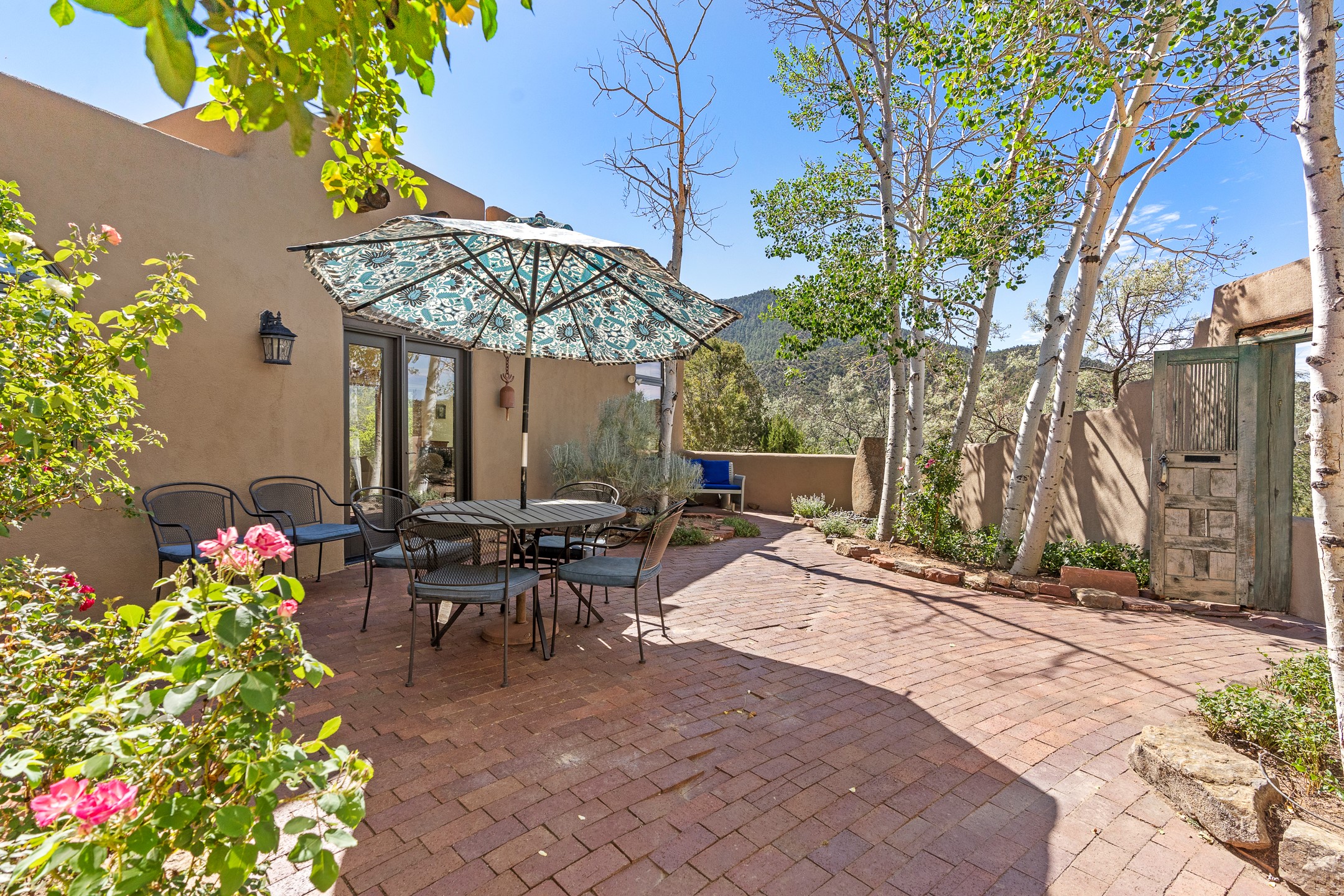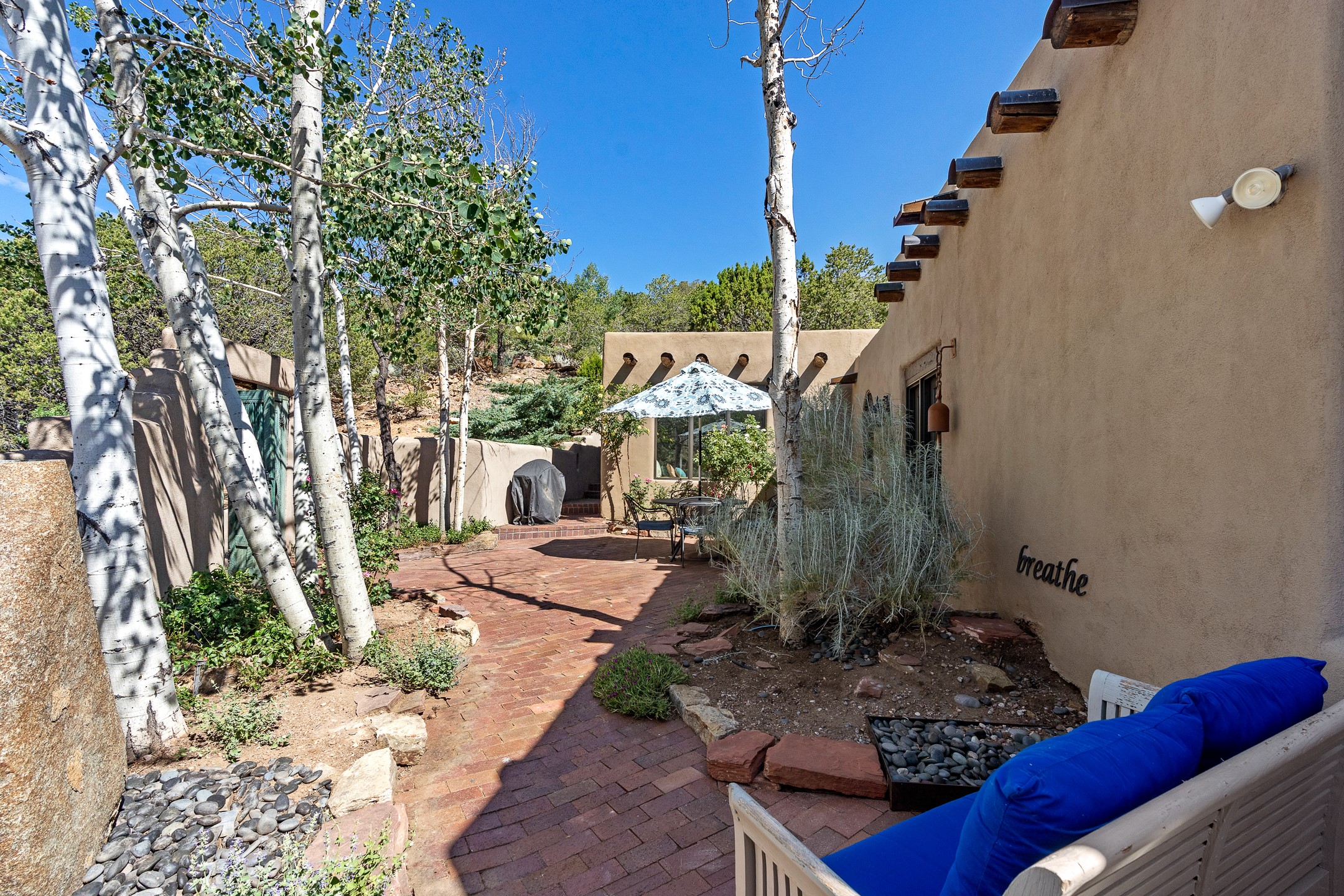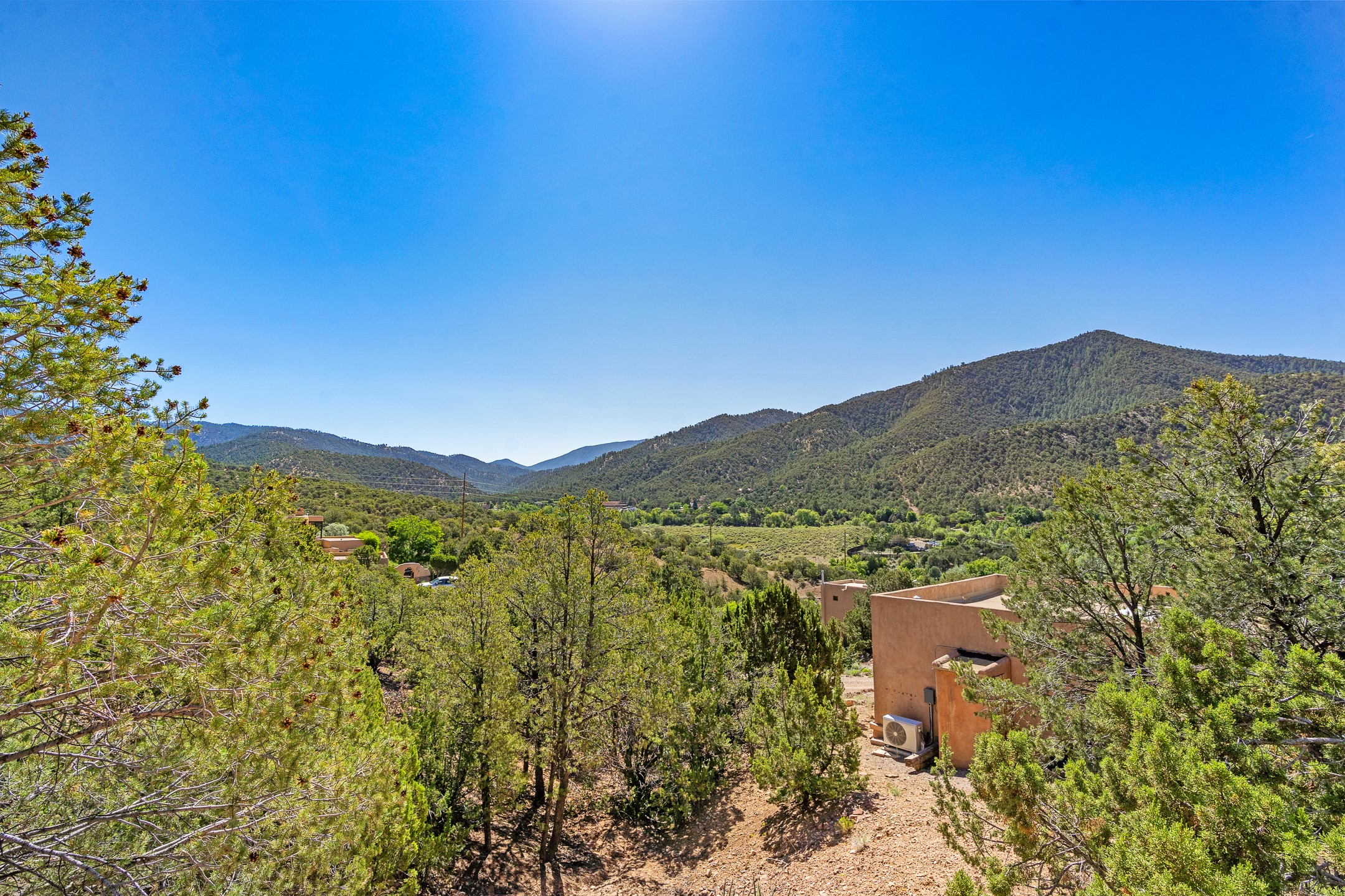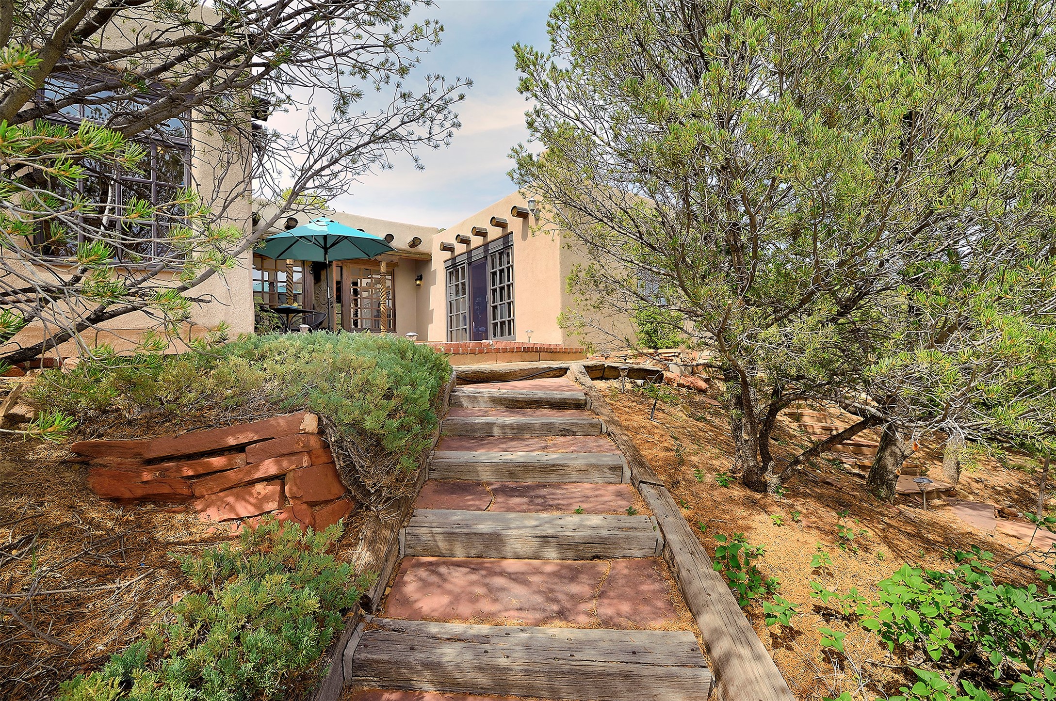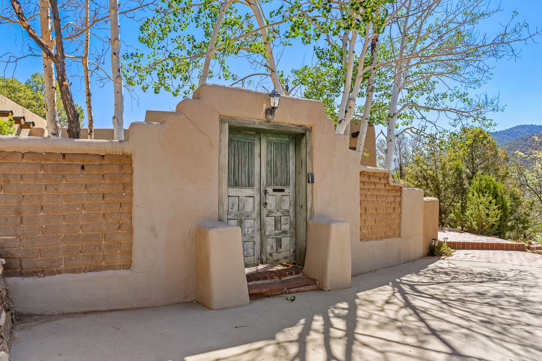 Nestled in the foothills of the Sangre de Cristos Mountains, this property offers a rareblend of serenity and convenience-just minutes from Santa Fe's historic Plaza. Set on over an acre ofbeautifully treed land, the walled courtyard welcomes you to the entry of this light filled 3 bedroom3 bath (2384 sq ft)home full of unique architectural details. The 1 bedroom 1 bath (768 sq ft) guest house is equipped with a full kitchen and mini split offering year round comfort. This property presents a rare chance to own close to town as well as many hiking/biking trails that are right out your front door. Its perfect for the active lifestyle.